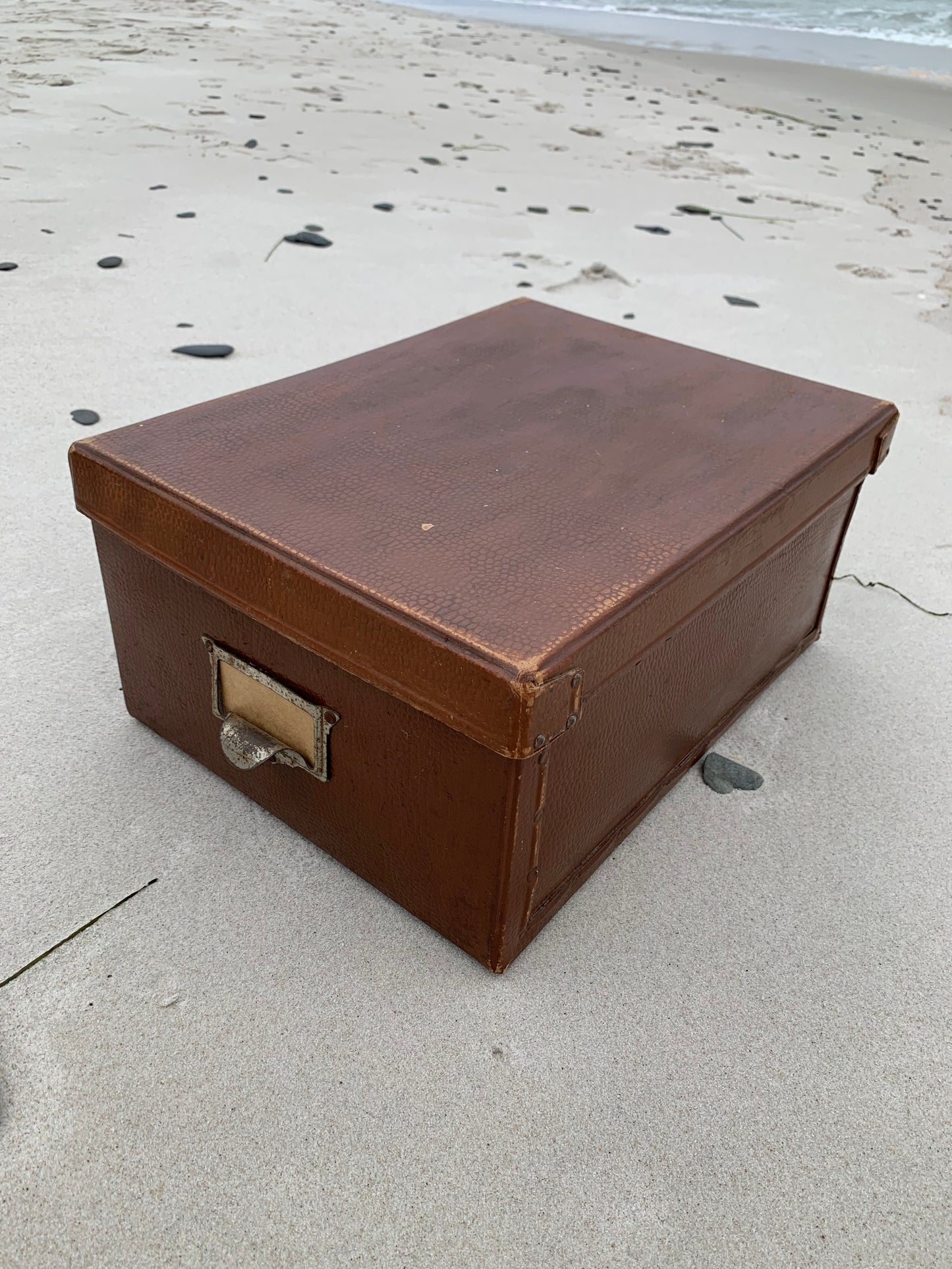 Fin gammel arkivkasse til opbevaring. Tidens tand har bidt en smule i kassen der har alderssvarende patina.