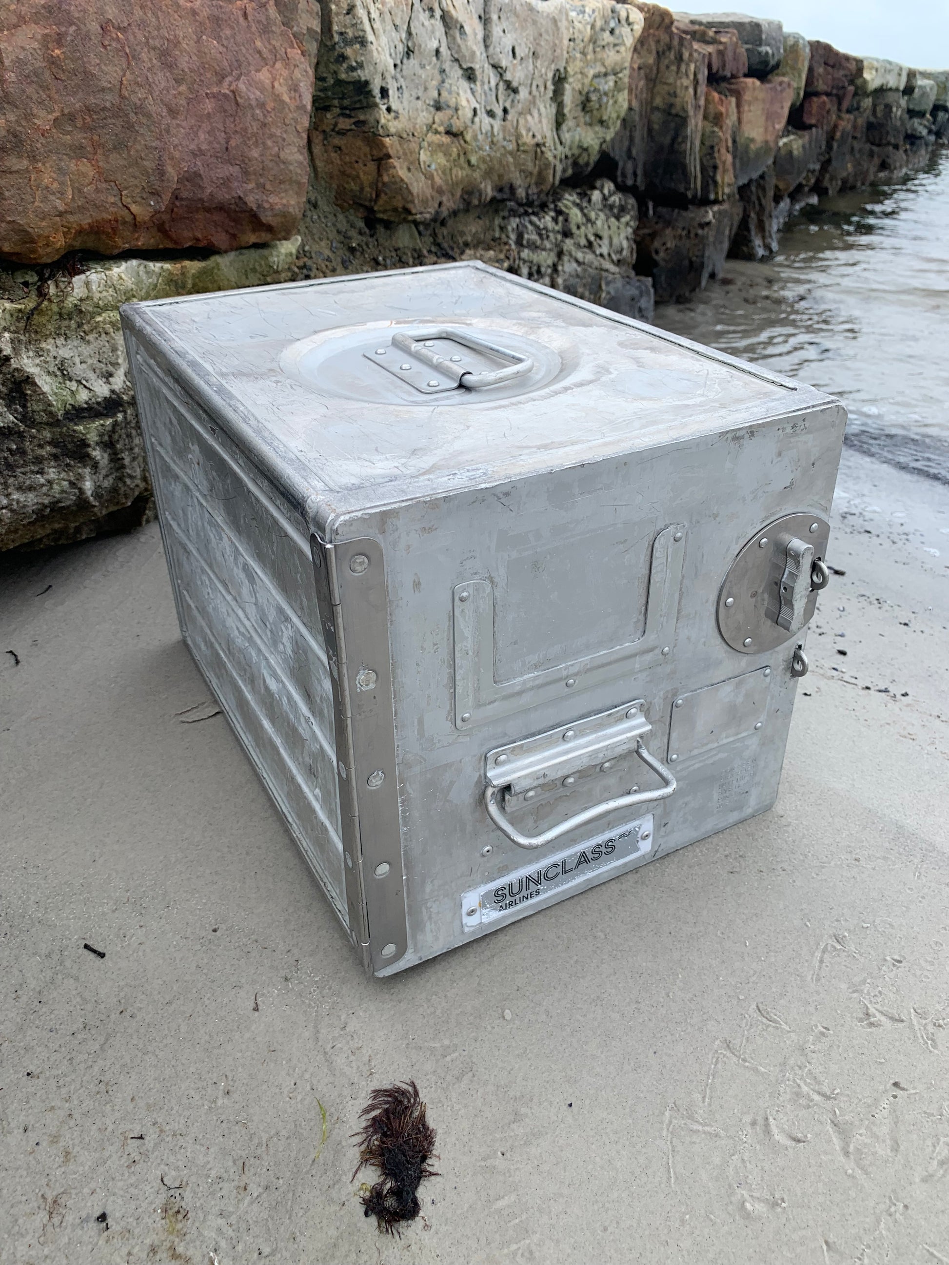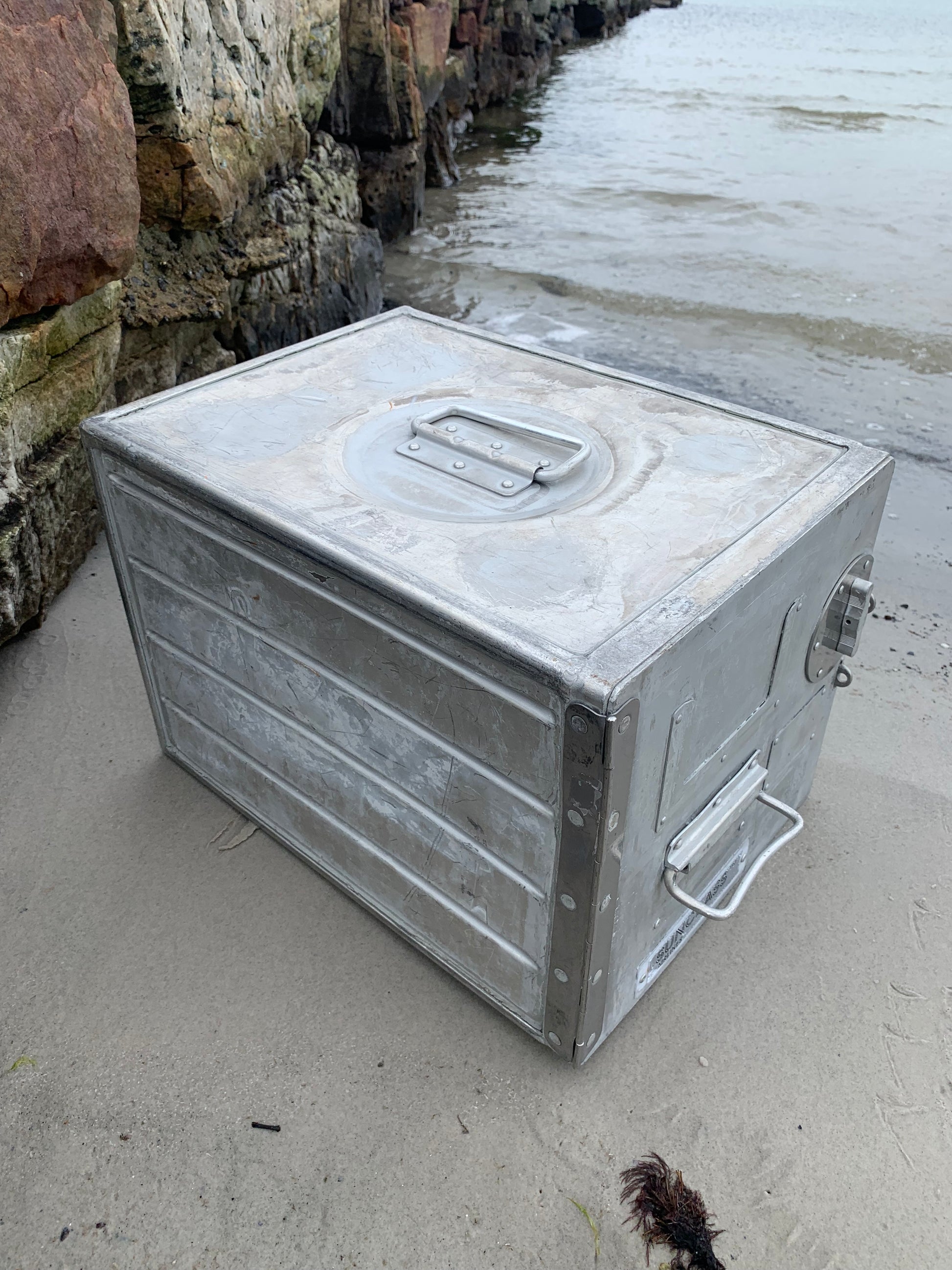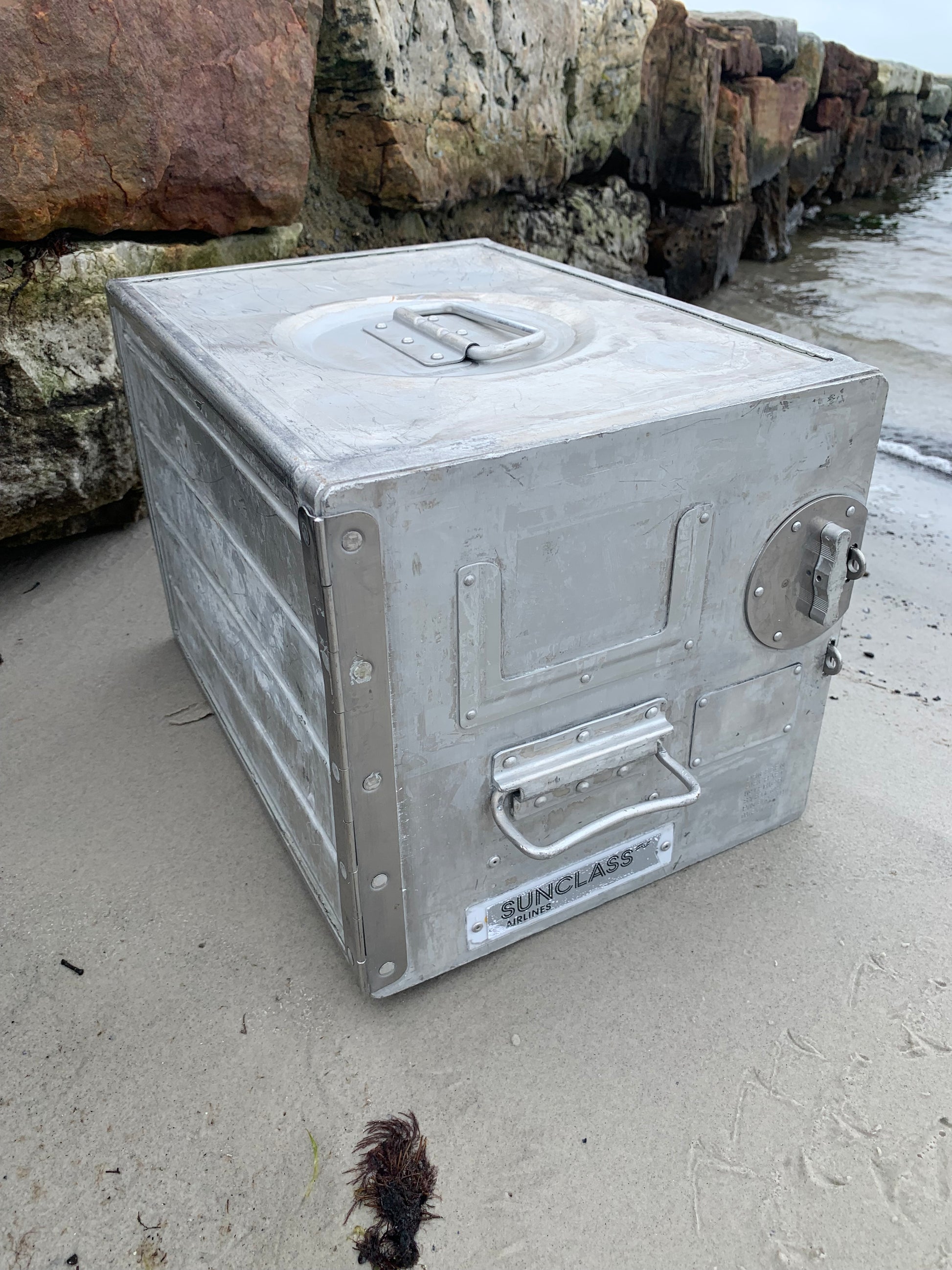 Her er et skønt fly cabine skab med masser af anvendelsesmuligheder. Det kan bruges som et lille bord, natbord, barskab eller meget andet. Det rå og industrielle udtryk gør det til et fint og meget anvendeligt lille møbel. Skabet har patina og aldersrelaterede brugsspor.