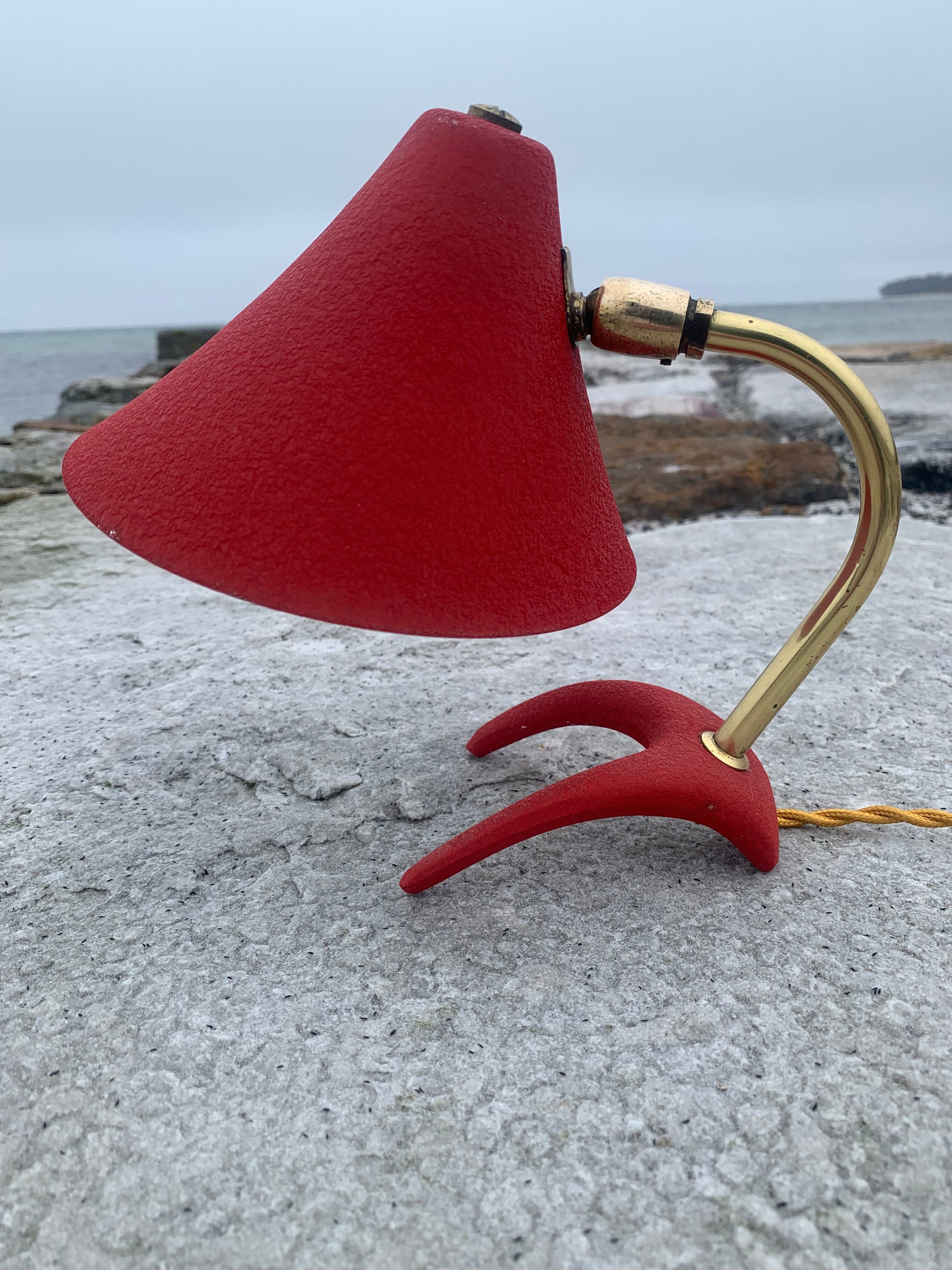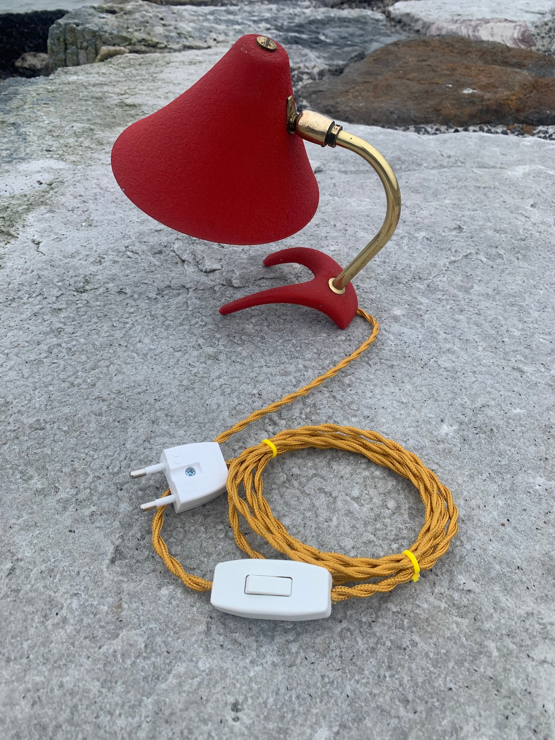 Fin lille Cosack lampe med messingarm og kragefod. Denne lampe er meget dekorativ og har mange fine detaljer. En eftertragtet lampe blandt samlere idet den er sjælden. Lampen er nykablet og har lidt brugsspor der blot vidner om, at her er tale om en vintagelampe. Overordnet er standen rigtig god.