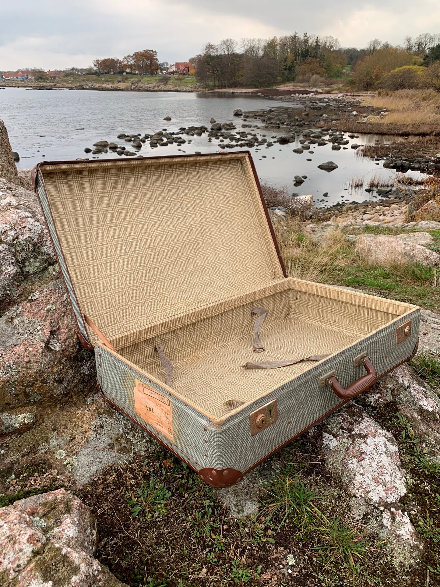 Denne kuffert har en hel del år på bagen og egner sig nok bedst som dekoration samt opbevaring i dag.
