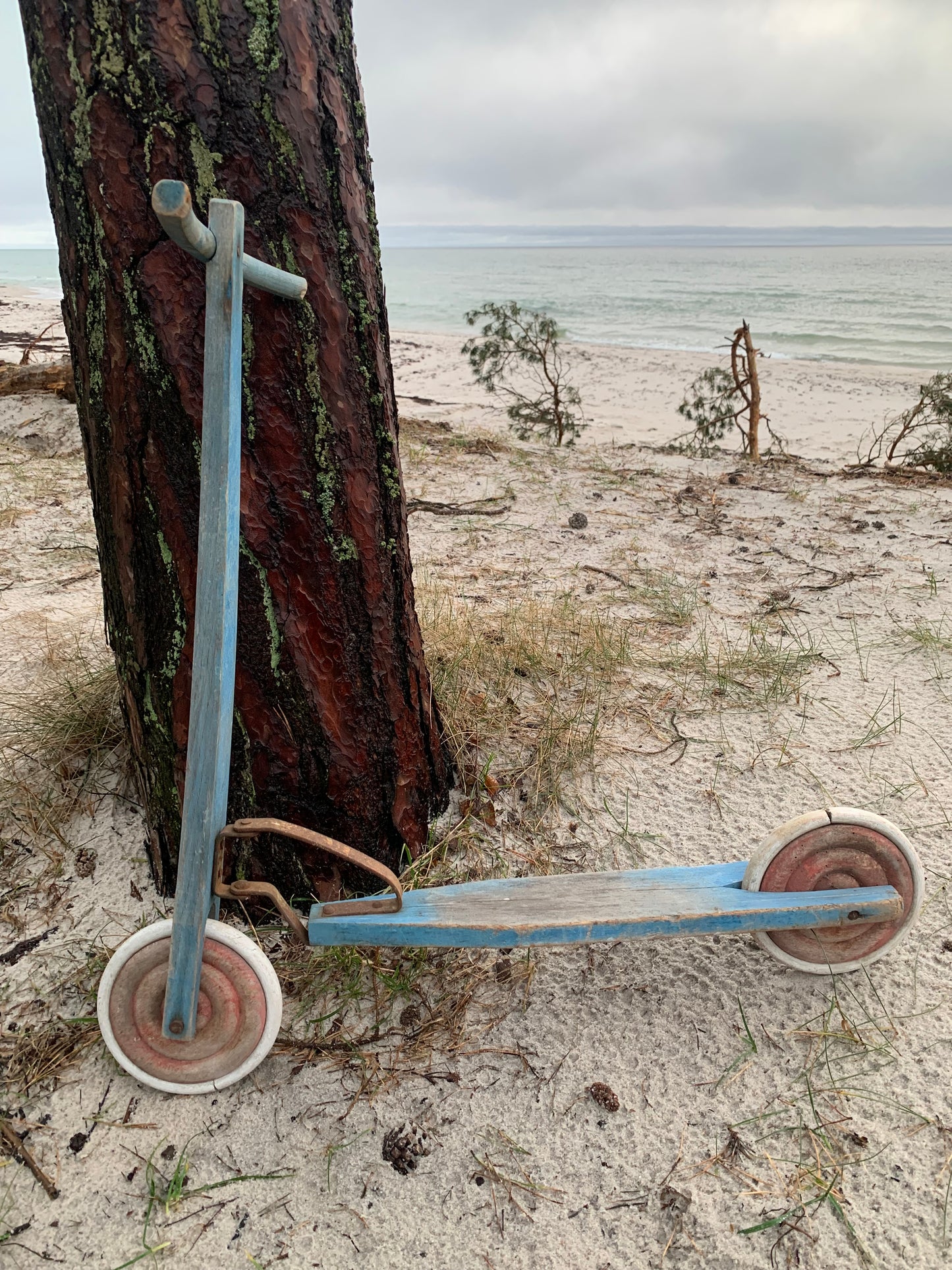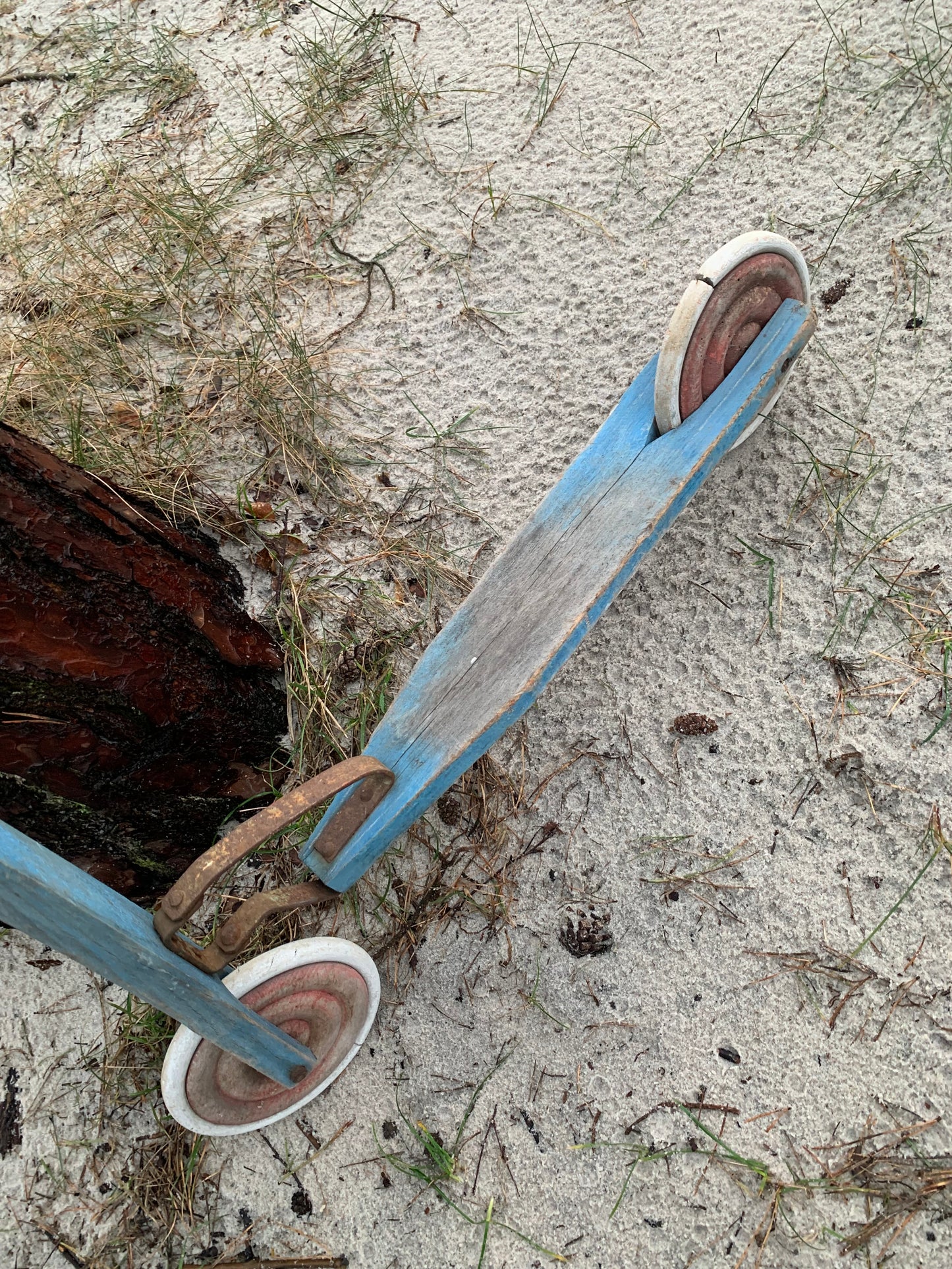 Dekorativt gammelt løbehjul med den skønneste patina. Velegnet til dekoration i butik eller andre steder hvor der skal dekoreres.