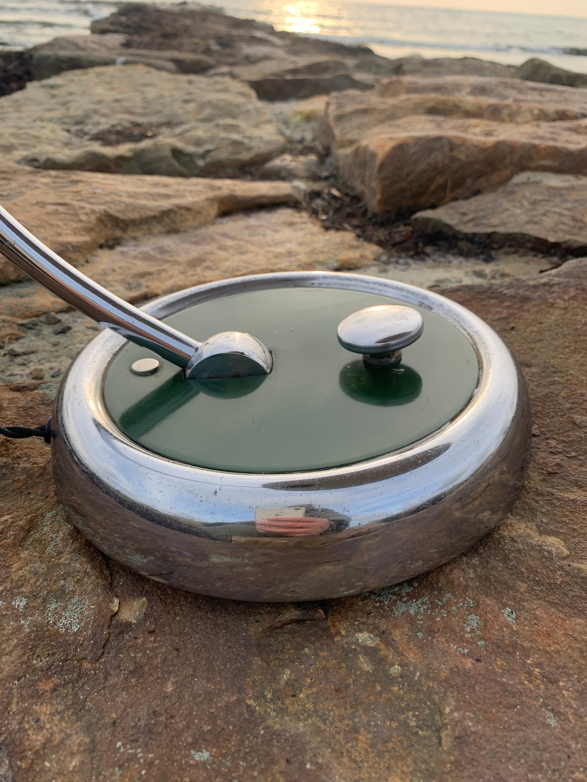 Den har lidt ridser i lakken (se foto) og henvender sig til dig der ser det perfekte i det uperfekte samt dig der holder af originalitet og lækre detaljer som den store trykkontakt.