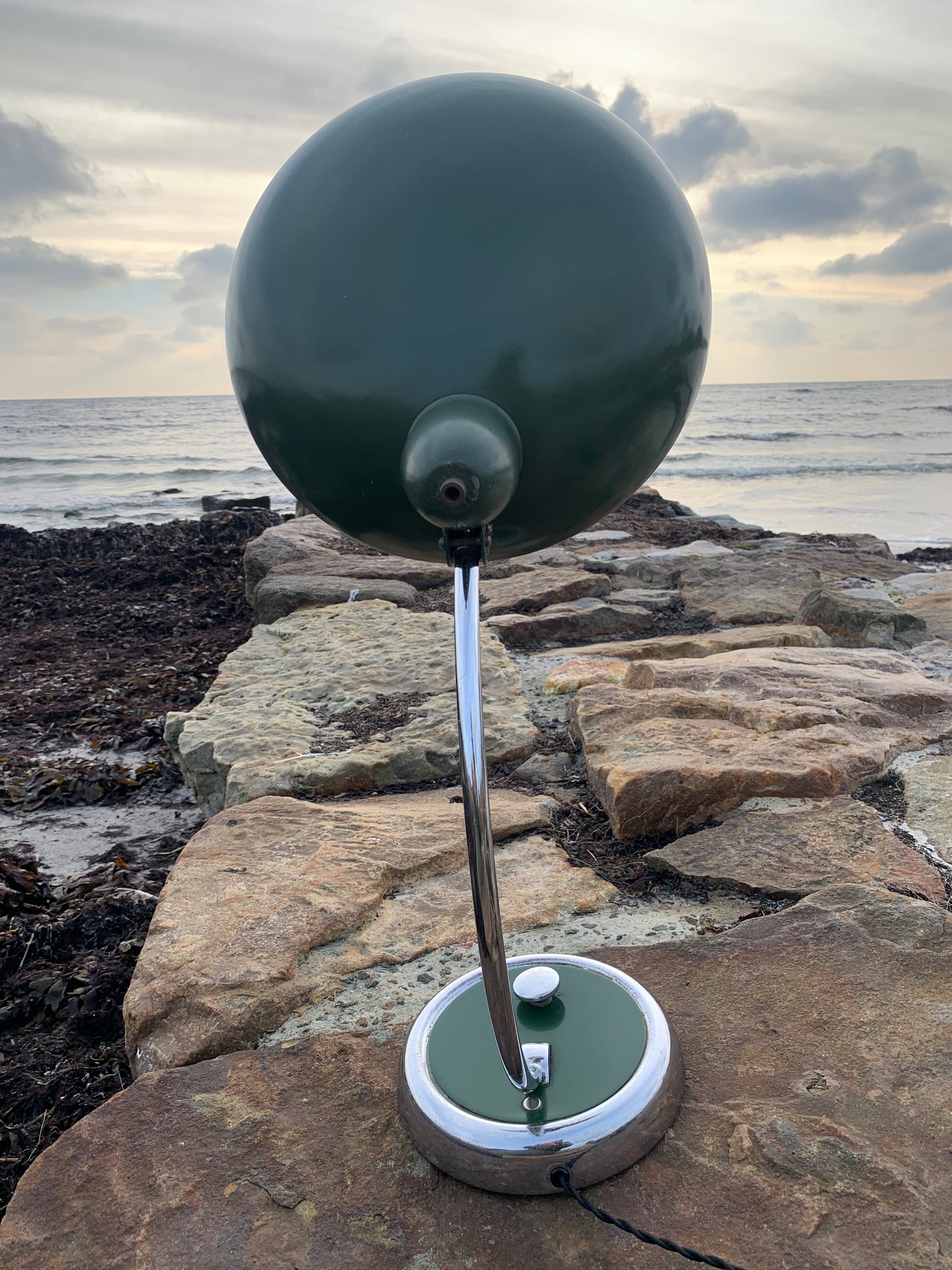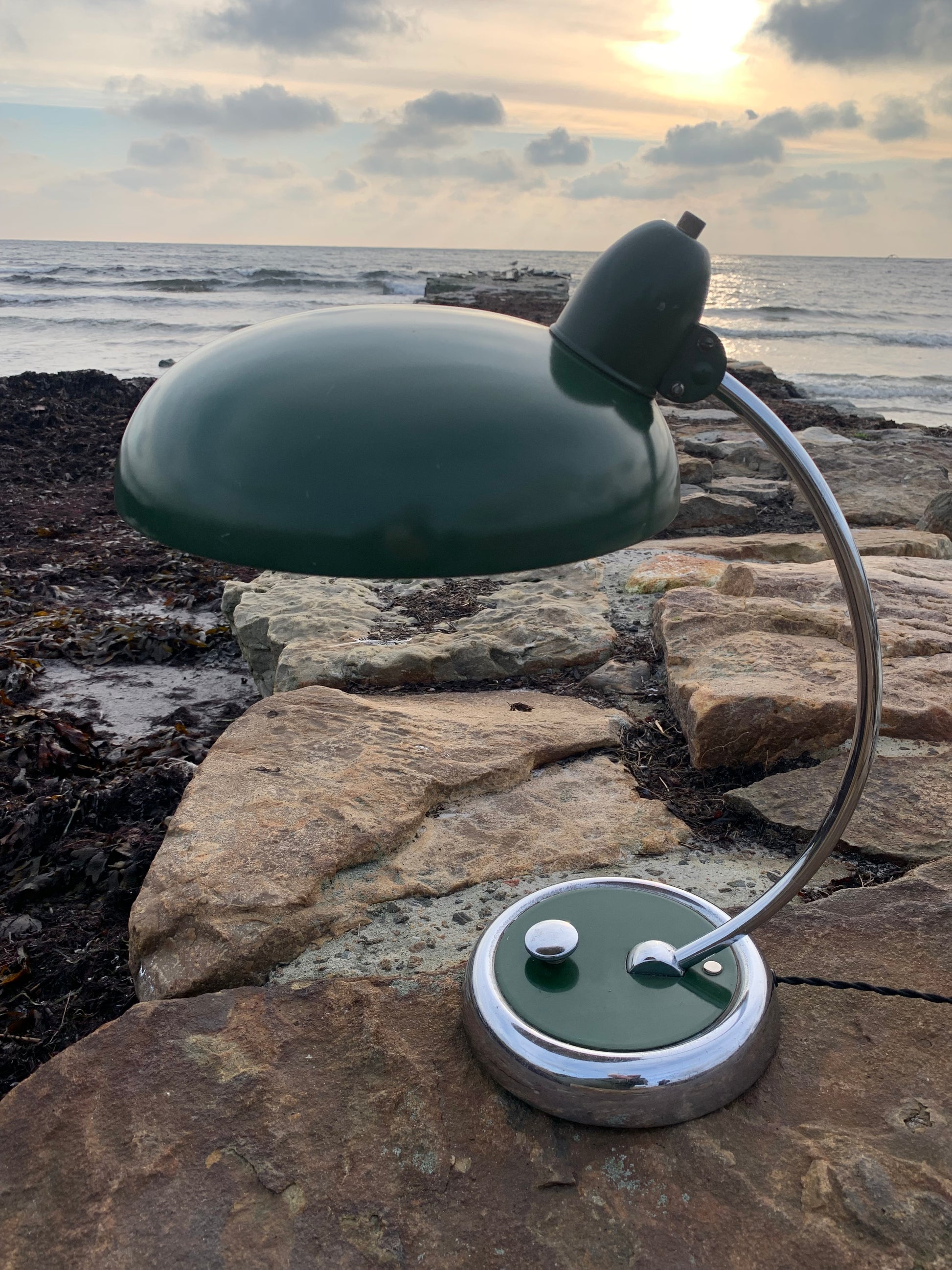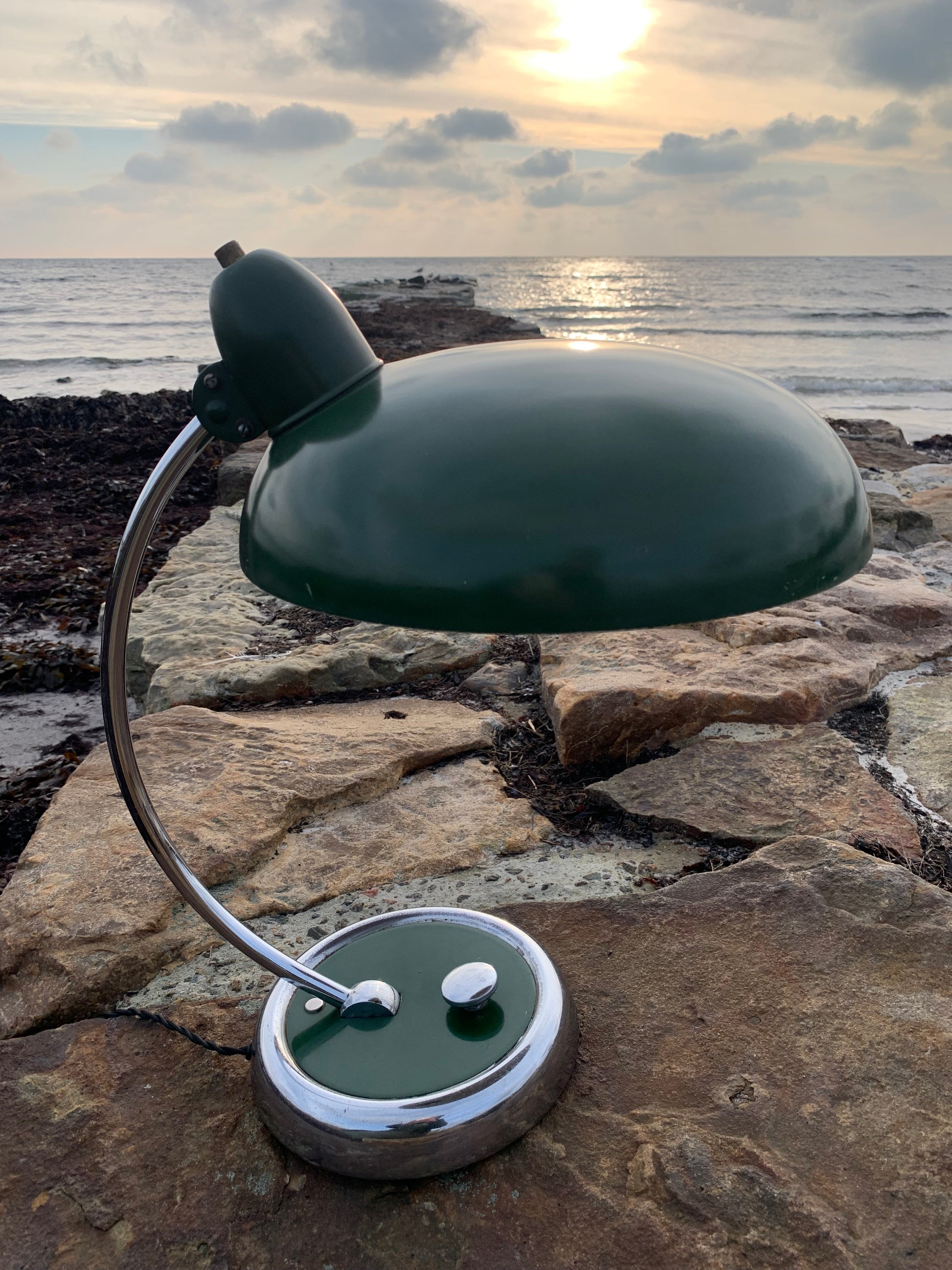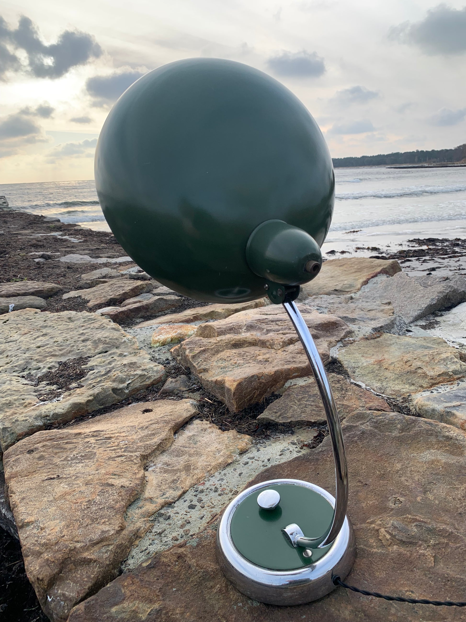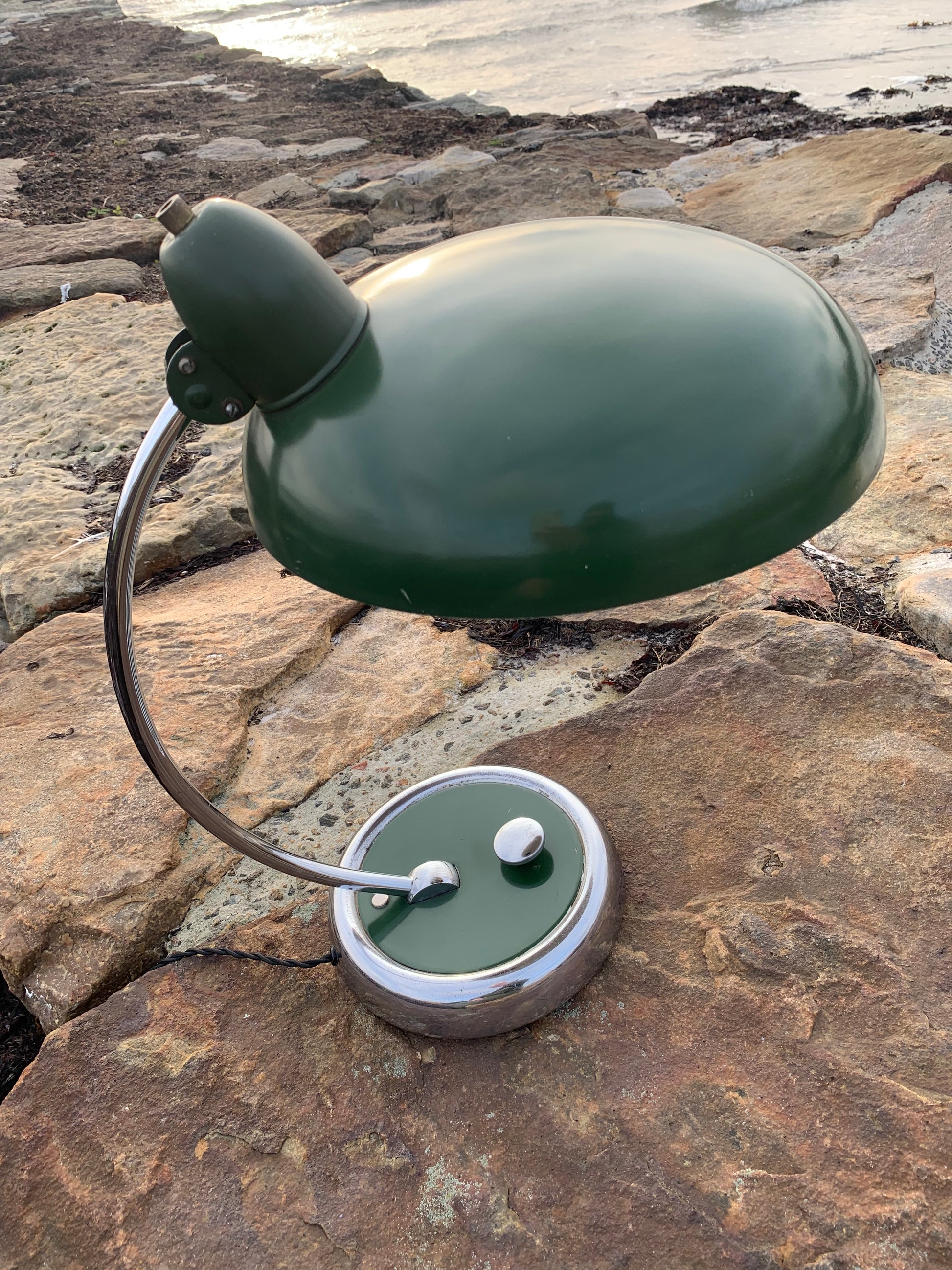 Skøn lampe med original lak og smuk formgivning fra Escolux. Lampen er nykablet og fremstår med aldersrelaterede brugsspor på en meget charmerende måde.