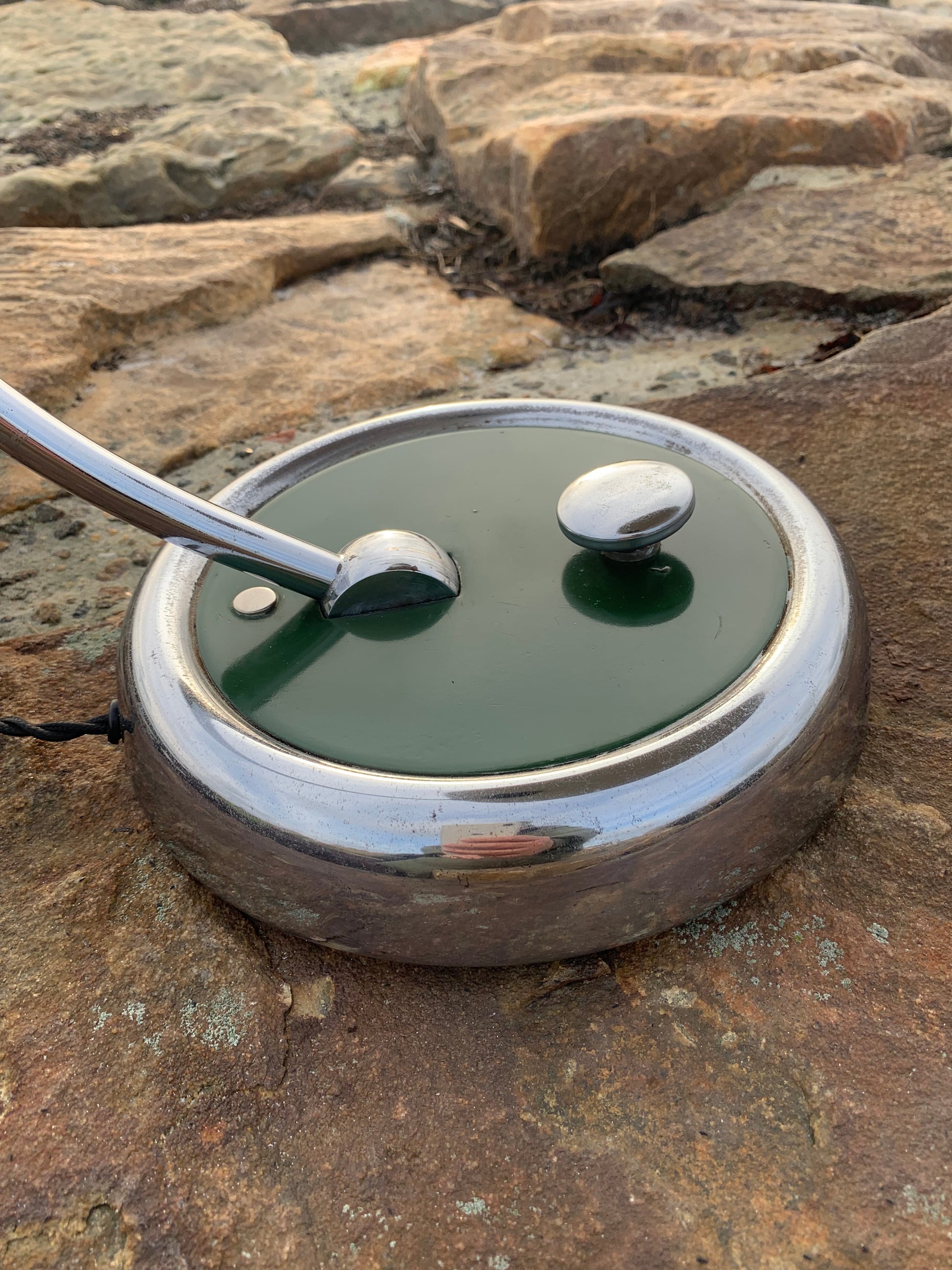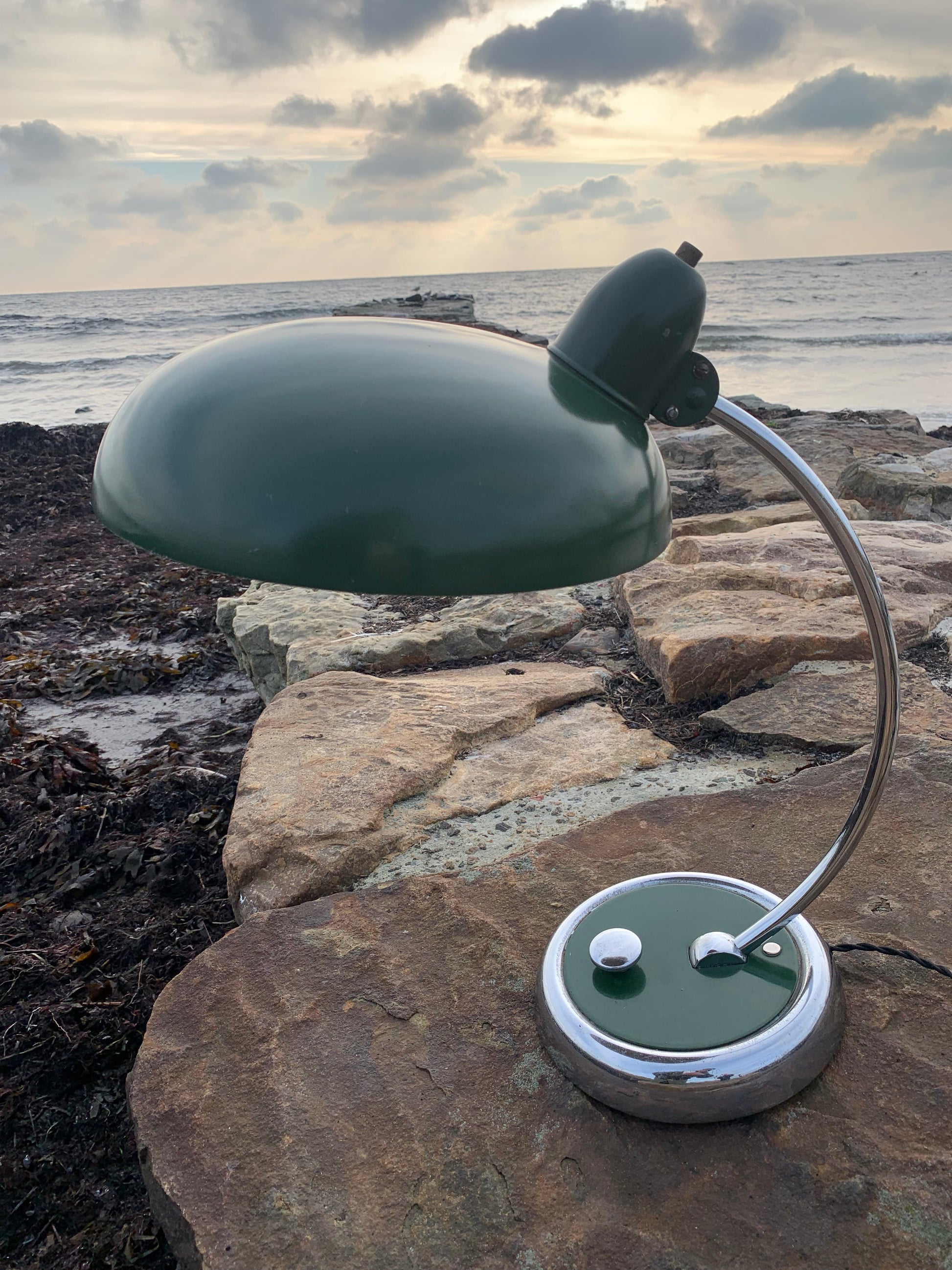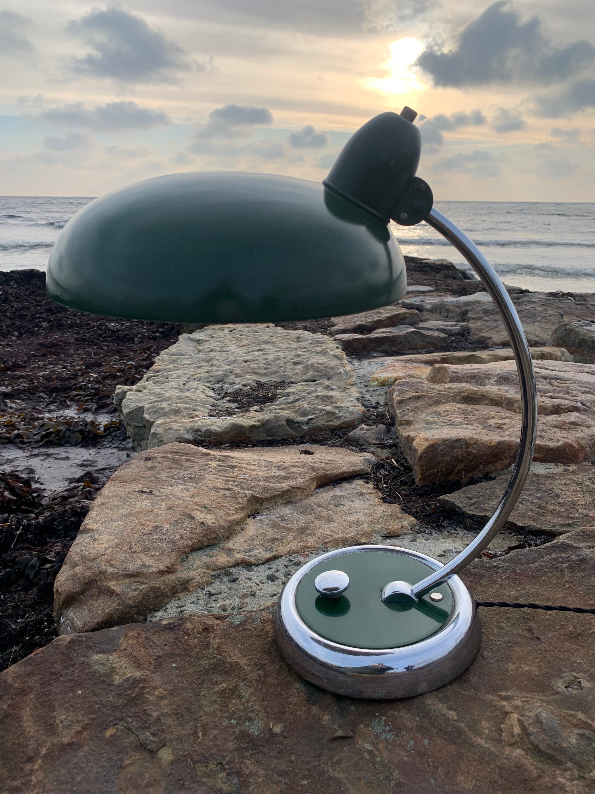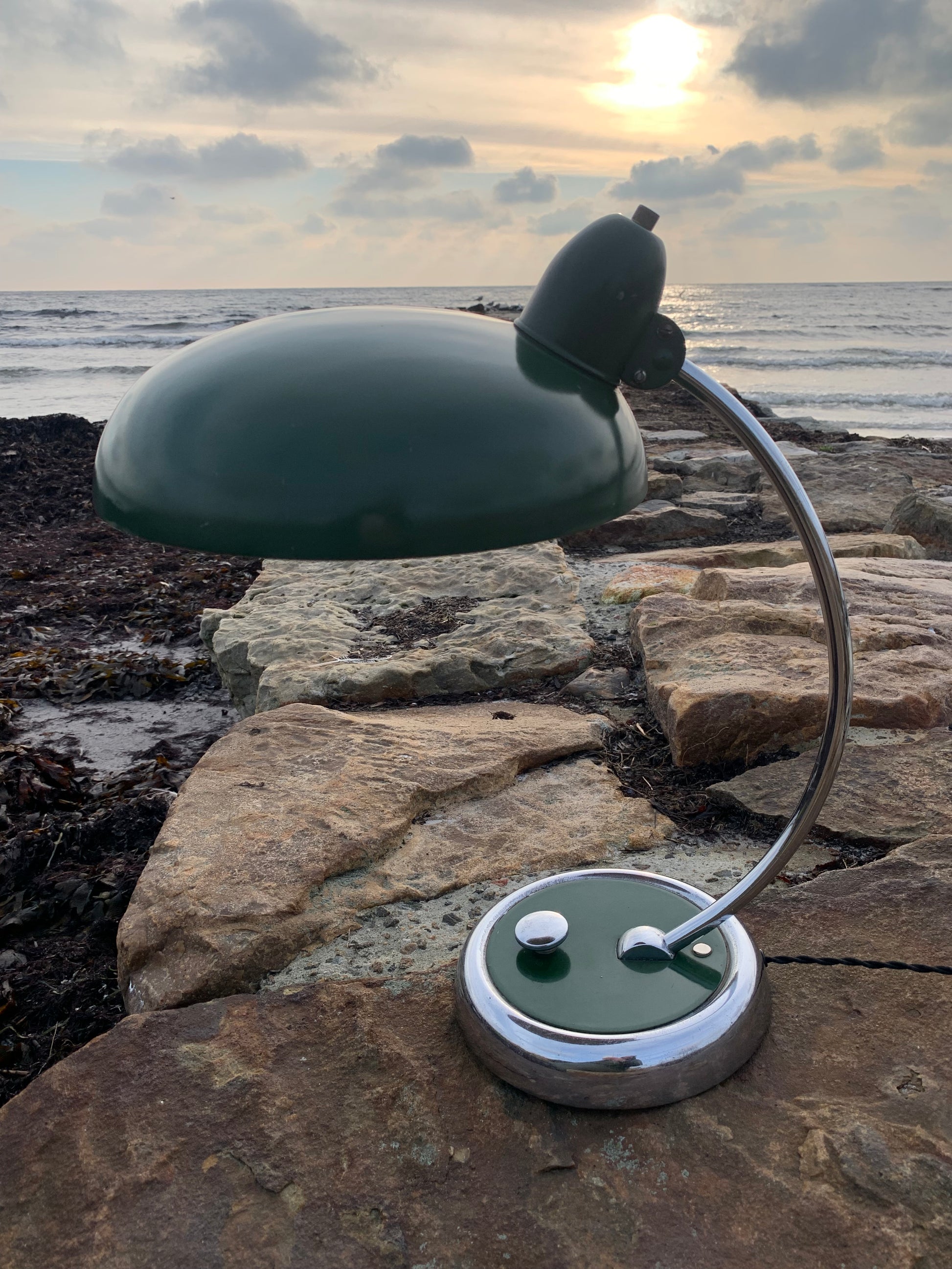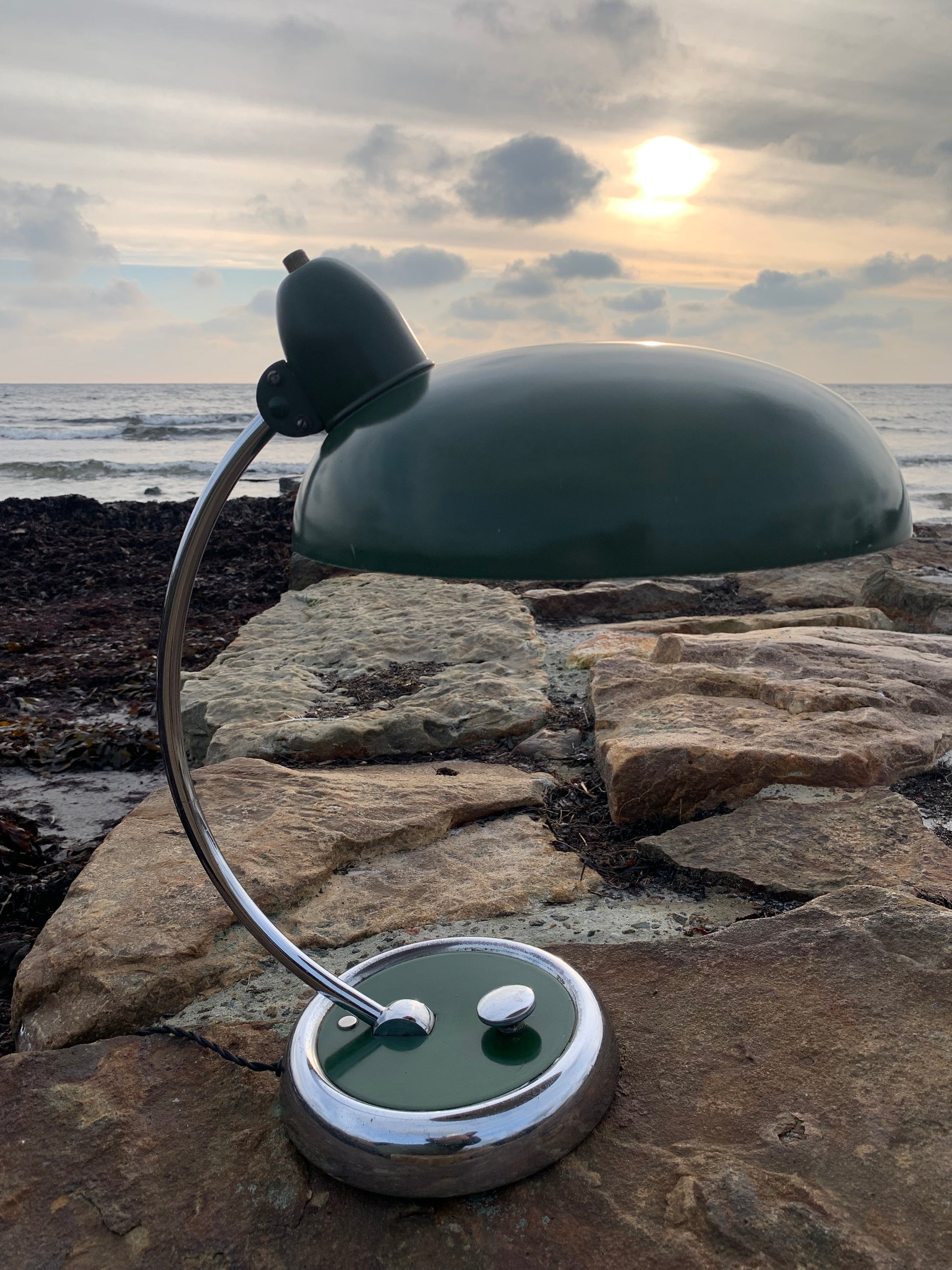Skøn lampe med original lak og smuk formgivning fra Escolux. Lampen er nykablet og fremstår med aldersrelaterede brugsspor på en meget charmerende måde.