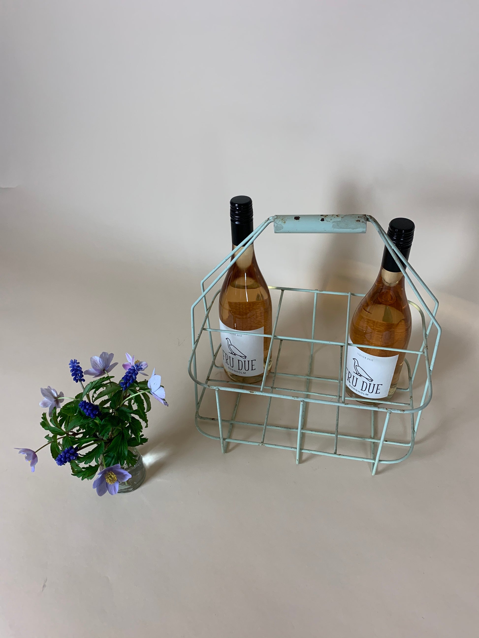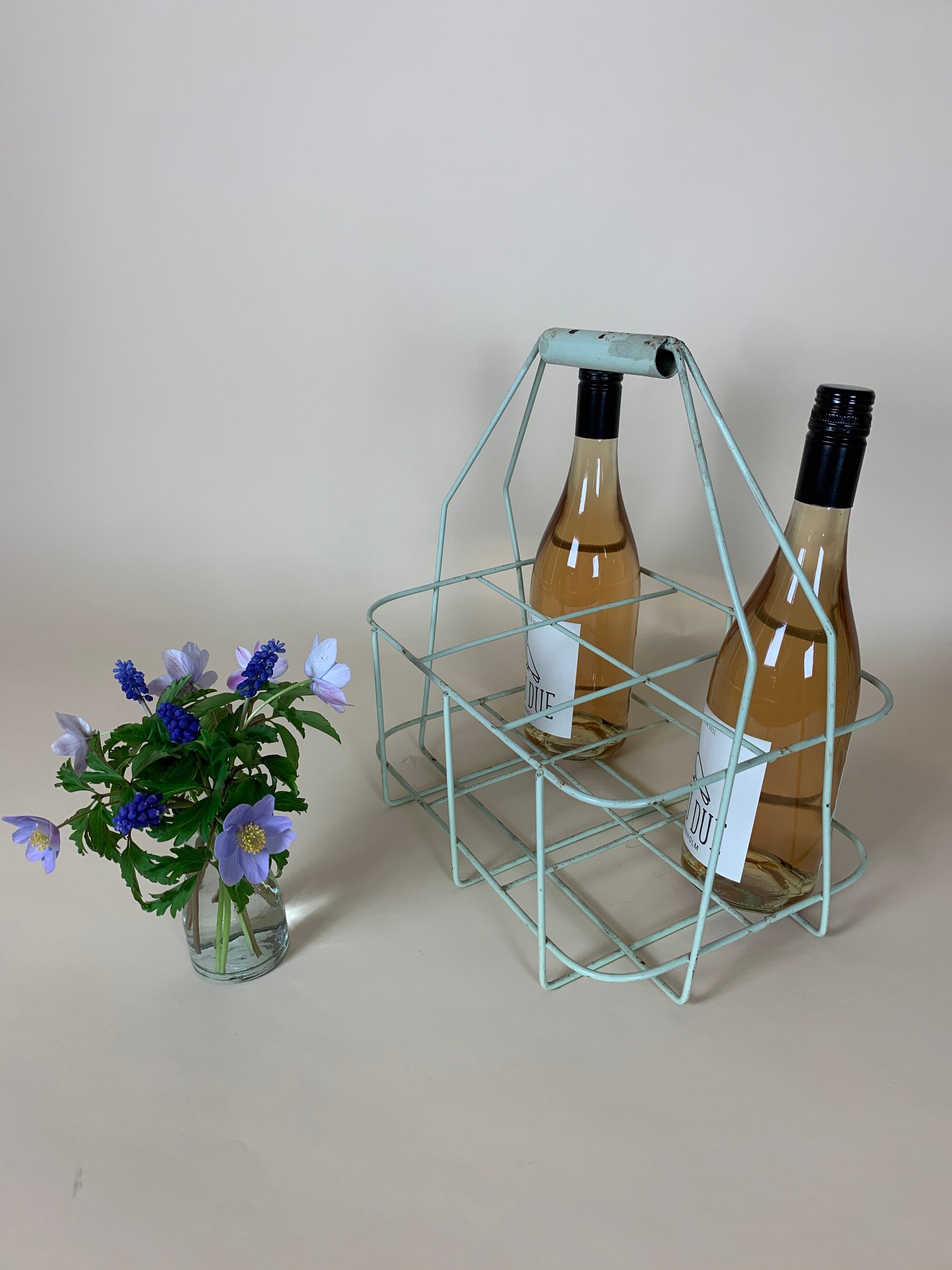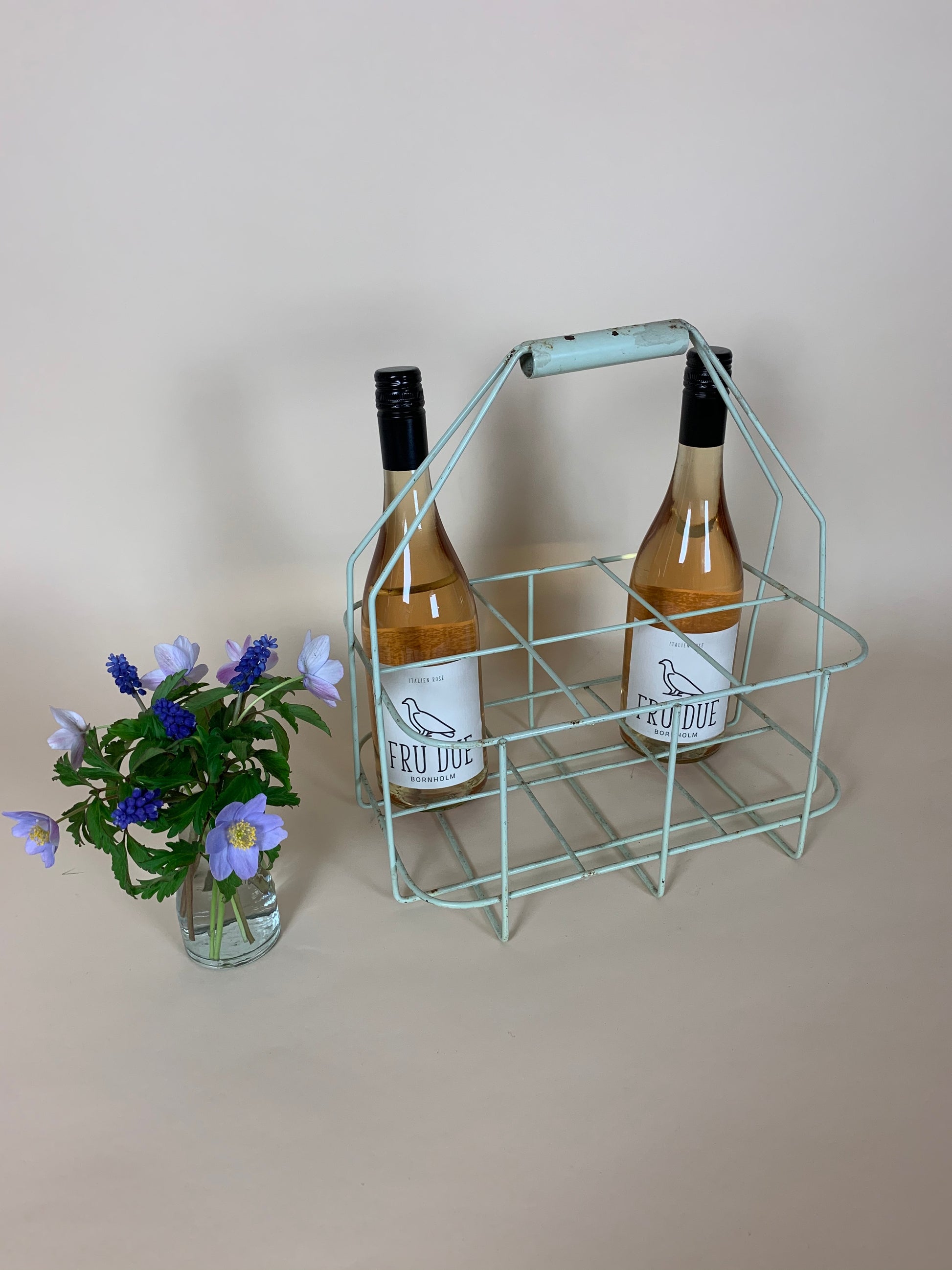 Pastelgrøn flaskeholder med plads til 6 flasker.