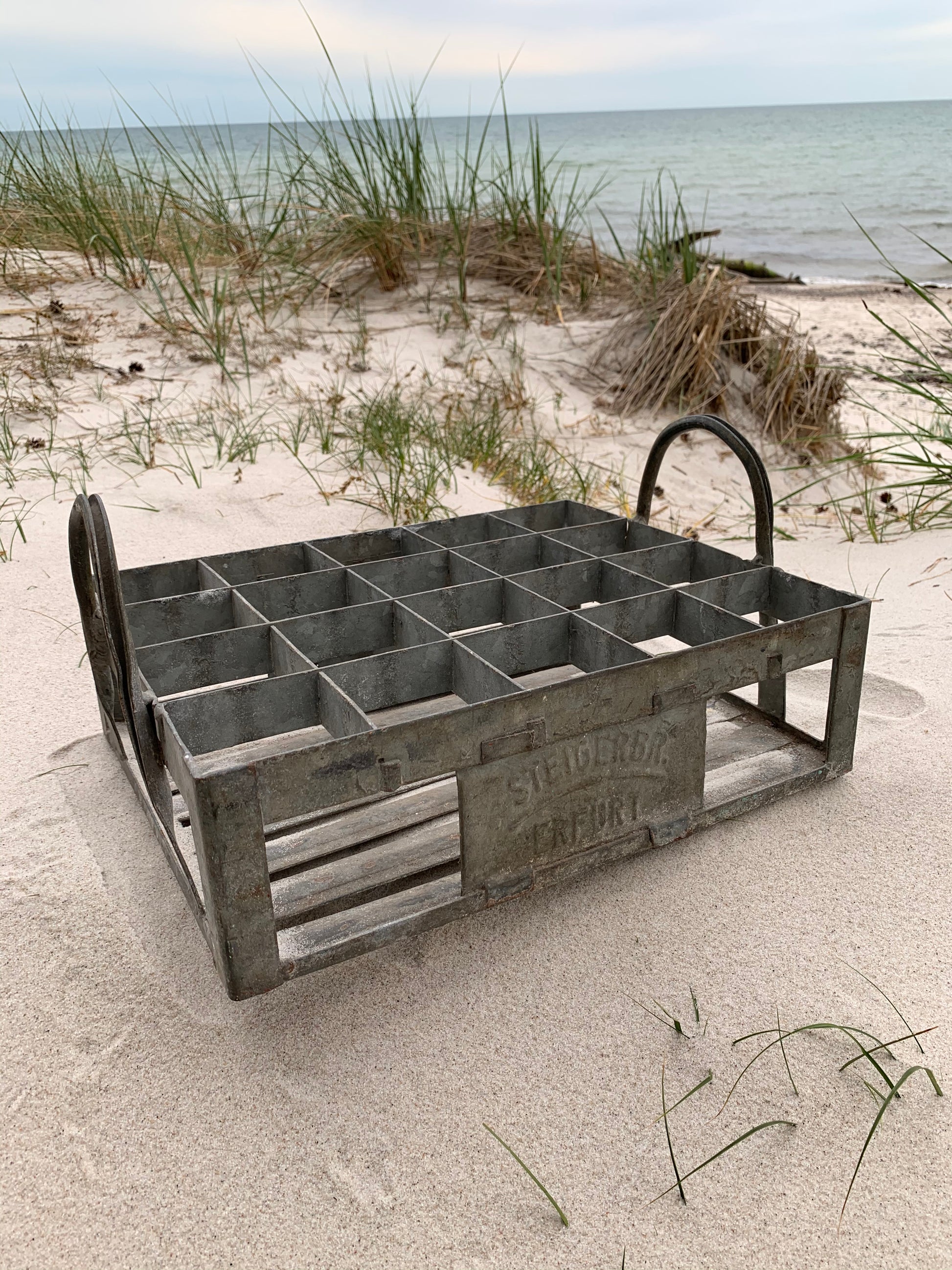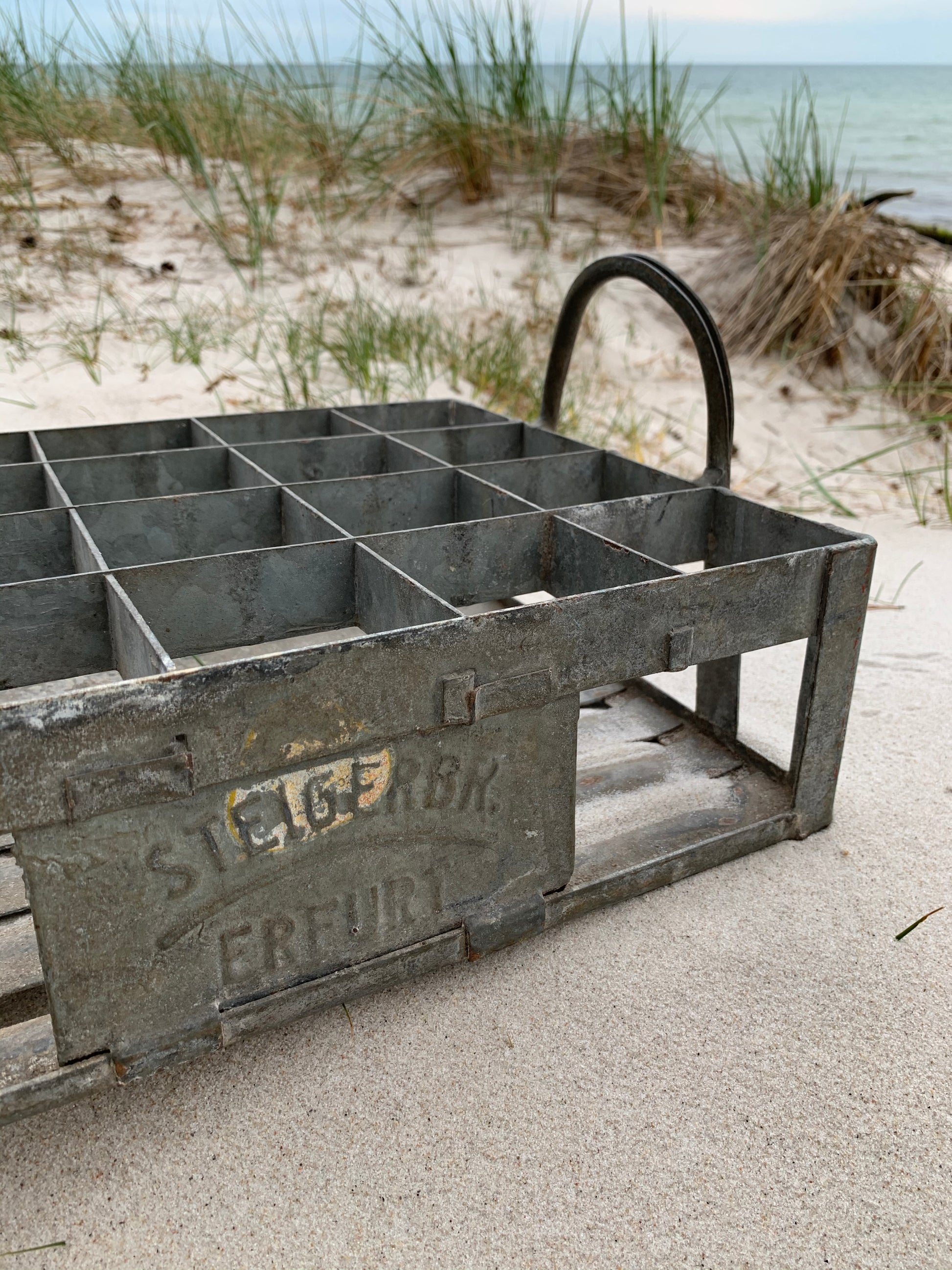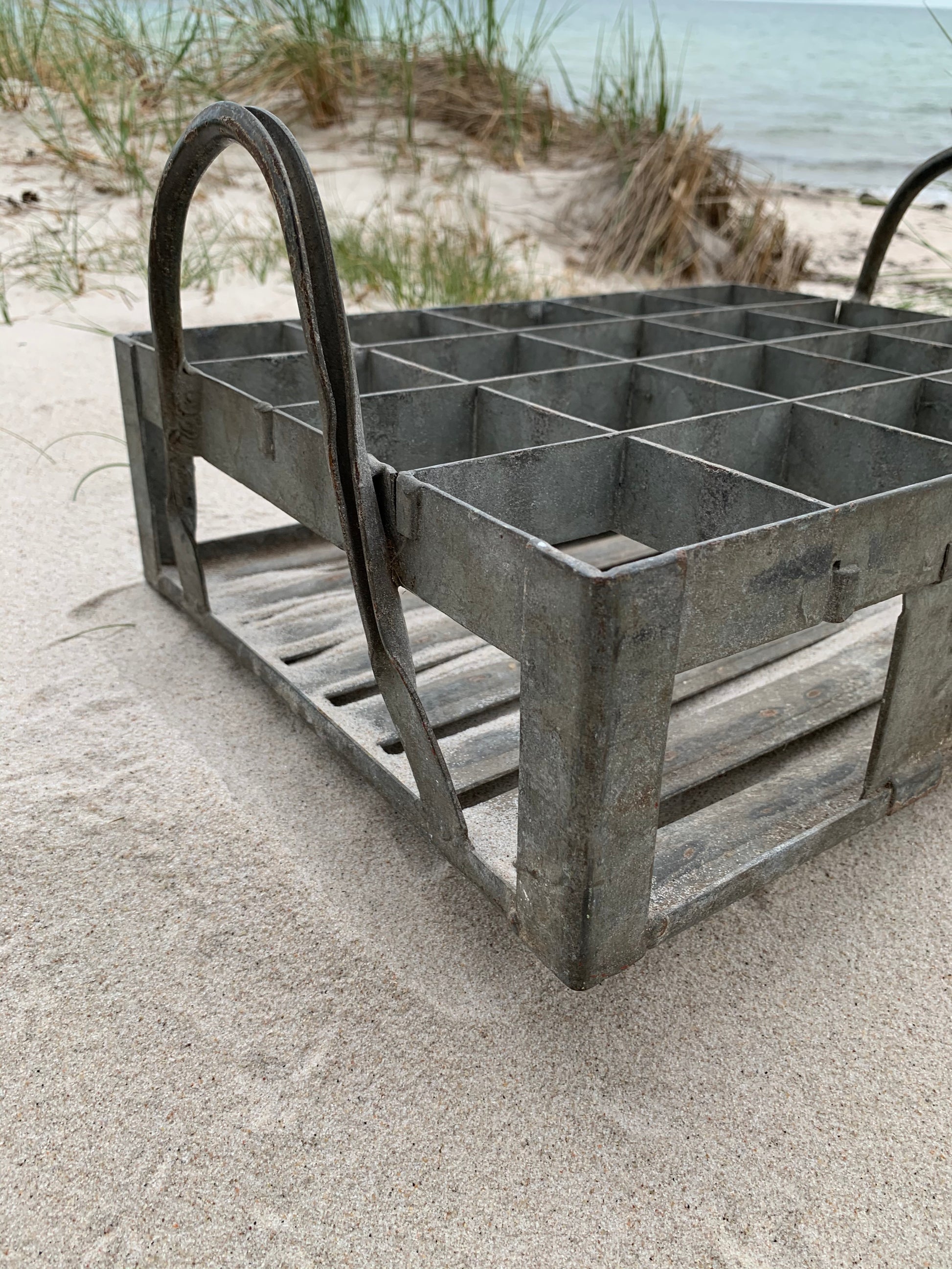 Skøn rå og tung flaskekasse i metal.