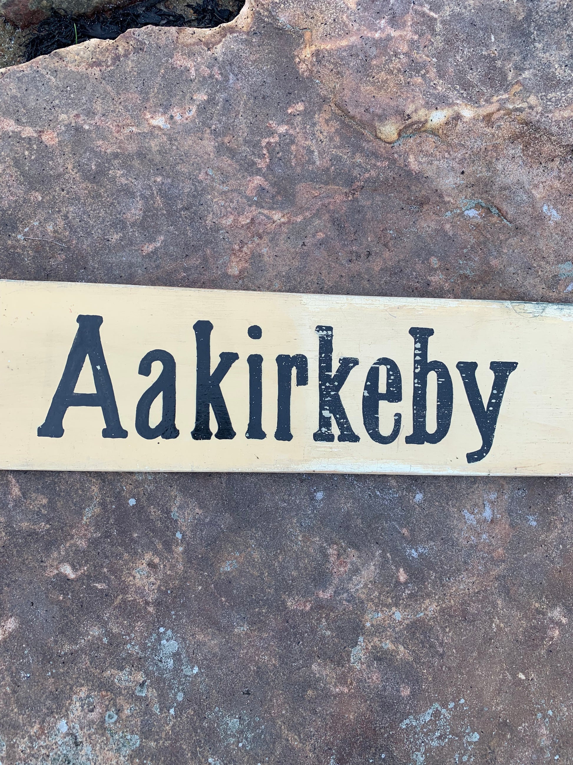 Gammelt bornholmsk skilt fra bus - Gudhjem/Aakrikeby