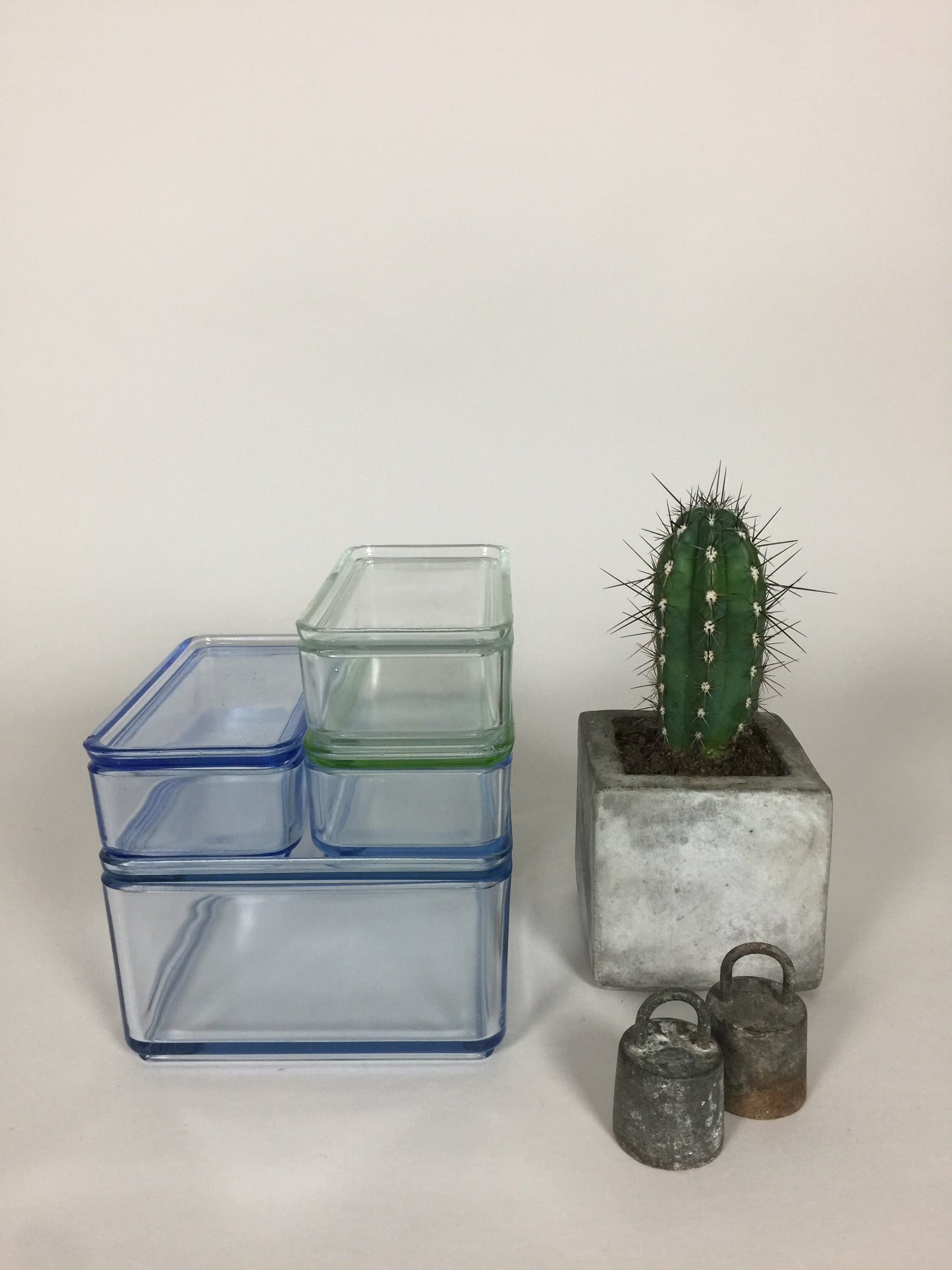 Historie: Disse gamle glas er en del af fortidens emballage. Der findes flere udgaver af dem, de hedder ofte Holmegaard, kubus eller Wagenfeld og er i dag blevet meget eftertragtede. Glassene kan stables og findes i flere størrelser.