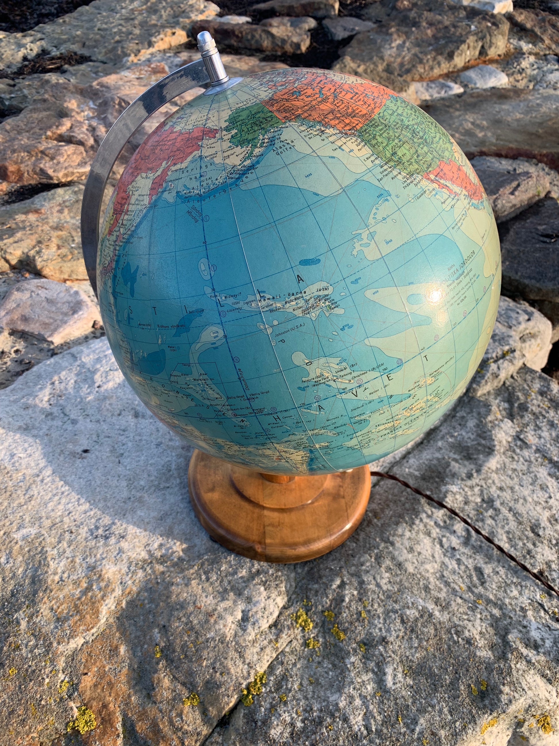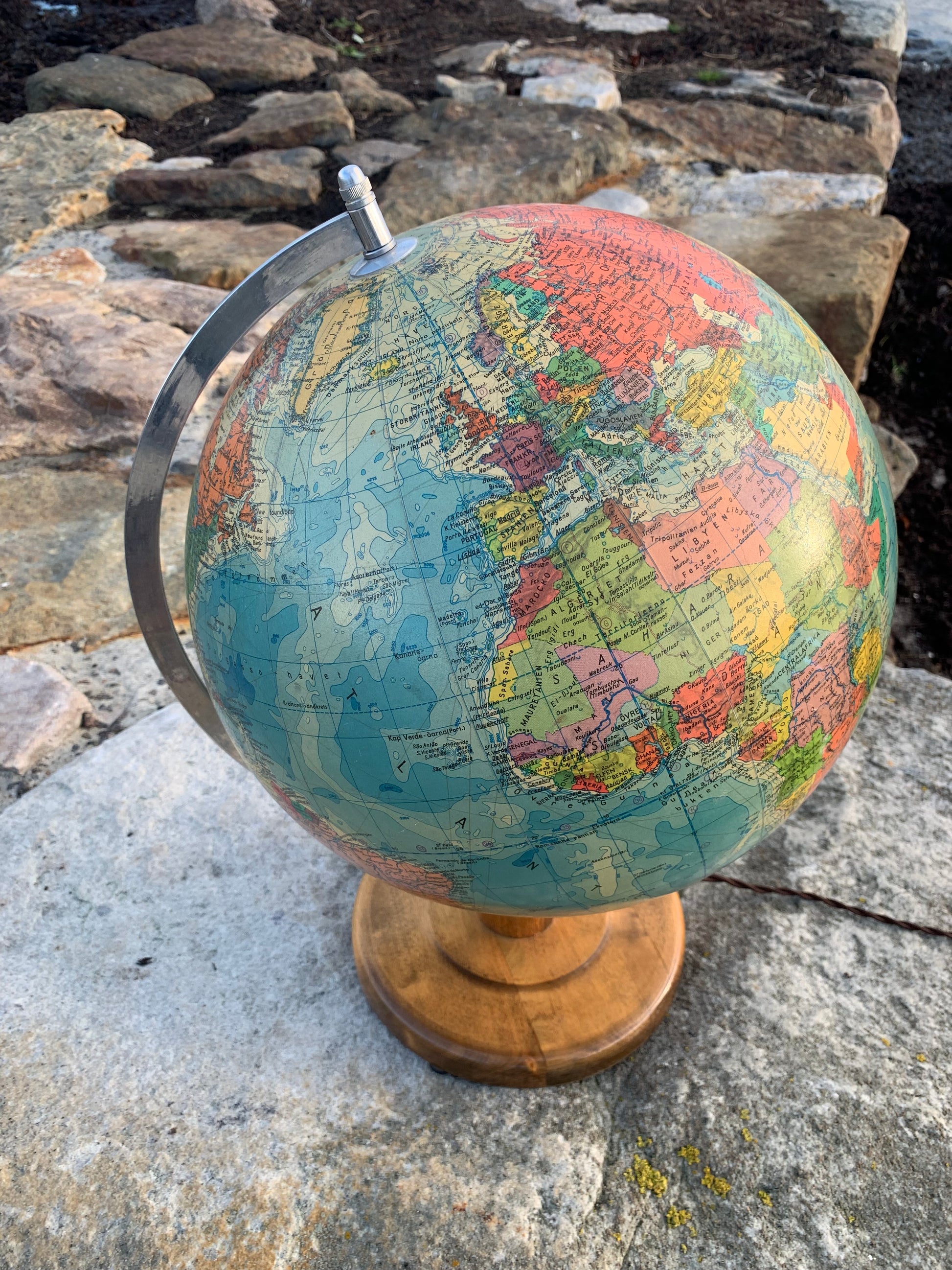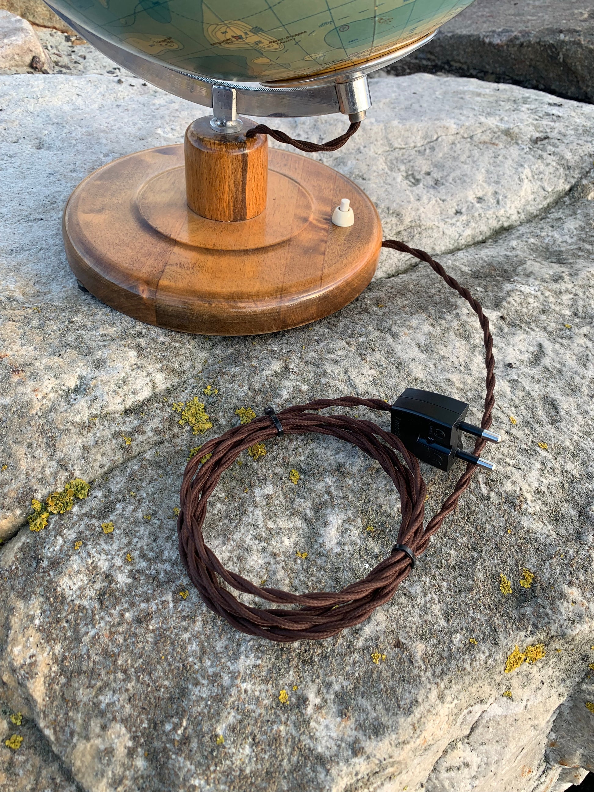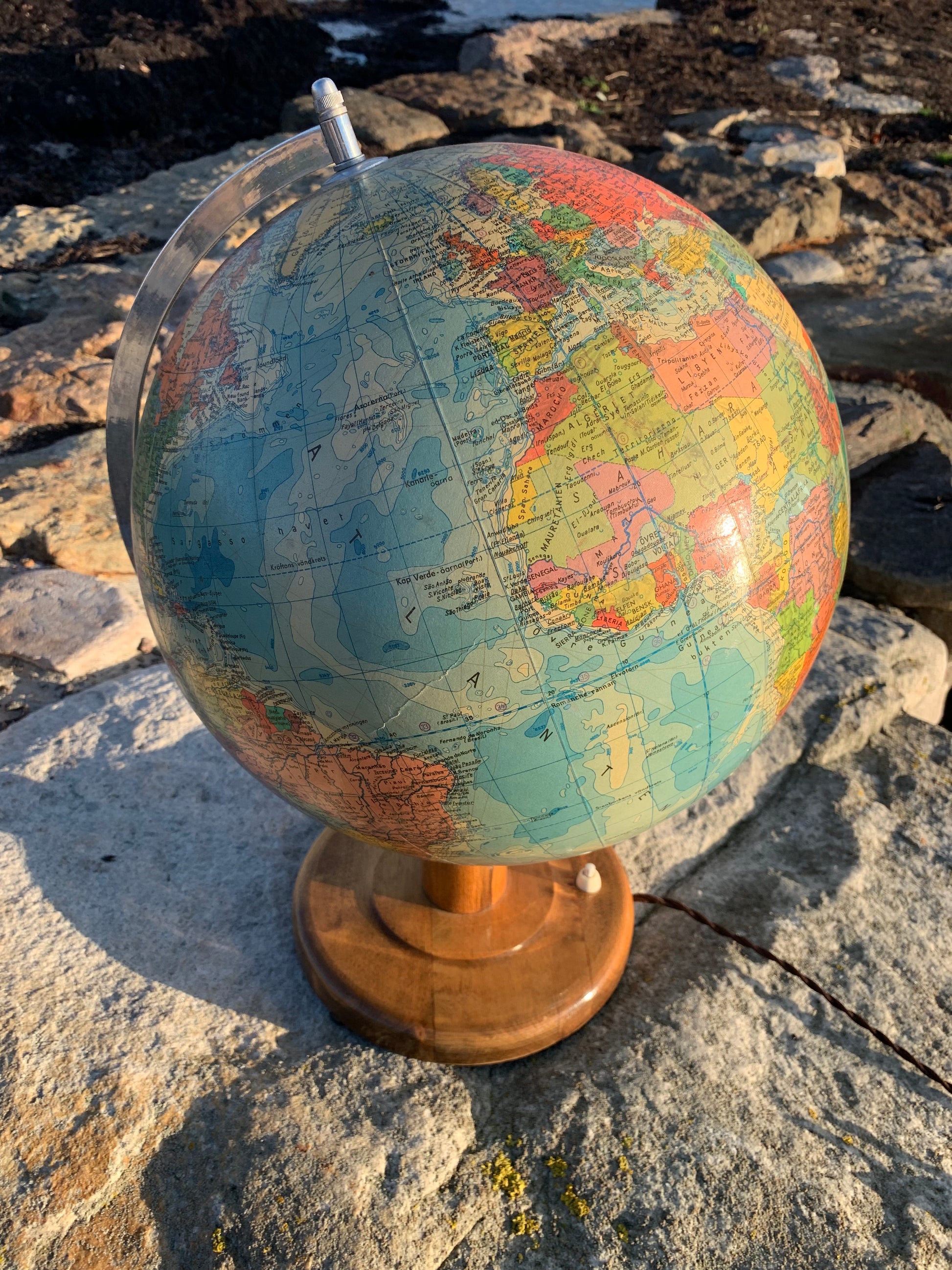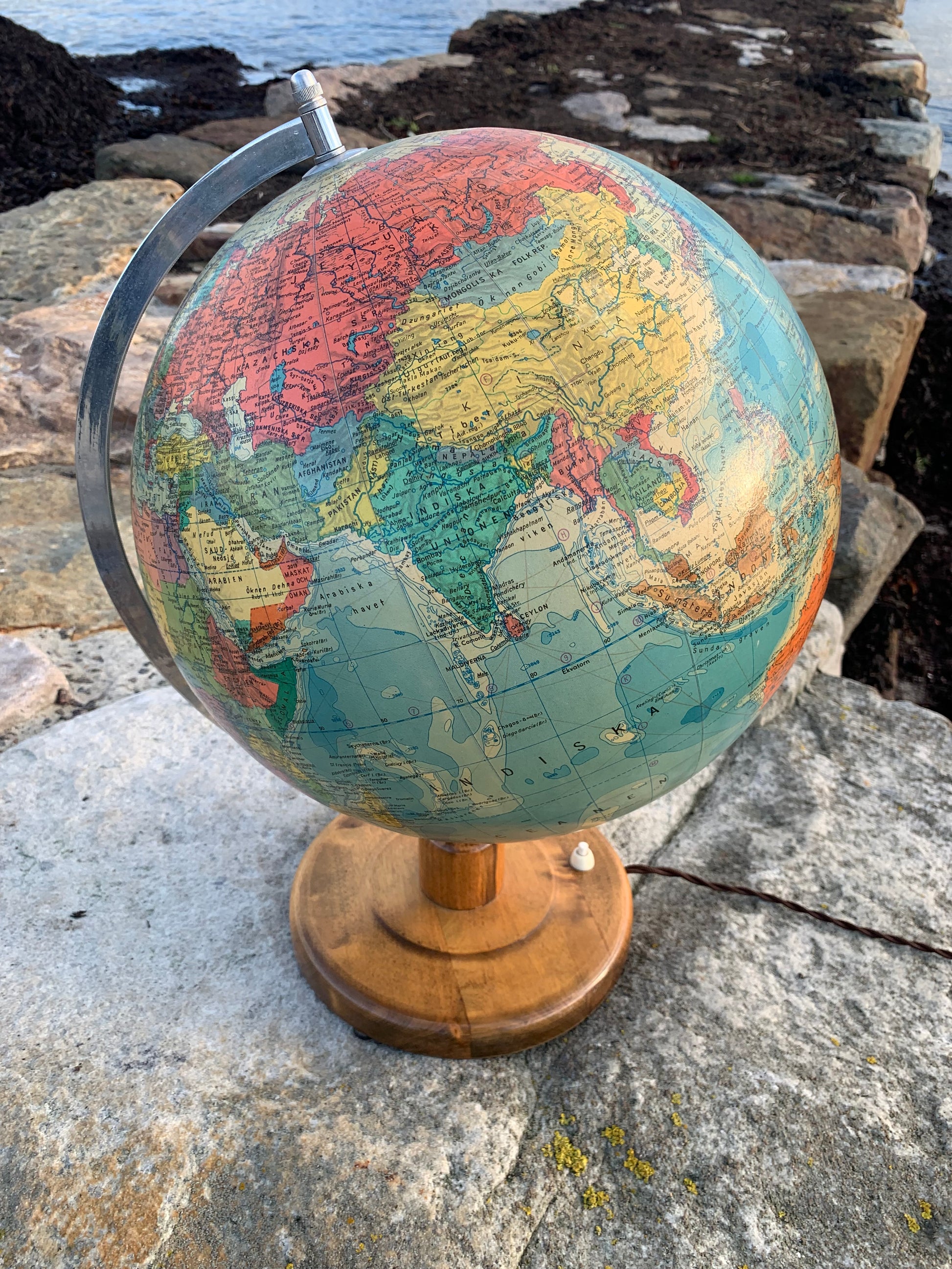 Fin gammel globus i glas. Tidens tand har bidt en smule i globusen der giver et flot lys når den er tændt.