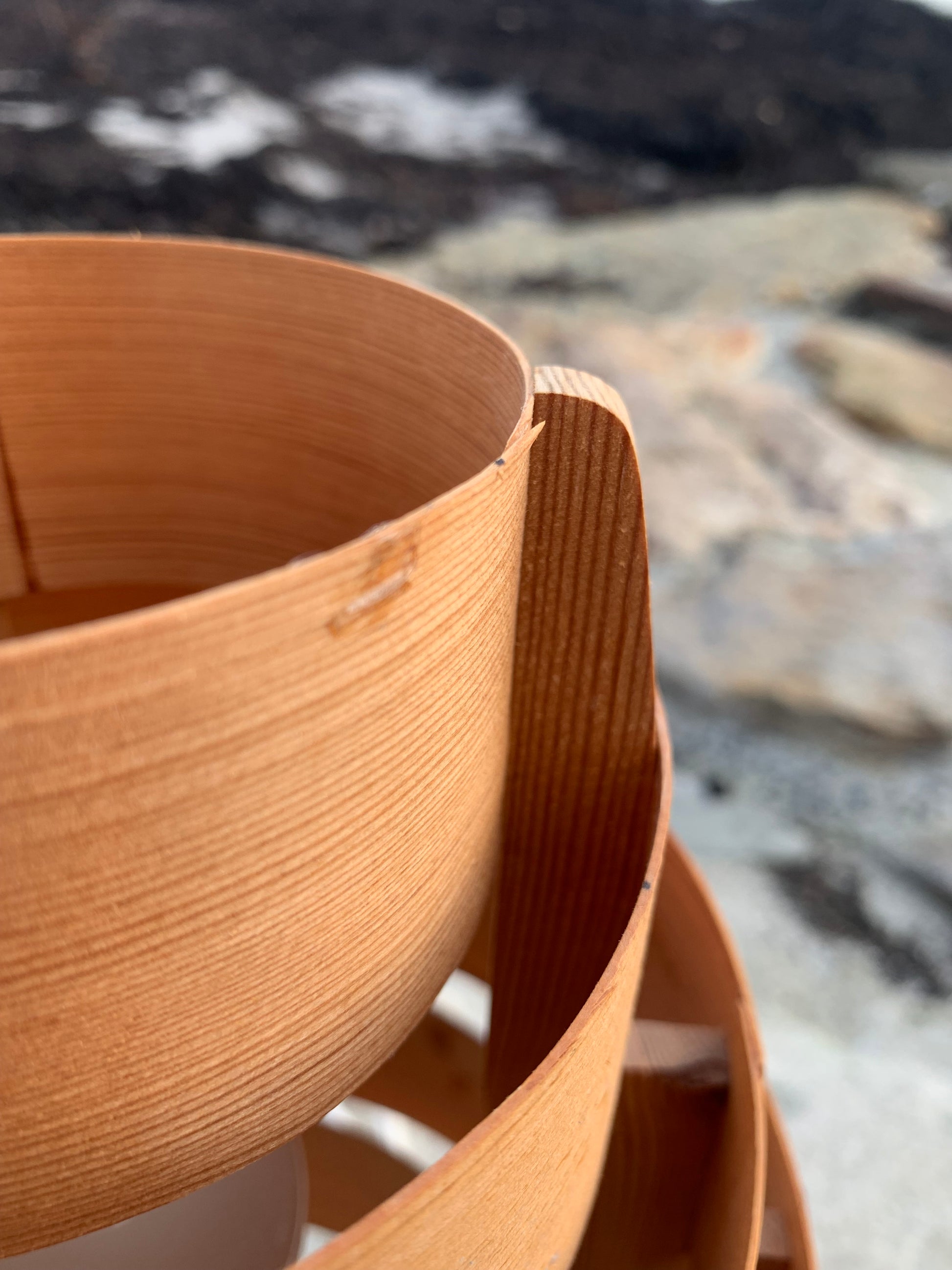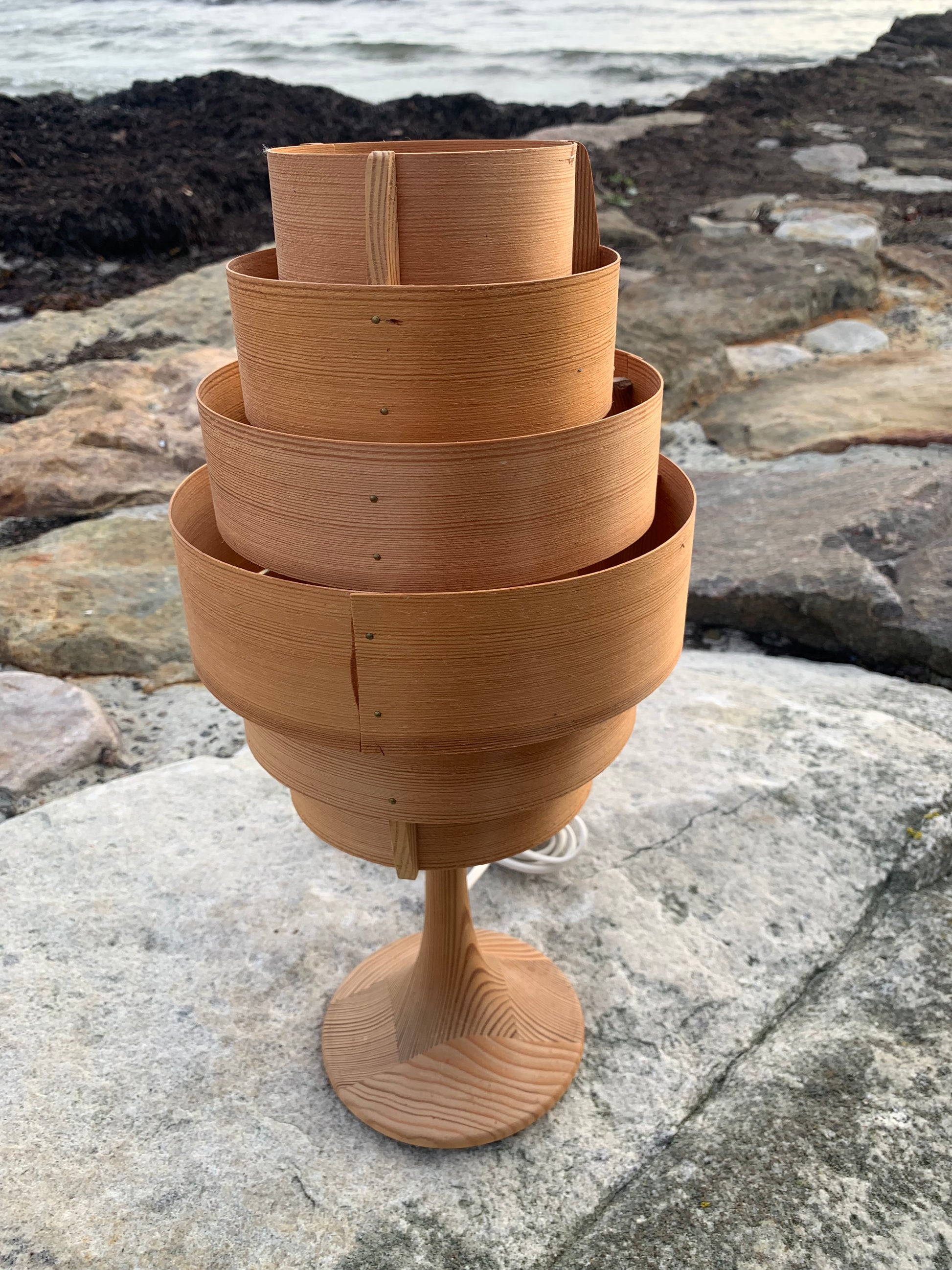 Fin spånlampe designet af Hans Agne Jakobsson. Lampen er i pæn vintagestand med få brugsspor. Den har en minimal flig der er gået af i toppen hvis den nærstuderes (se foto) Dette er dog ikke noget der syner meget.