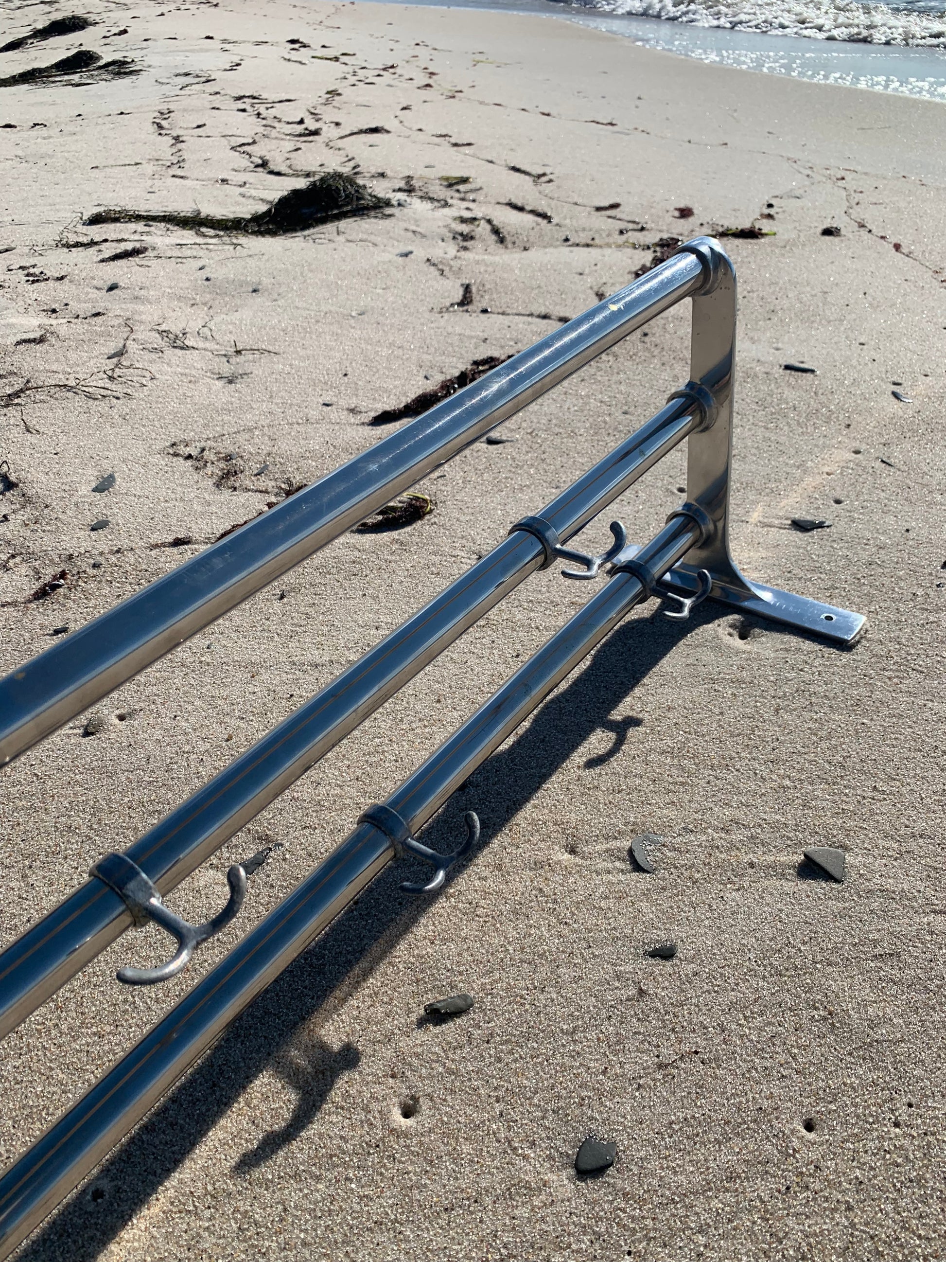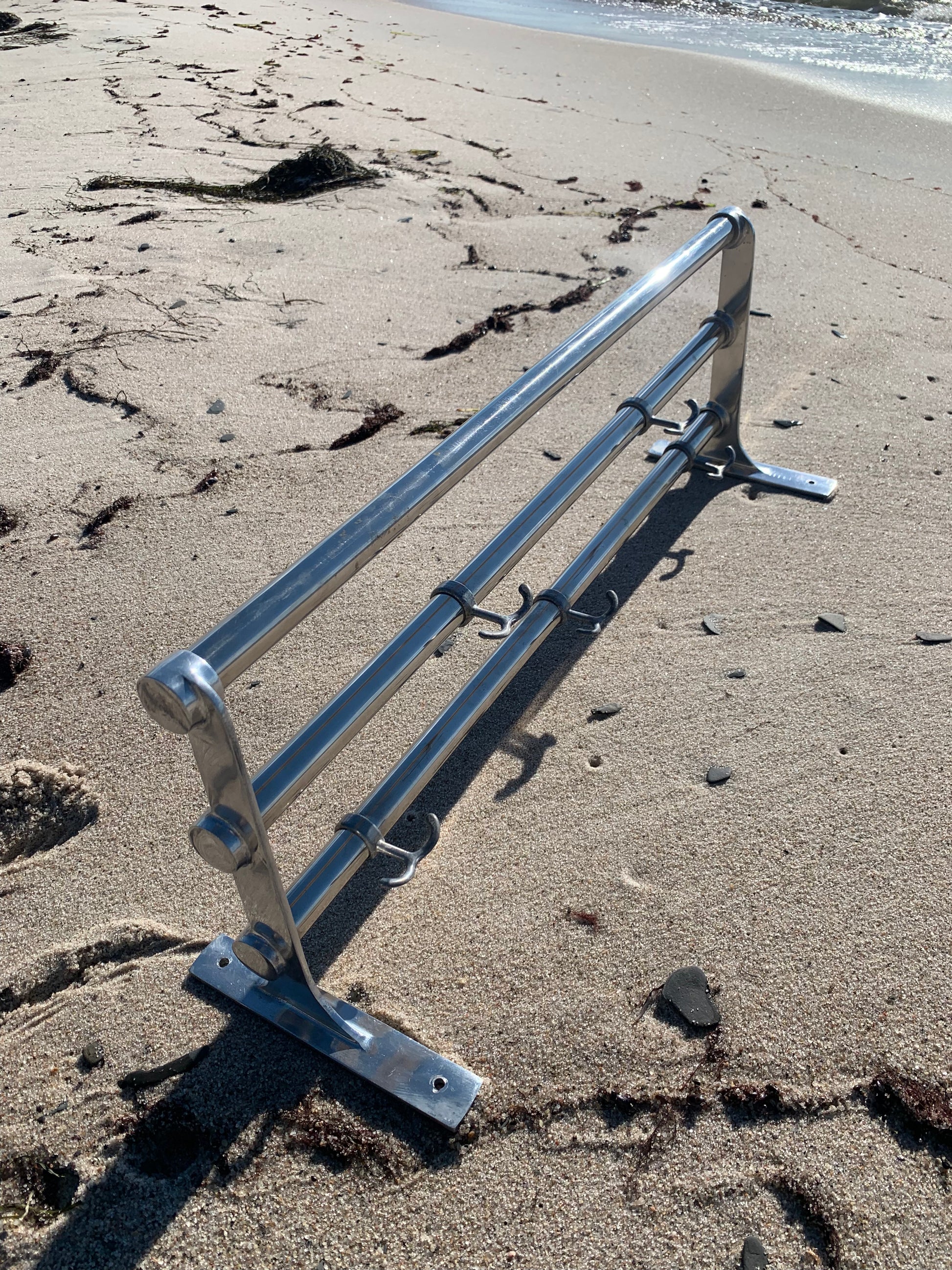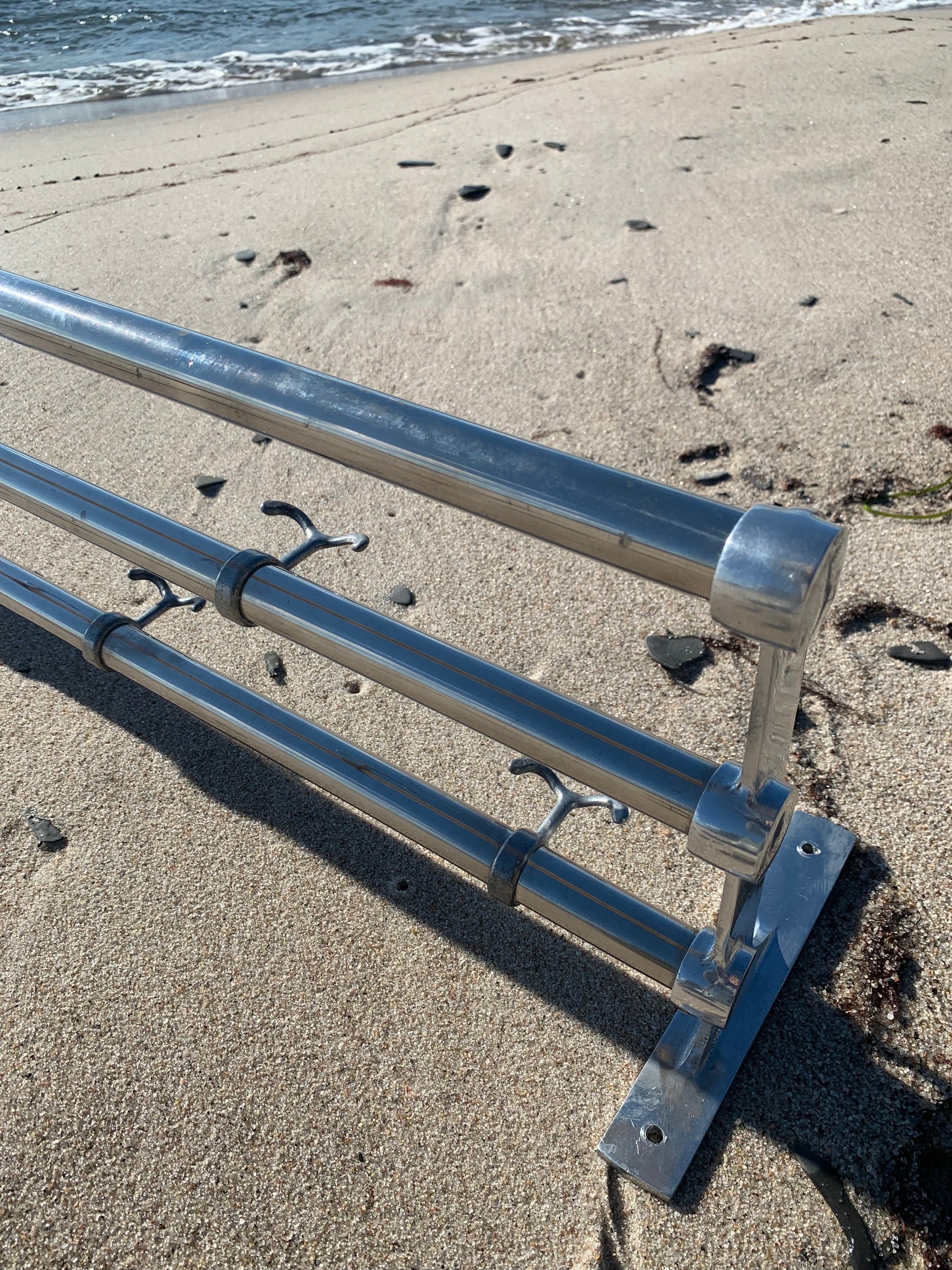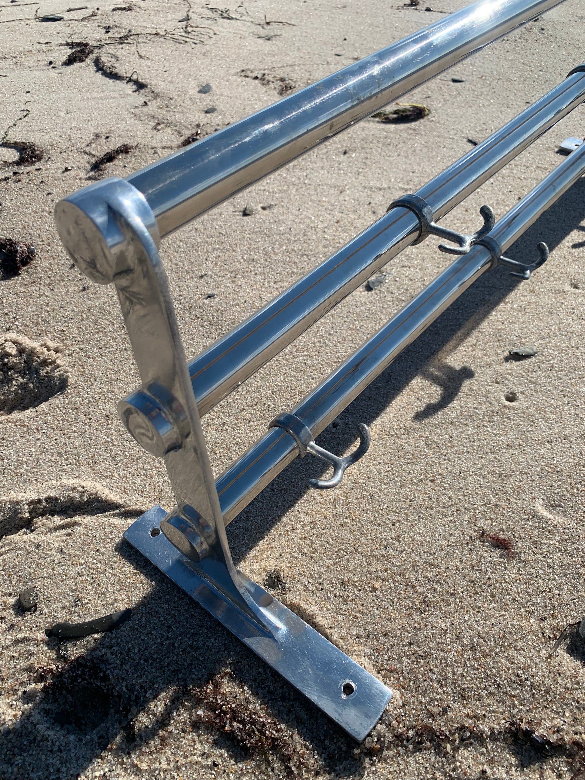 Skøn svensk hattehylde i godt design. Tidens tand har bidt i den således at den fremstår med aldersrelaterede brugsspor, der blot vidner om at nogen sandsynligvis har været glade for den.