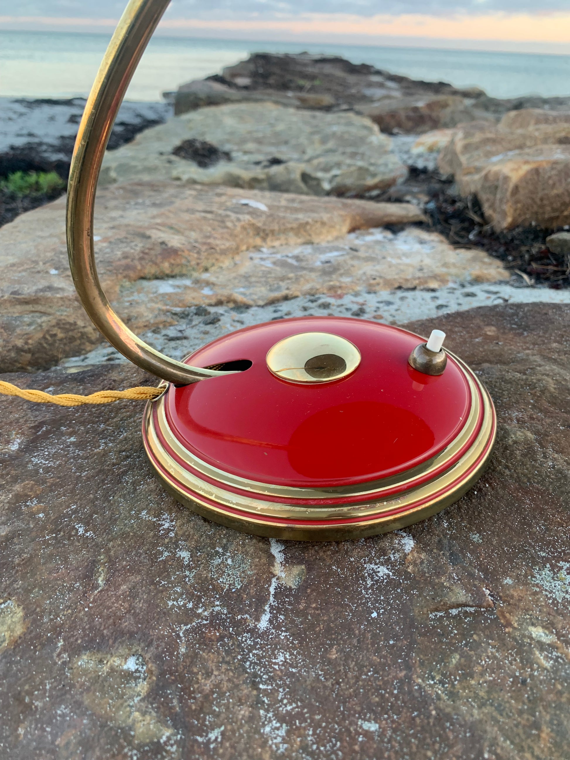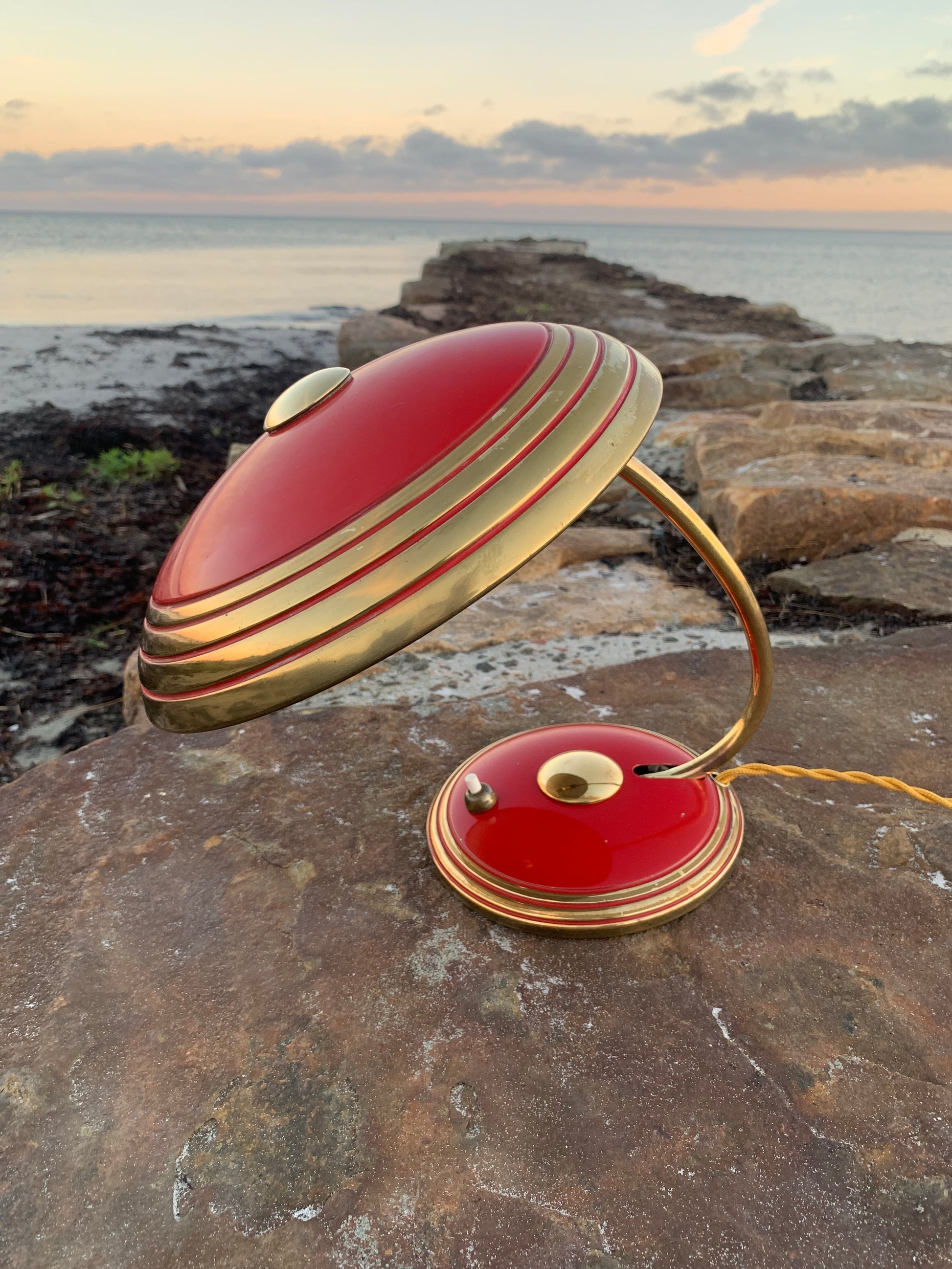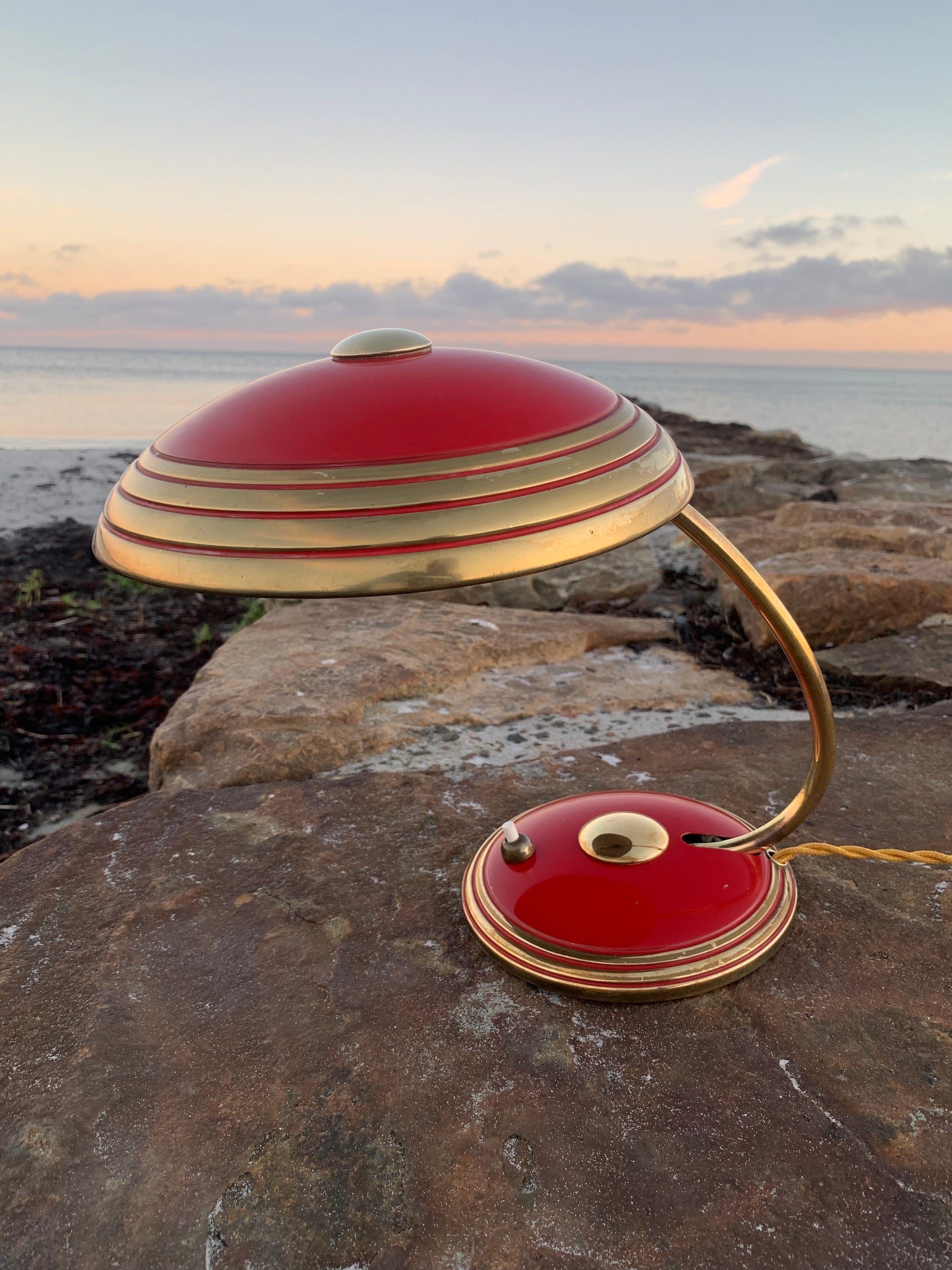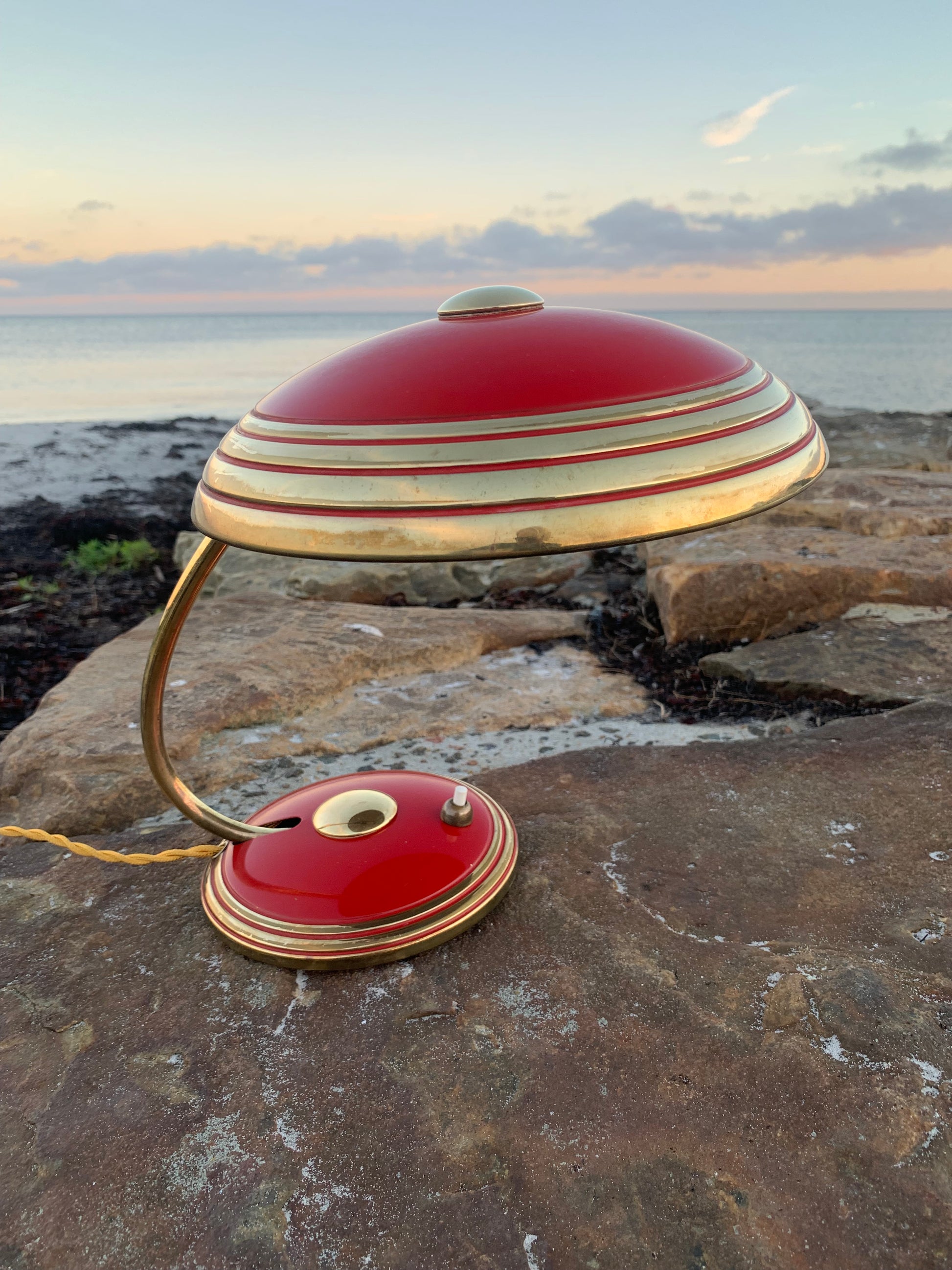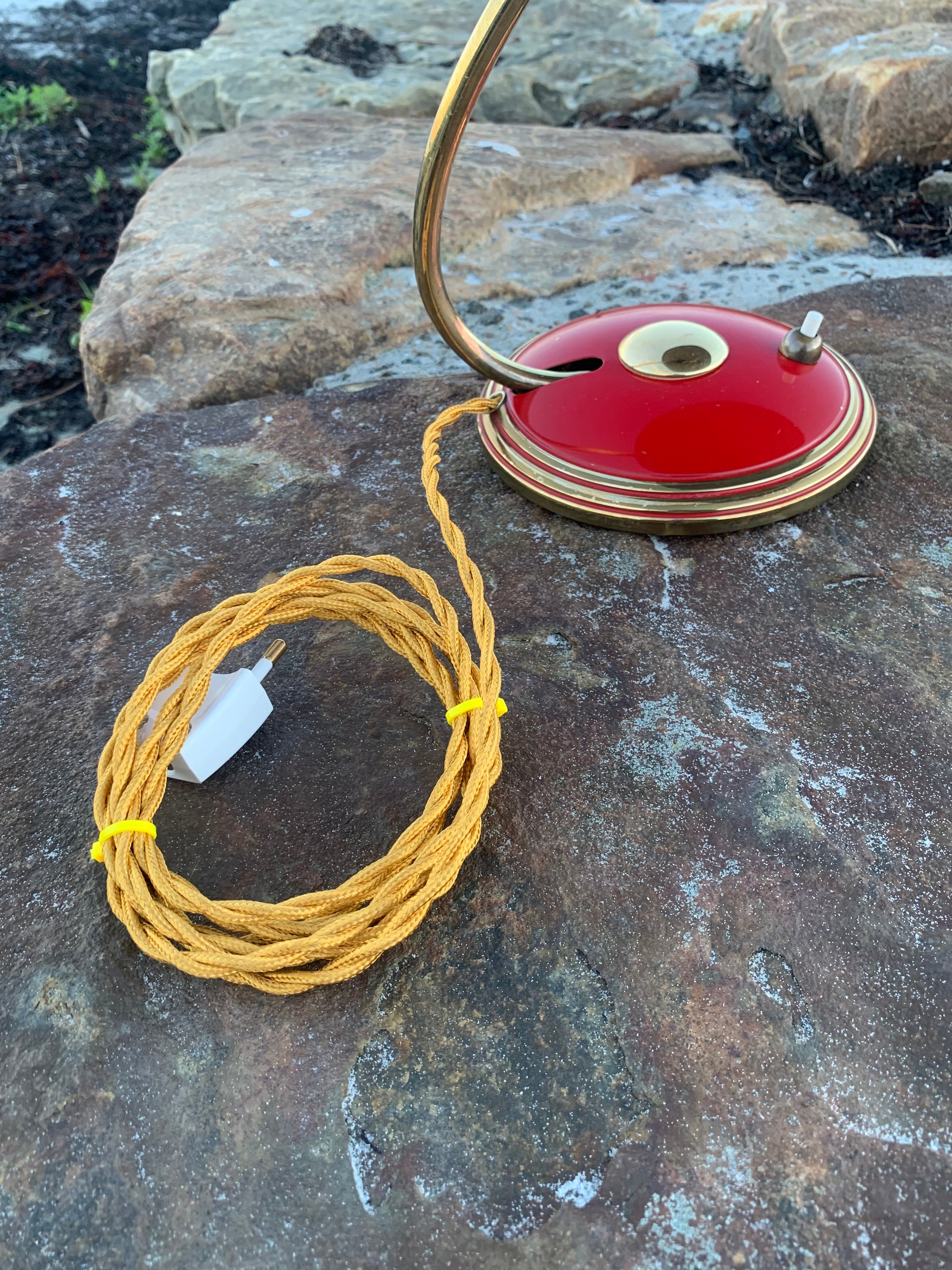 Flot Helo vintagelampe. Lampen der er nykablet, har en smule aldersrelaterede brugsspor som sådan en lampe (efter vores smag) nærmest bør have. Dette vidner blot om originalitet og om at lampen har mange årtier bag sig. Dette eksemplar er sandsynligvis fra 1950’erne.