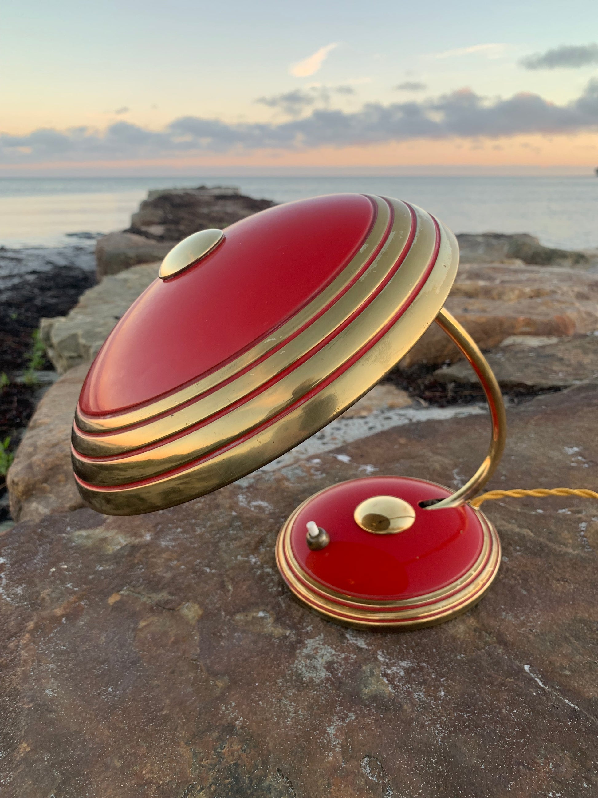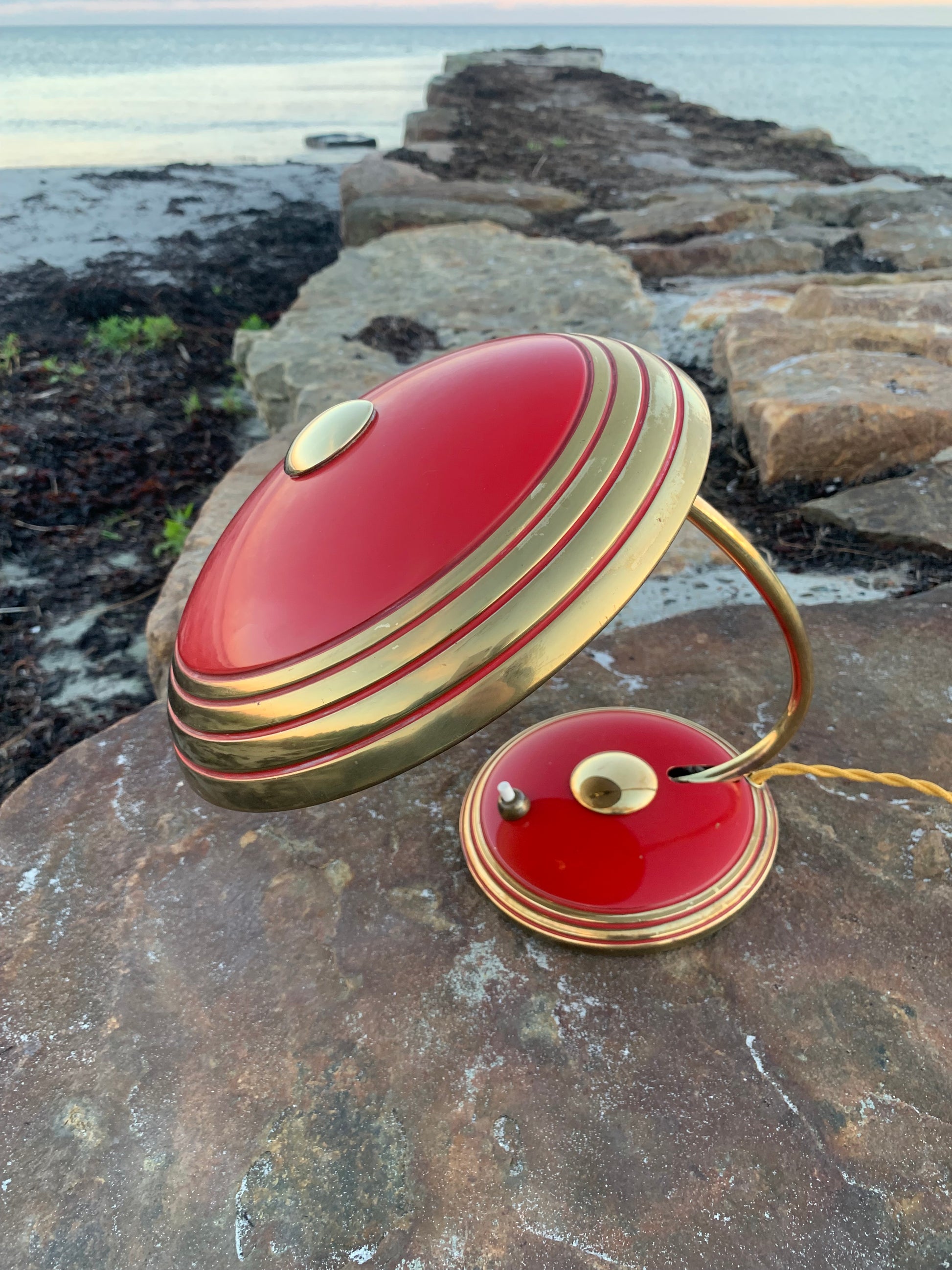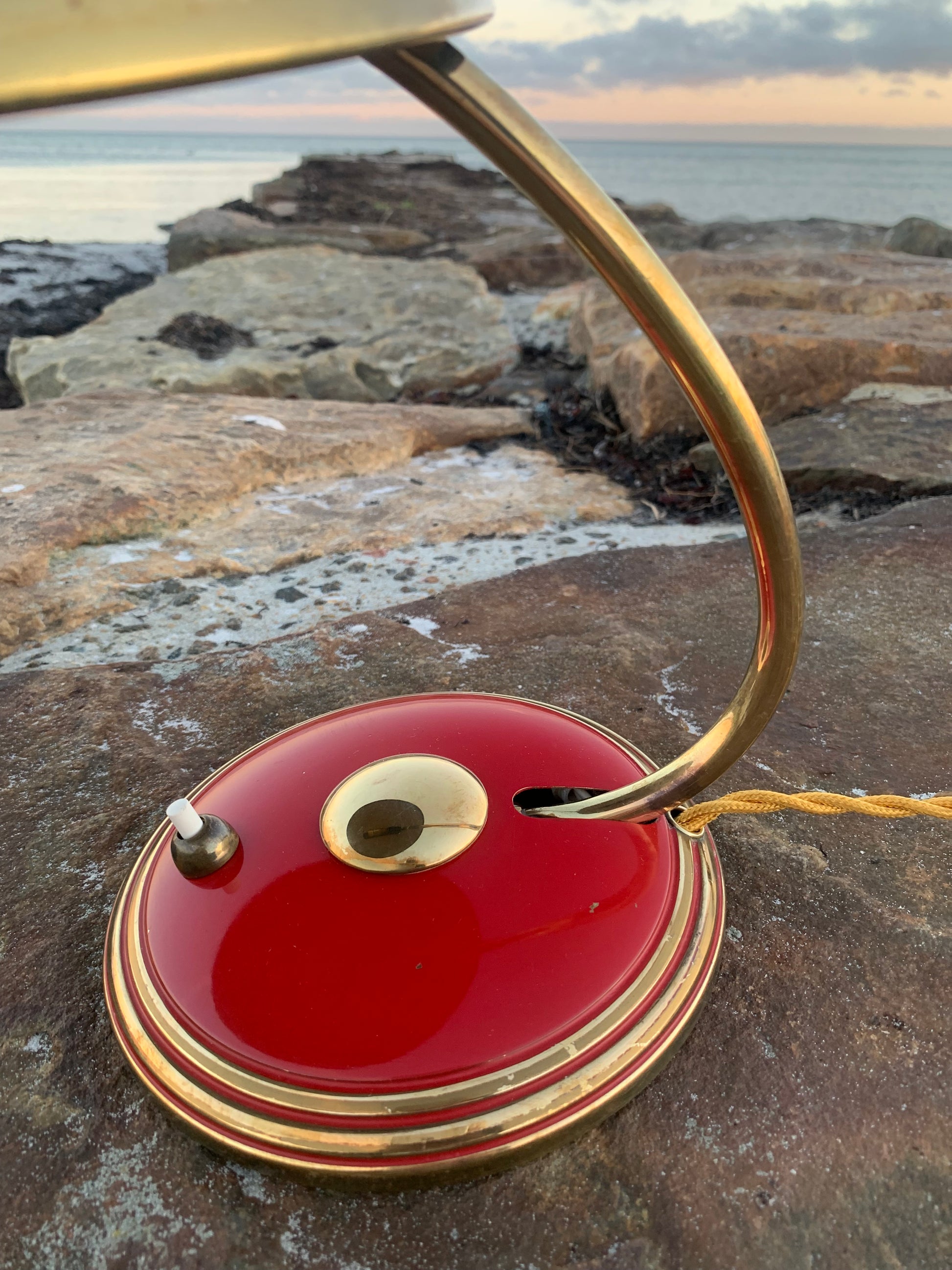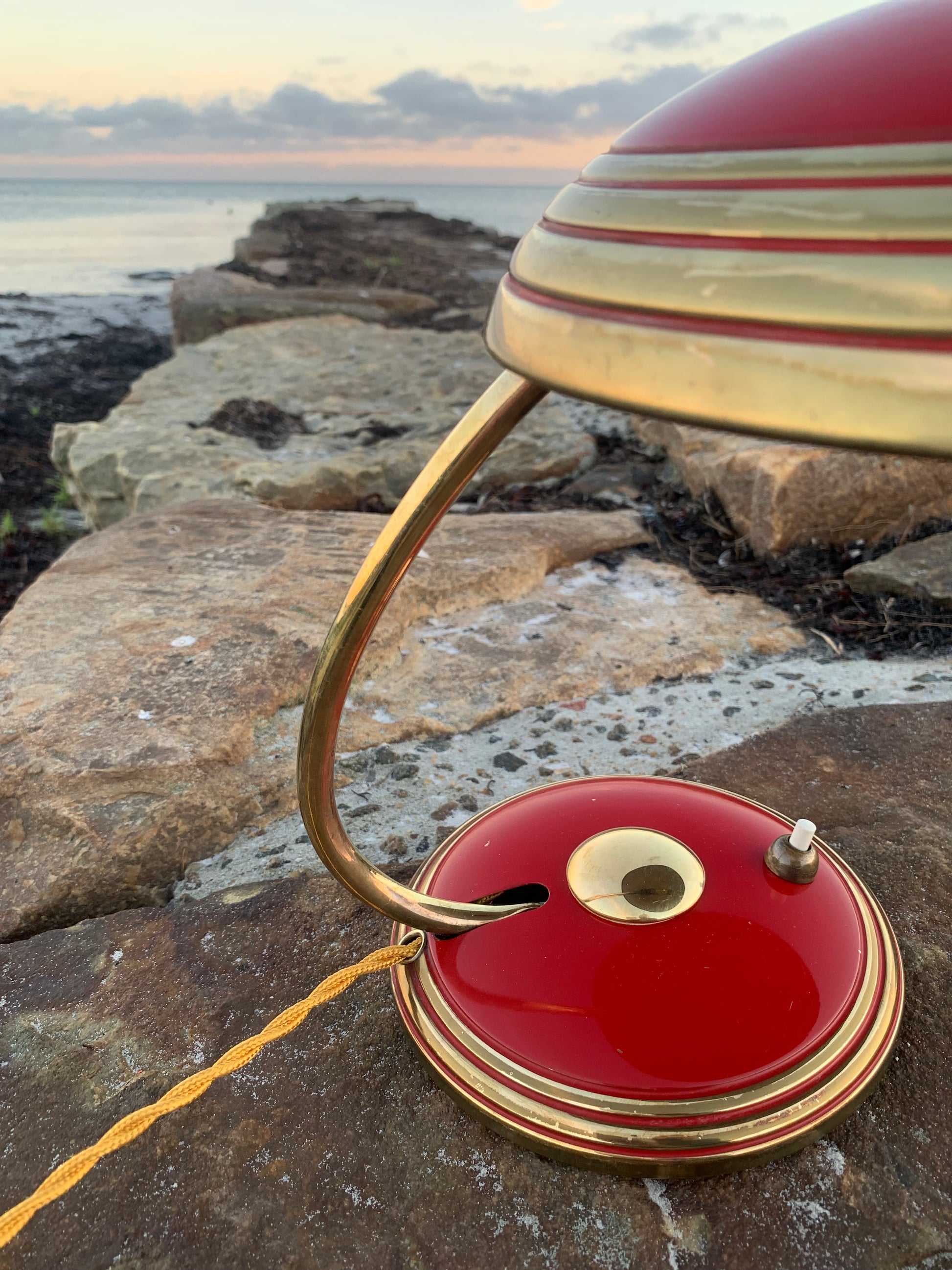 Flot Helo vintagelampe. Lampen der er nykablet, har en smule aldersrelaterede brugsspor som sådan en lampe (efter vores smag) nærmest bør have. Dette vidner blot om originalitet og om at lampen har mange årtier bag sig. Dette eksemplar er sandsynligvis fra 1950’erne.