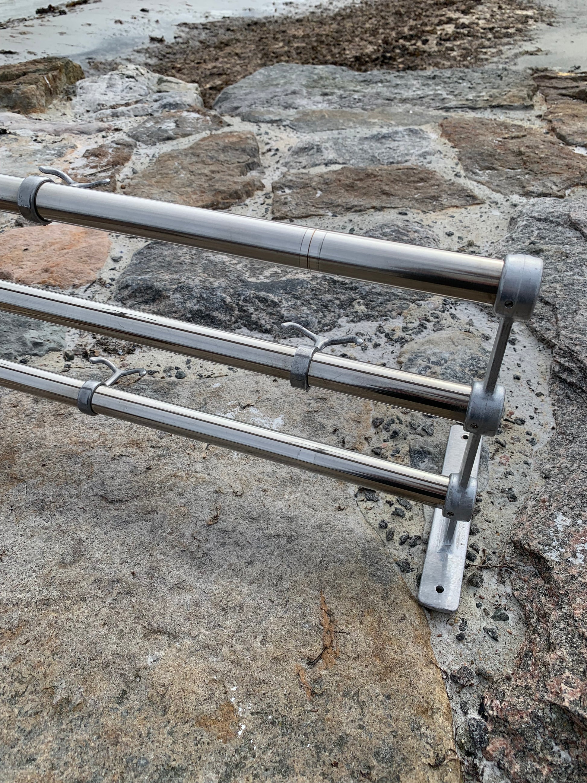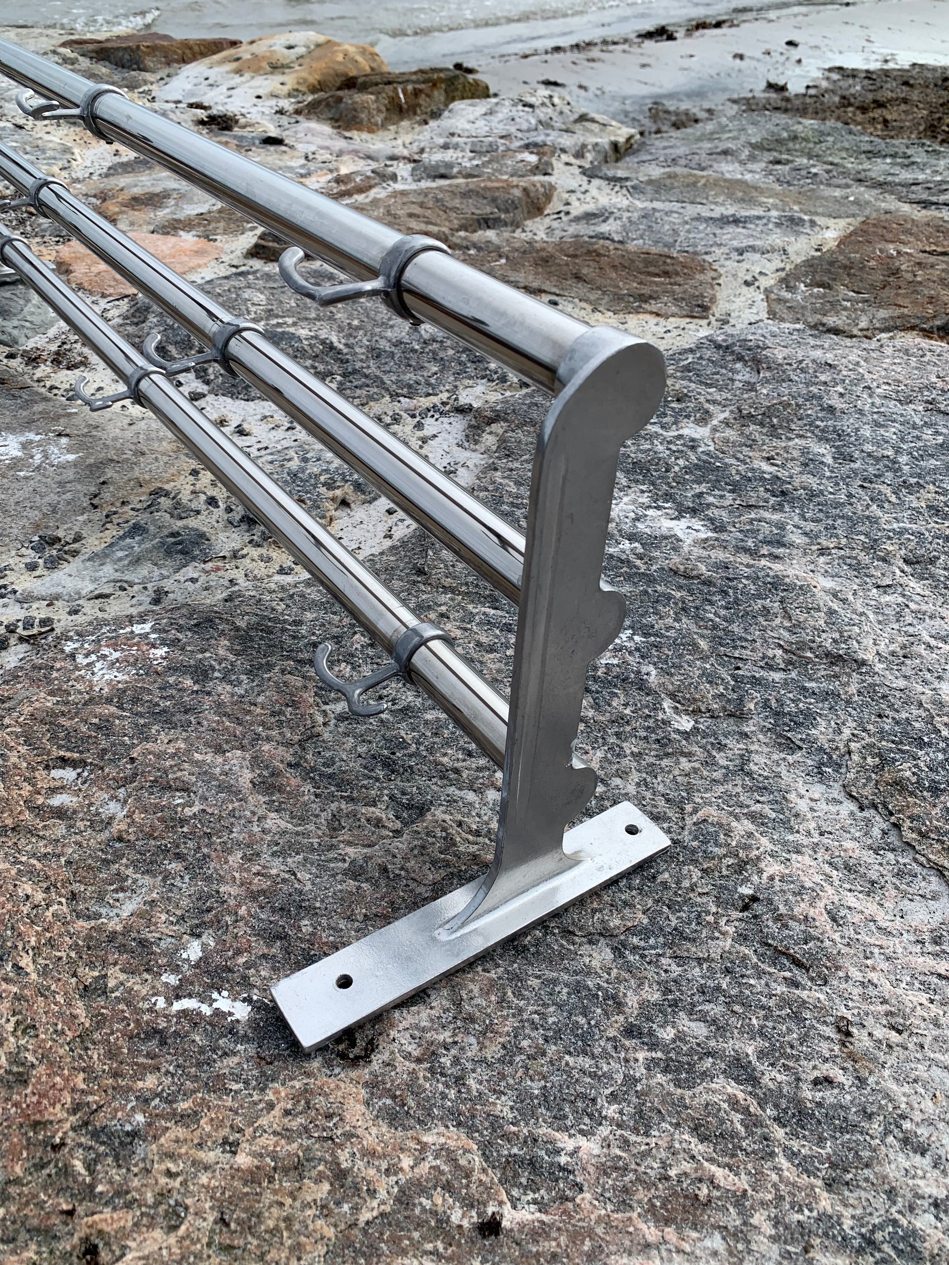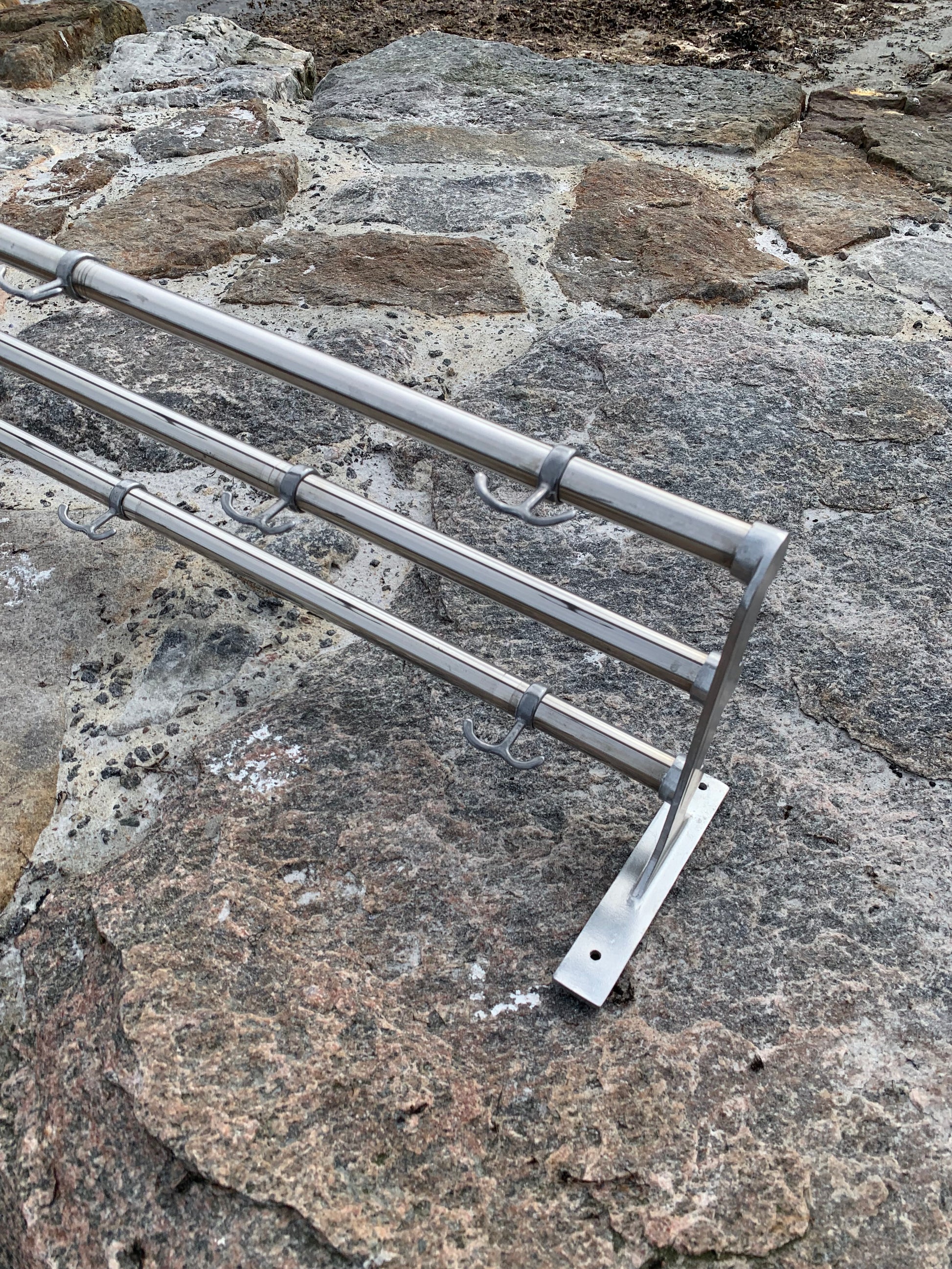 Skøn svensk hattehylde i godt design. Tidens tand har bidt i den således at den fremstår med aldersrelaterede brugsspor, der blot vidner om at nogen sandsynligvis har været glade for den.