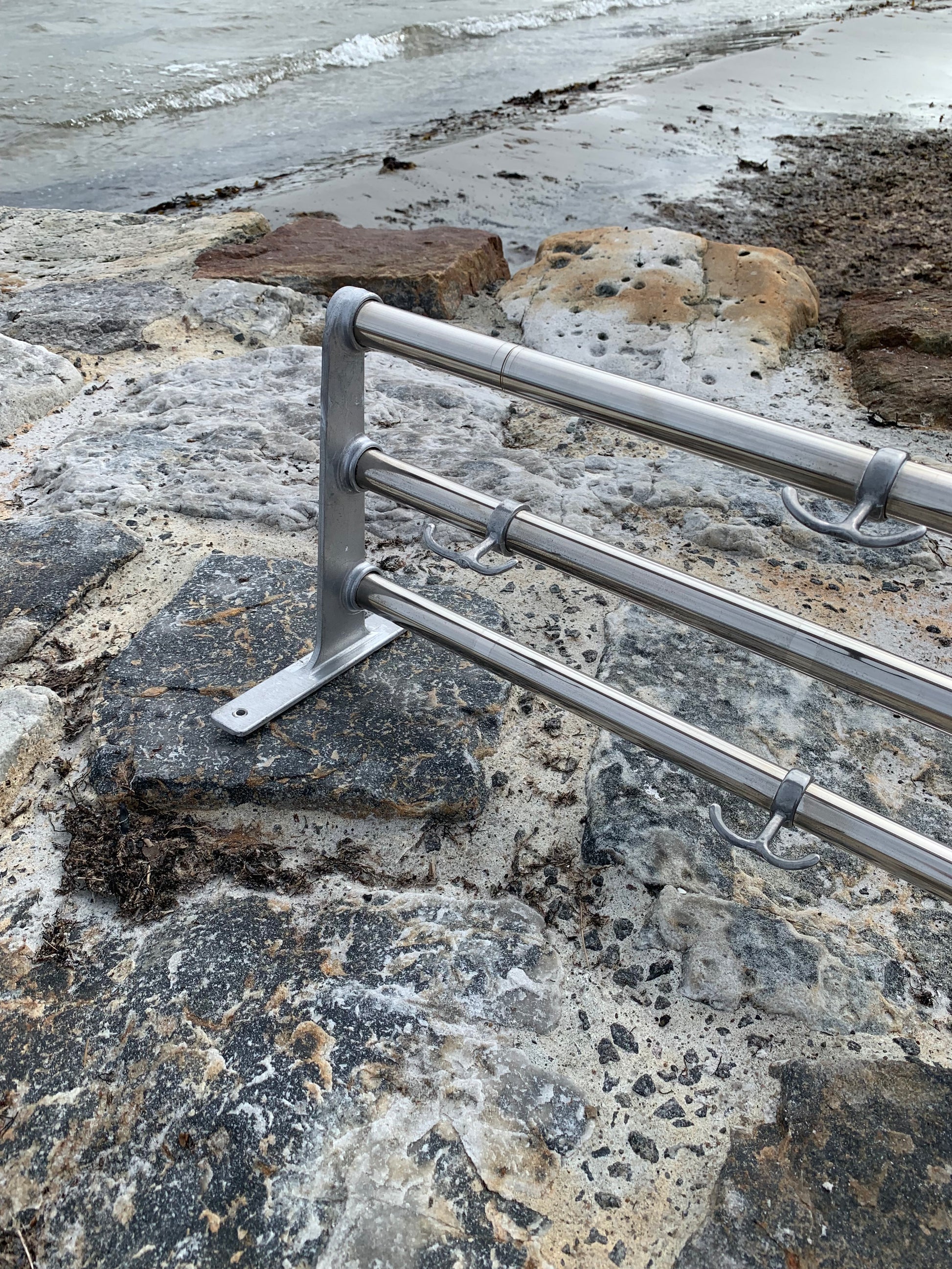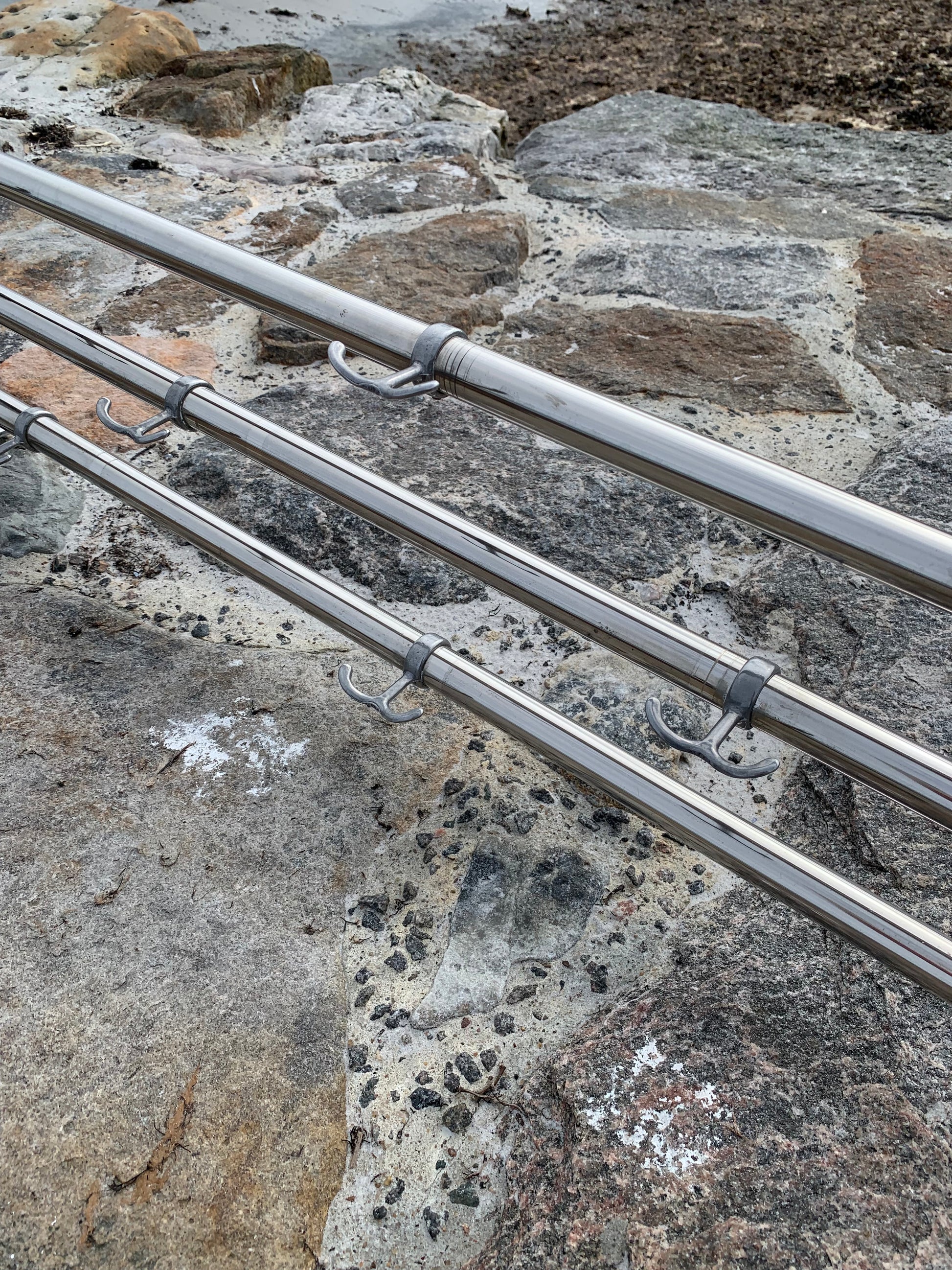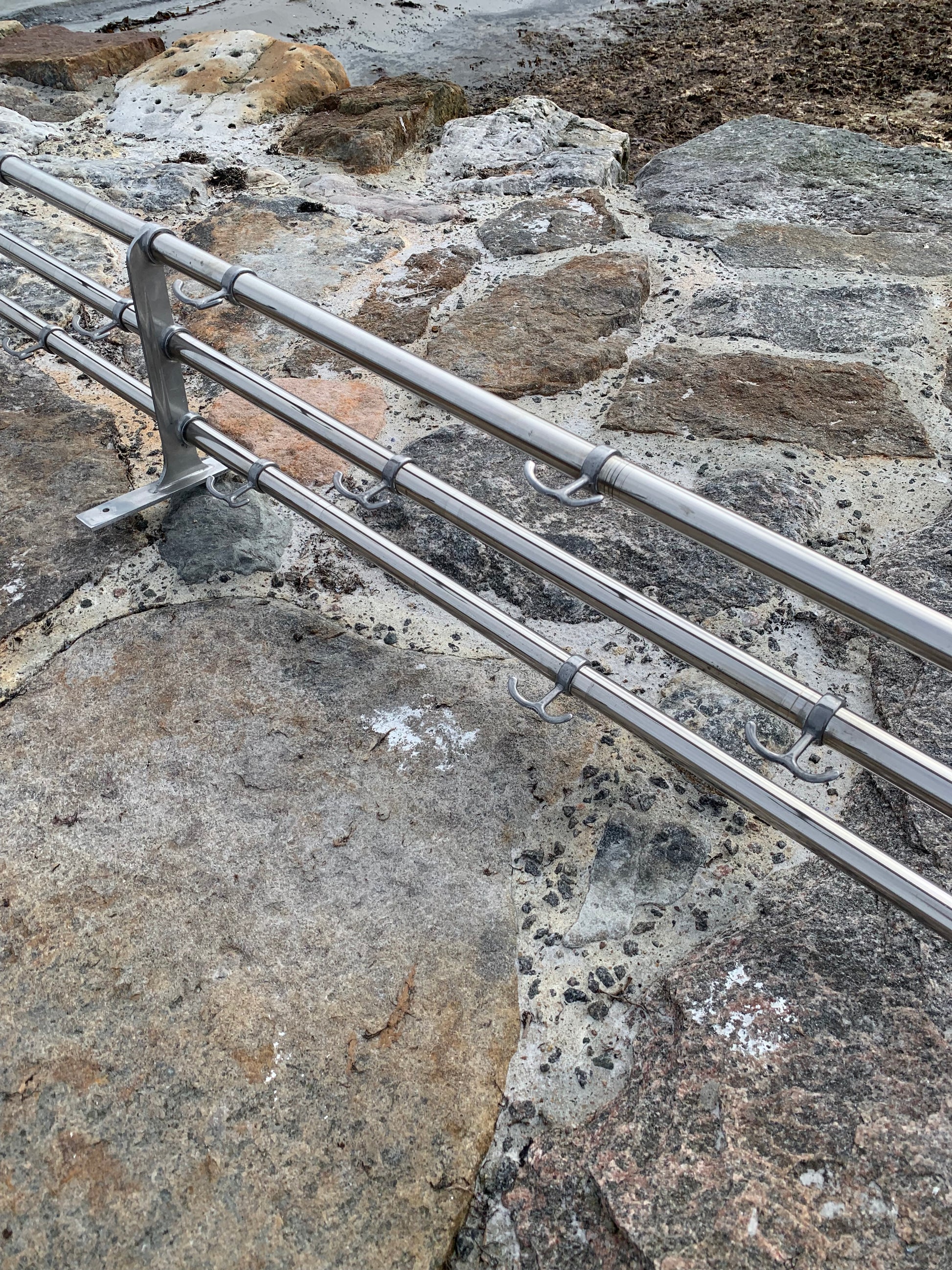 Skøn svensk hattehylde i godt design. Tidens tand har bidt i den således at den fremstår med aldersrelaterede brugsspor, der blot vidner om at nogen sandsynligvis har været glade for den.