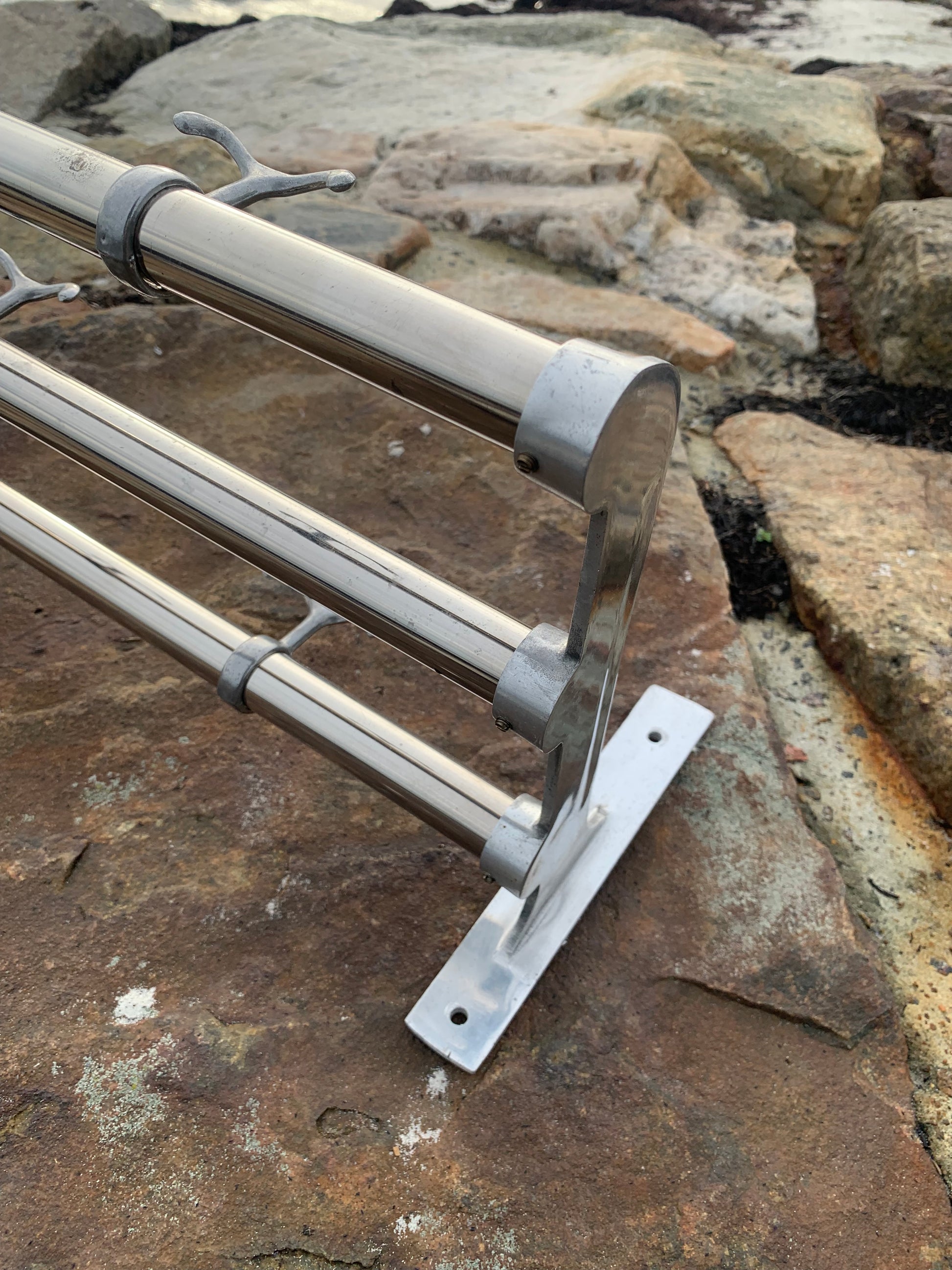 Skøn svensk hattehylde i godt design. Tidens tand har bidt i den således at den fremstår med aldersrelaterede brugsspor, der blot vidner om at nogen sandsynligvis har været glade for den.
