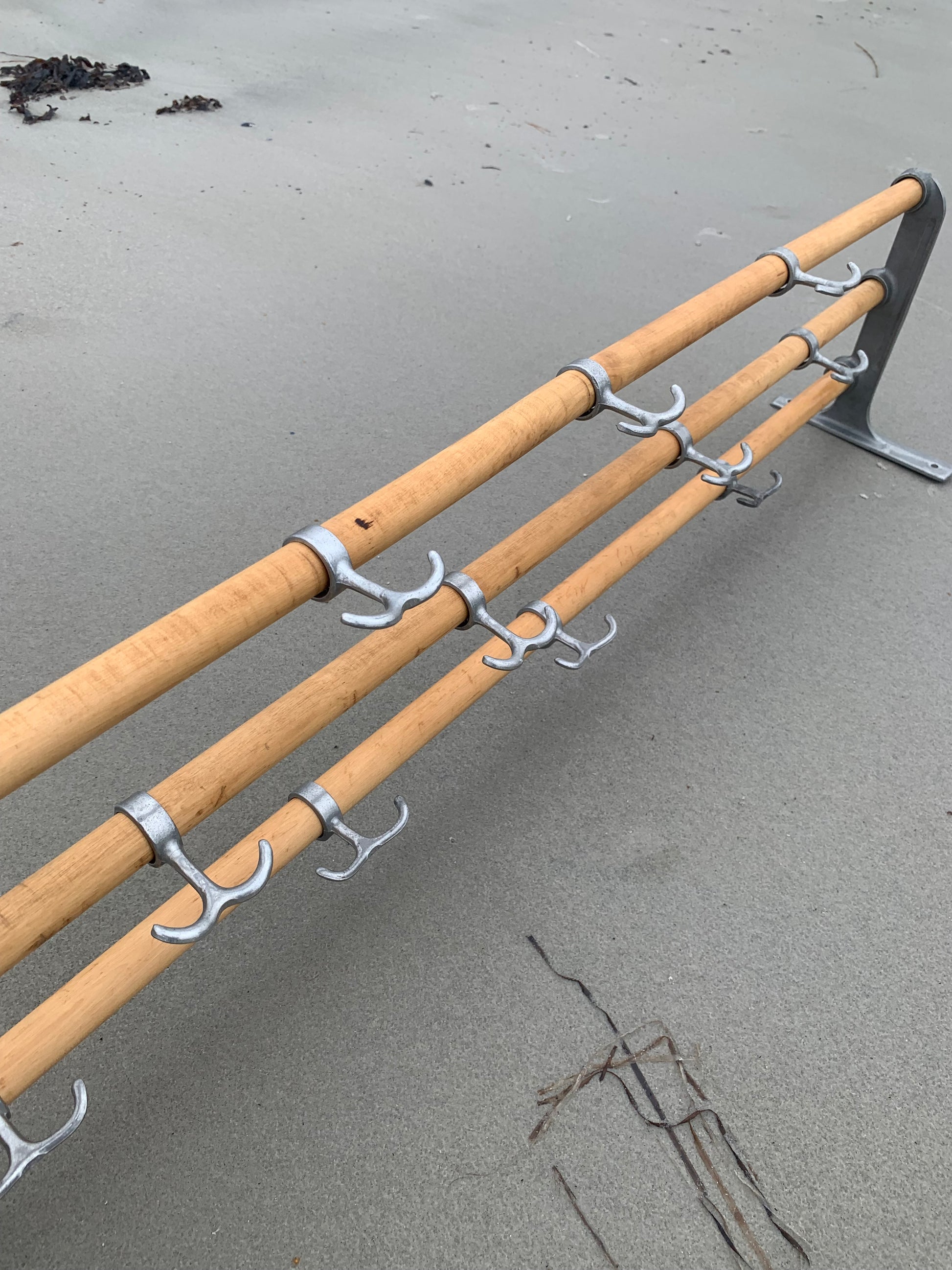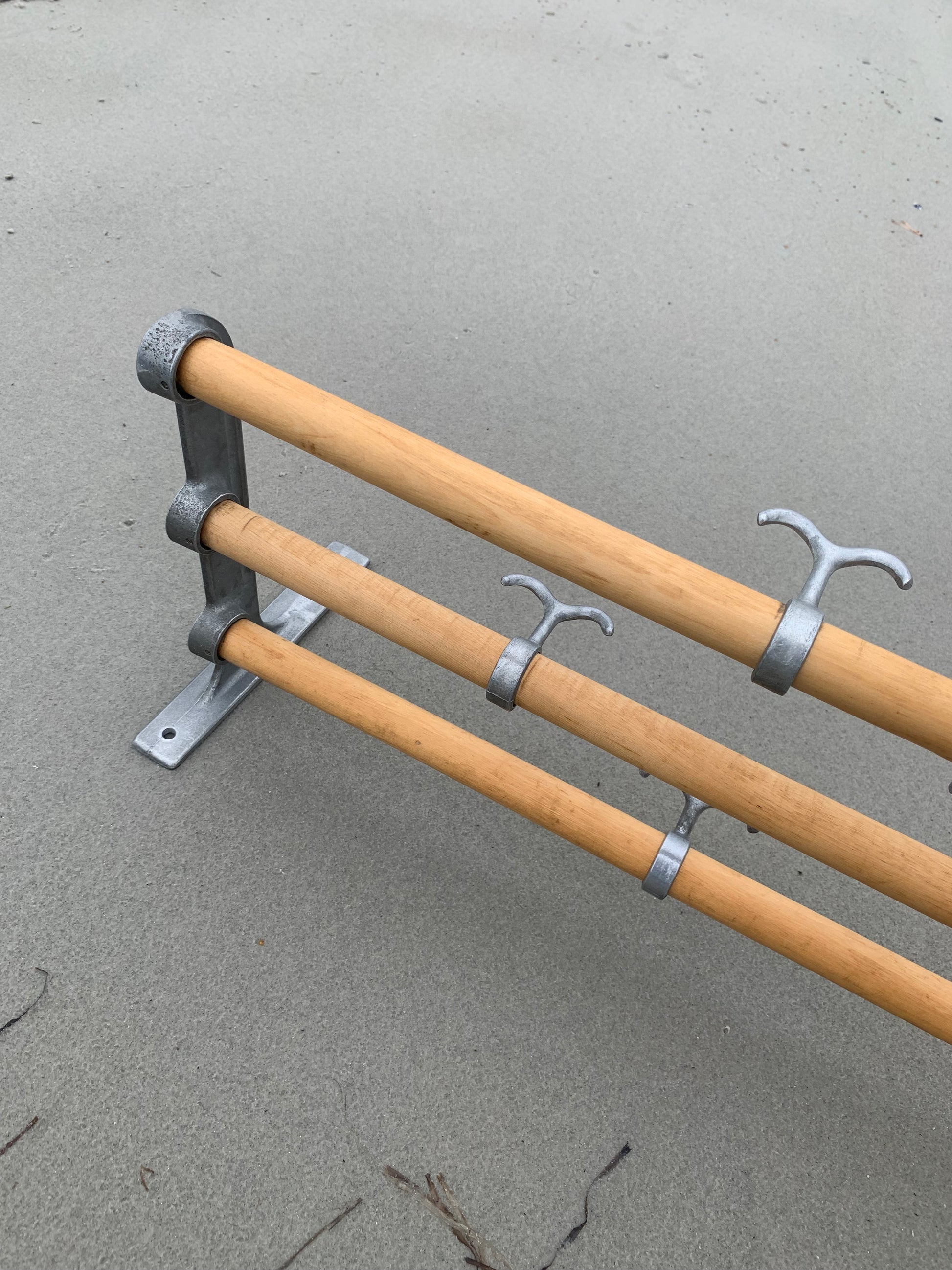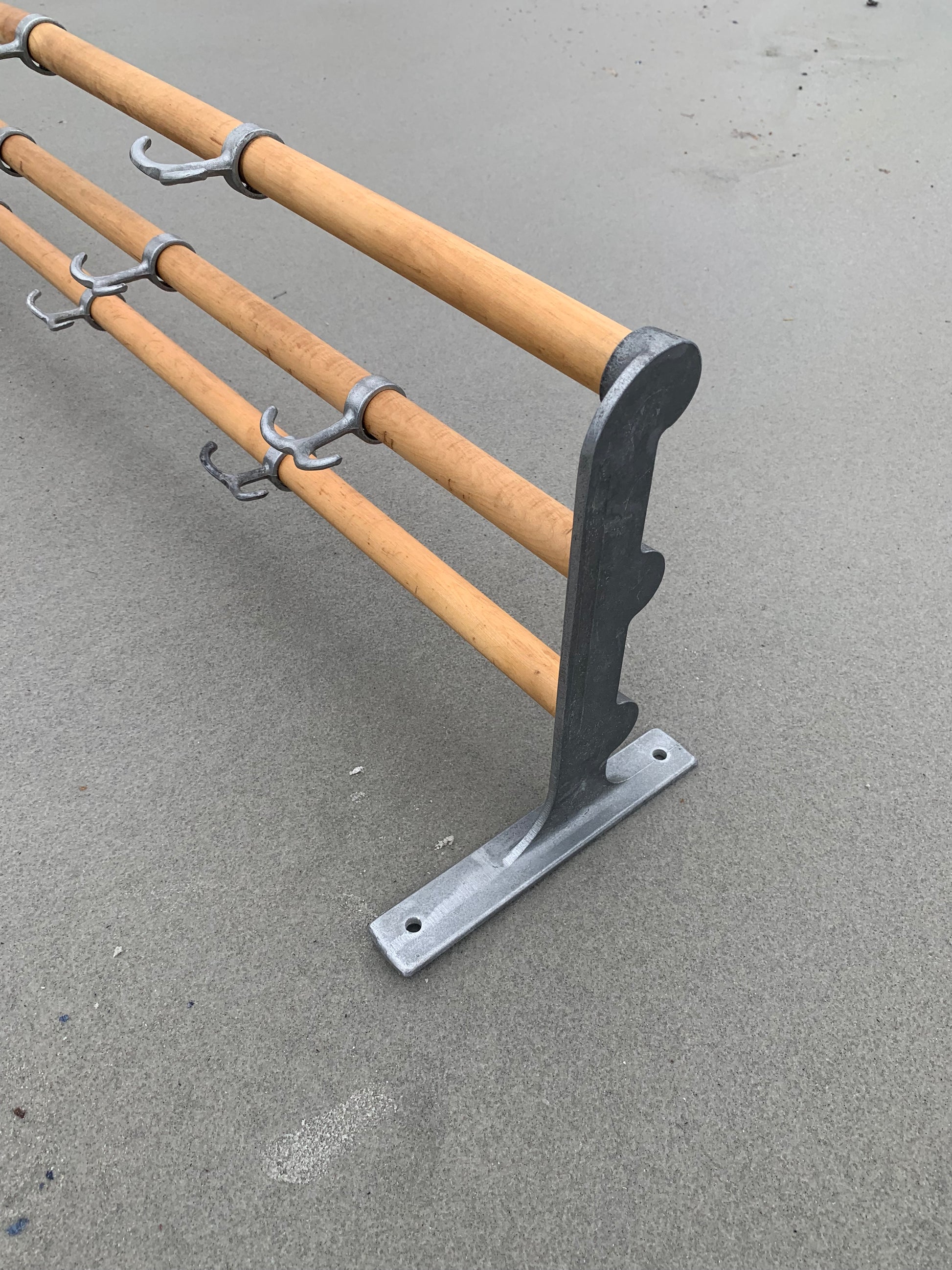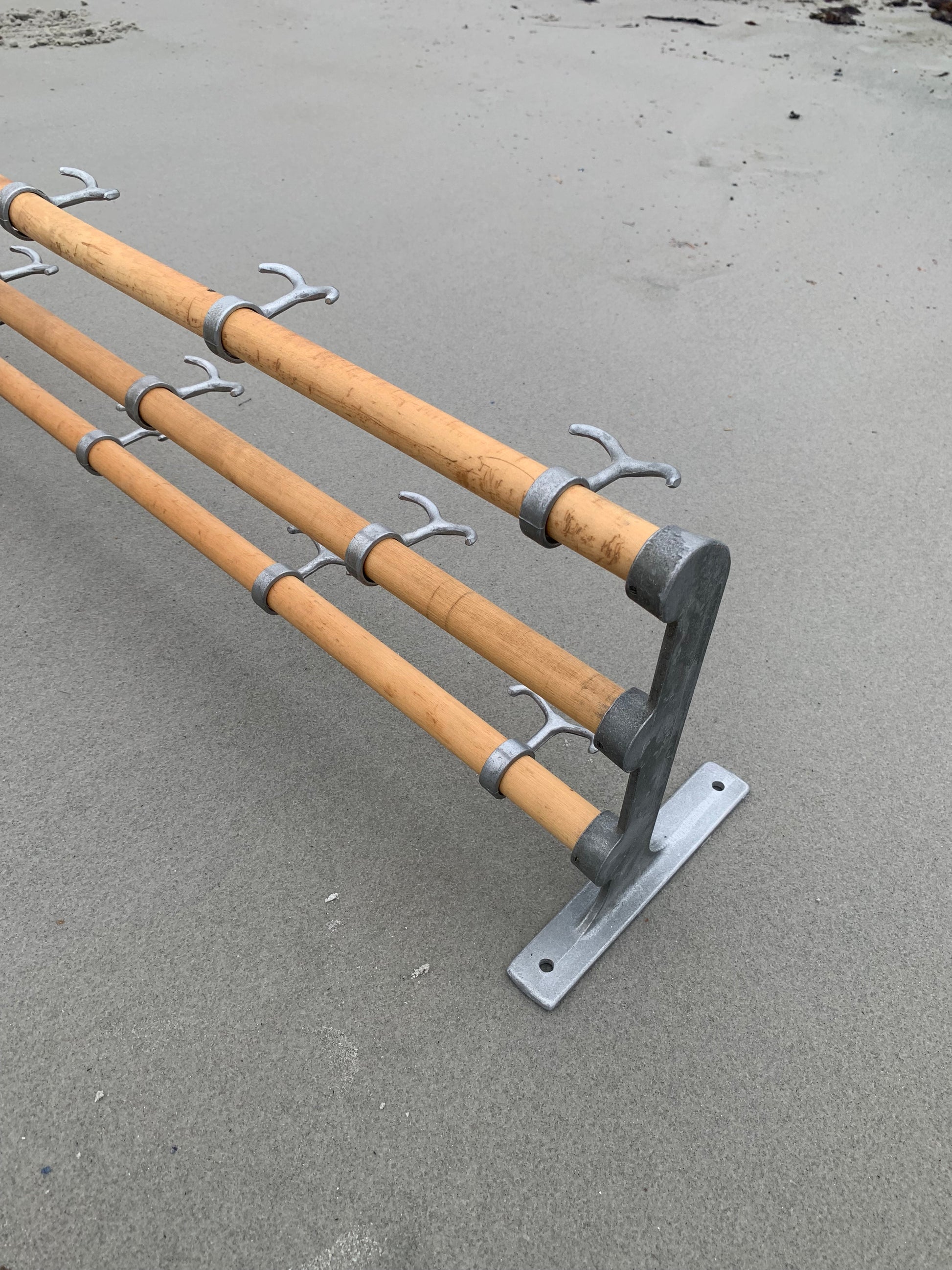 Skøn svensk hattehylde i godt design af Gunnar Bolin. Tidens tand har bidt i den, således at den fremstår med aldersrelaterede brugsspor, der blot vidner om at nogen sandsynligvis har været glade for den.