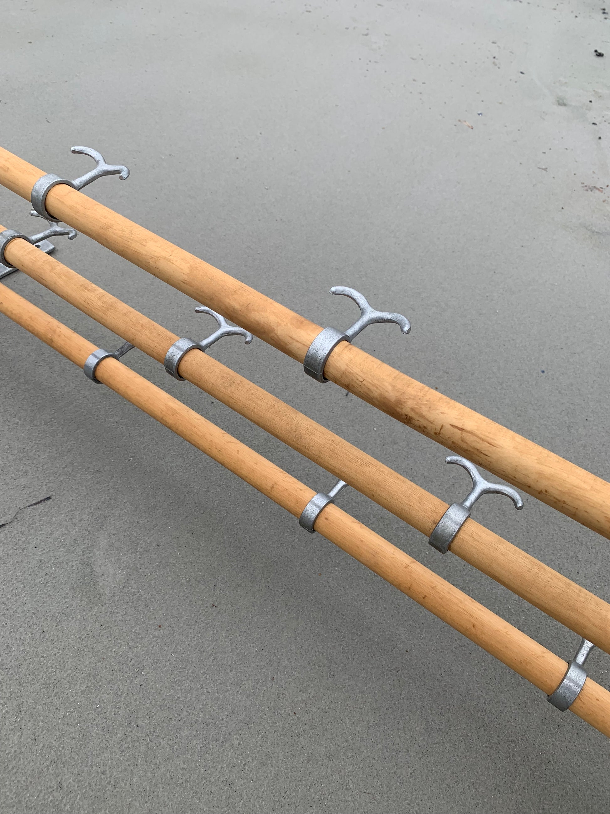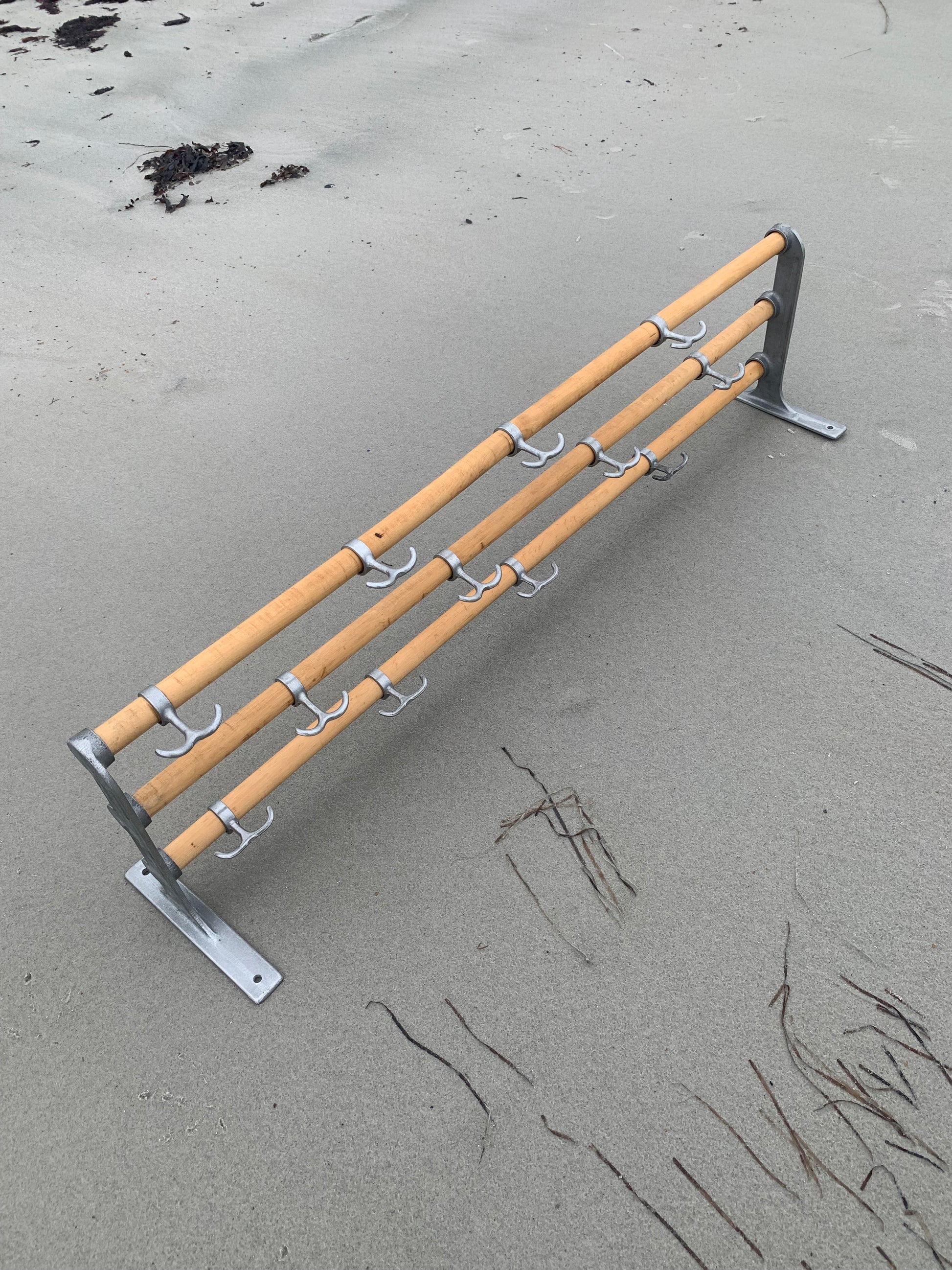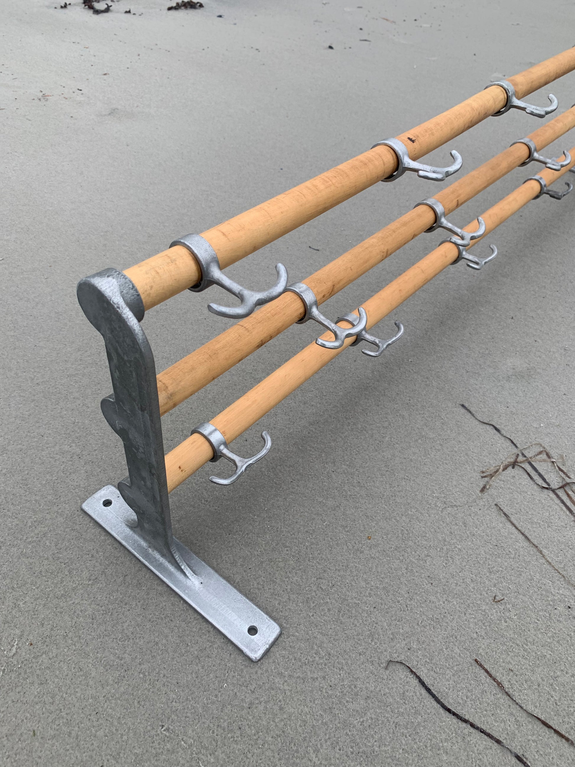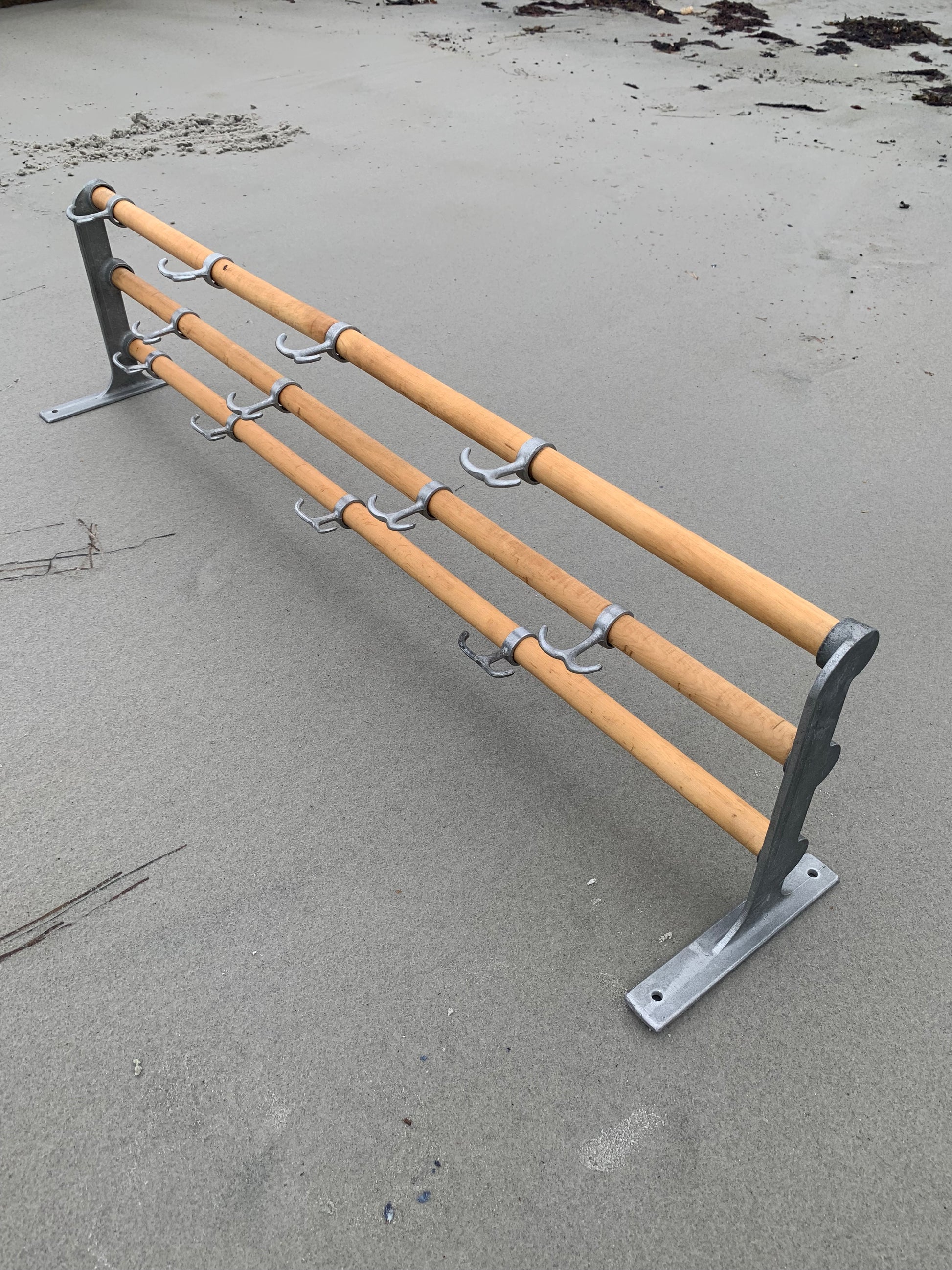 Skøn svensk hattehylde i godt design af Gunnar Bolin. Tidens tand har bidt i den, således at den fremstår med aldersrelaterede brugsspor, der blot vidner om at nogen sandsynligvis har været glade for den.