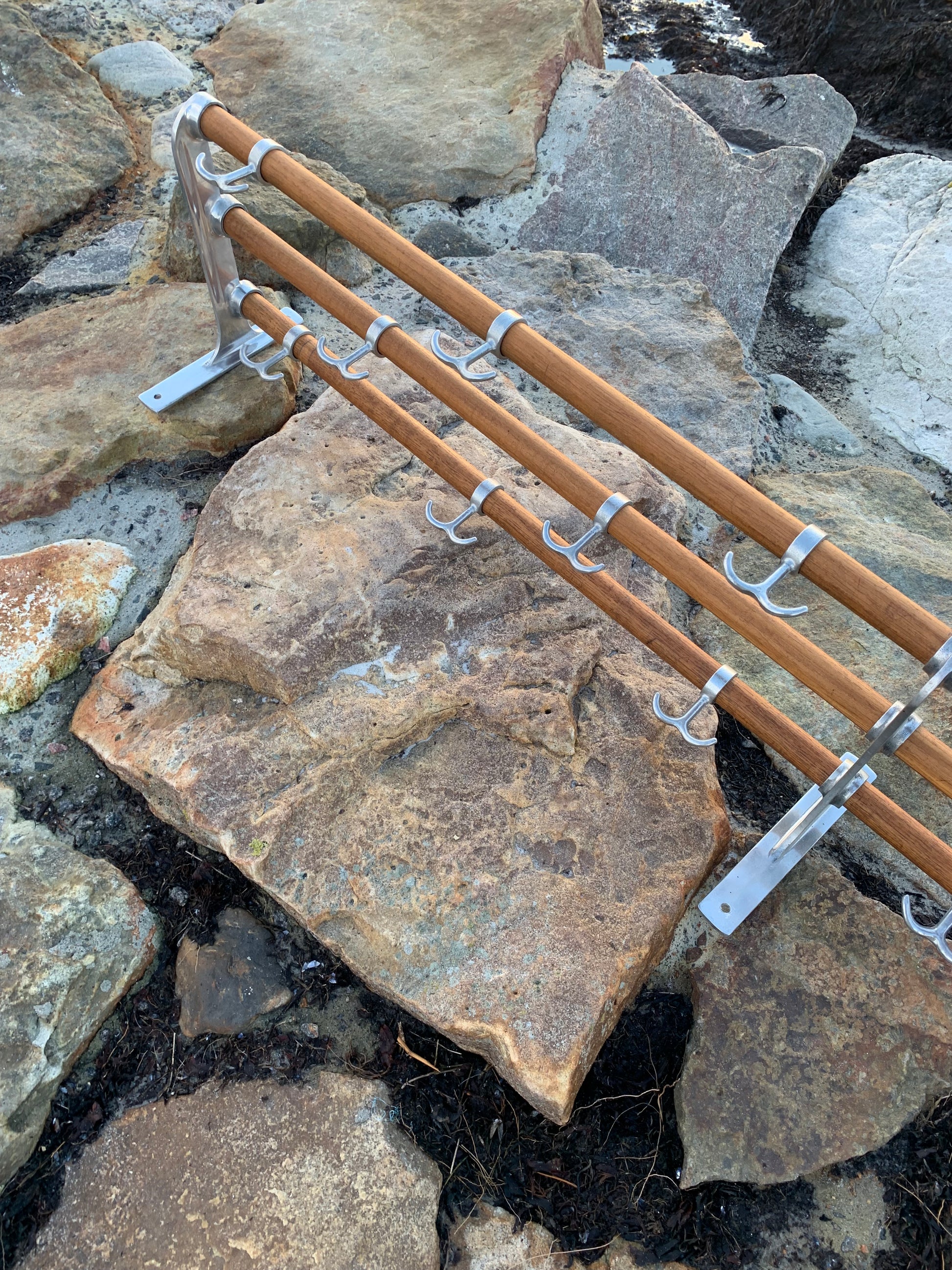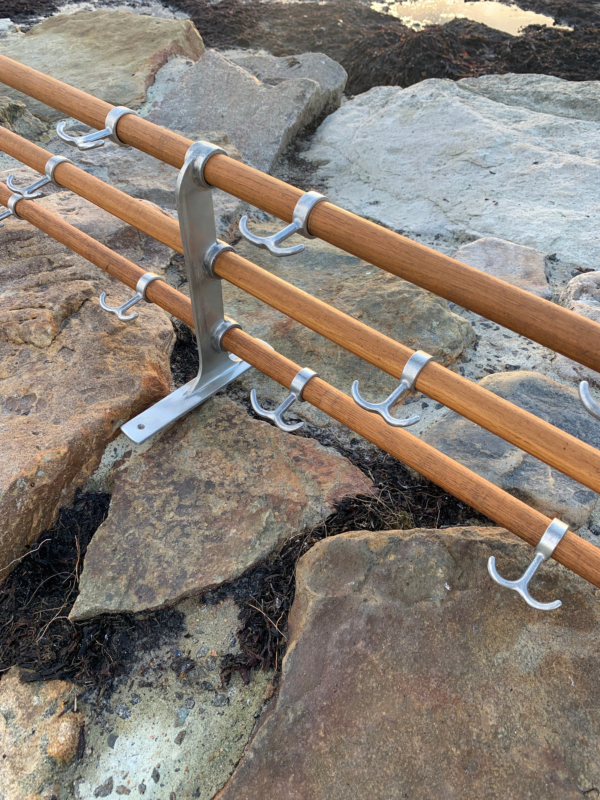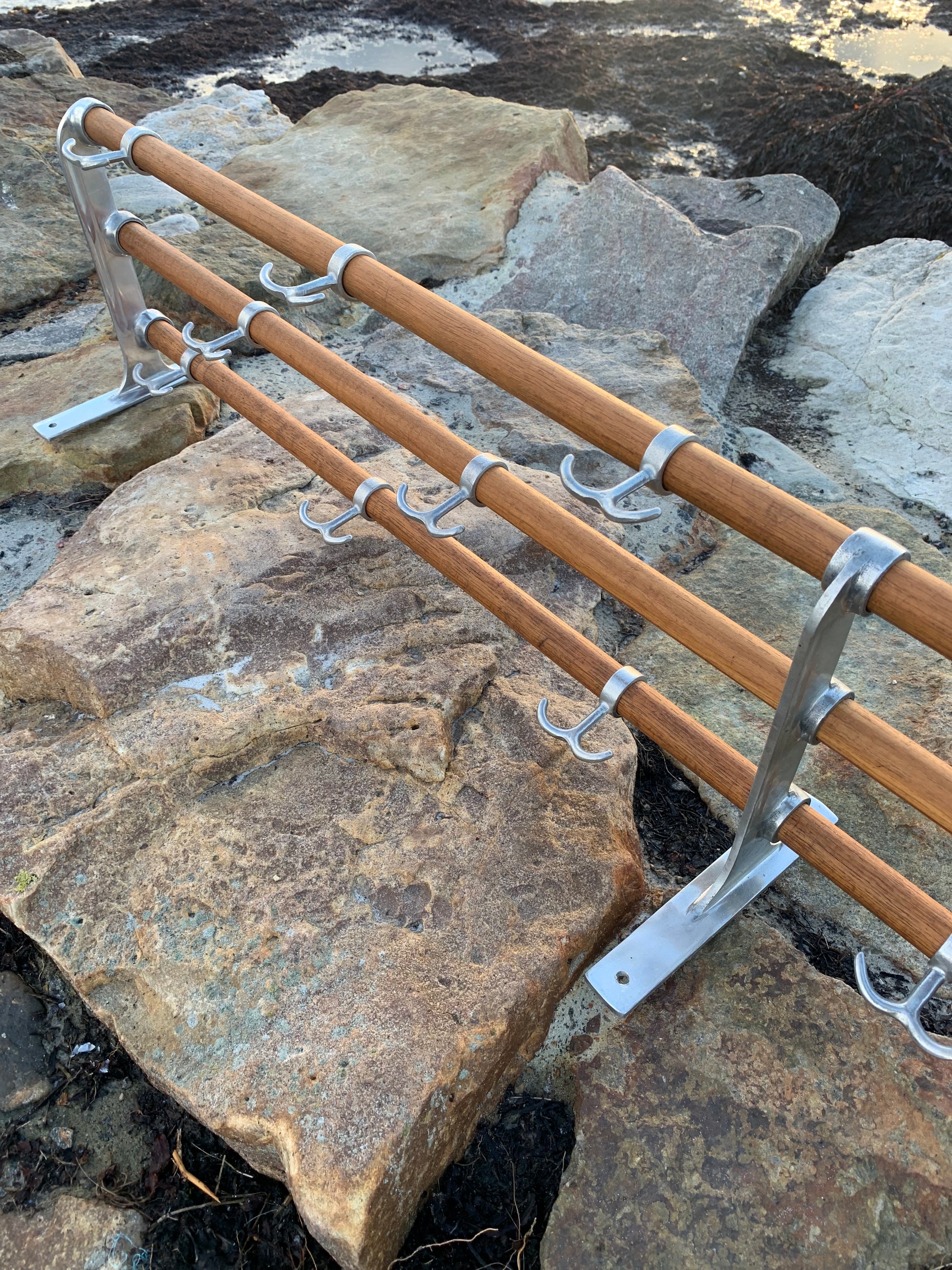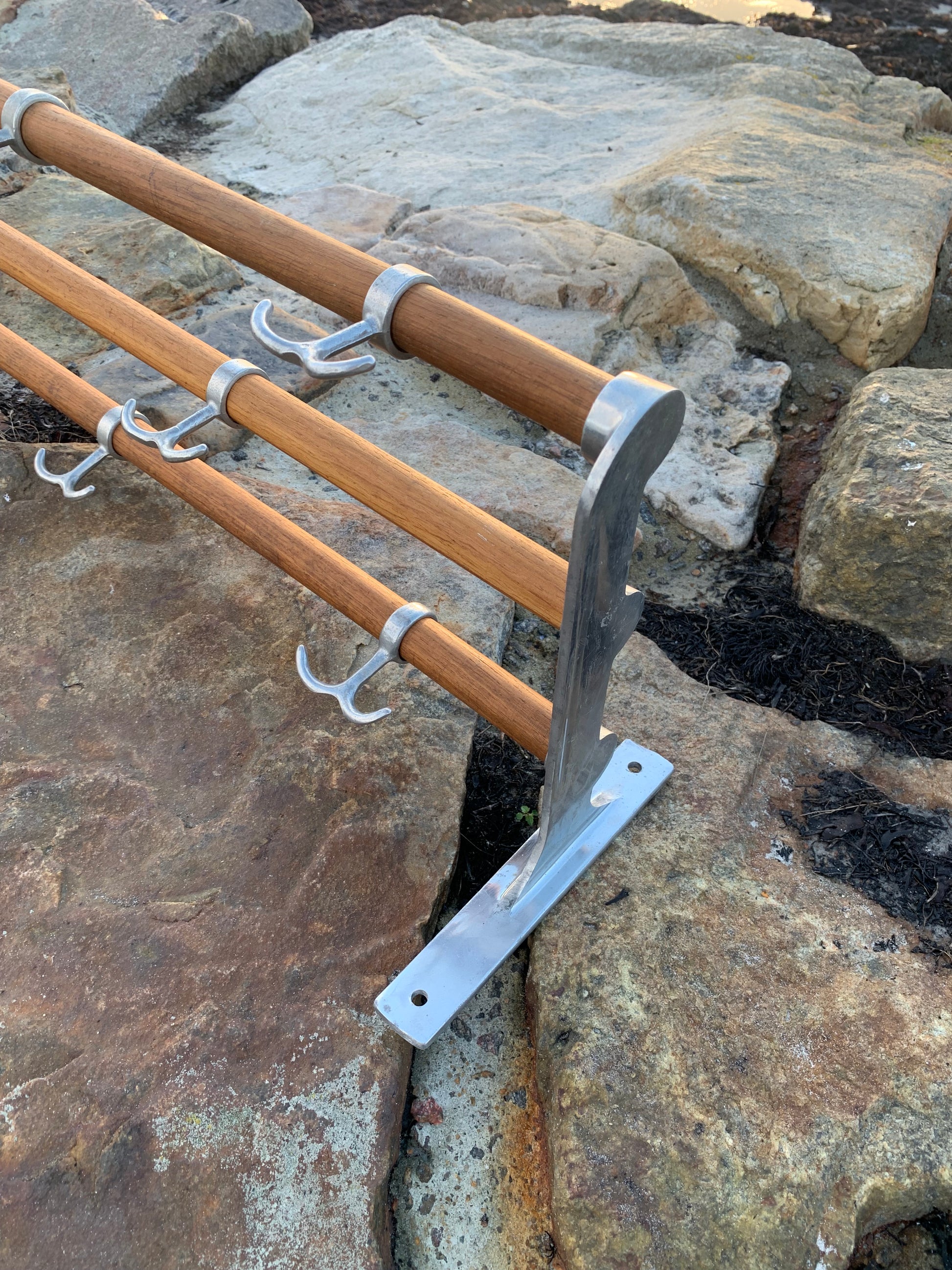 Skøn svensk hattehylde i godt design af Gunnar Bolin. Tidens tand har bidt i den, således at den fremstår med aldersrelaterede brugsspor, der blot vidner om at nogen sandsynligvis har været glade for den.