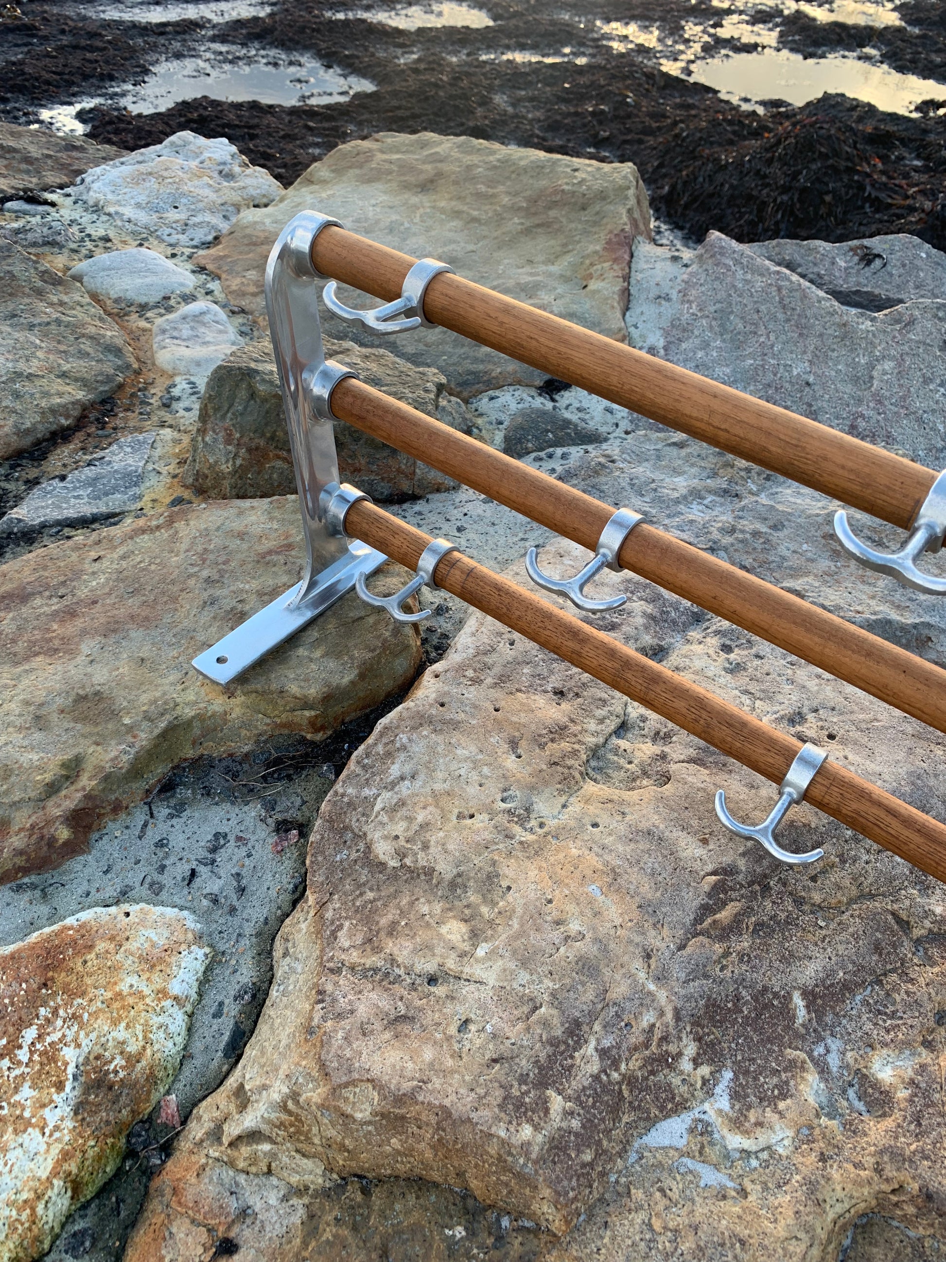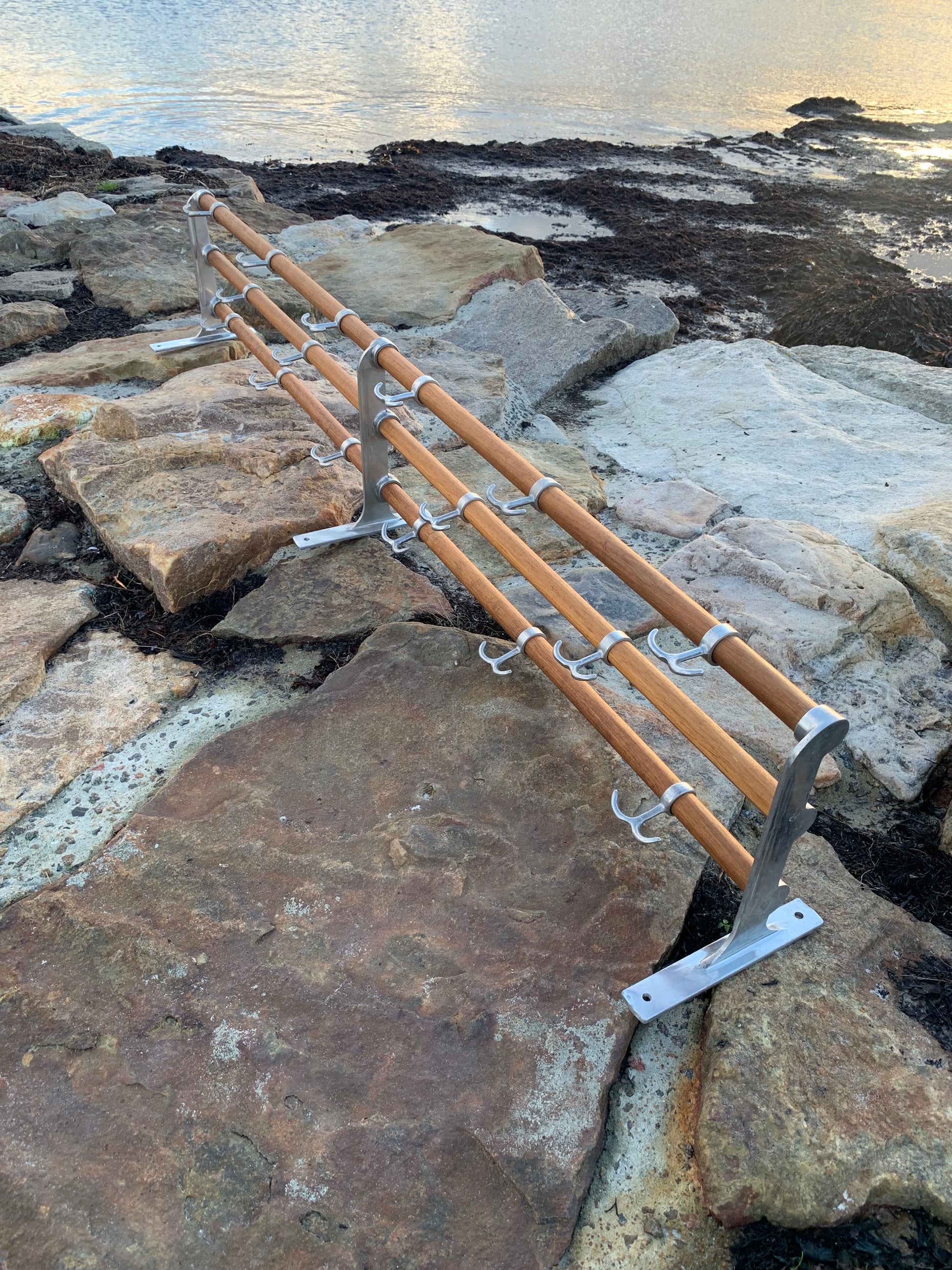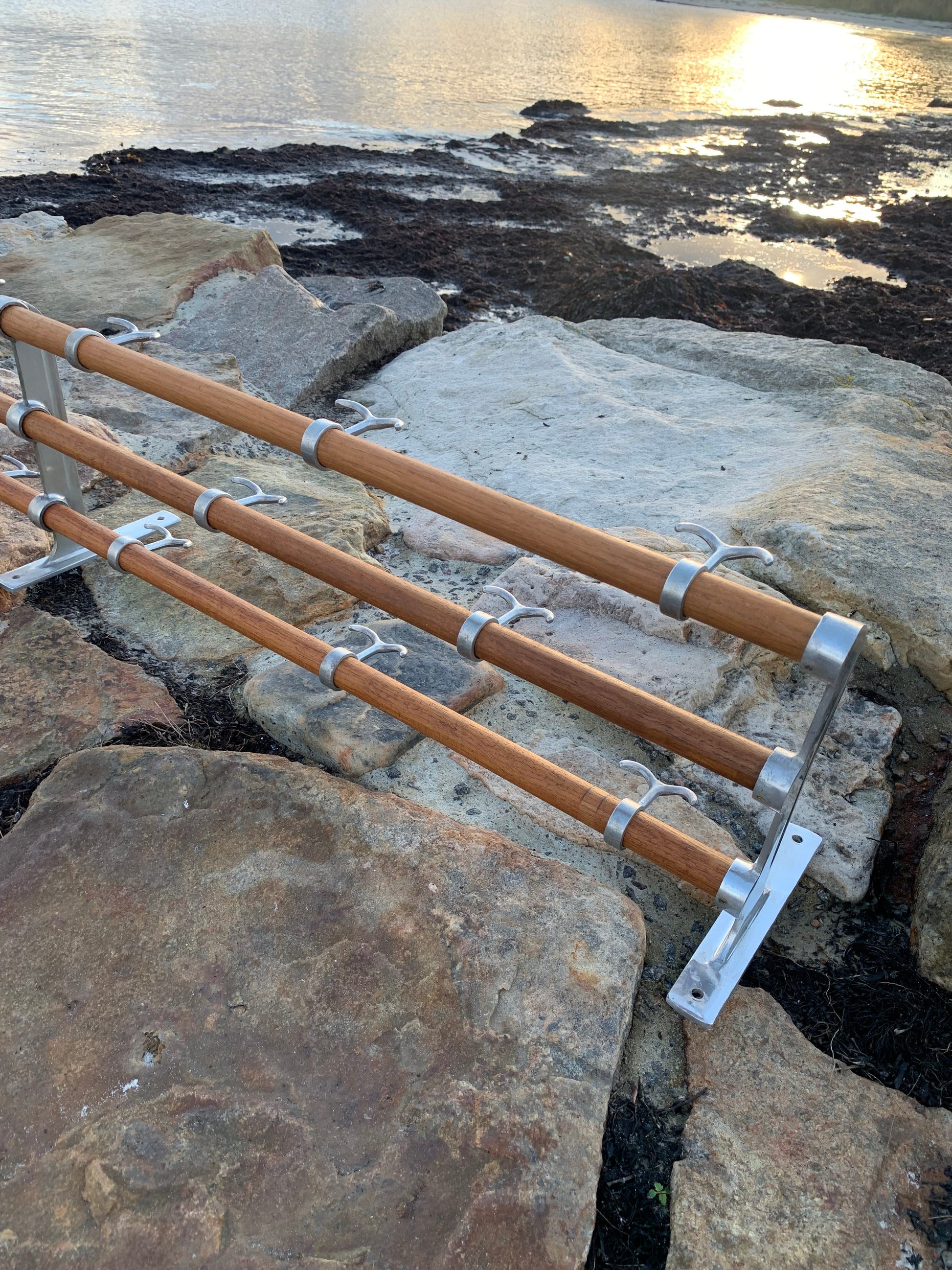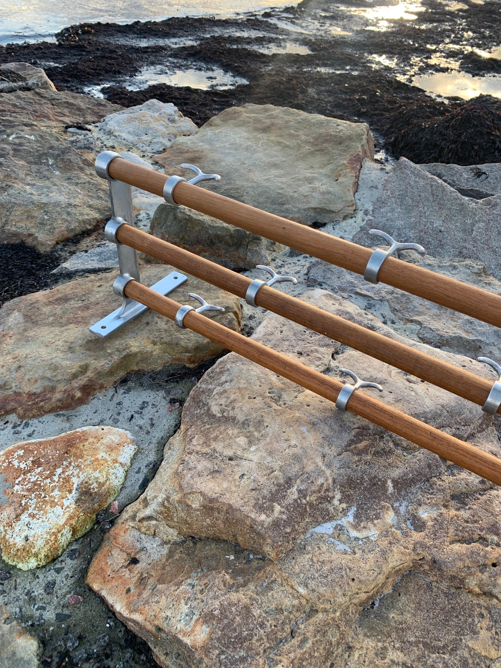 Skøn svensk hattehylde i godt design af Gunnar Bolin. Tidens tand har bidt i den, således at den fremstår med aldersrelaterede brugsspor, der blot vidner om at nogen sandsynligvis har været glade for den.