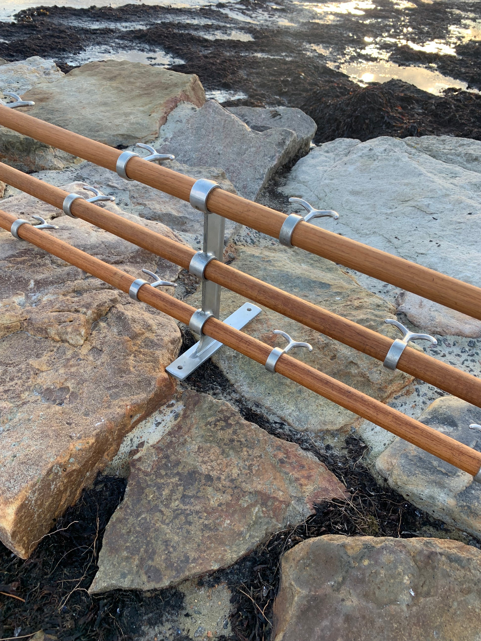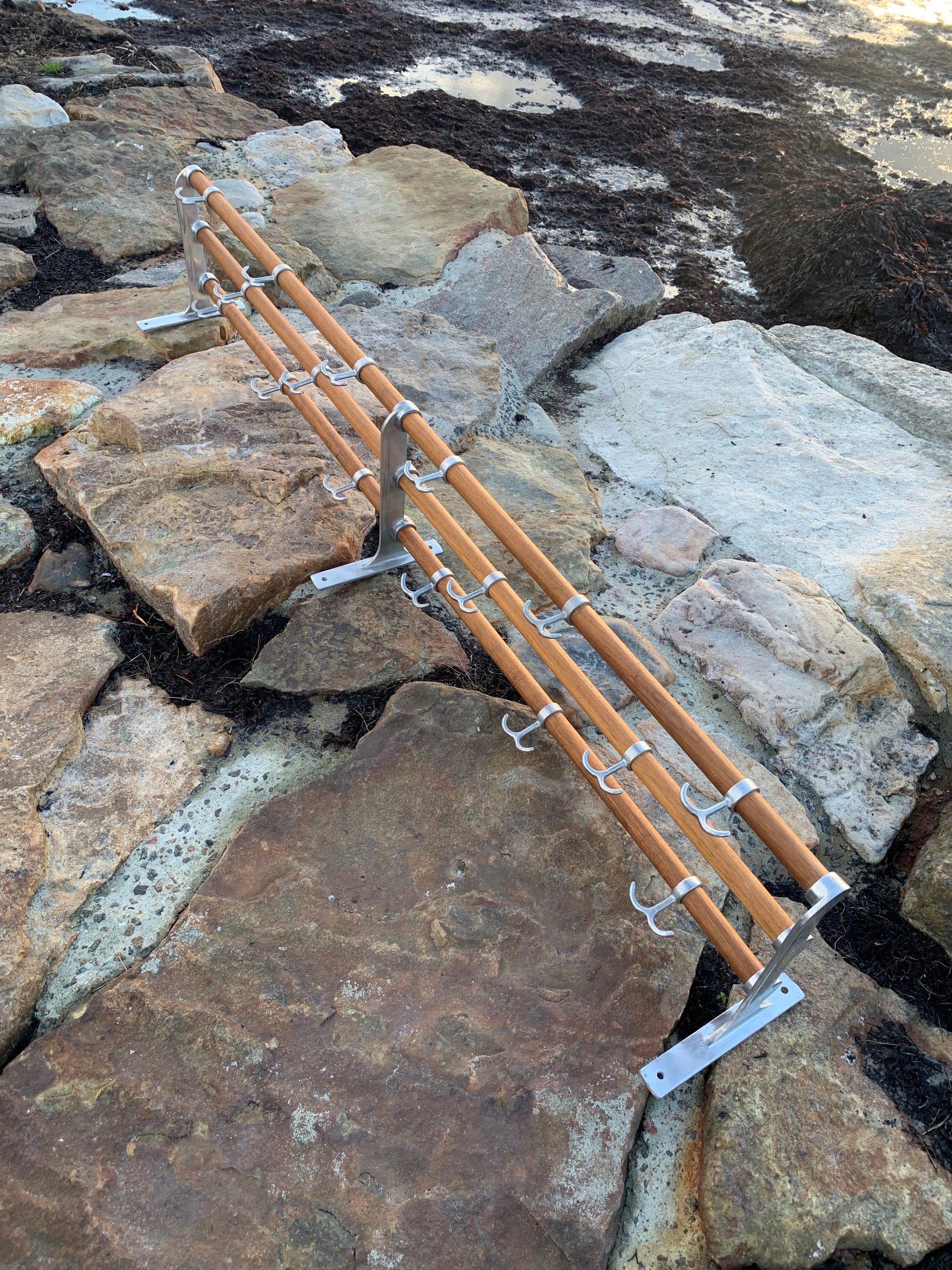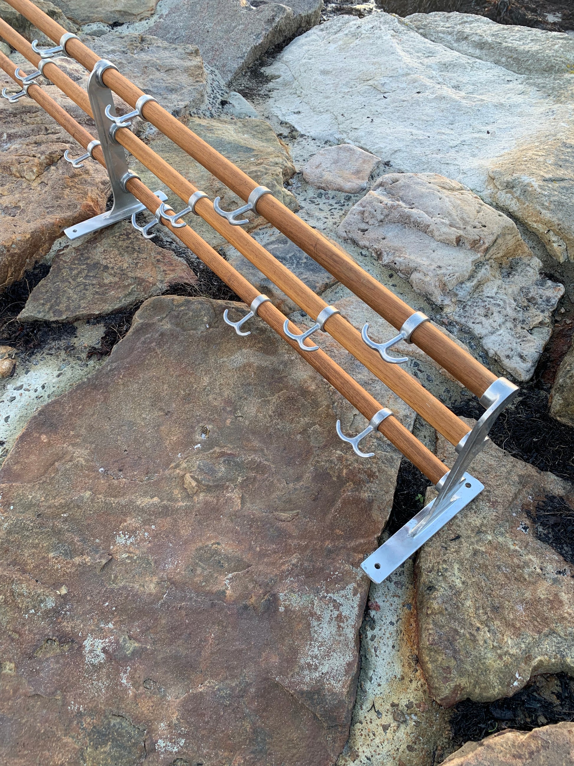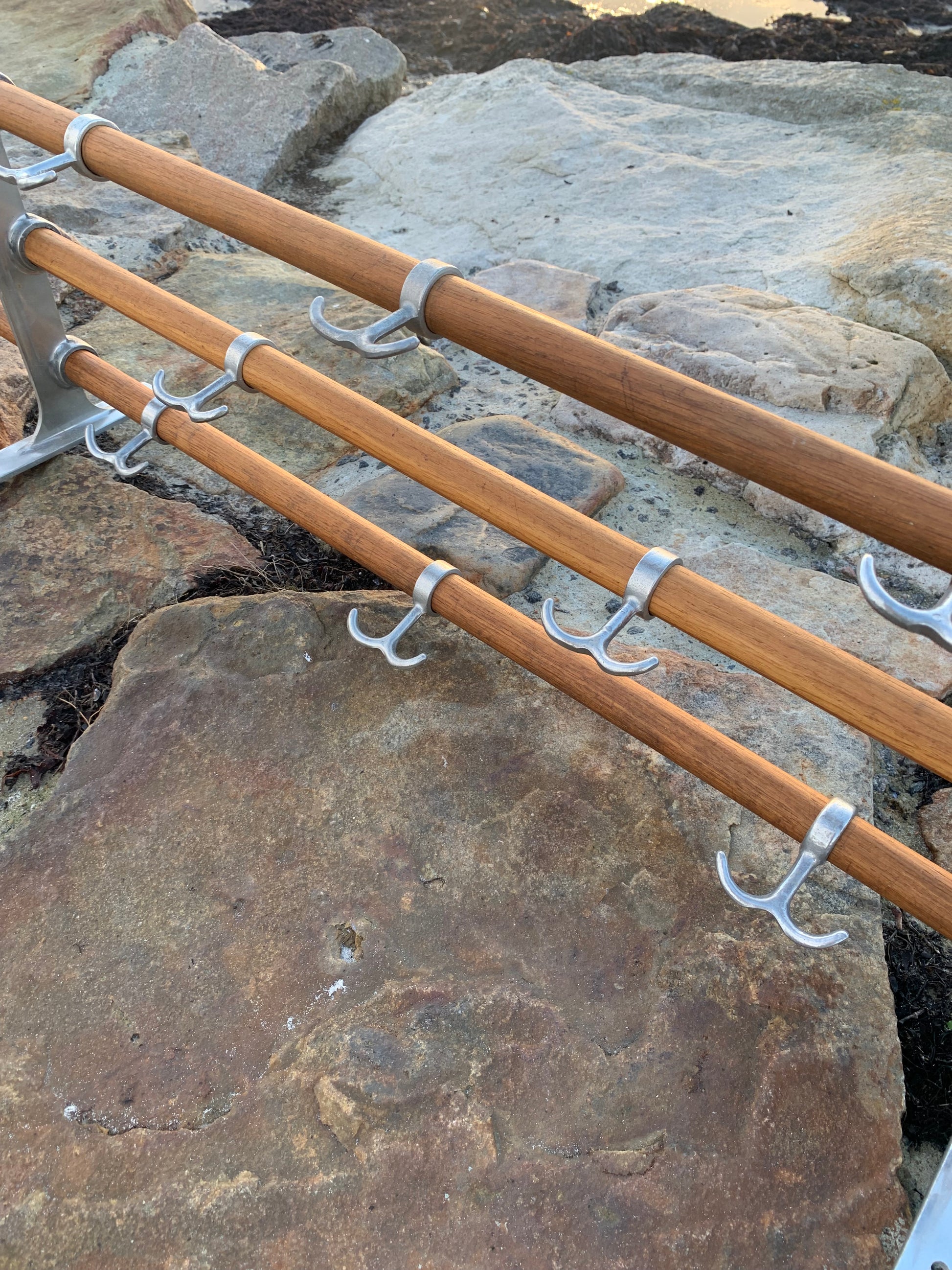 Skøn svensk hattehylde i godt design af Gunnar Bolin. Tidens tand har bidt i den, således at den fremstår med aldersrelaterede brugsspor, der blot vidner om at nogen sandsynligvis har været glade for den.