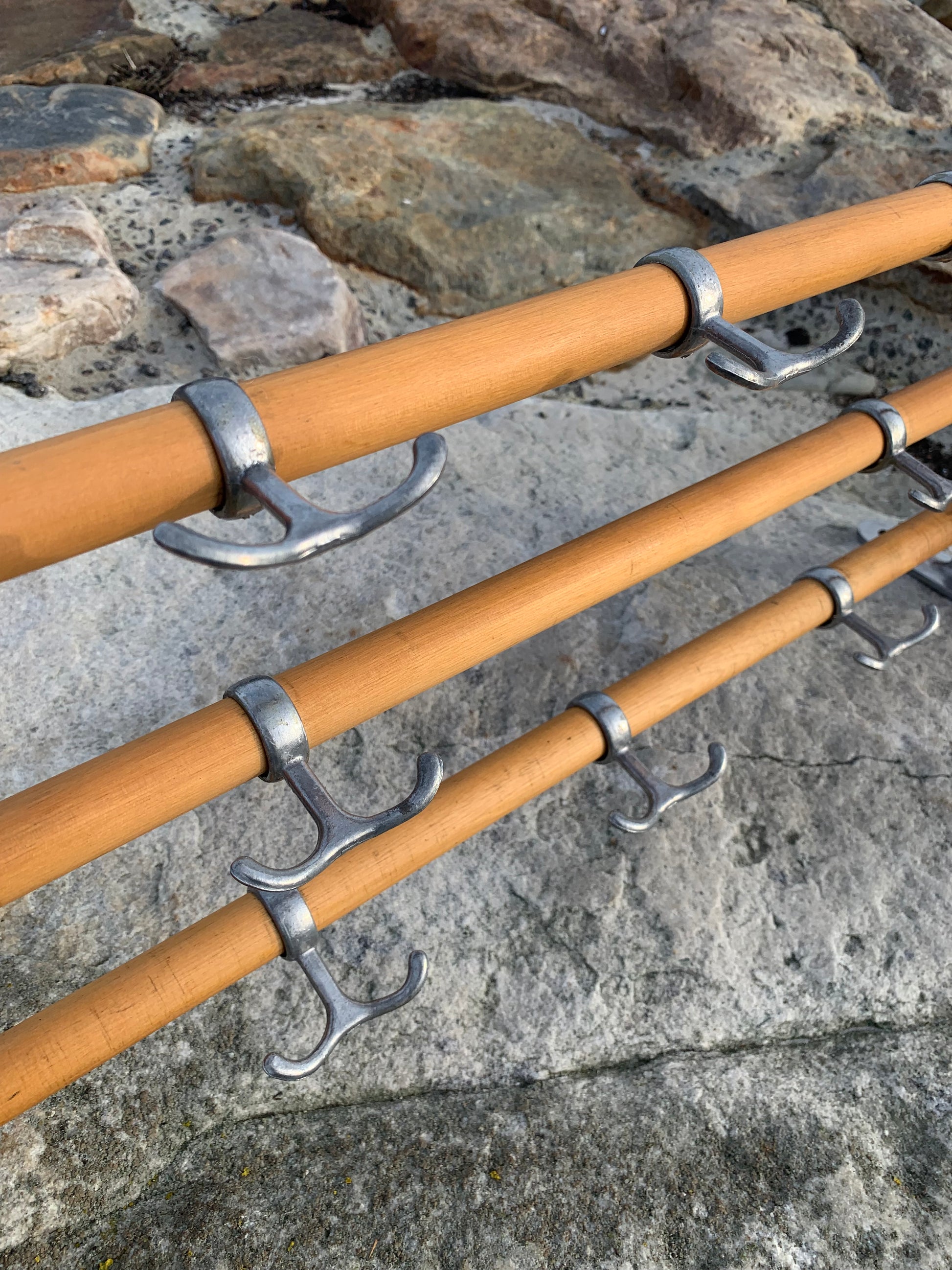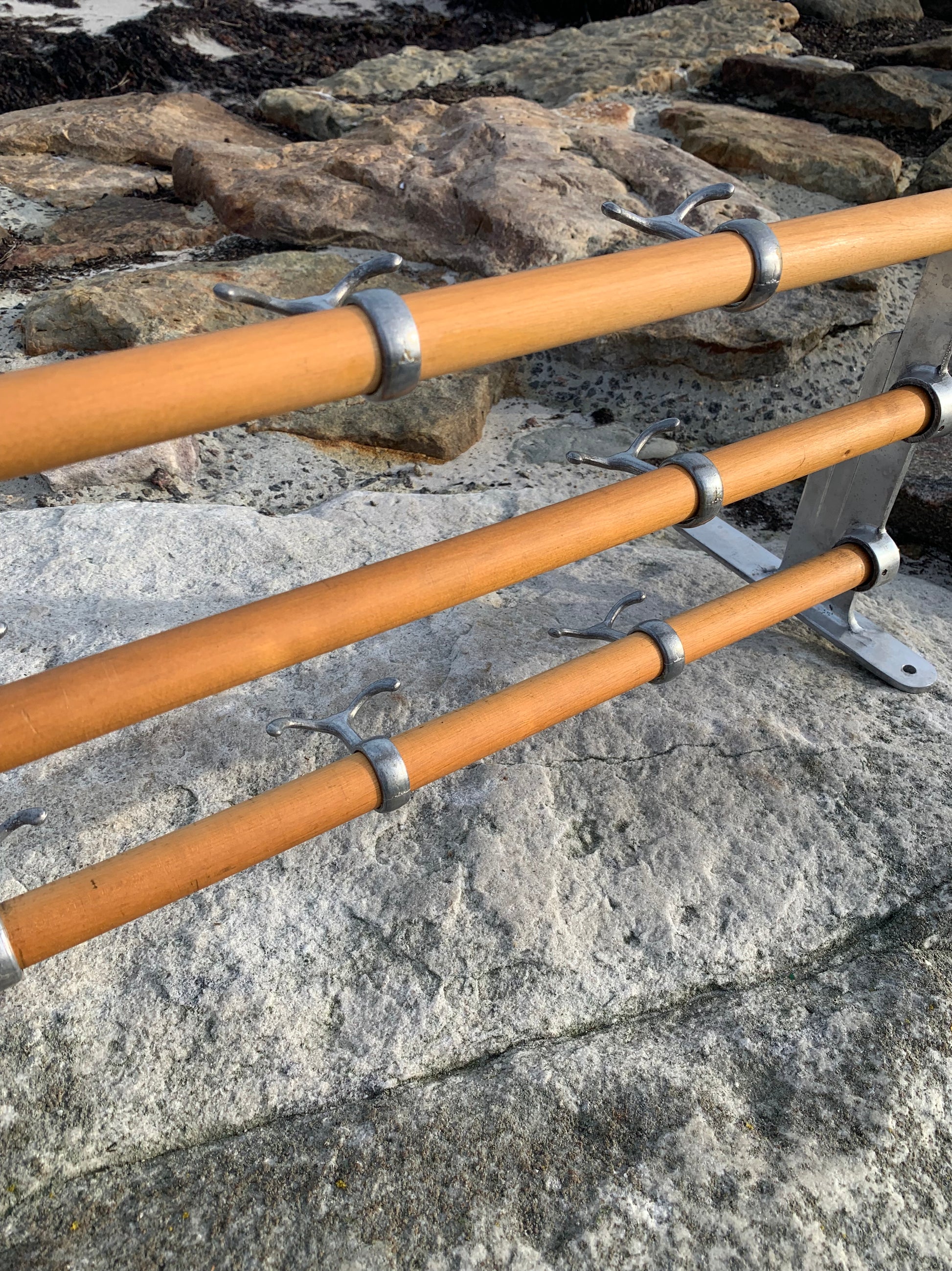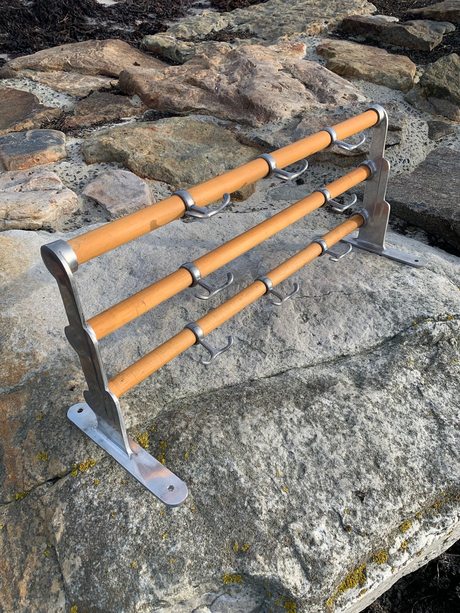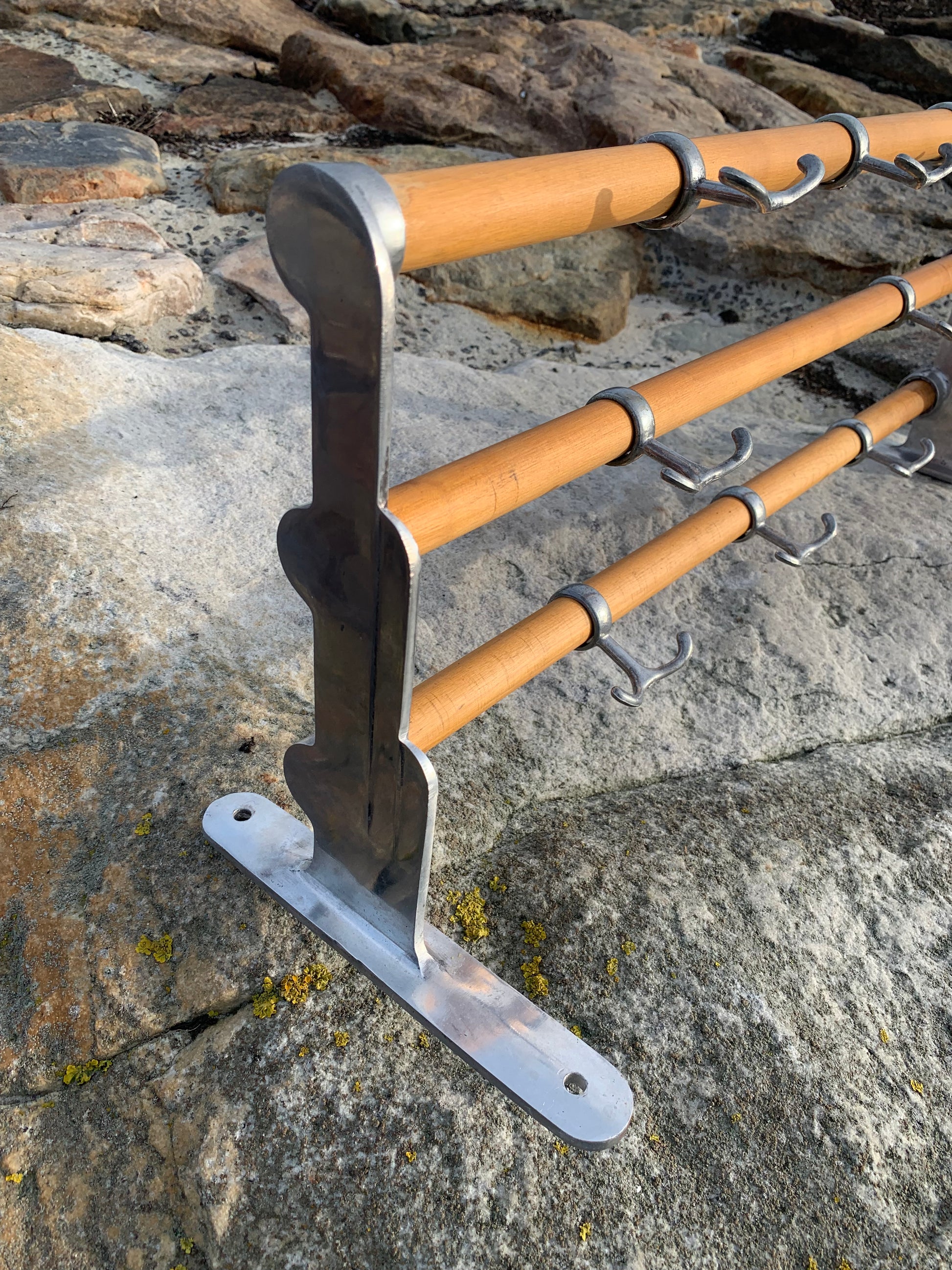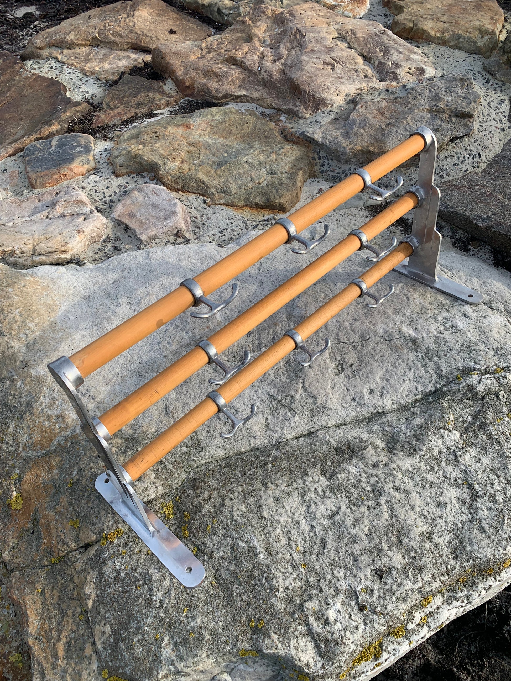 Skøn svensk hattehylde i godt design af Gunnar Bolin. Tidens tand har bidt i den, således at den fremstår med aldersrelaterede brugsspor, der blot vidner om at nogen sandsynligvis har været glade for den.