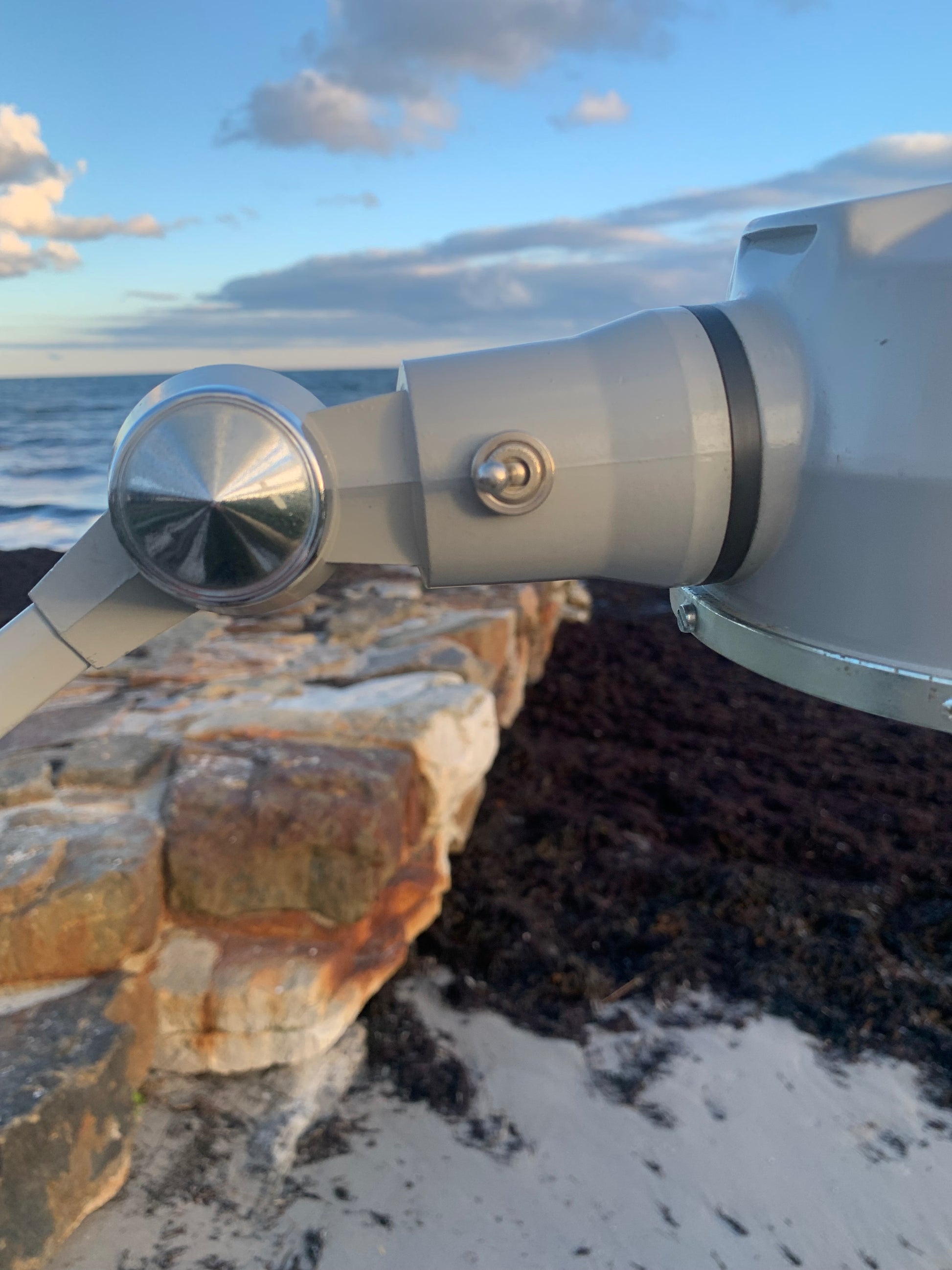 Lampen er bygget af modulære dele og kan tilpasses til forskellige størrelser og formål.