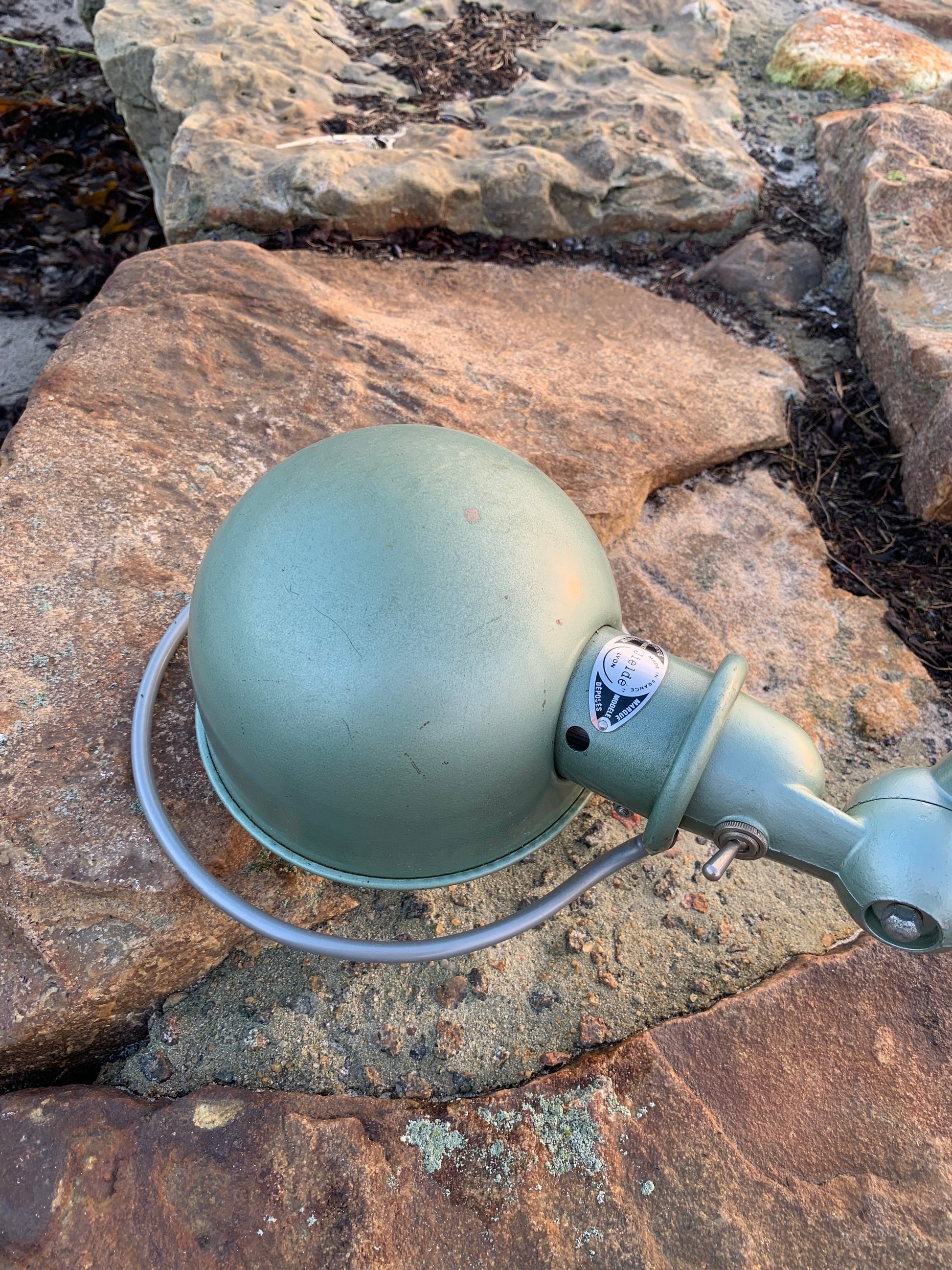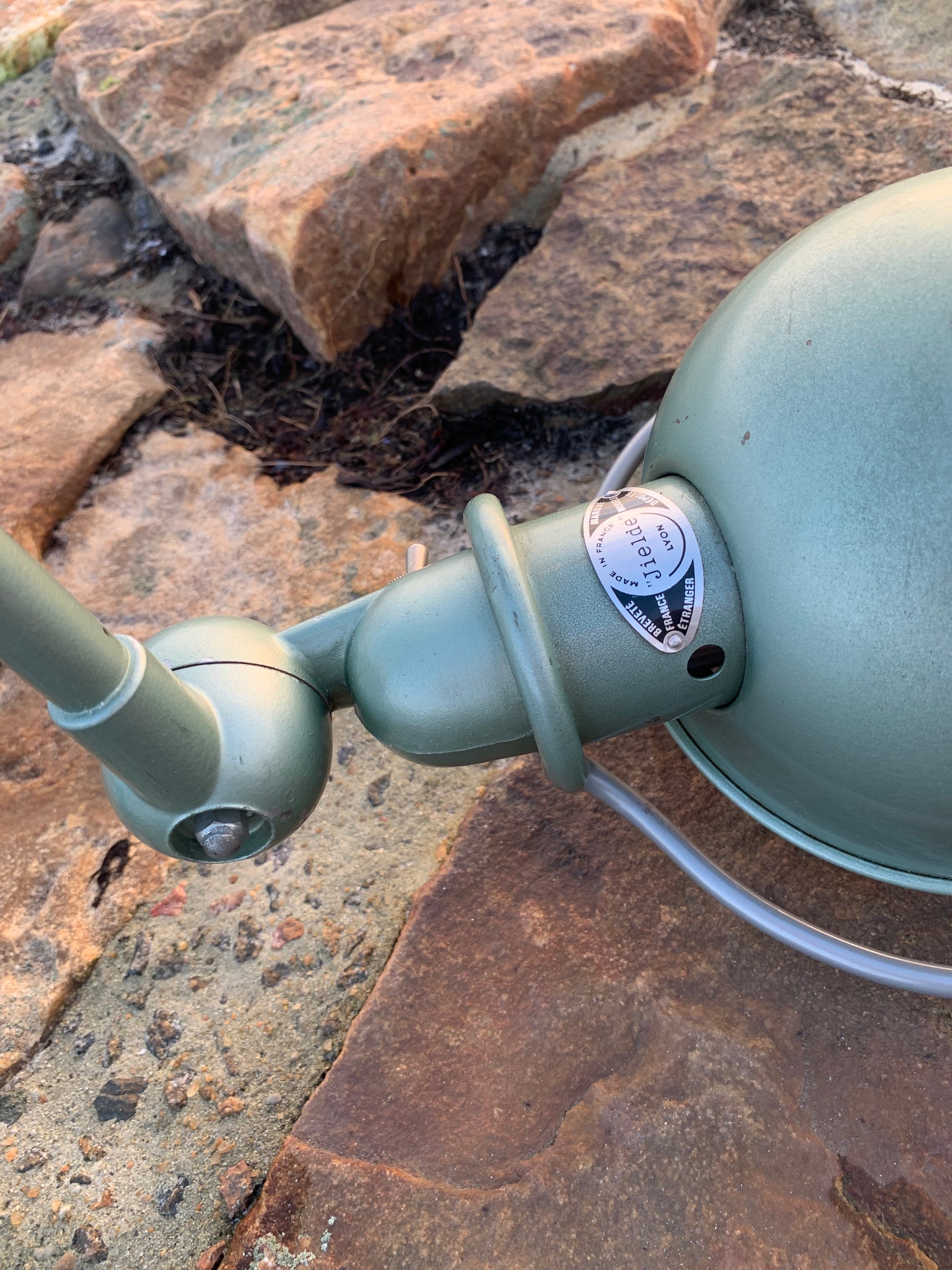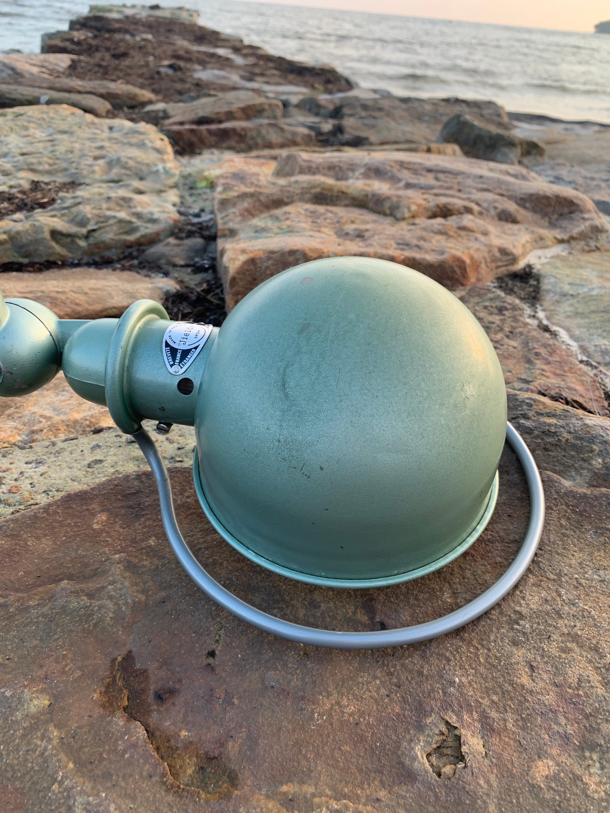 Skøn klassisk Jieldé lampe i en lækker grøn farve. Lampen har en smule aldersrelaterede brugsspor, som sådan en lampe (efter vores smag) gerne må have.