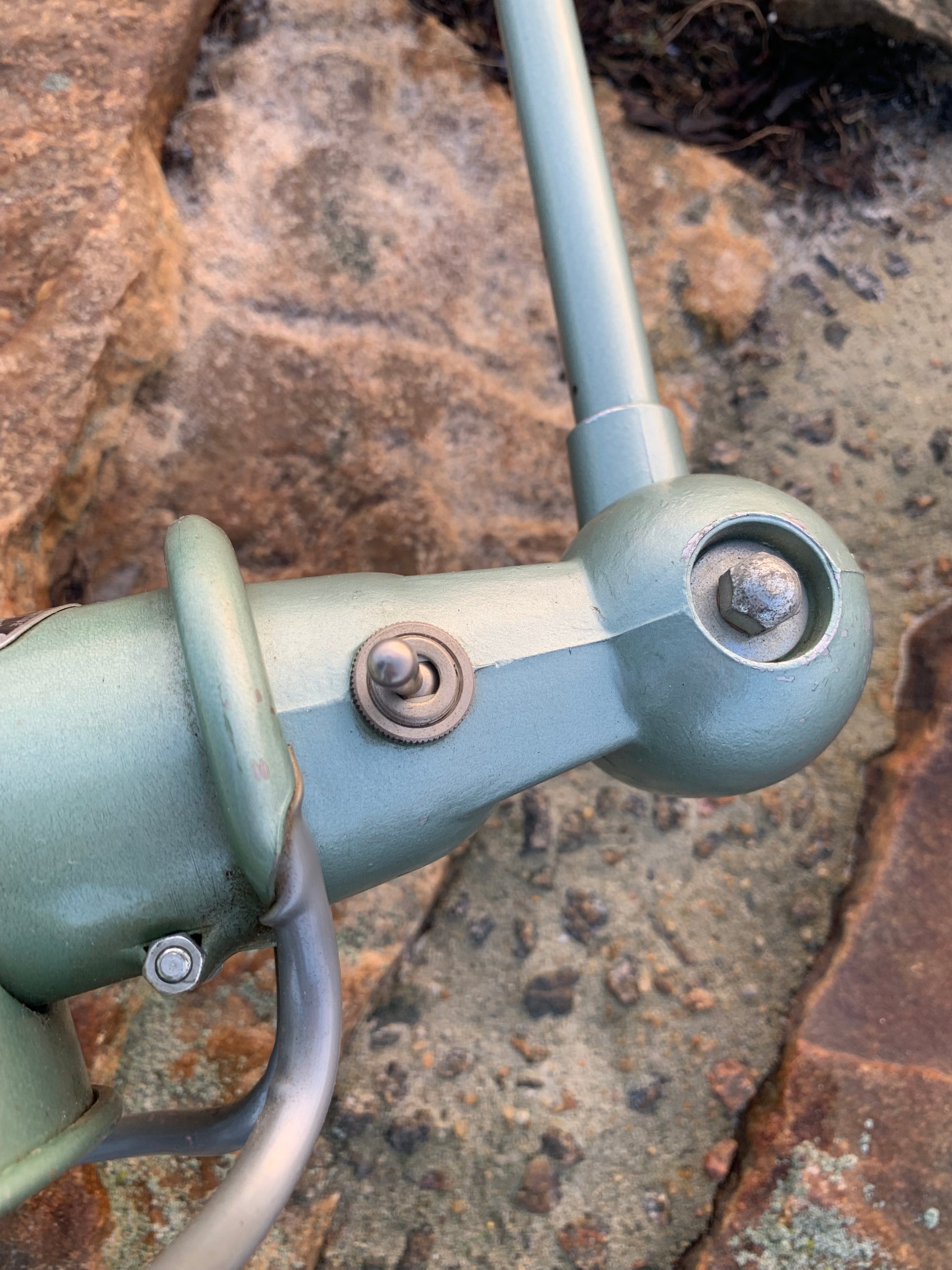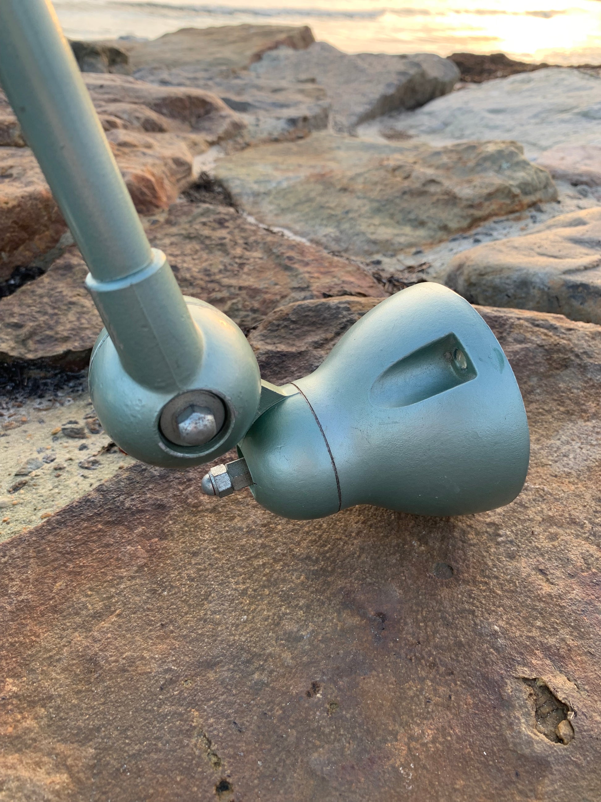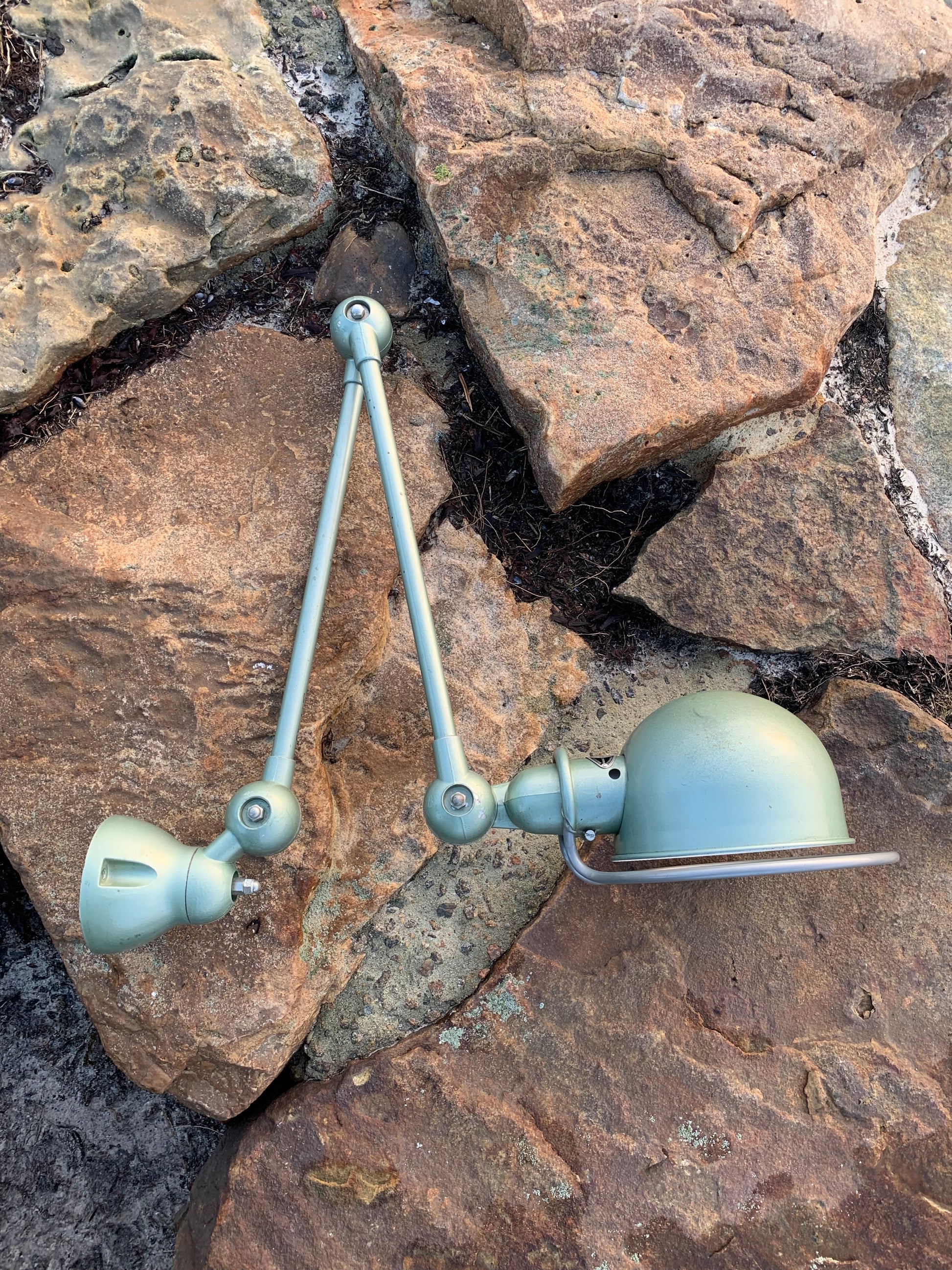 Skøn klassisk Jieldé lampe i en lækker grøn farve. Lampen har en smule aldersrelaterede brugsspor, som sådan en lampe (efter vores smag) gerne må have.