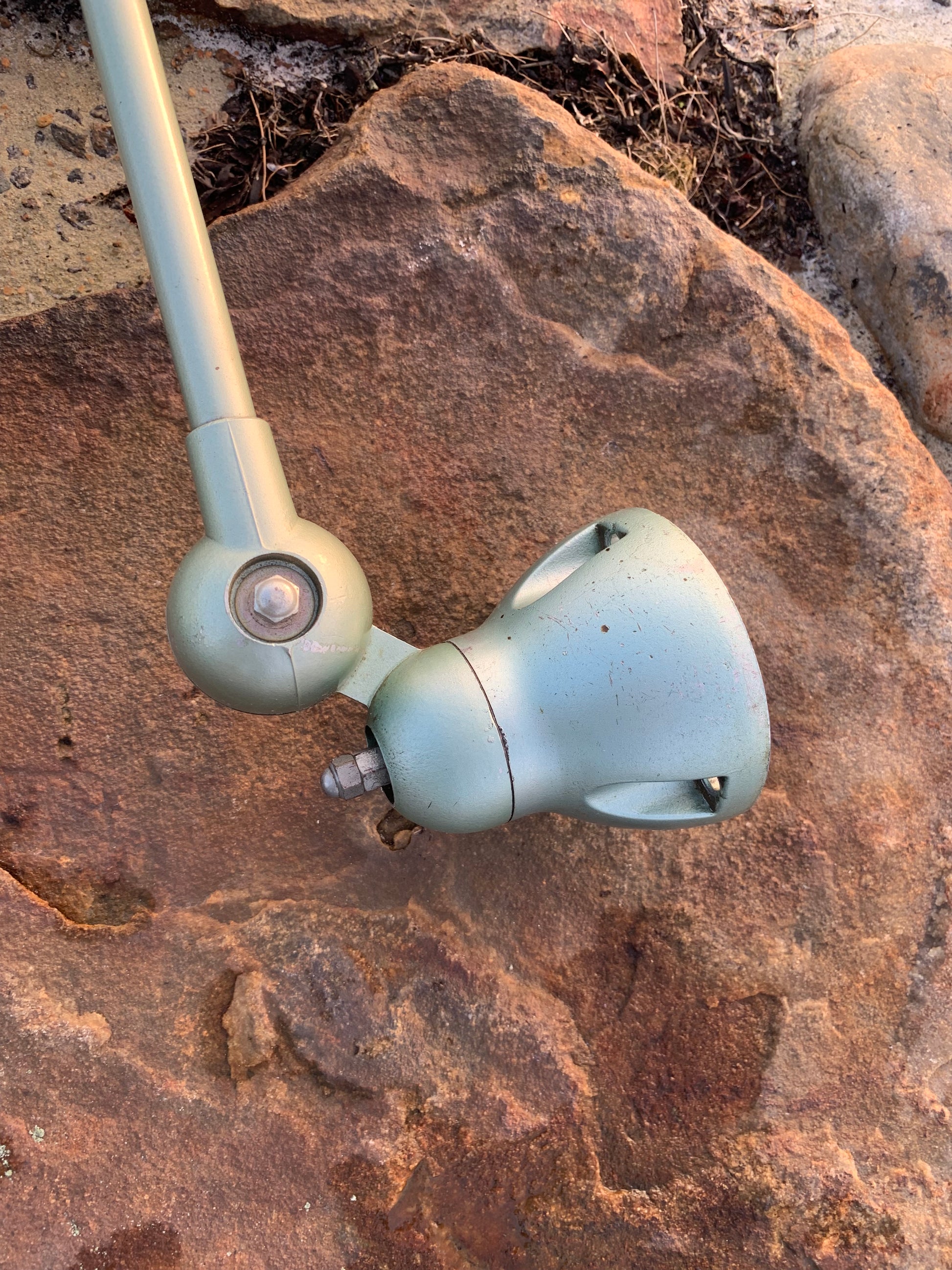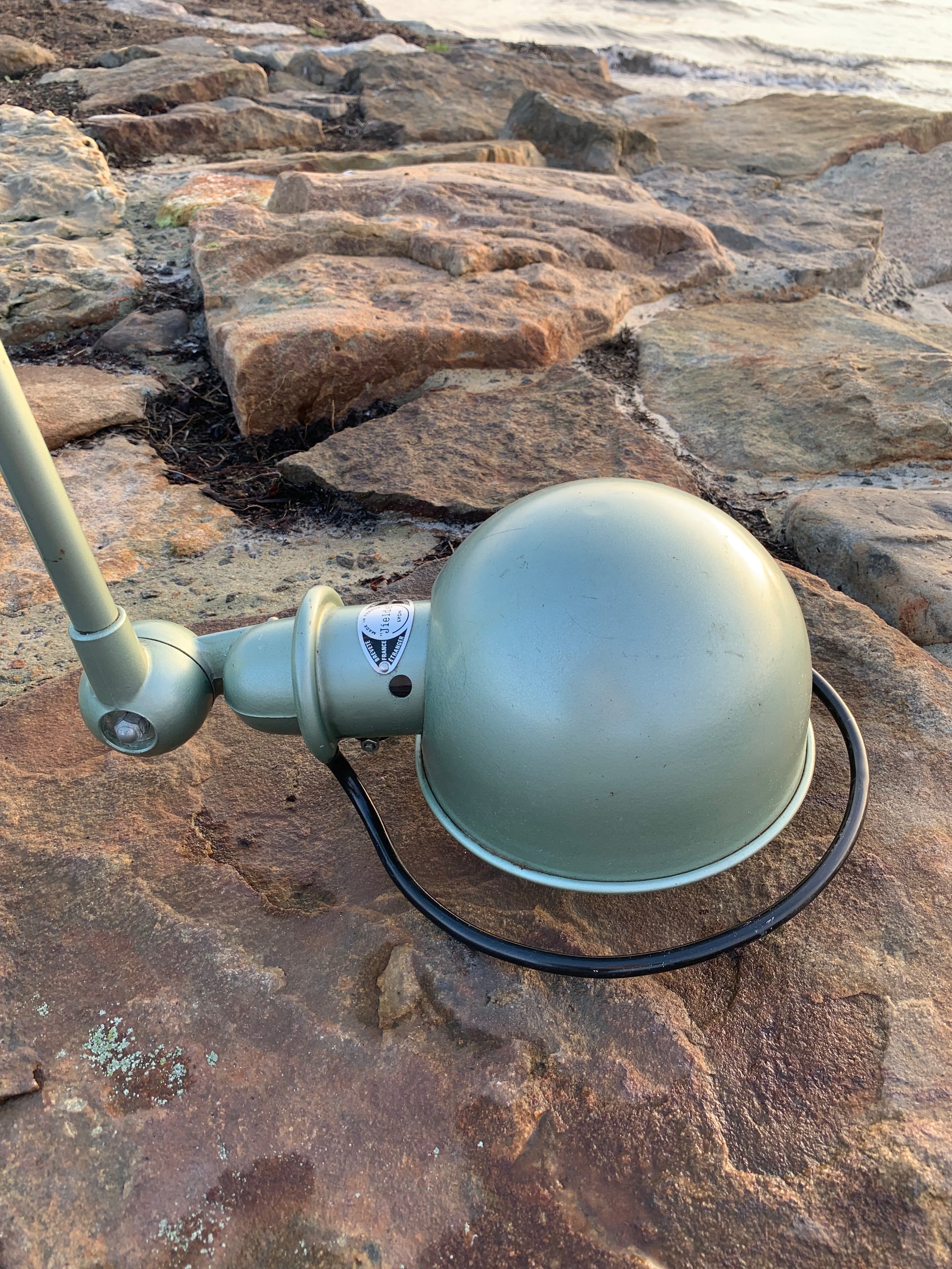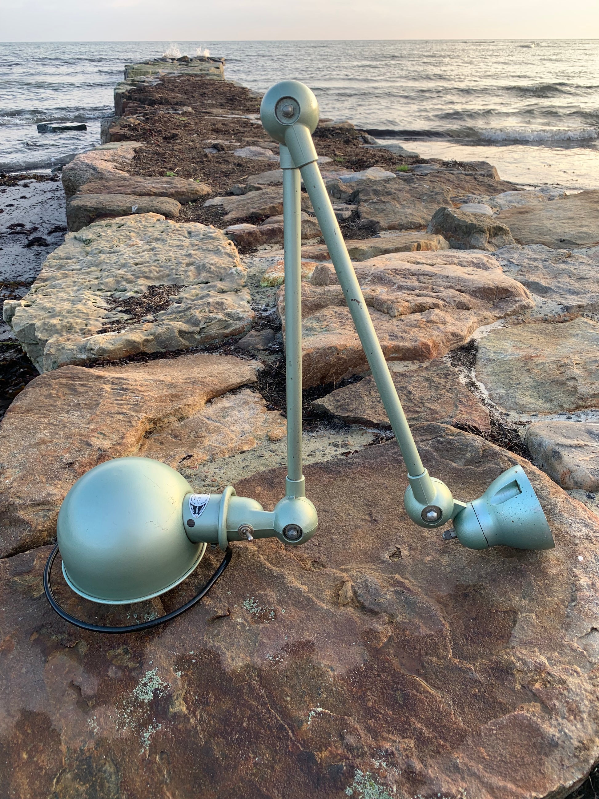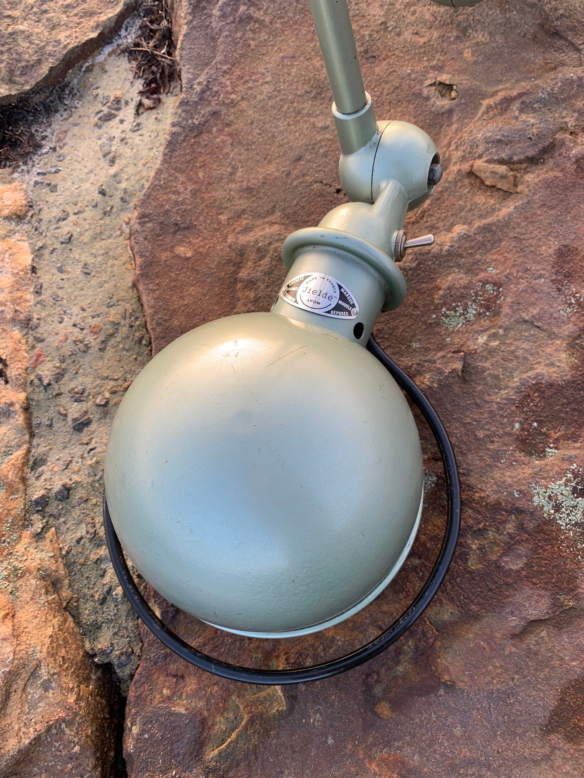 Skøn klassisk Jieldé lampe i en lækker grøn farve. Lampen har en smule aldersrelaterede brugsspor, som sådan en lampe (efter vores smag) gerne må have.