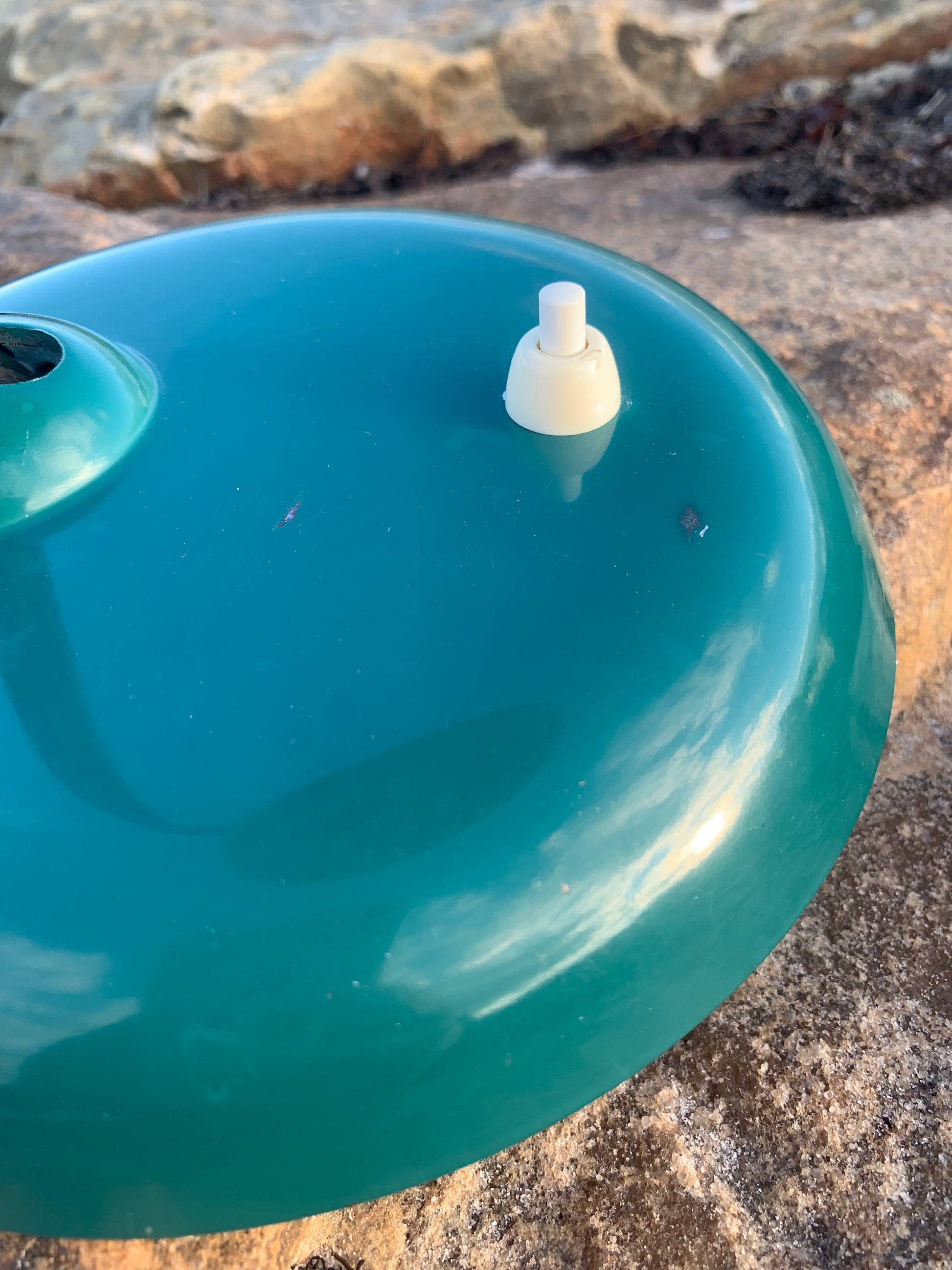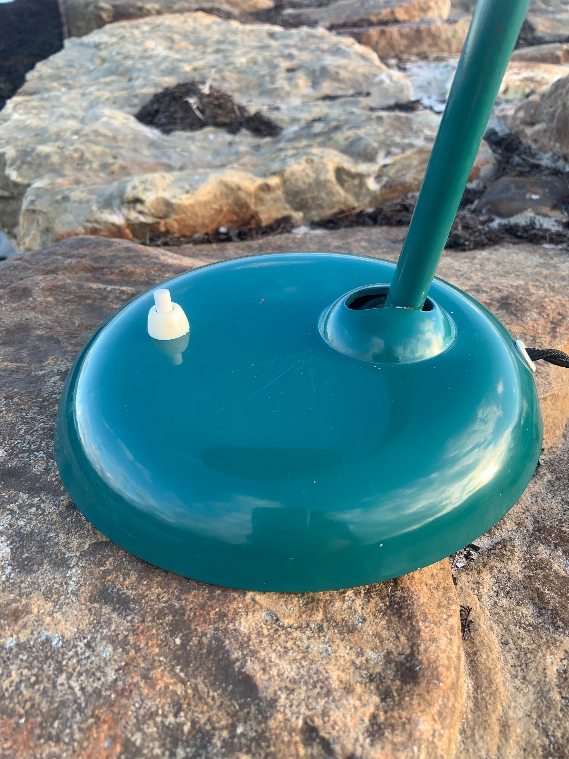 Dette eksemplar fremstår med den originale lakering og nye kabler. Lampen har lidt aldersrelaterede brugsspor, som sådan en lampe (efter vores smag) nærmest bør have.