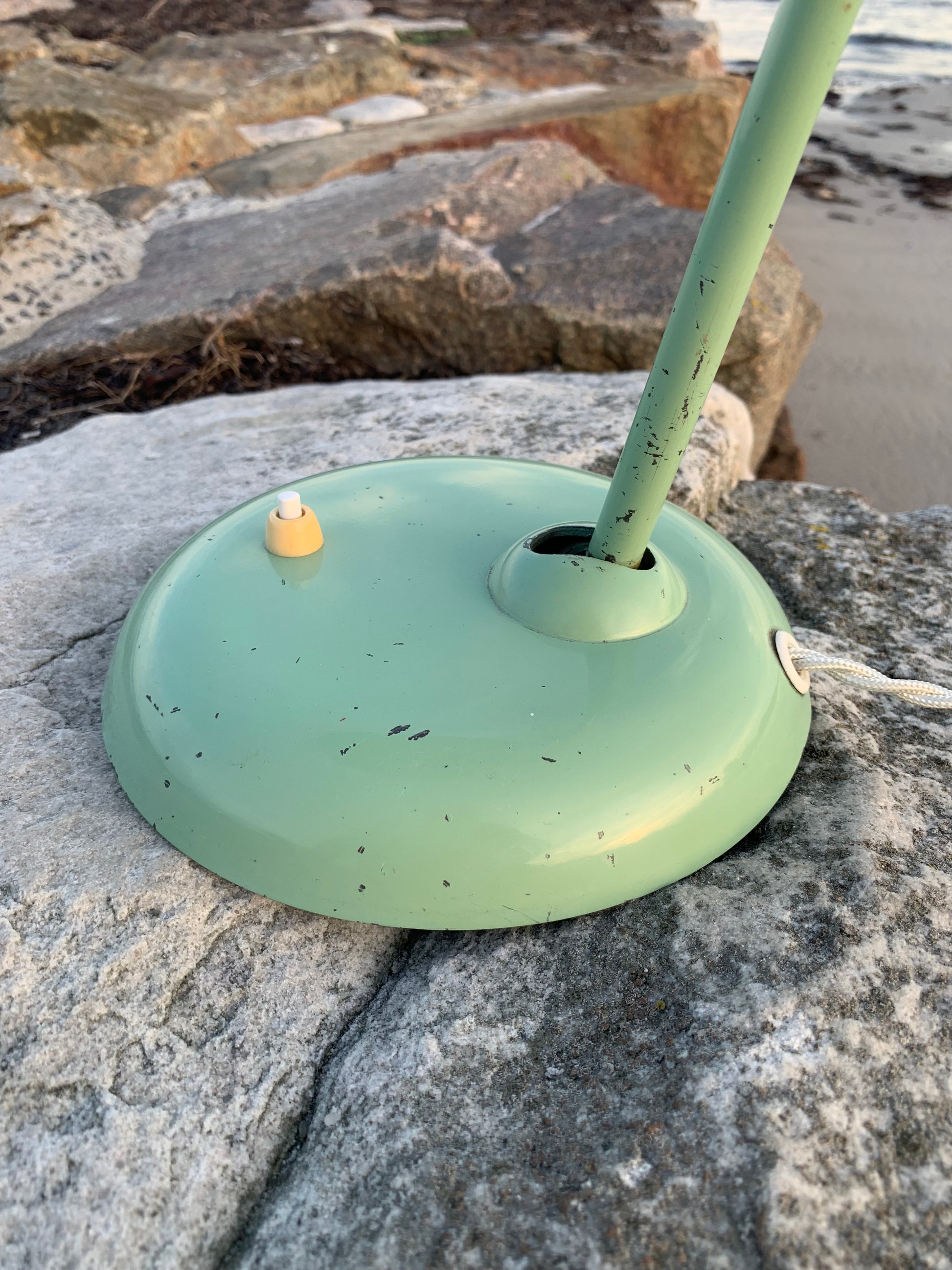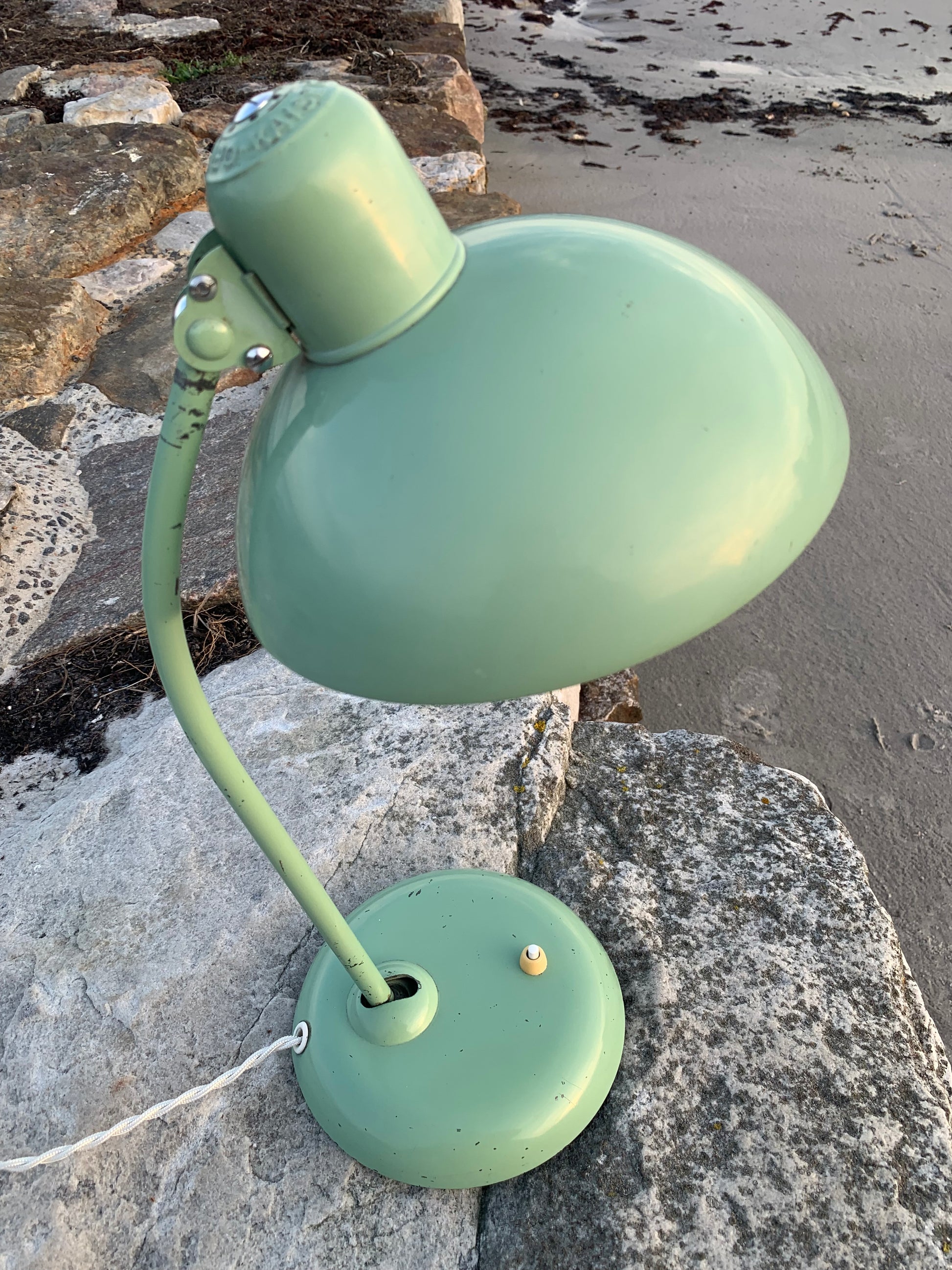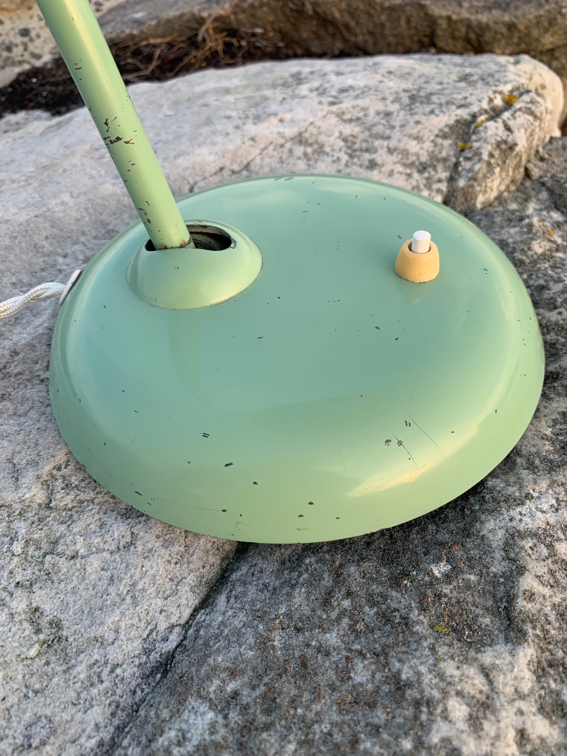 Dette eksemplar fremstår med den originale lakering og nye kabler. Lampen har aldersrelaterede brugsspor, som sådan en lampe (efter vores smag) nærmest bør have. Den henvender sig til dig der ser det perfekte i det uperfekte.