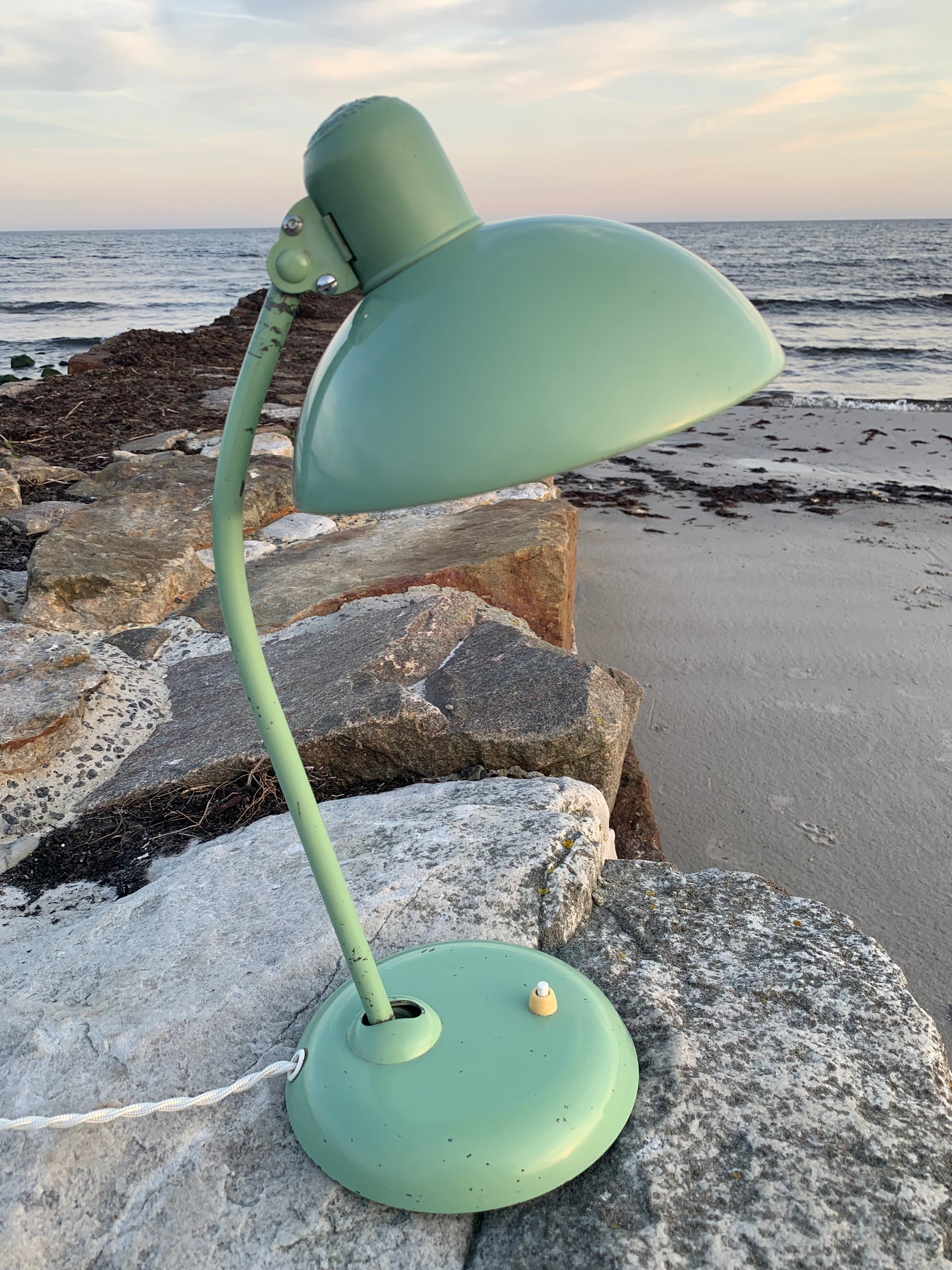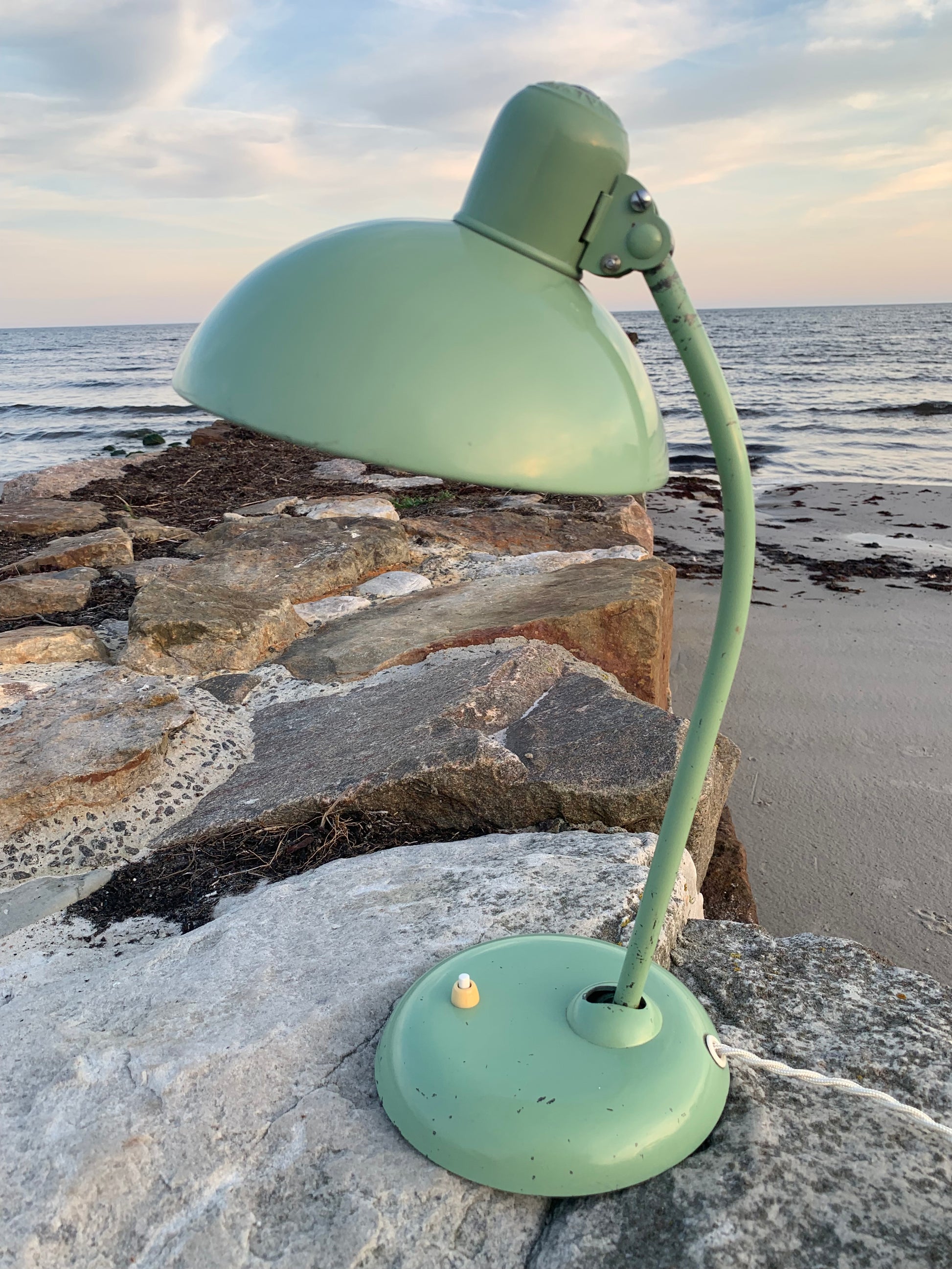 Skøn Kaiser Idell lampe designet af Christian Dell. Denne smukke klassiker henvender sig til dig, der ser det smukke i et godt og tidsløst design. De fine gamle Kaiser Idell lamper er et vidnesbyrd om god kvalitet samt godt håndværk. Disse skønne gamle vintagelamper har ofte lidt aldersrelaterede brugsspor, der både forstærker ægtheden og originaliteten. Disse spor både vidner om samt fortæller historien om lampens rejse igennem flere årtier.
