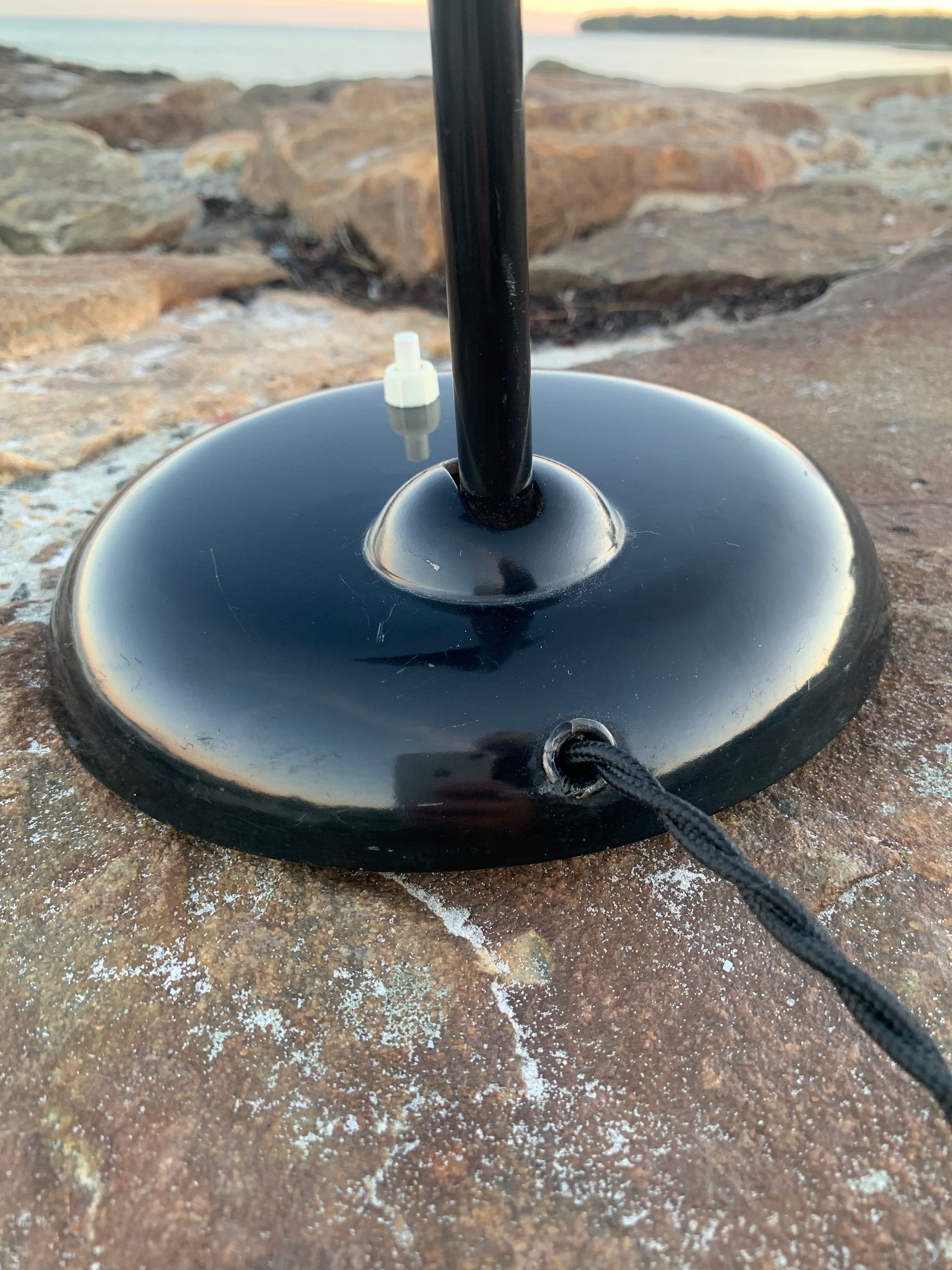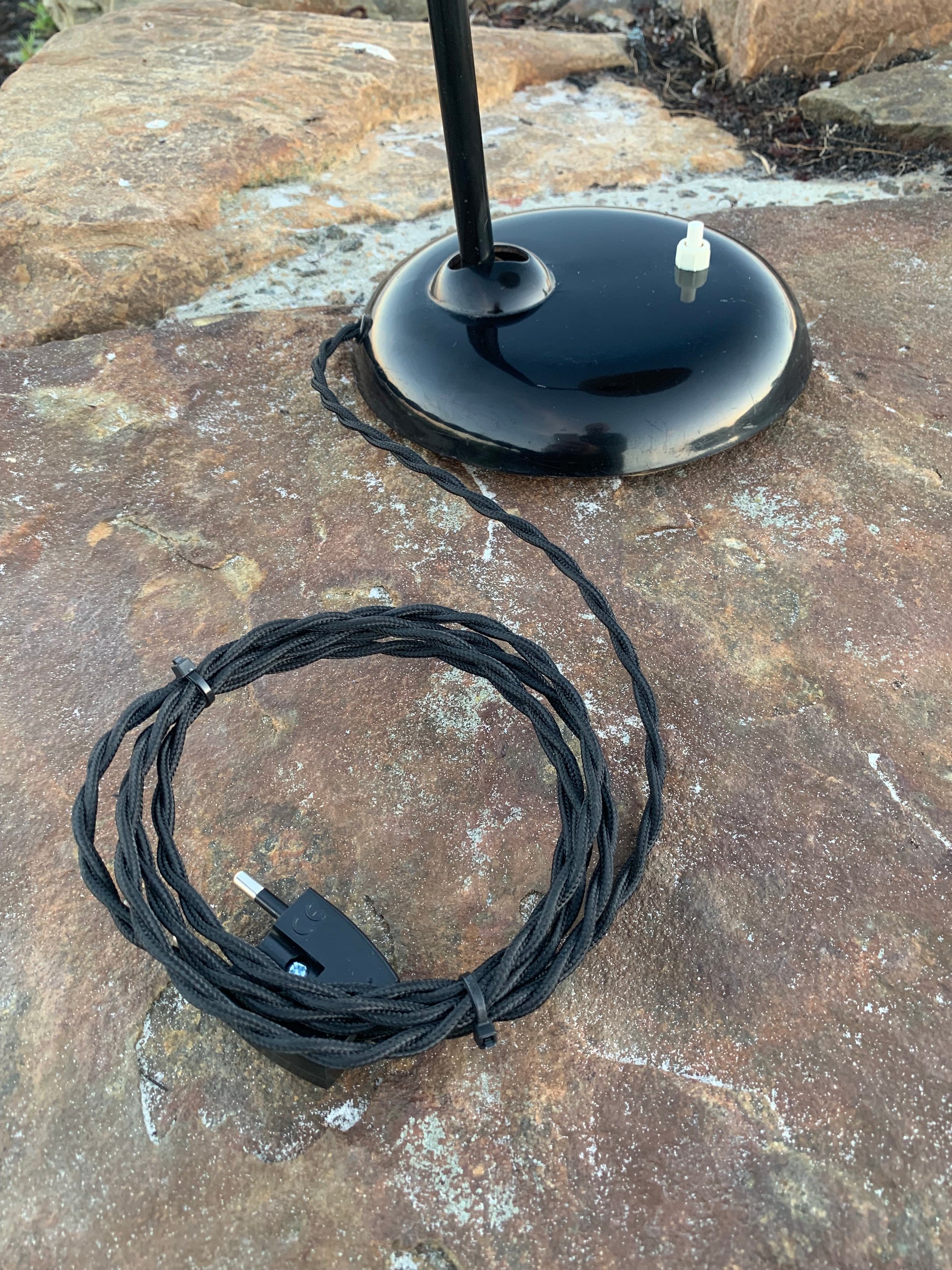 Dette eksemplar fremstår med den originale lakering og nye kabler. Lampen har lidt aldersrelaterede brugsspor, som sådan en lampe (efter vores smag) nærmest bør have.
