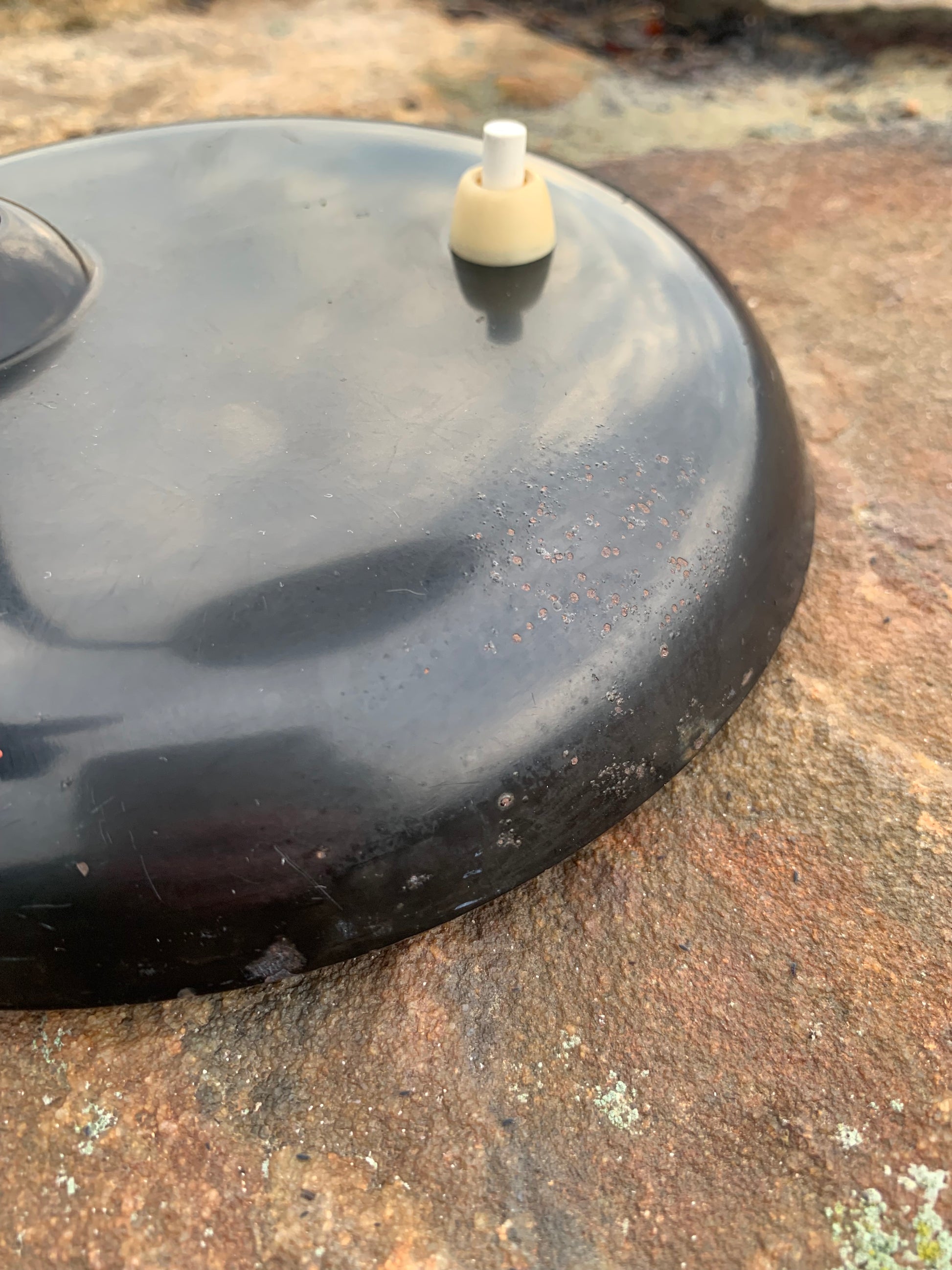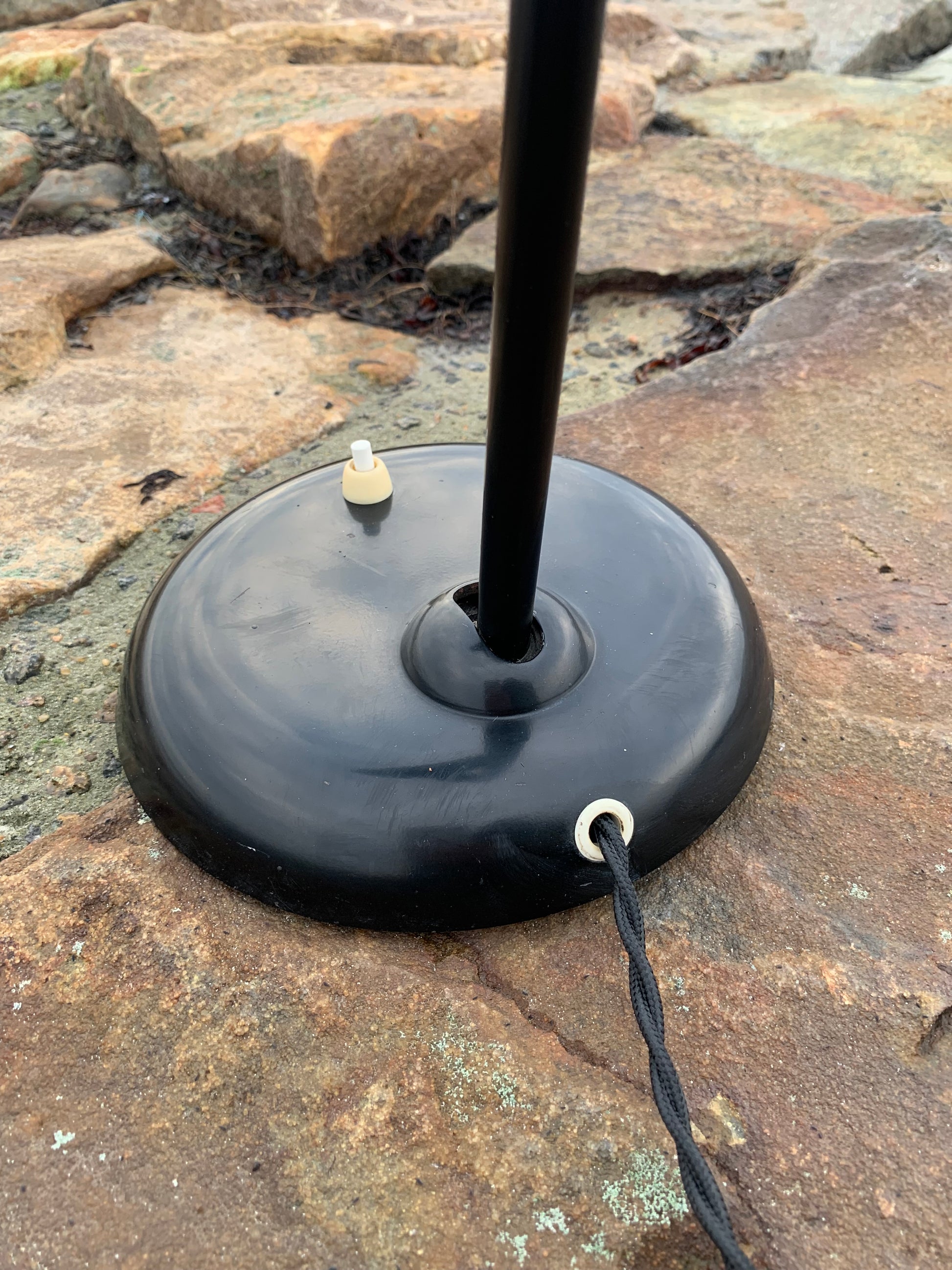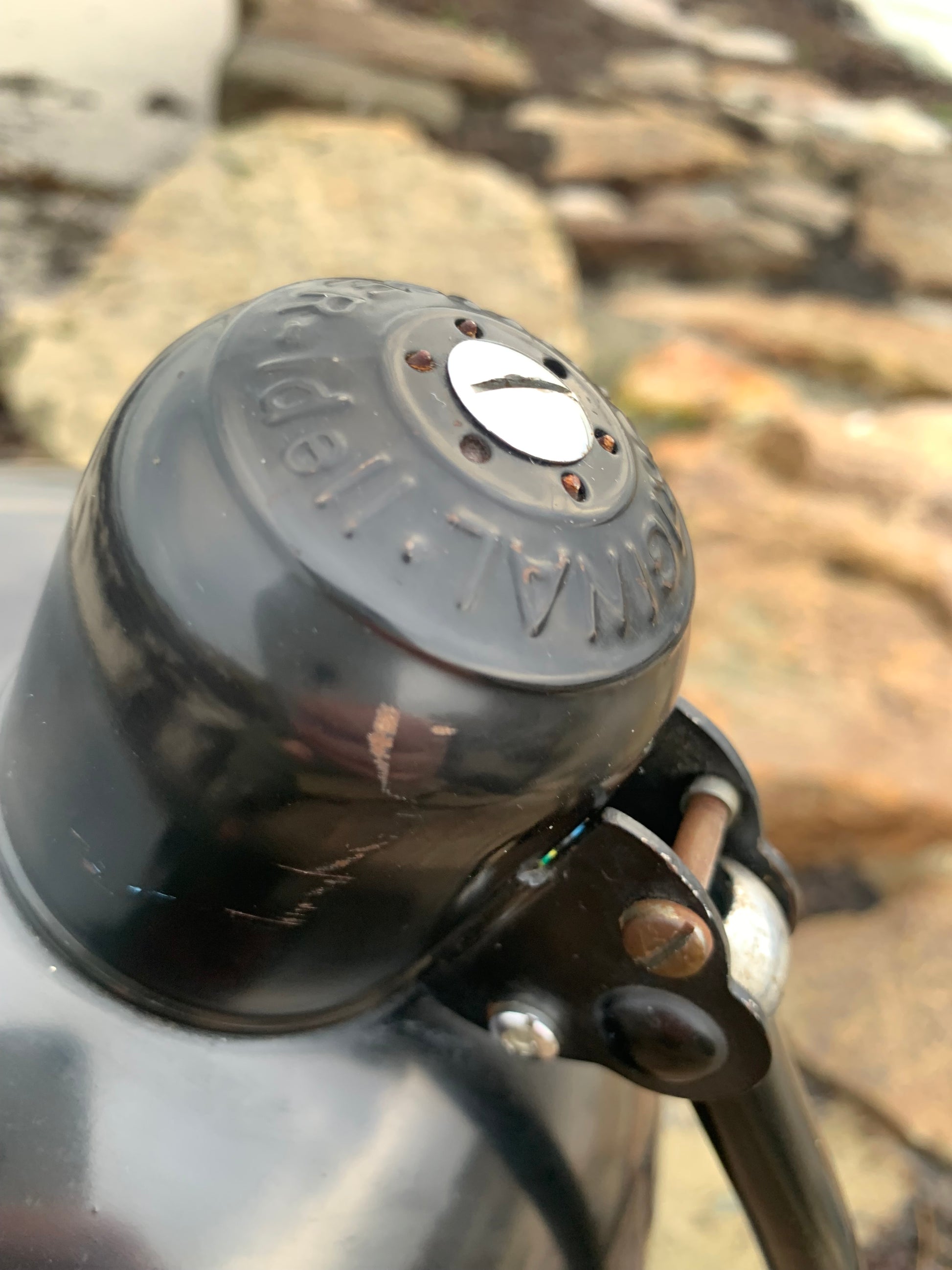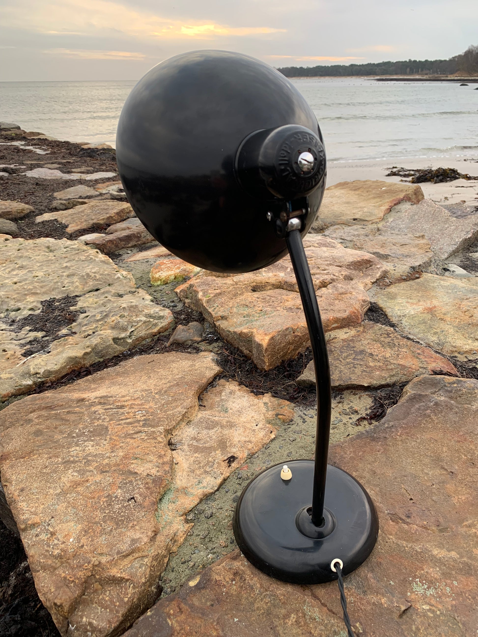 Dette eksemplar fremstår i den originale lakering og med nye kabler. Lampen har lidt aldersrelaterede brugsspor, som sådan en lampe (efter vores smag) nærmest bør have.