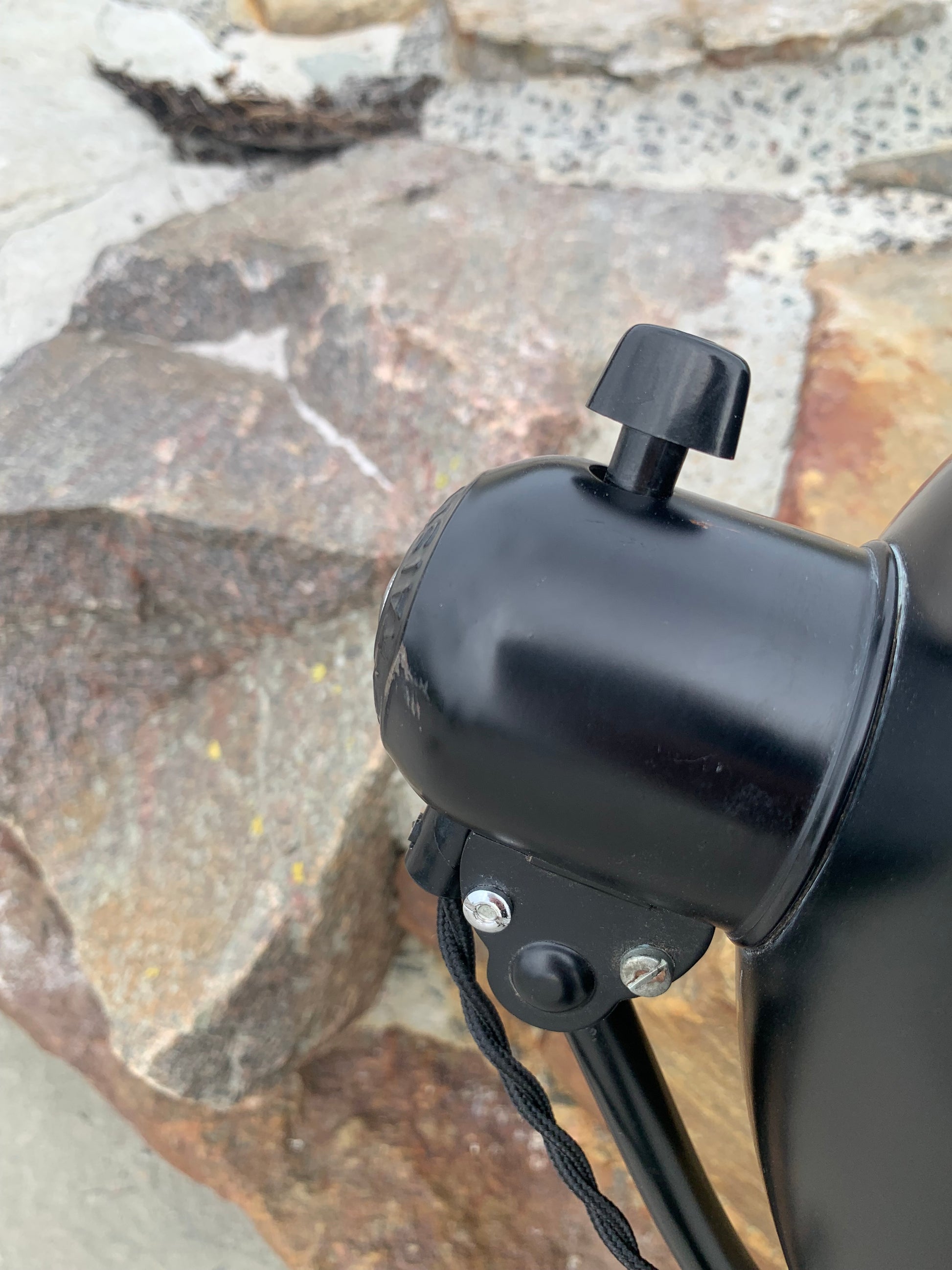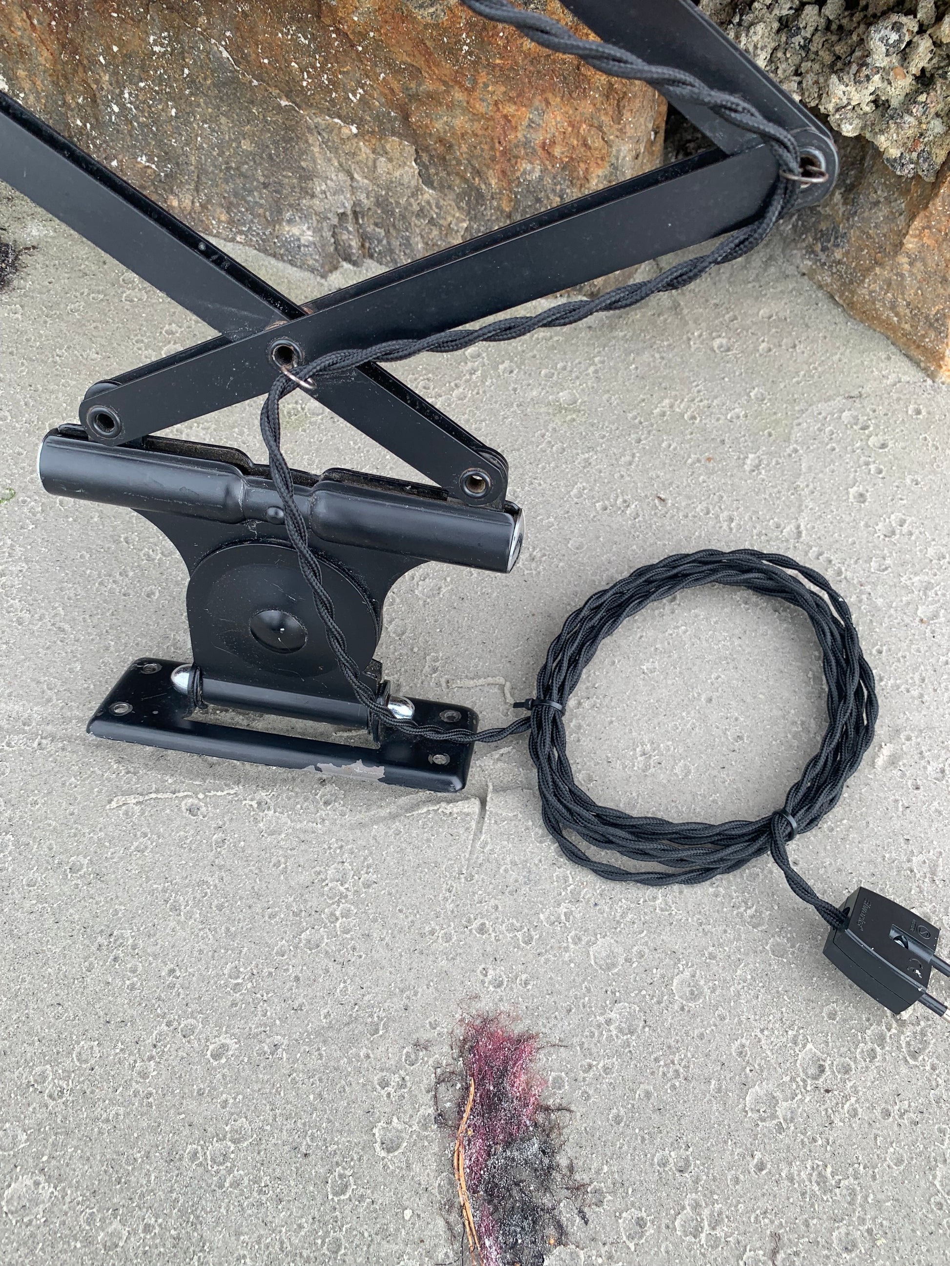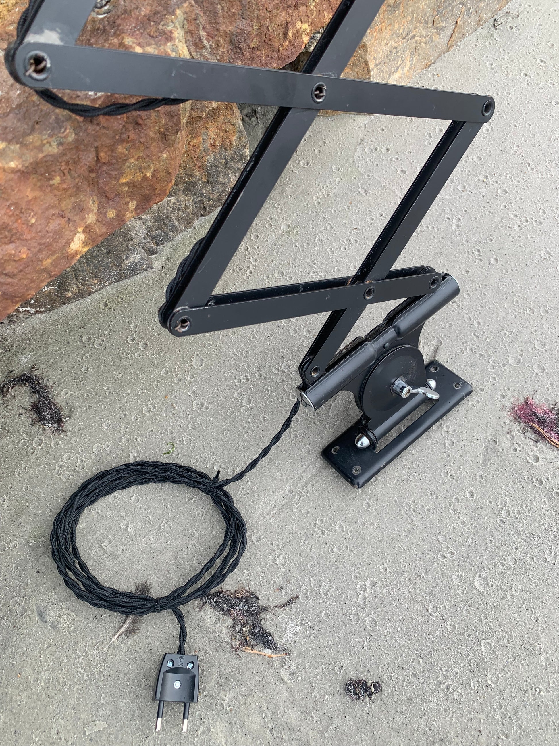 Dette eksemplar fremstår med den originale lakering og nye kabler. Lampen har aldersrelaterede brugsspor, som sådan en lampe (efter vores smag) nærmest bør have.