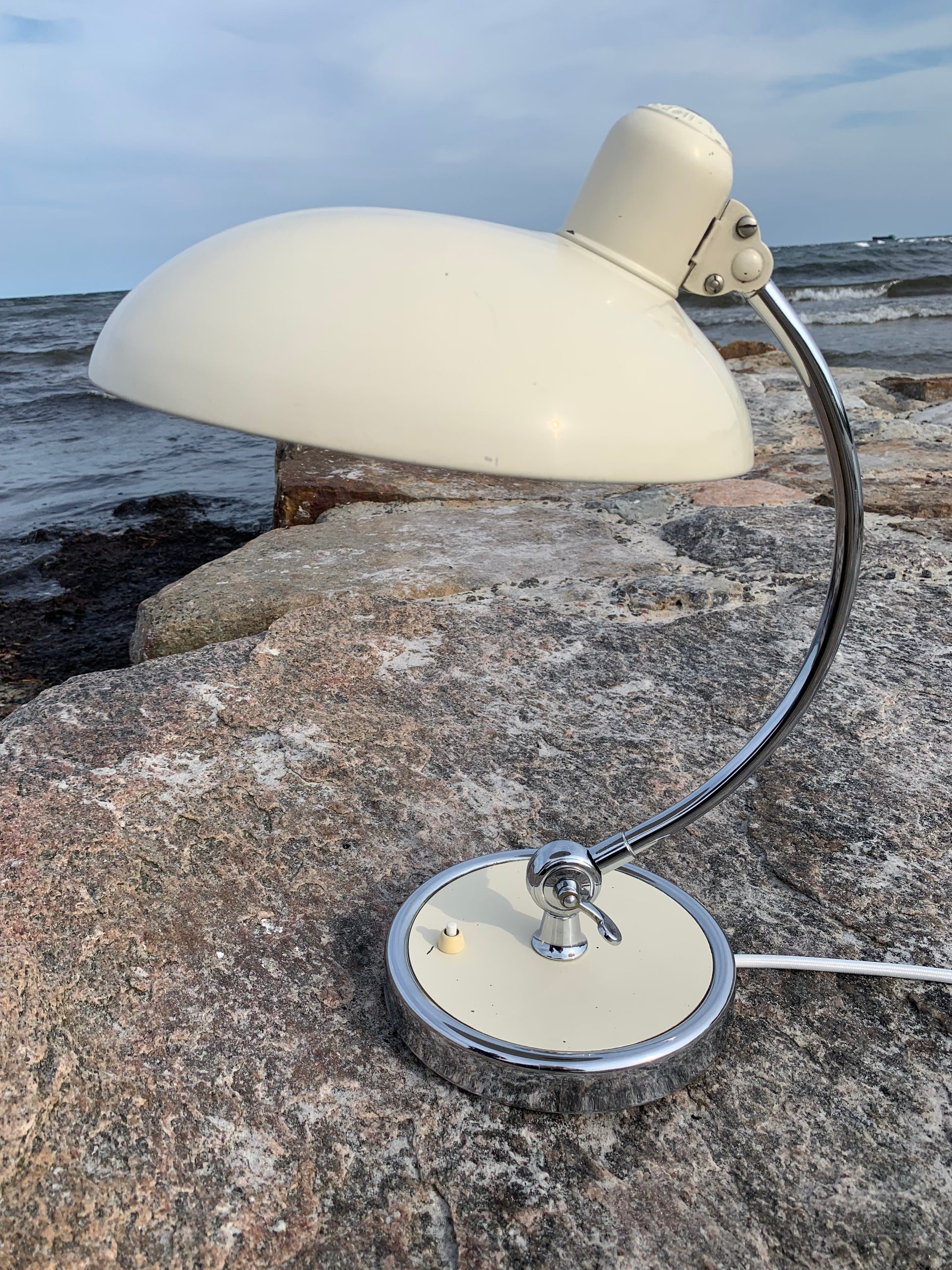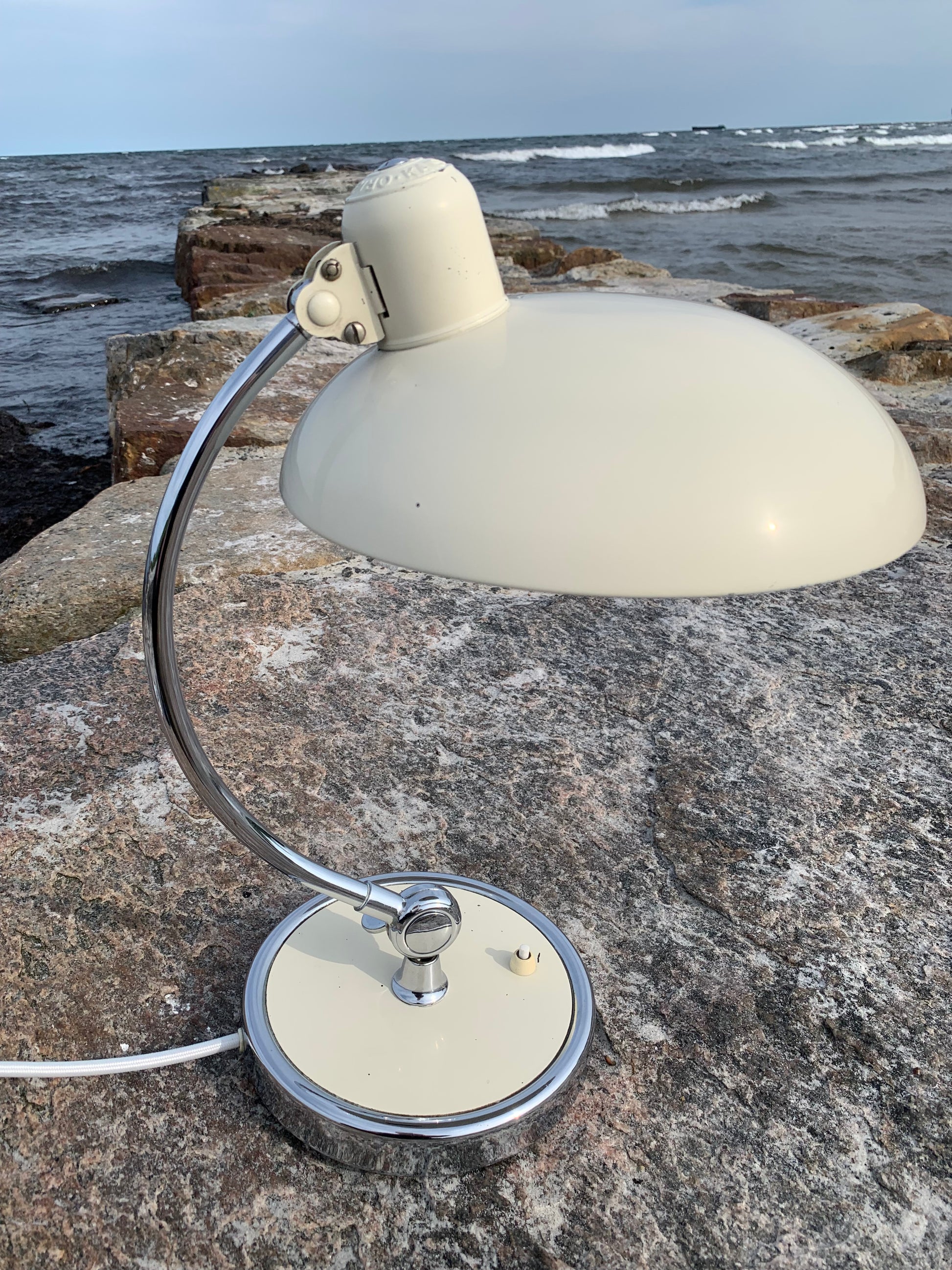 Skøn Kaiser Idell lampe designet af Christian Dell. Denne smukke lampe henvender sig til dig, der ser det smukke i et godt og tidsløst design. De fine gamle Kaiser Idell lamper er et vidnesbyrd om god kvalitet samt godt håndværk. Disse skønne gamle vintagelamper har ofte lidt aldersrelaterede brugsspor, der både forstærker ægtheden og originaliteten. Disse spor både vidner om samt fortæller historien om lampens rejse igennem mange årtier.
