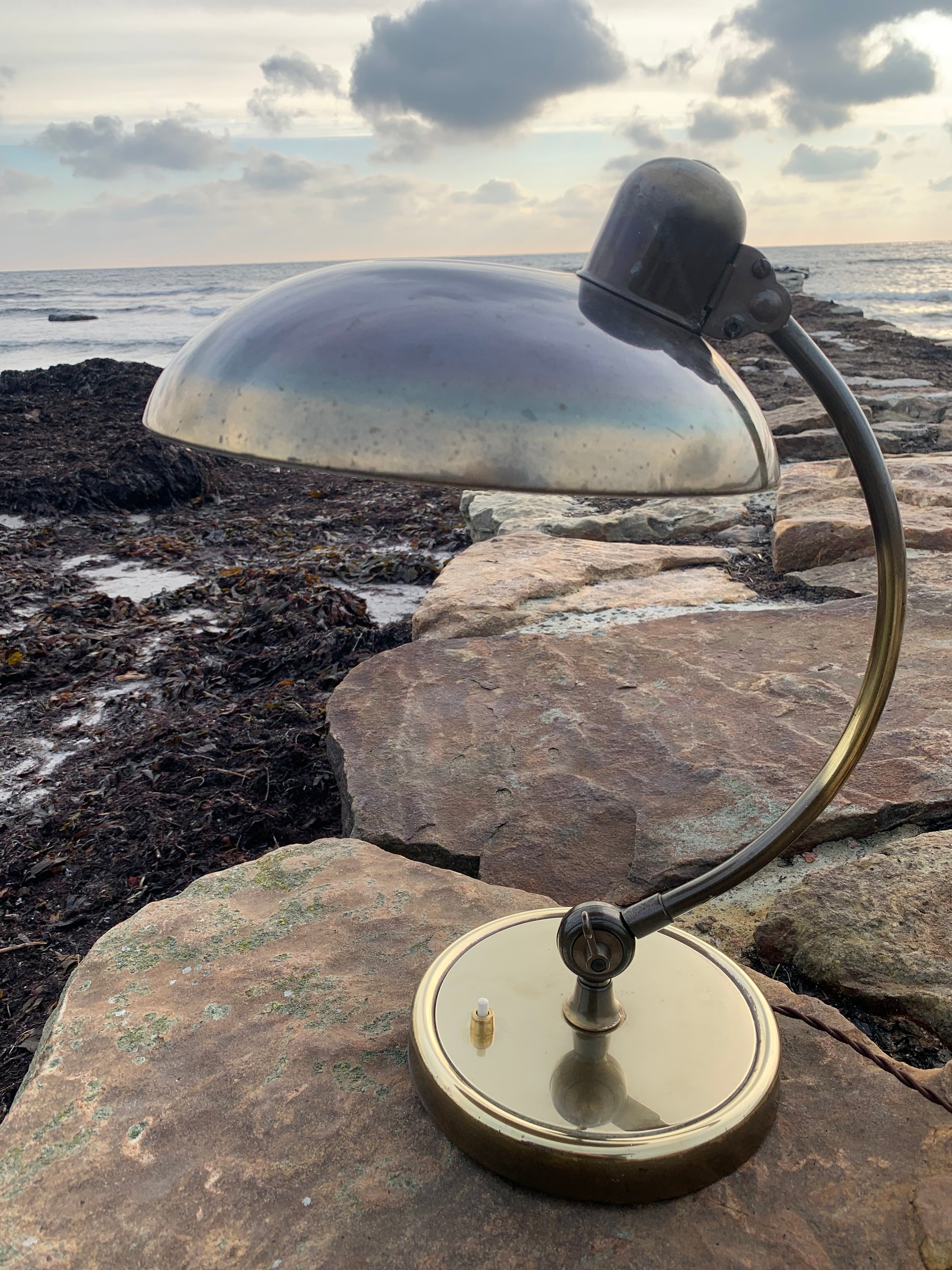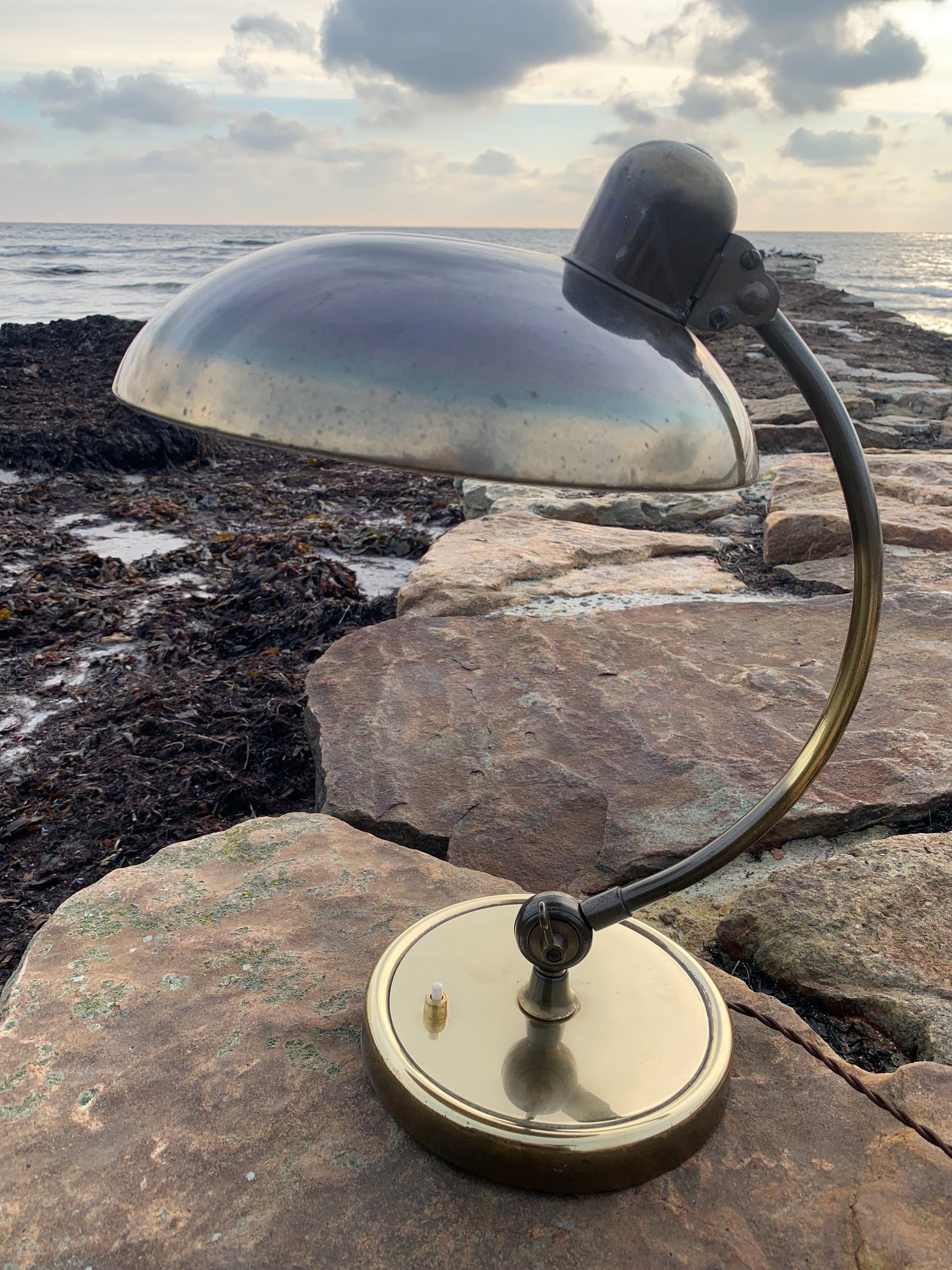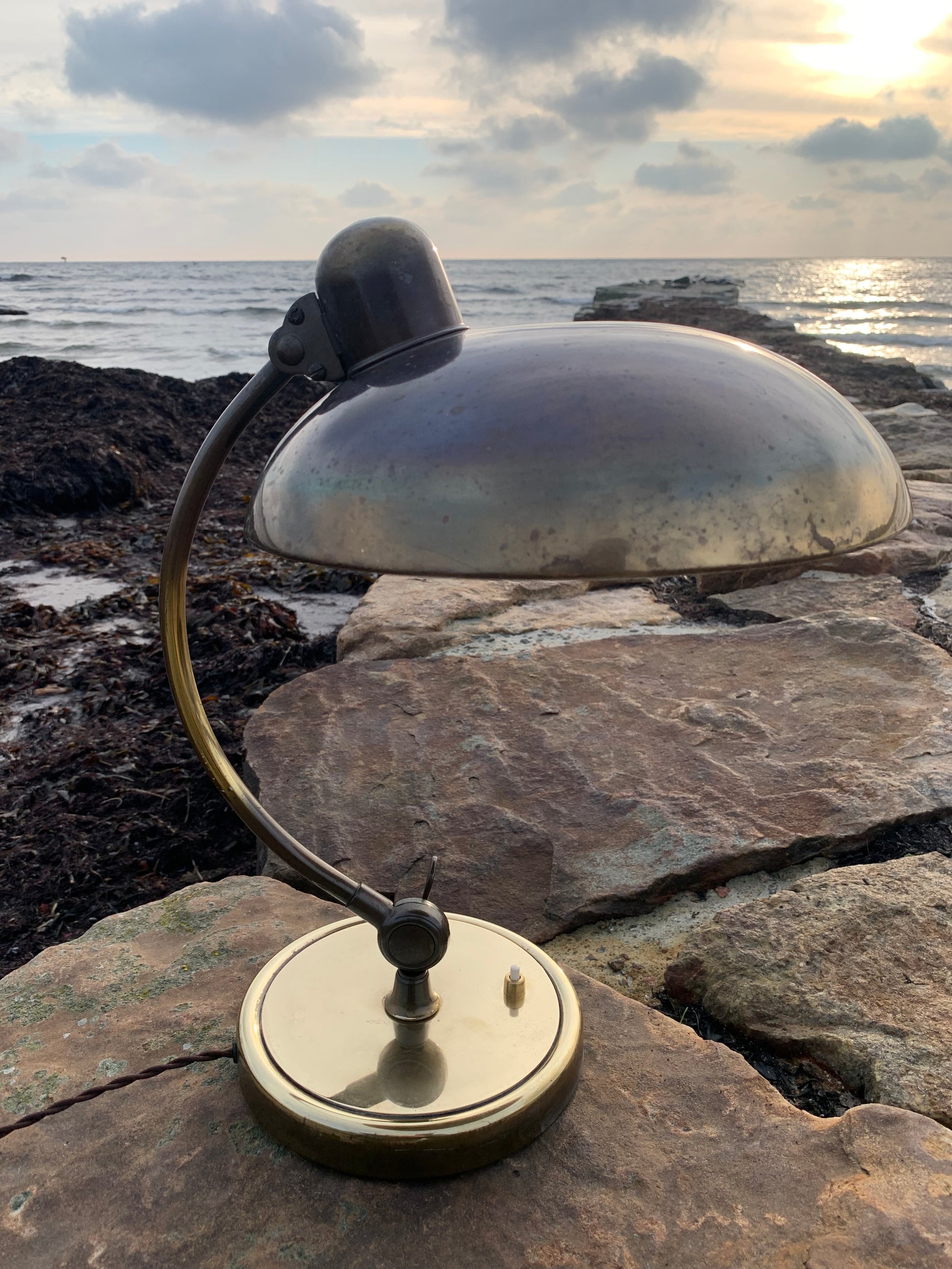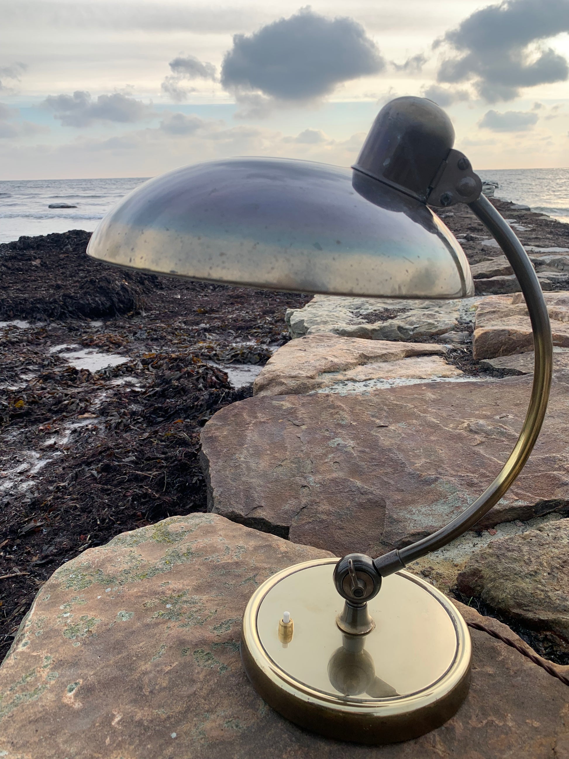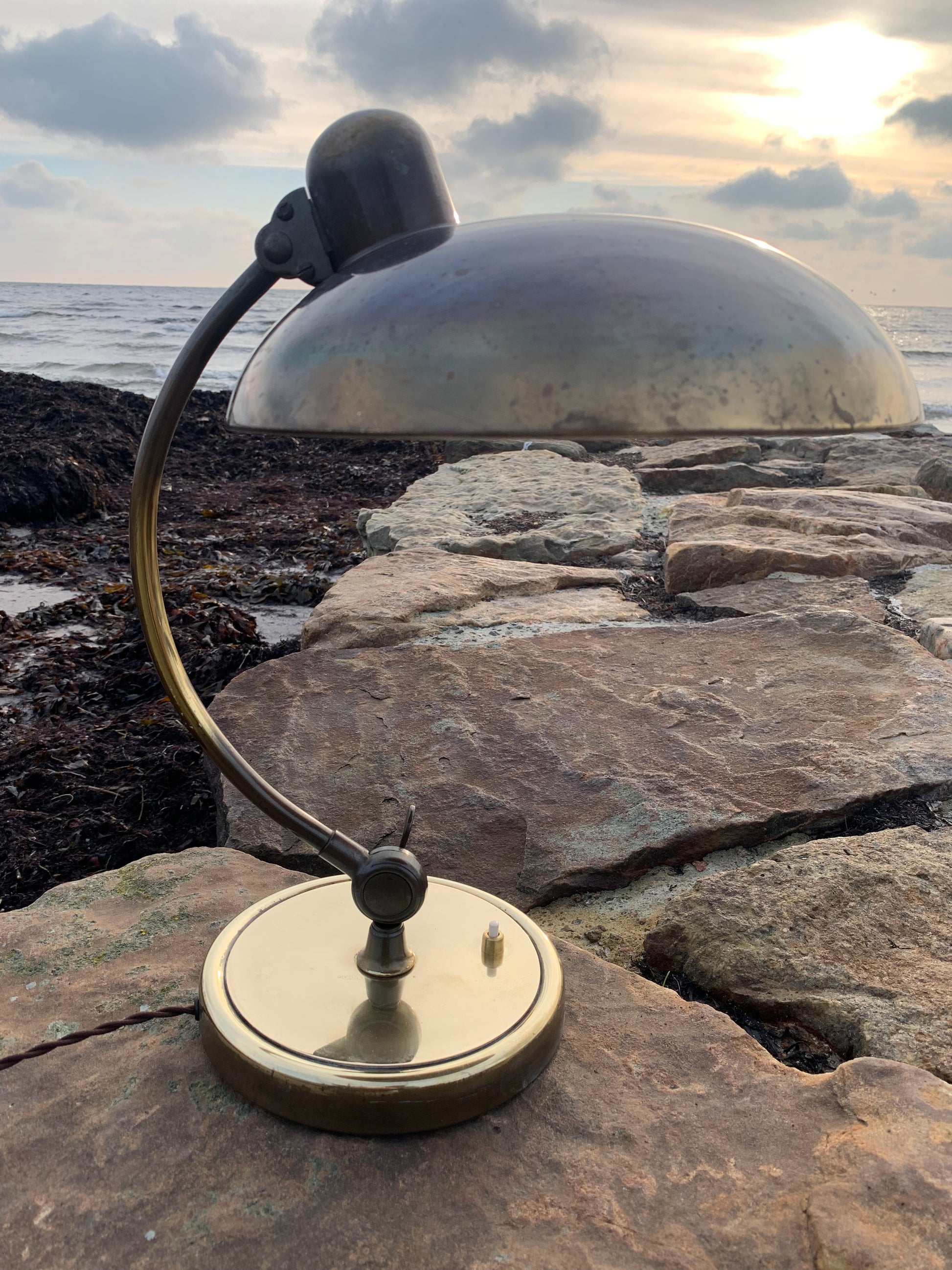 Skøn Kaiser Idell lampe designet af Christian Dell. Denne smukke lampe henvender sig til dig, der ser det smukke i et godt og tidsløst design. De fine gamle Kaiser Idell lamper er et vidnesbyrd om god kvalitet samt godt håndværk. Disse skønne gamle vintagelamper har ofte lidt aldersrelaterede brugsspor, der både forstærker ægtheden og originaliteten. Disse spor både vidner om samt fortæller historien om lampens rejse igennem mange årtier.