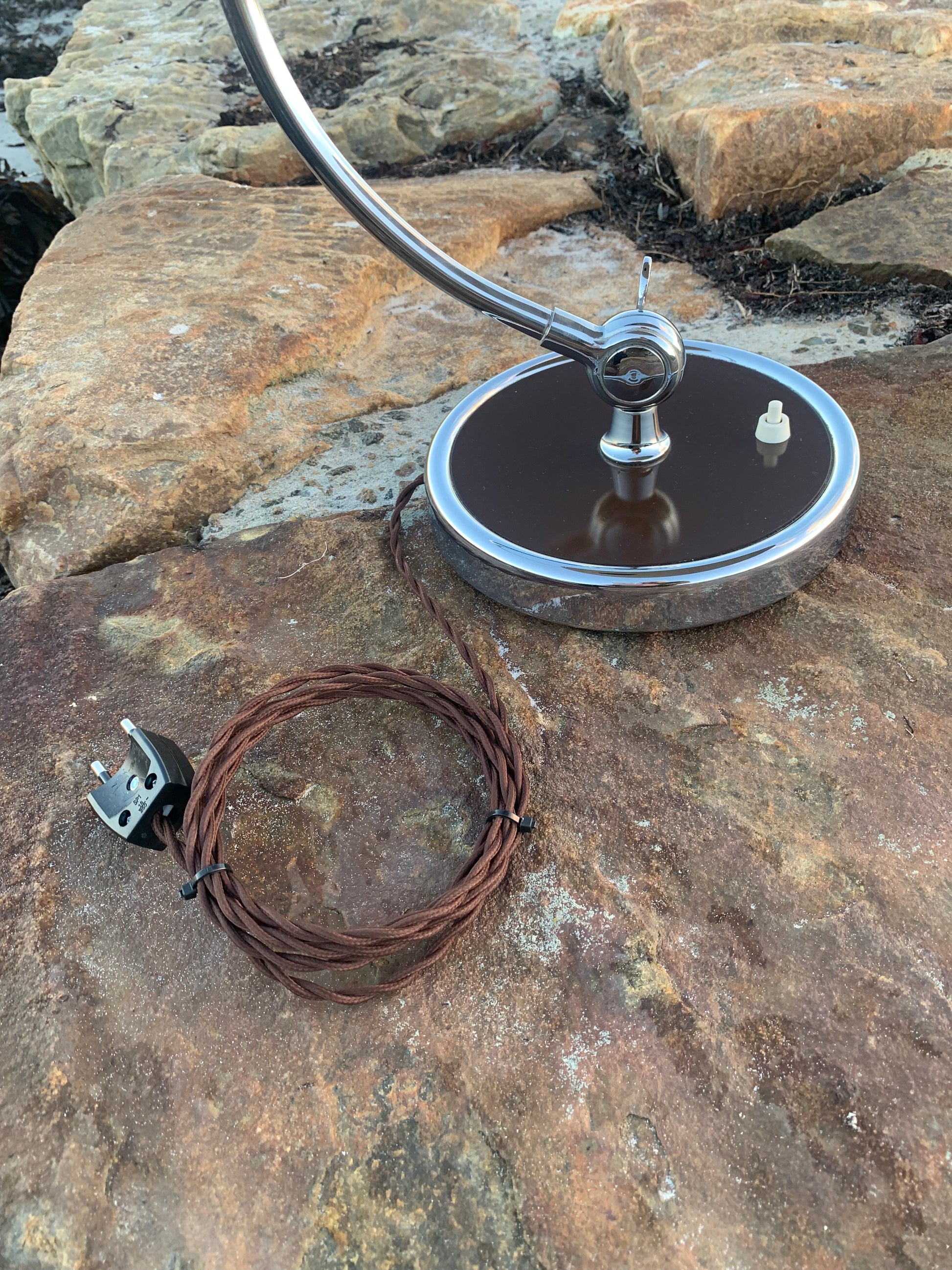 Dette eksemplar fremstår i den originale lakering og med nye kabler. Lampen har lidt aldersrelaterede brugsspor, som sådan en lampe (efter vores smag) nærmest bør have, men overordnet er den i en meget flot vintagestand.