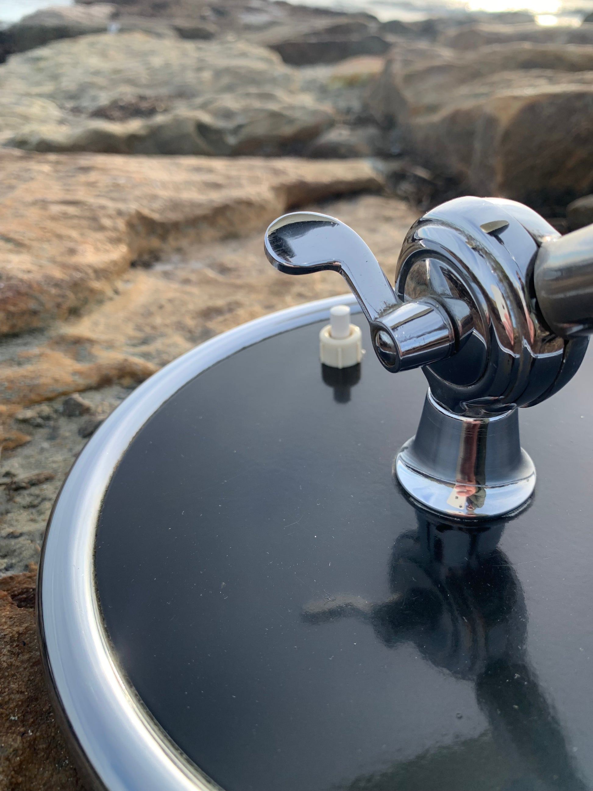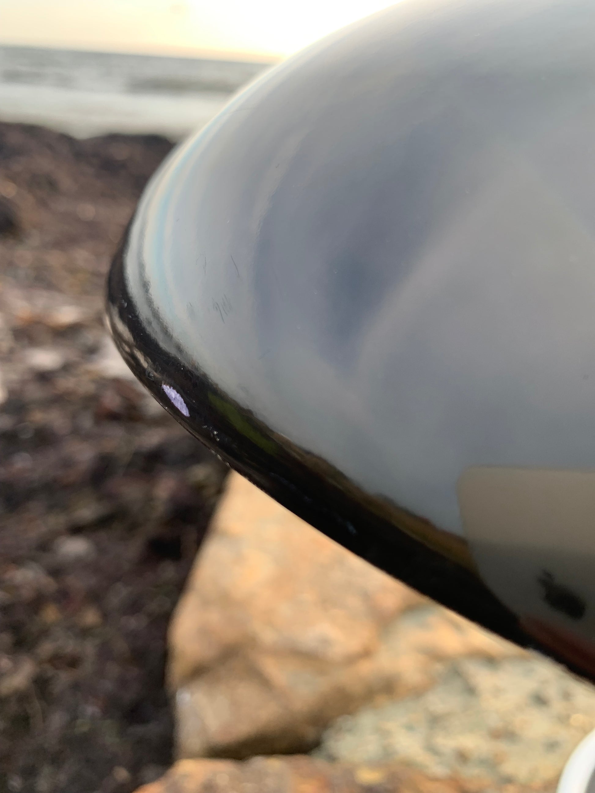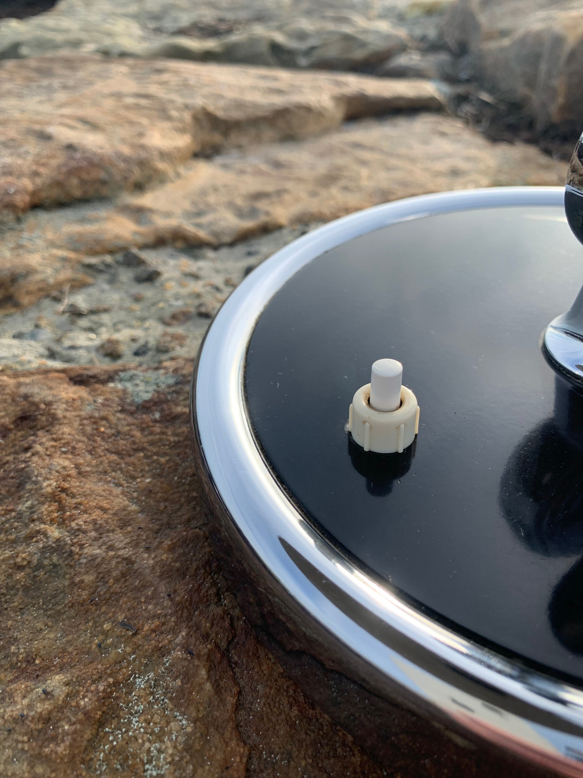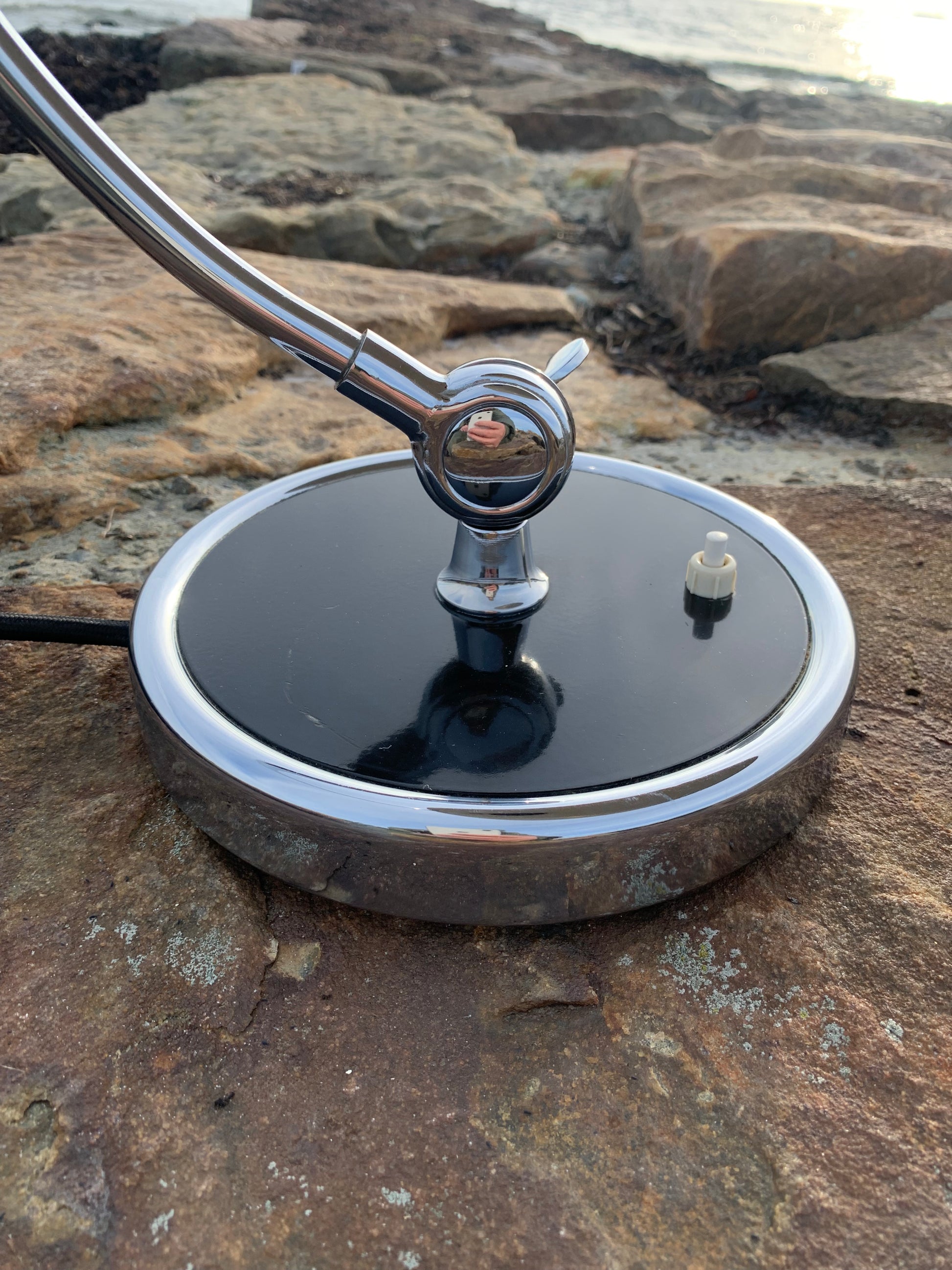 Dette eksemplar fremstår i den originale lakering og med nye kabler. Lampen har lidt aldersrelaterede brugsspor, som sådan en lampe (efter vores smagnærmest bør have) Denne har en ridse på foden samt lidt på kanten af skærmen (se foto) og derfor henvender lampen sig til dig der ser det perfekte i det uperfekte.
