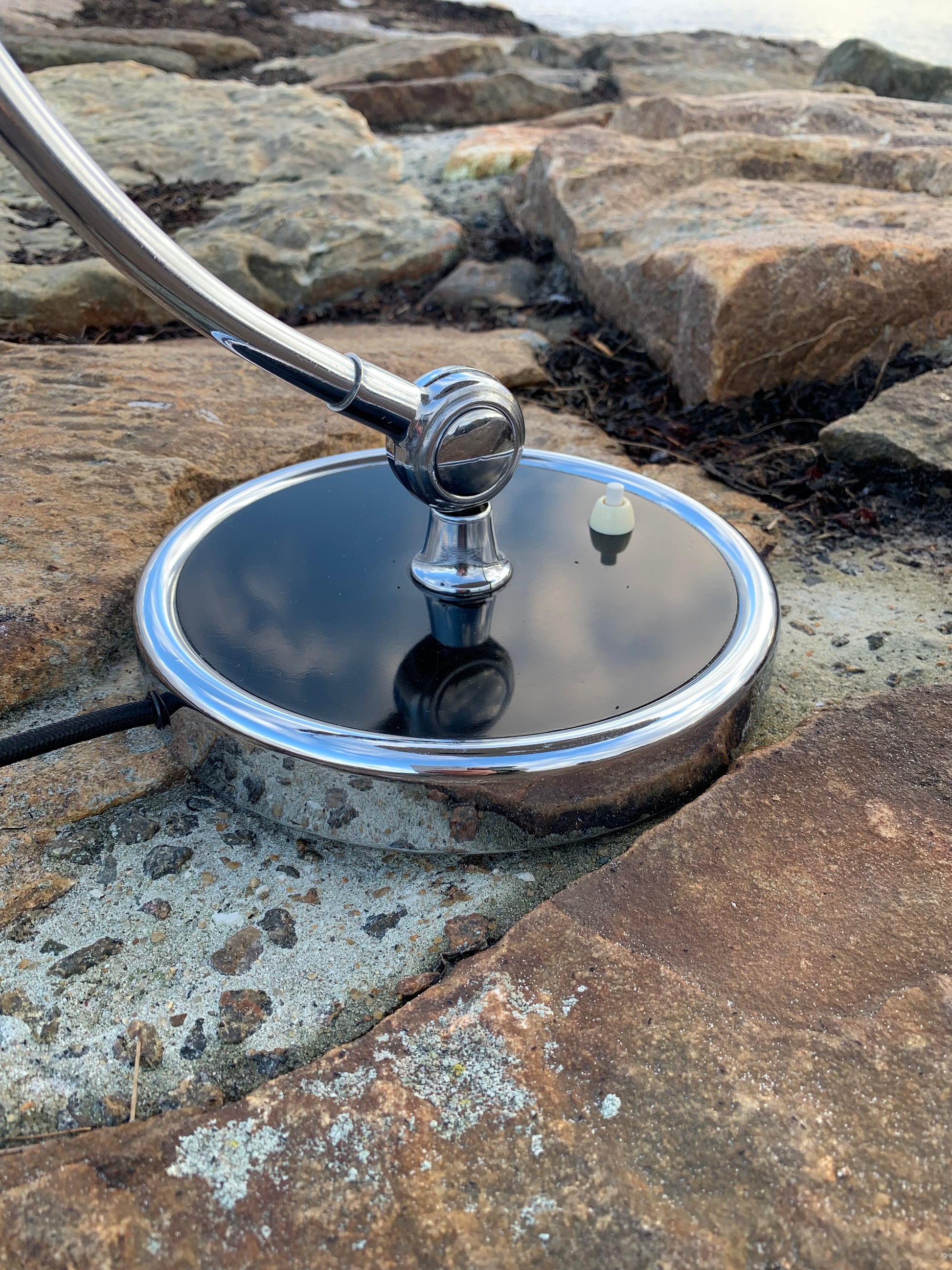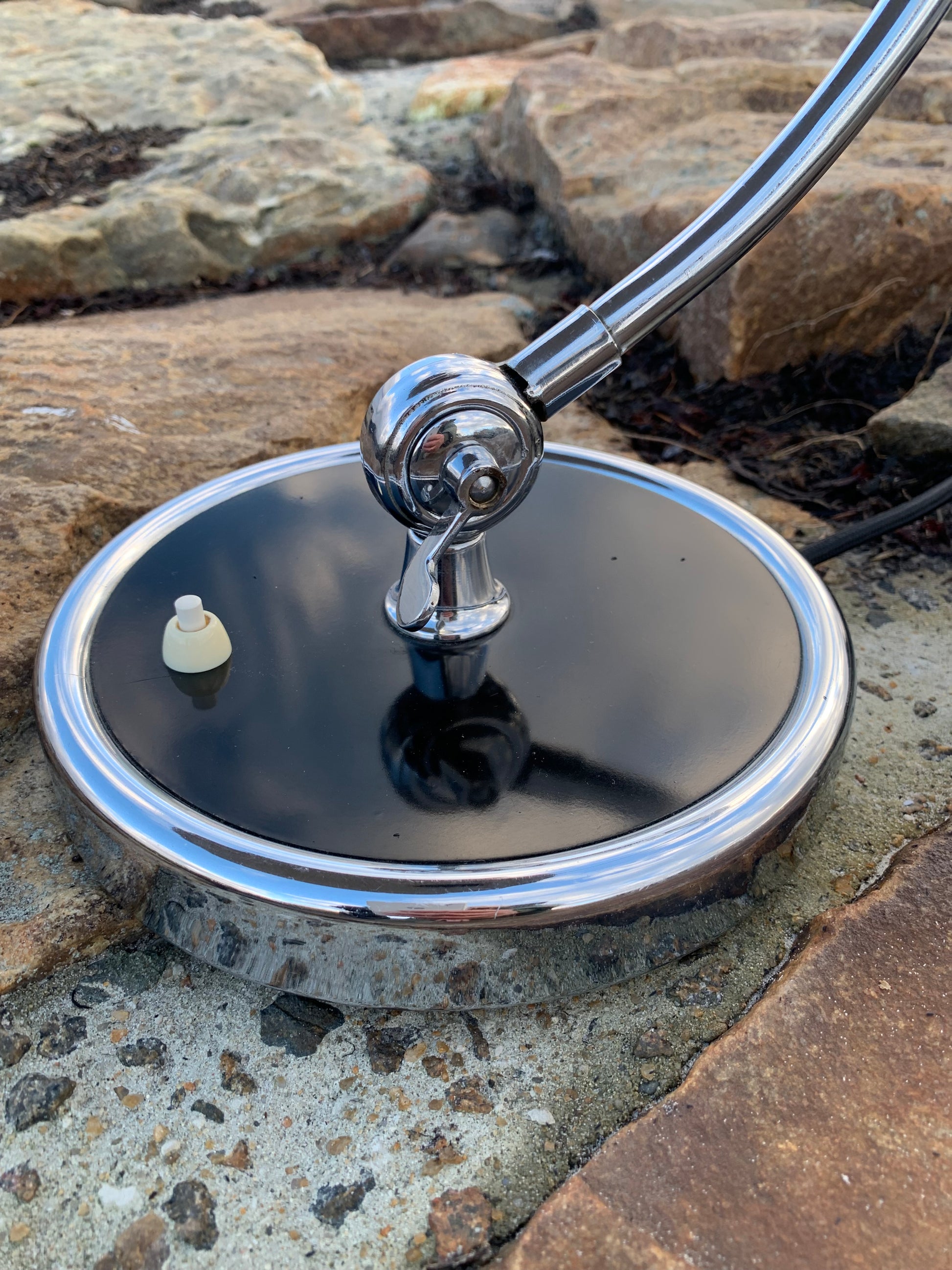 Dette eksemplar fremstår i den originale lakering og med nye kabler. Lampen har lidt aldersrelaterede brugsspor, som sådan en lampe (efter vores smag) nærmest bør have, men overordnet er den i en meget flot vintagestand.
