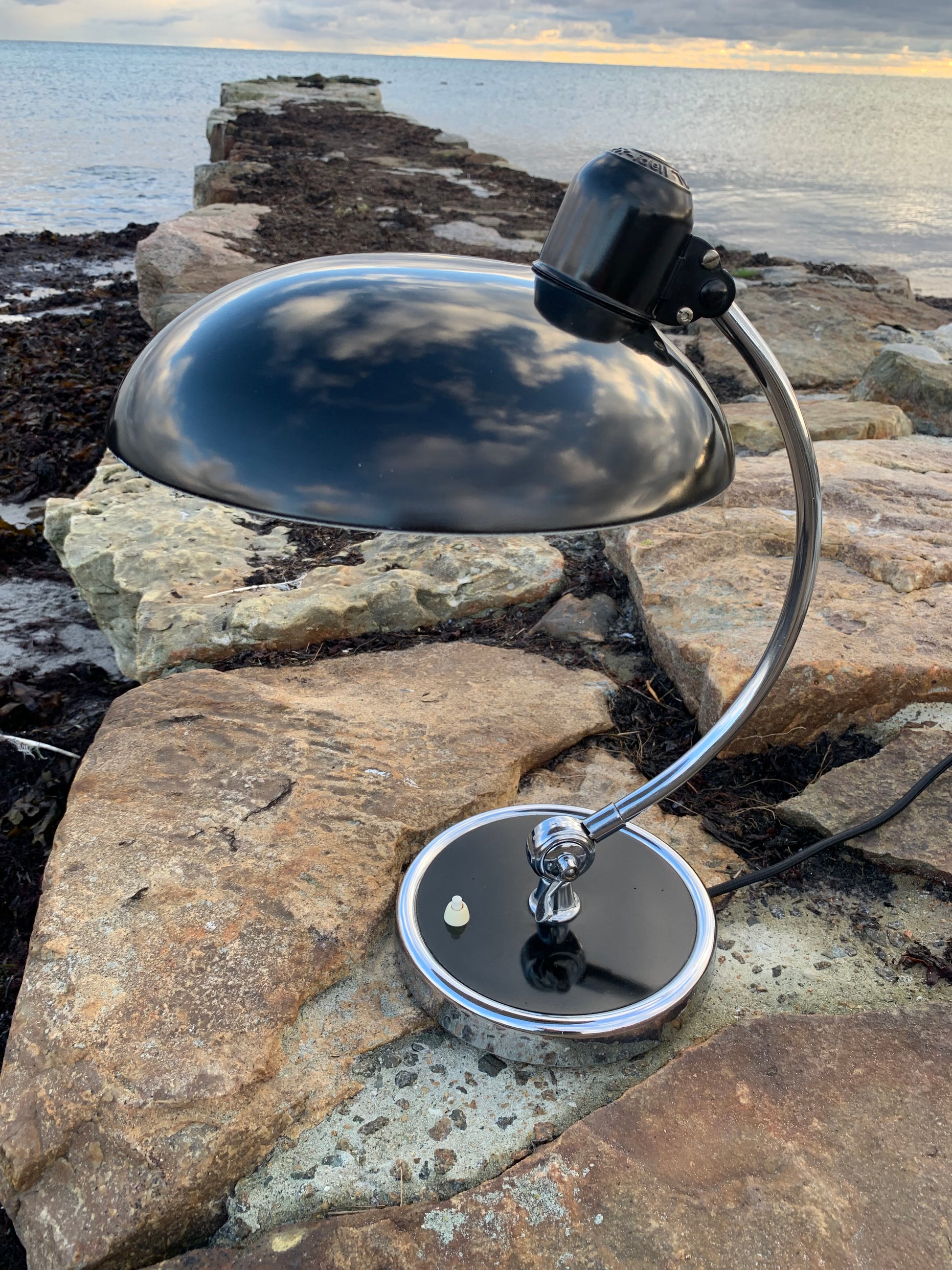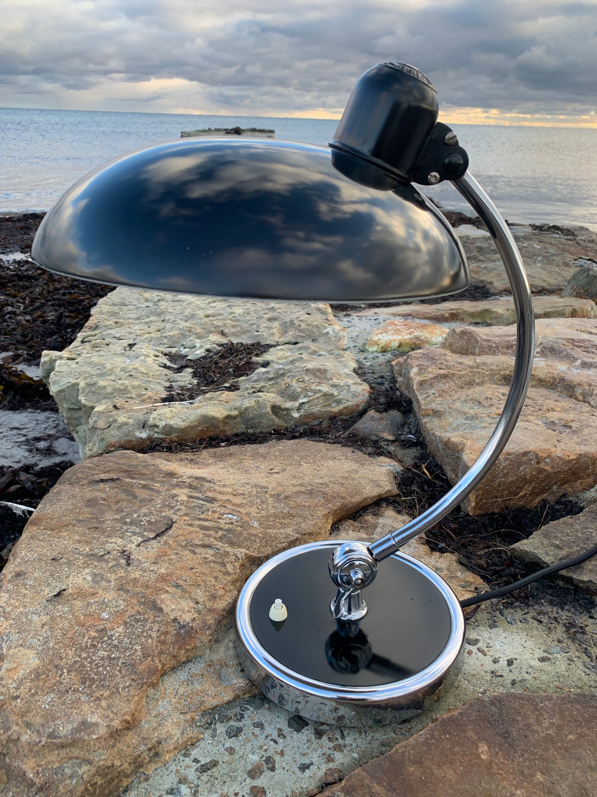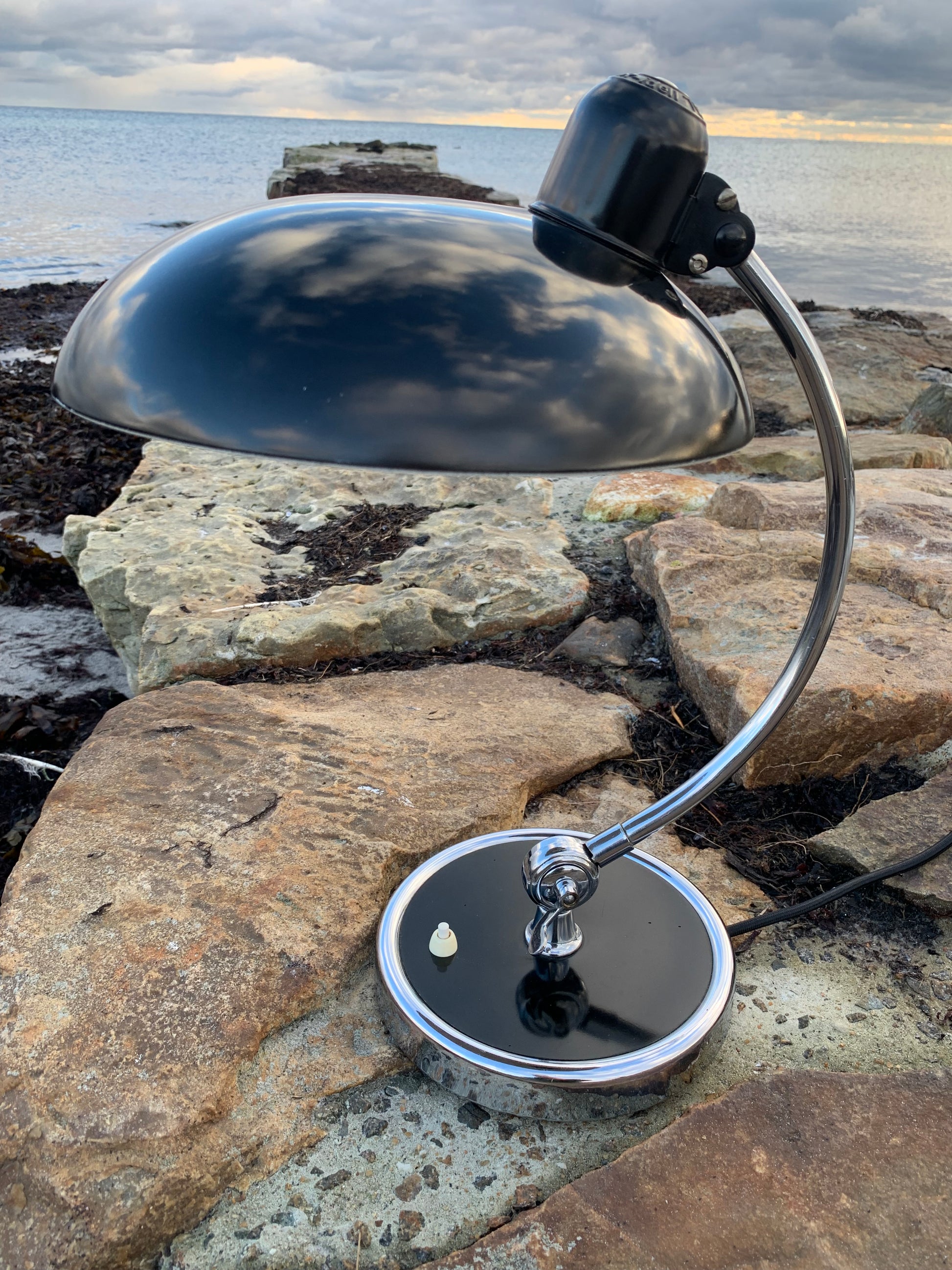 Skøn Kaiser Idell lampe designet af Christian Dell. Denne smukke lampe henvender sig til dig, der ser det smukke i et godt og tidsløst design. De fine gamle Kaiser Idell lamper er et vidnesbyrd om god kvalitet samt godt håndværk. Disse skønne gamle vintagelamper har ofte lidt aldersrelaterede brugsspor, der både forstærker ægtheden og originaliteten. Disse spor både vidner om samt fortæller historien om lampens rejse igennem mange årtier.