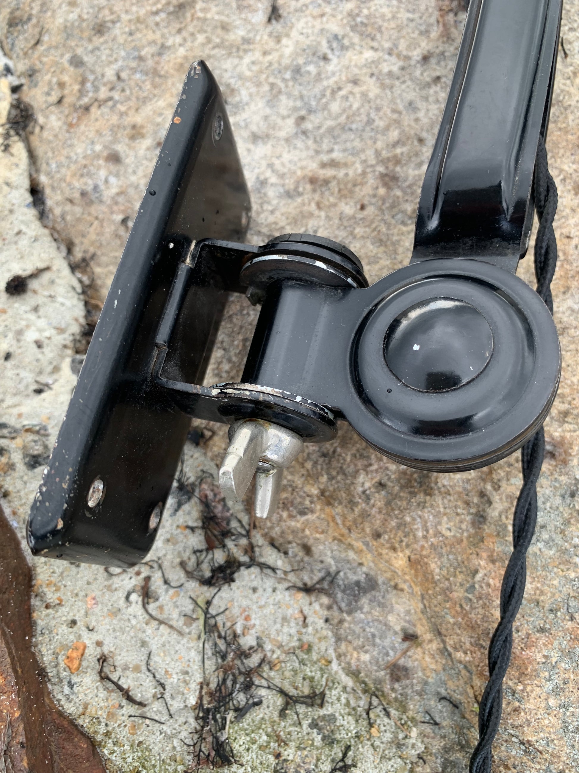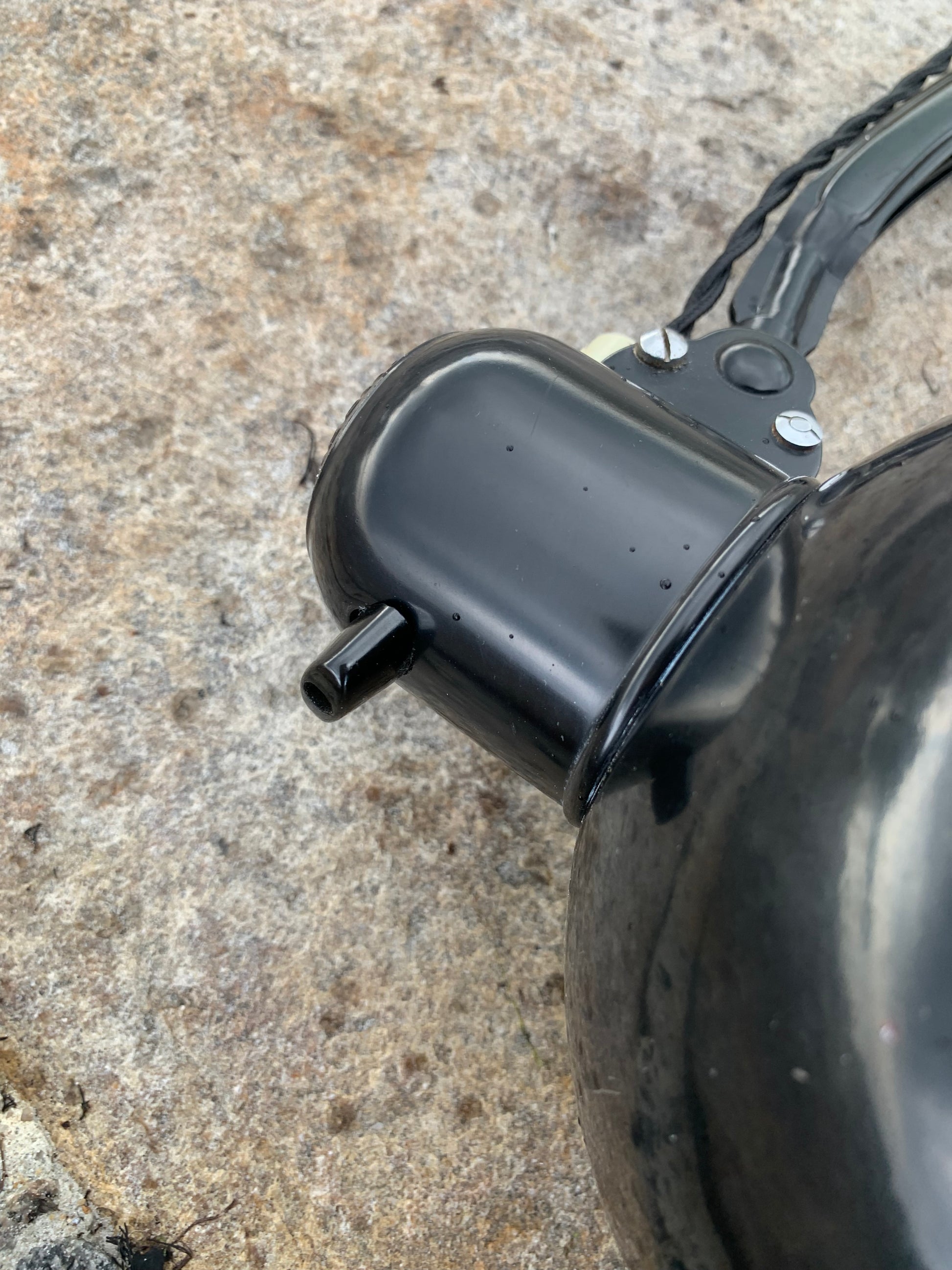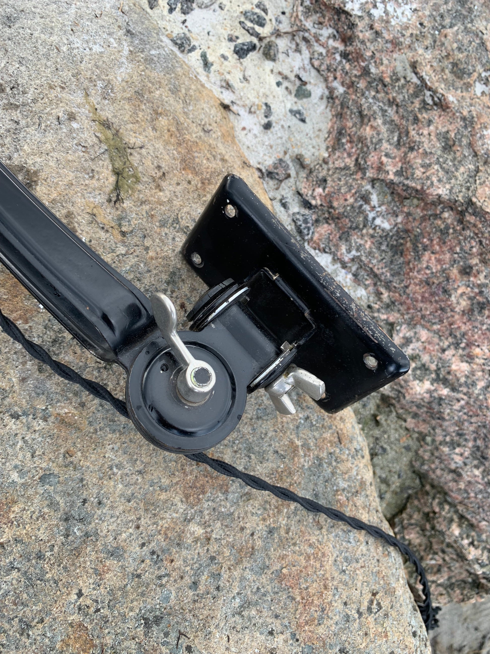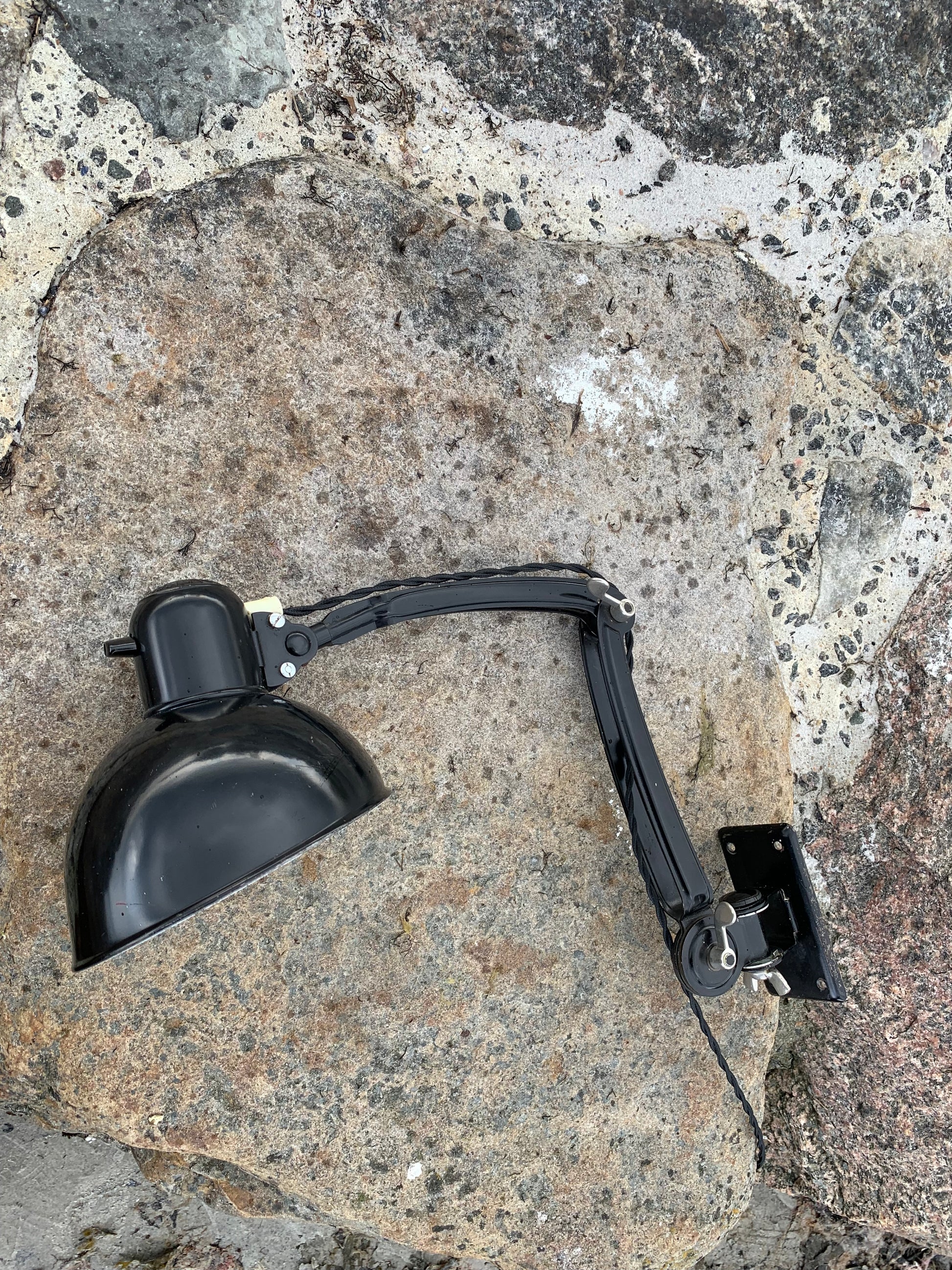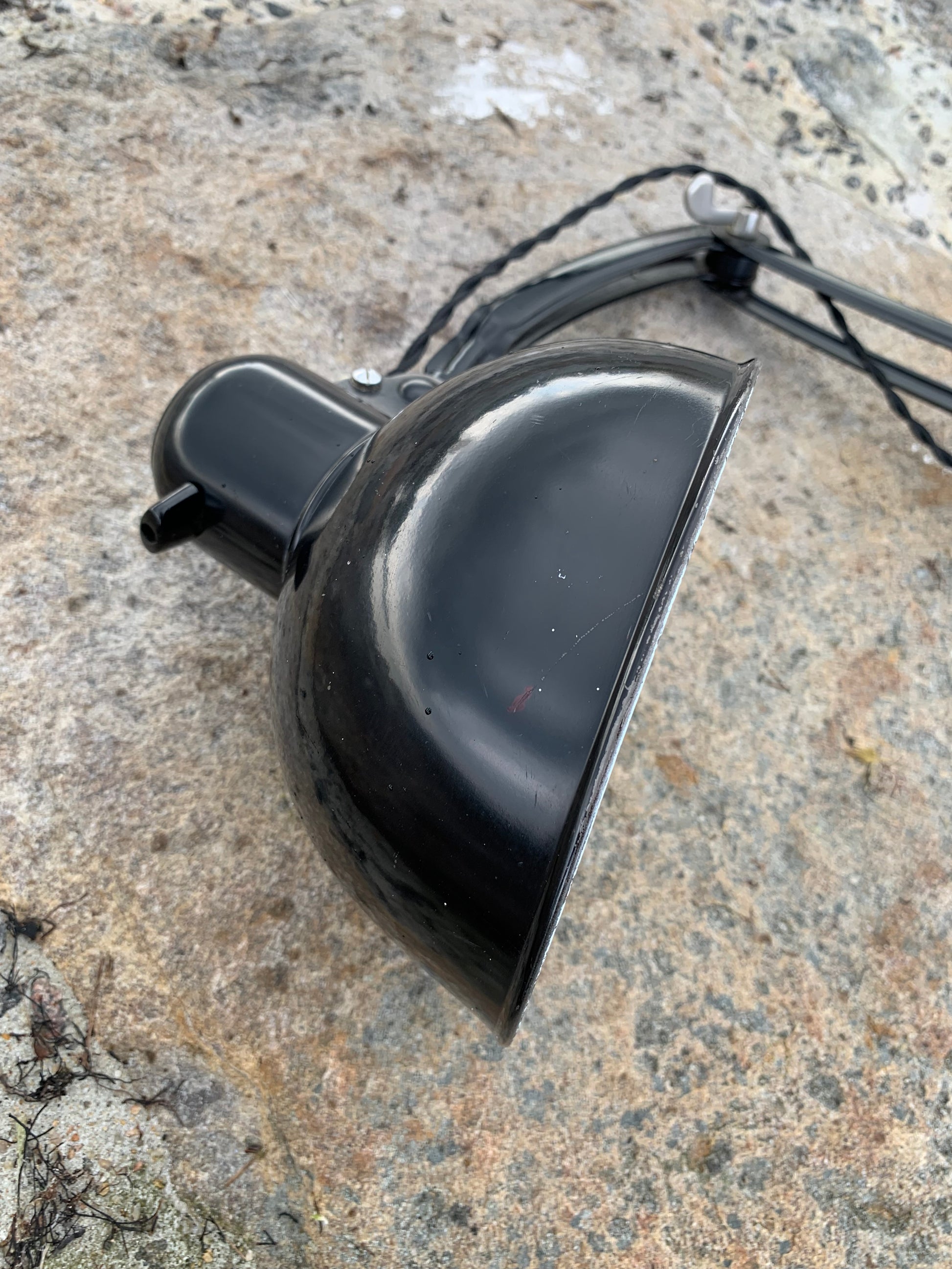 Dette eksemplar fremstår med den originale lakering og nye kabler. Lampen har lidt aldersrelaterede brugsspor, som sådan en lampe (efter vores smag) nærmest bør have.