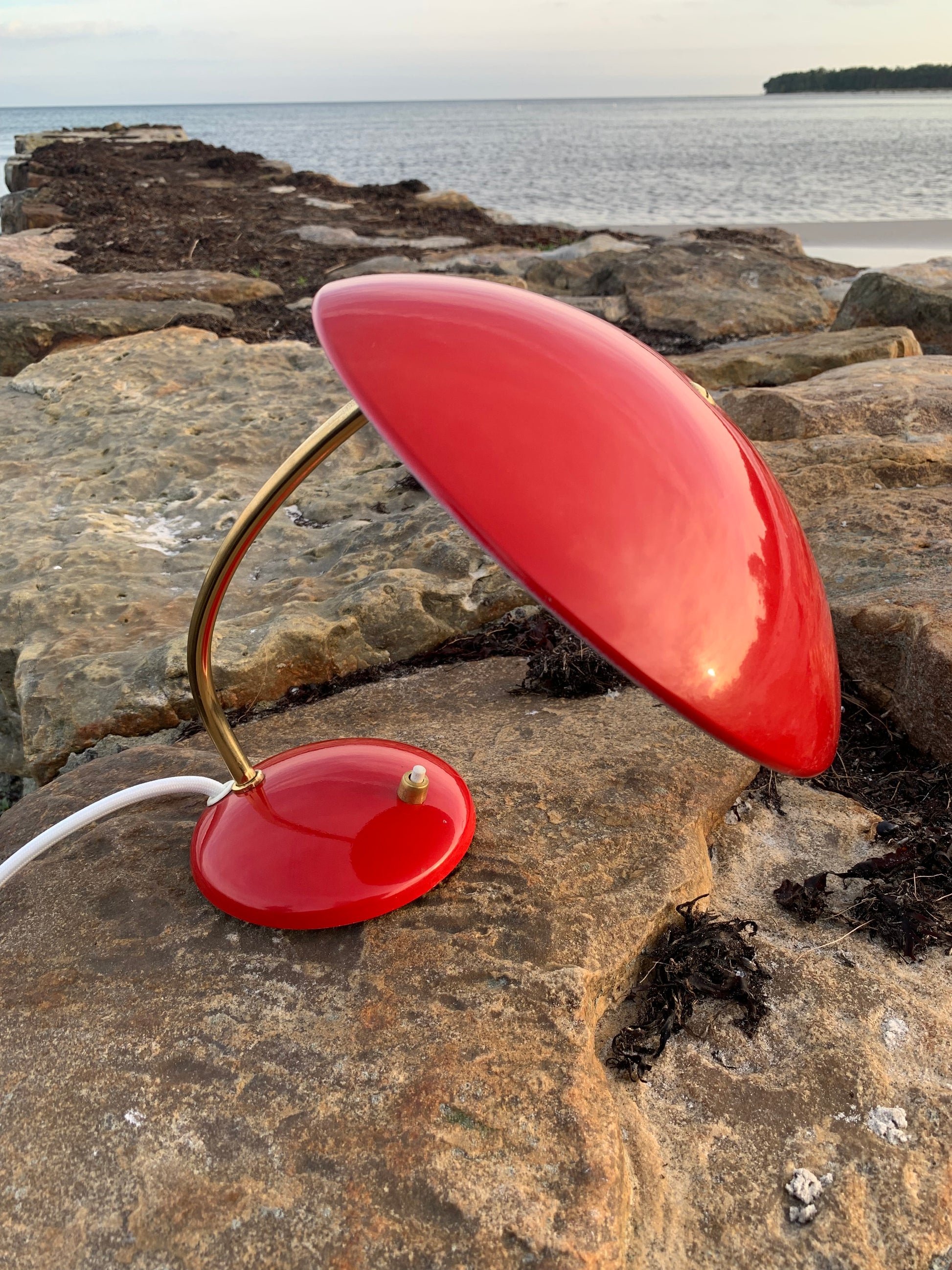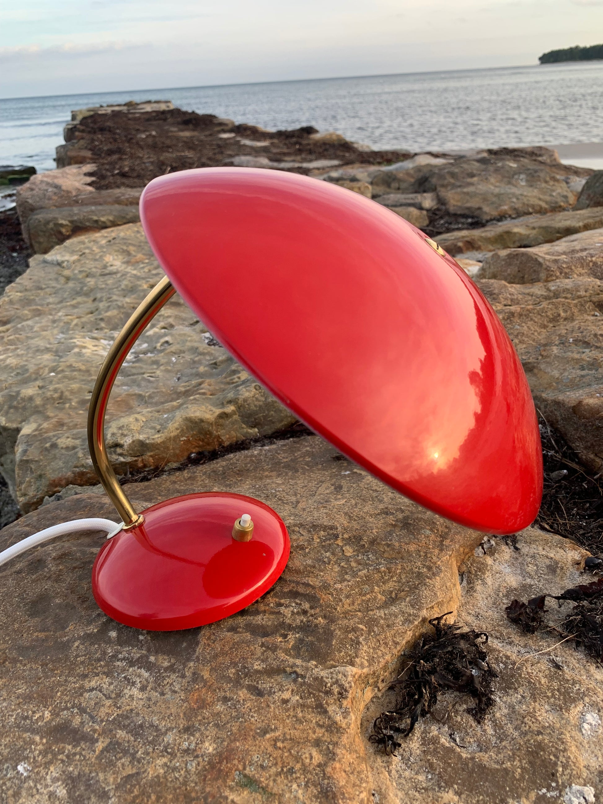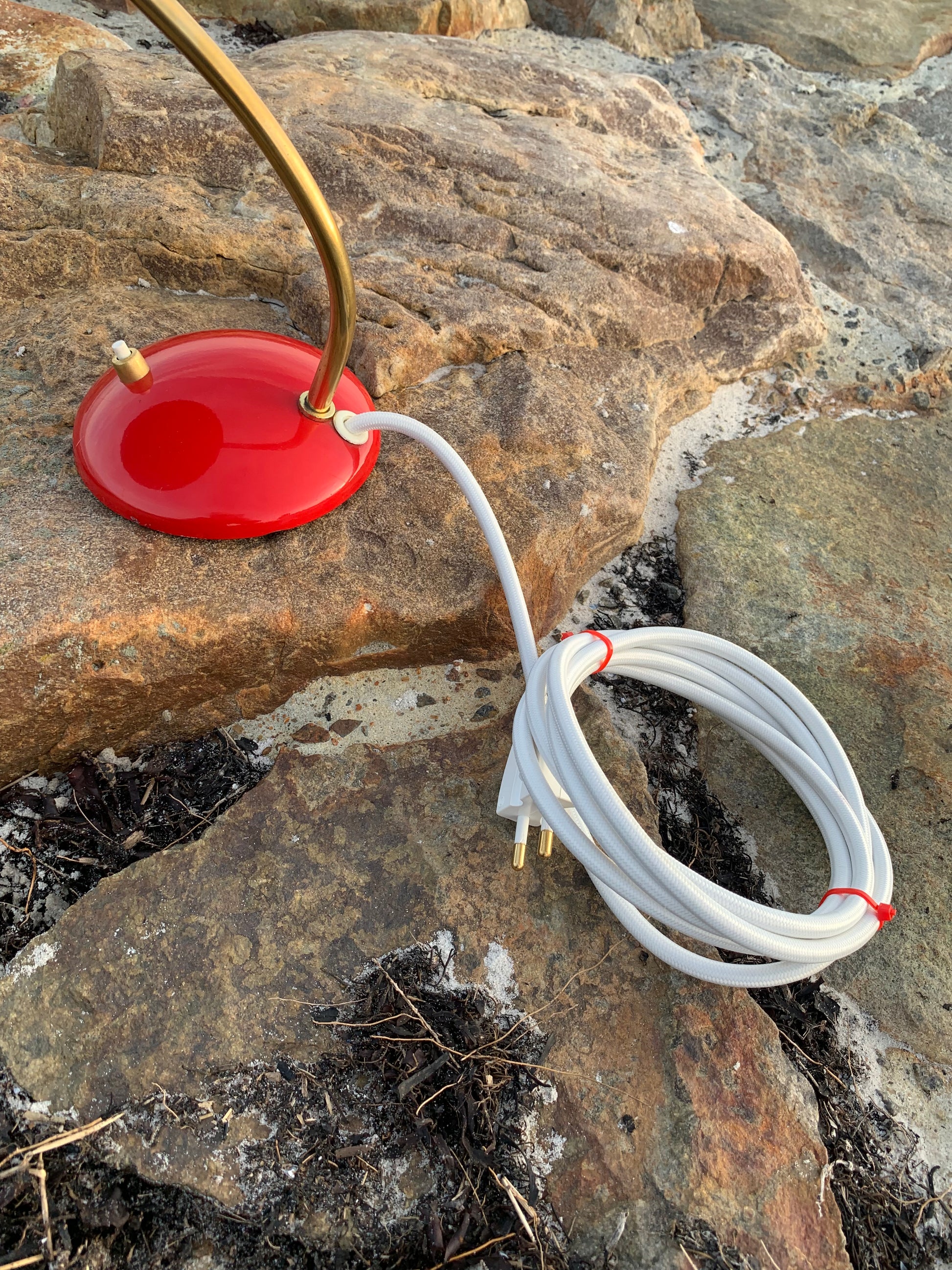 Dette eksemplar fremstår med den originale lakering og nye kabler. Lampen har en smule aldersrelaterede brugsspor, som sådan en lampe (efter vores smag) nærmest bør have. Overordnet er den dog i en rigtig flot vintagestand.