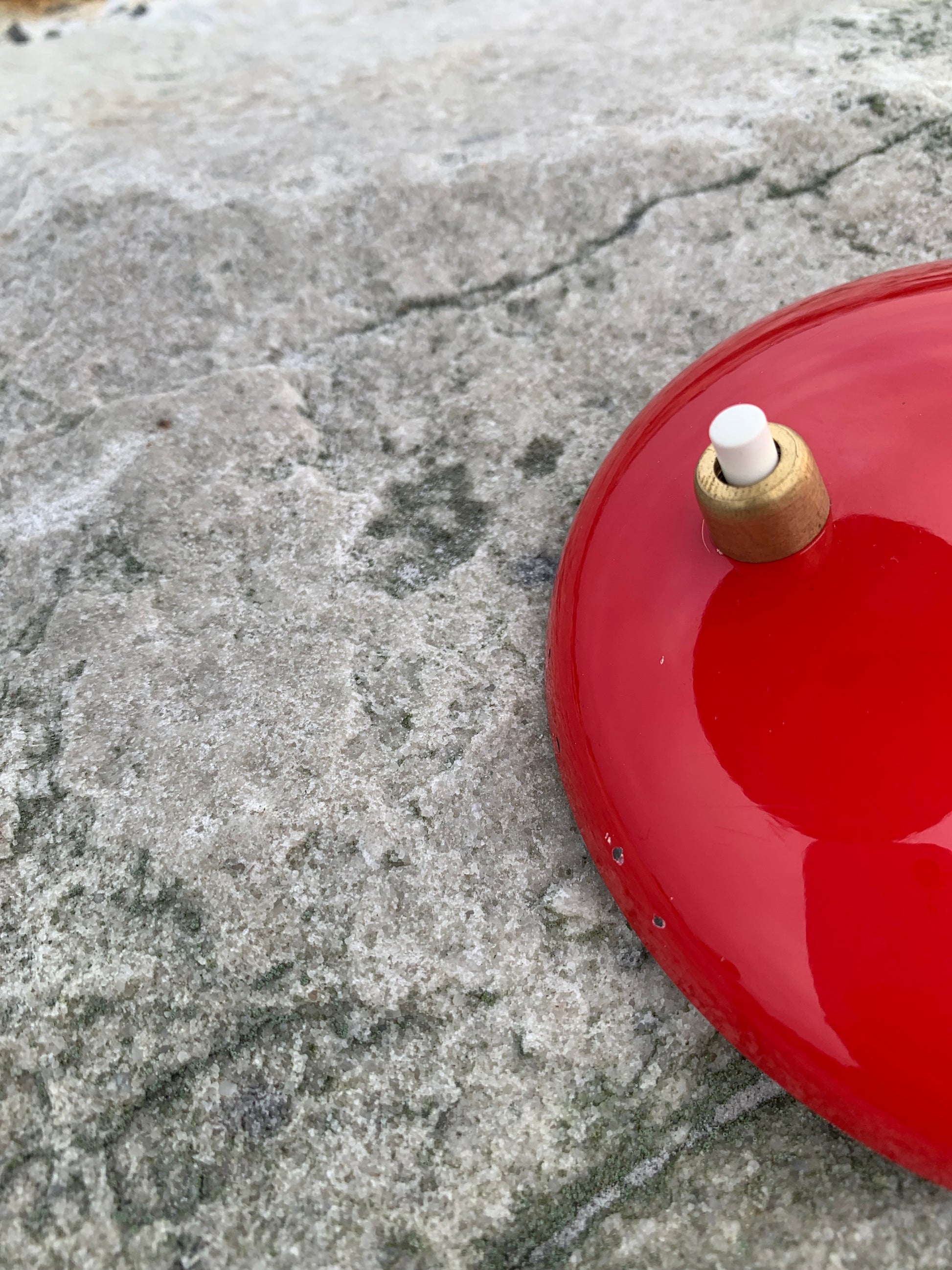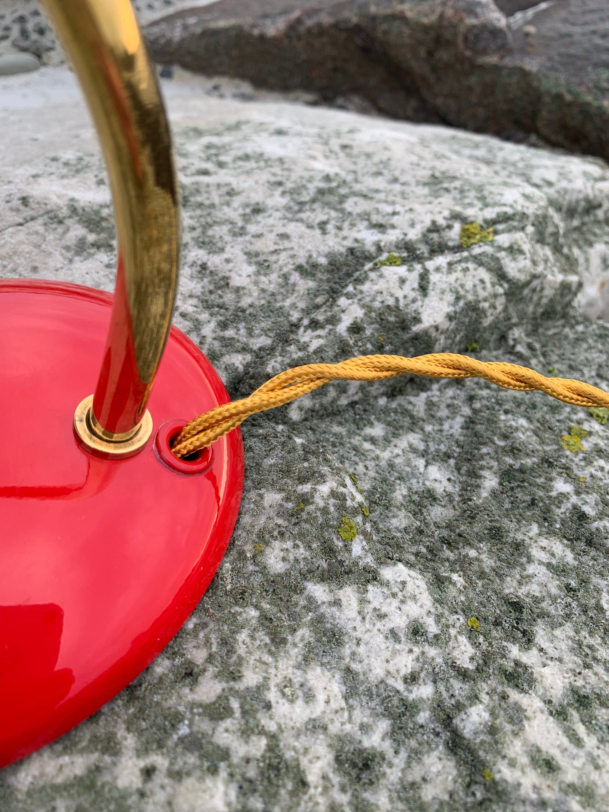 Dette eksemplar fremstår med den originale lakering og nye kabler. Lampen har en smule aldersrelaterede brugsspor, som sådan en lampe (efter vores smag) nærmest bør have. Overordnet er den dog i en rigtig flot vintagestand.