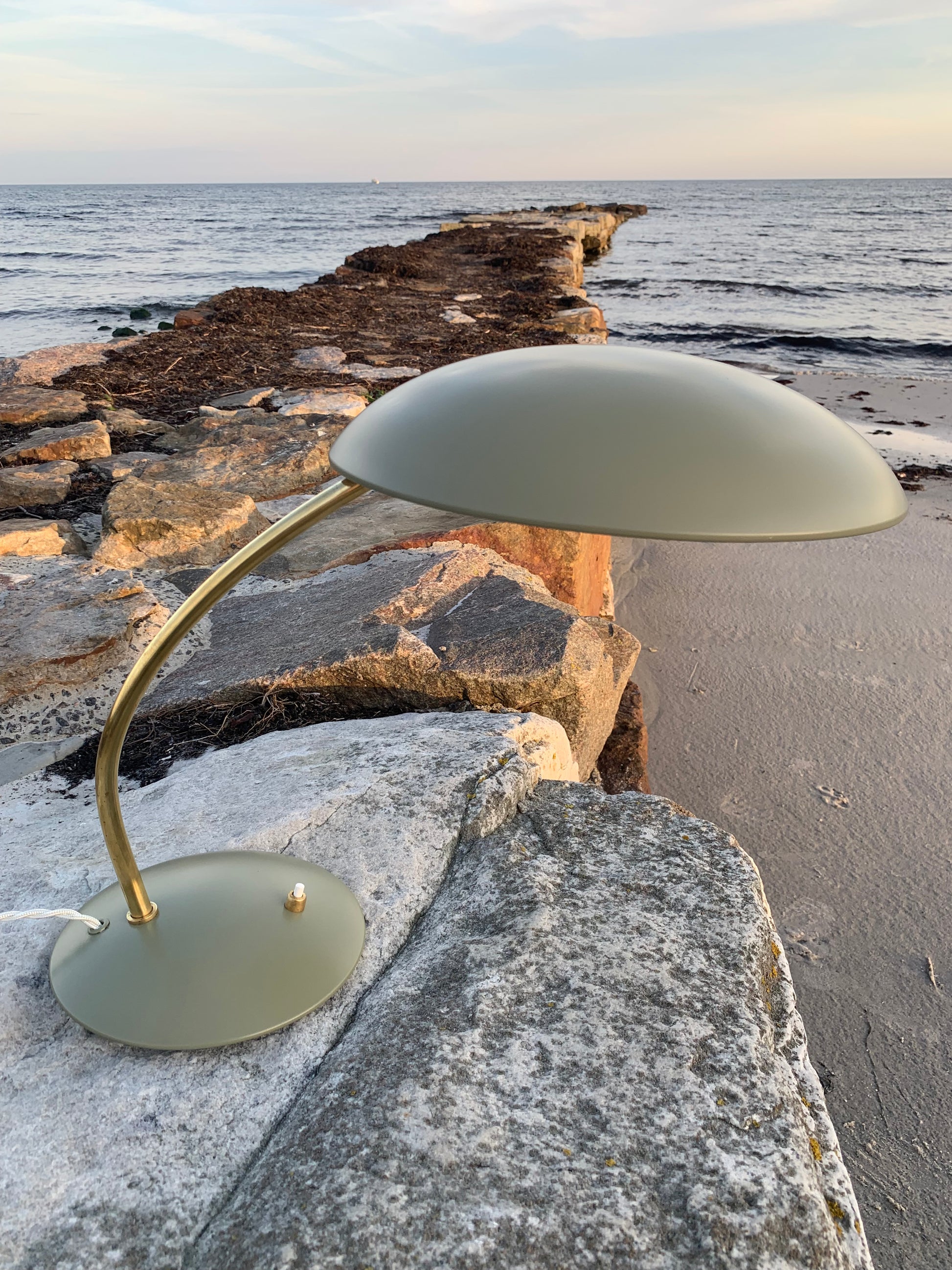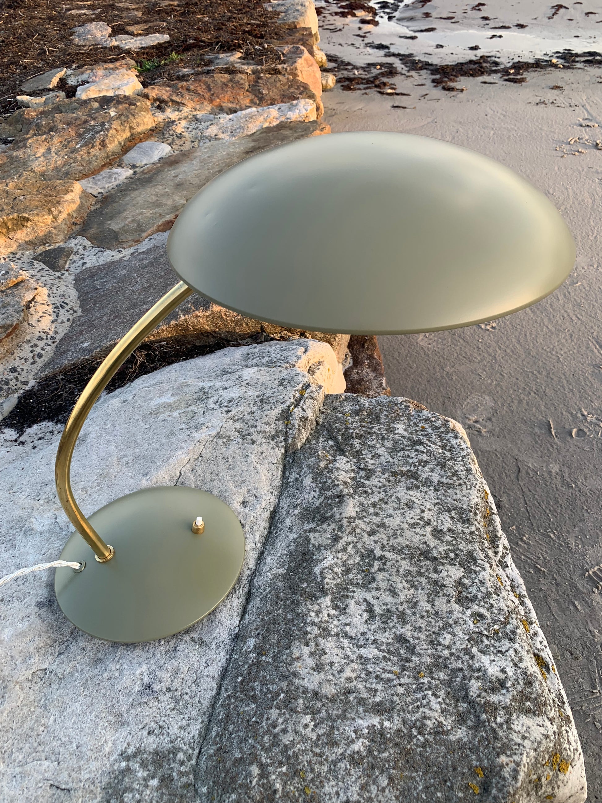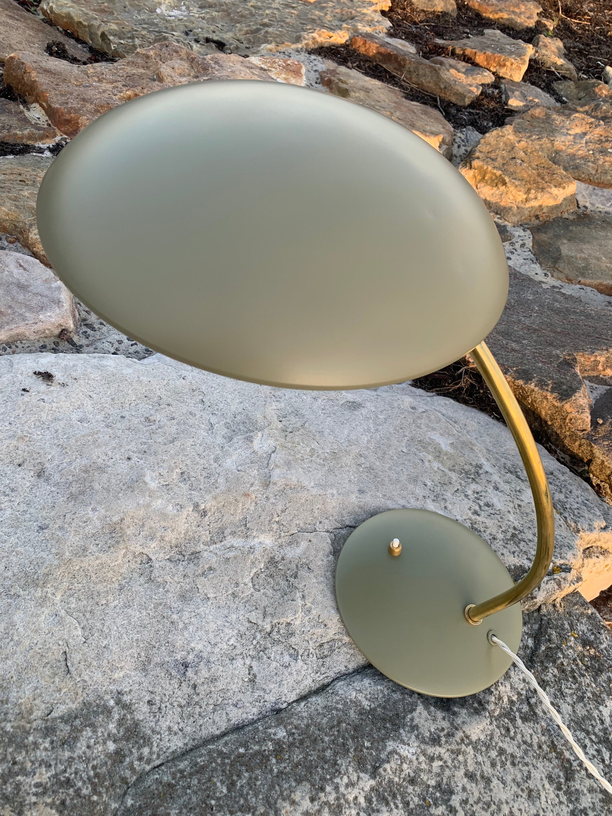 Dette eksemplar er nænsomt restaureret og fremstår med ny lakering samt nykablet. På trods af istandsættelsen har vintagelampen bevaret sin charme. Det kan stadig ses, at lampen har lidt charmerende brugsspor, som sådan en lampe (efter vores smag) nærmest bør have.