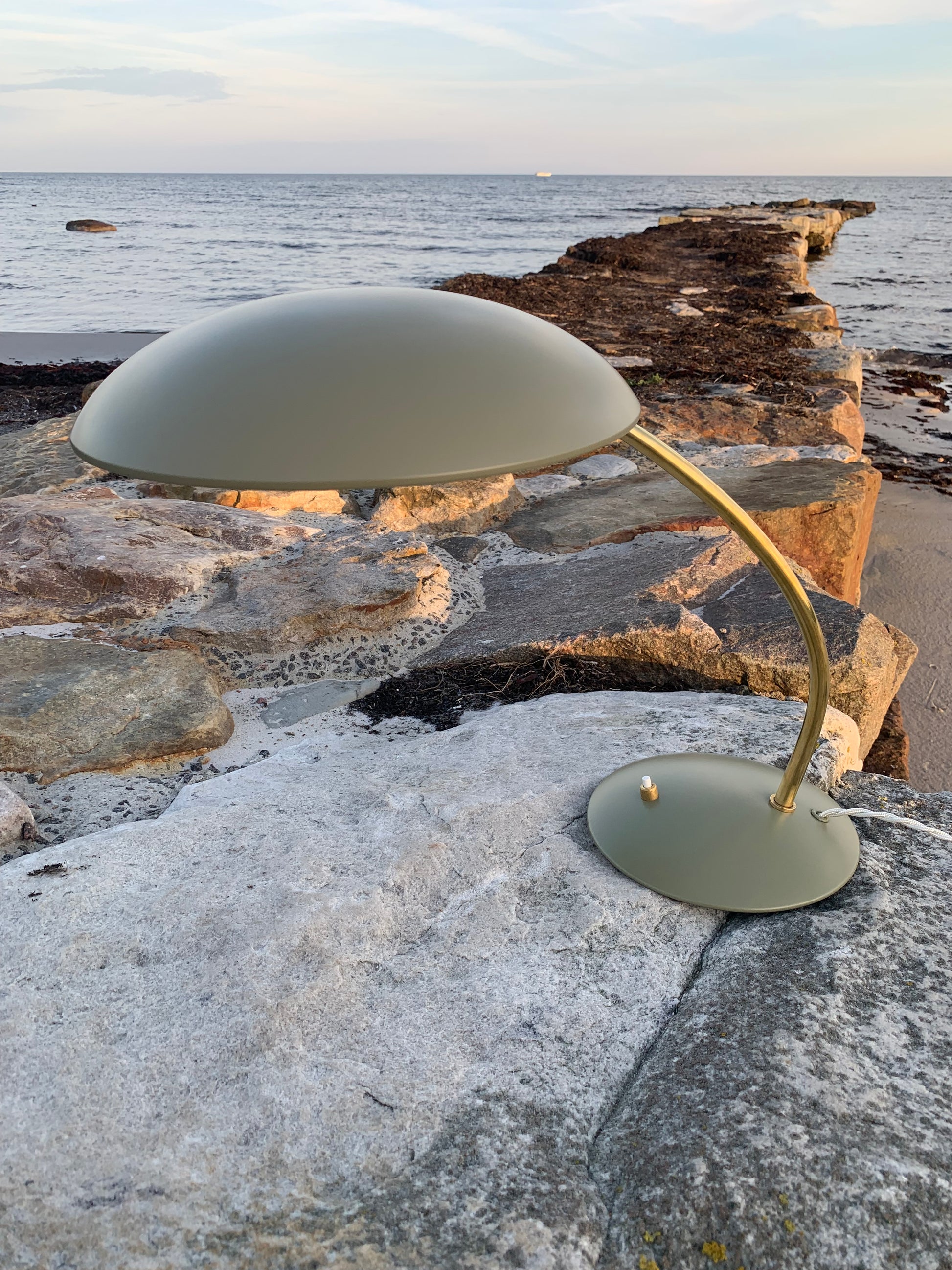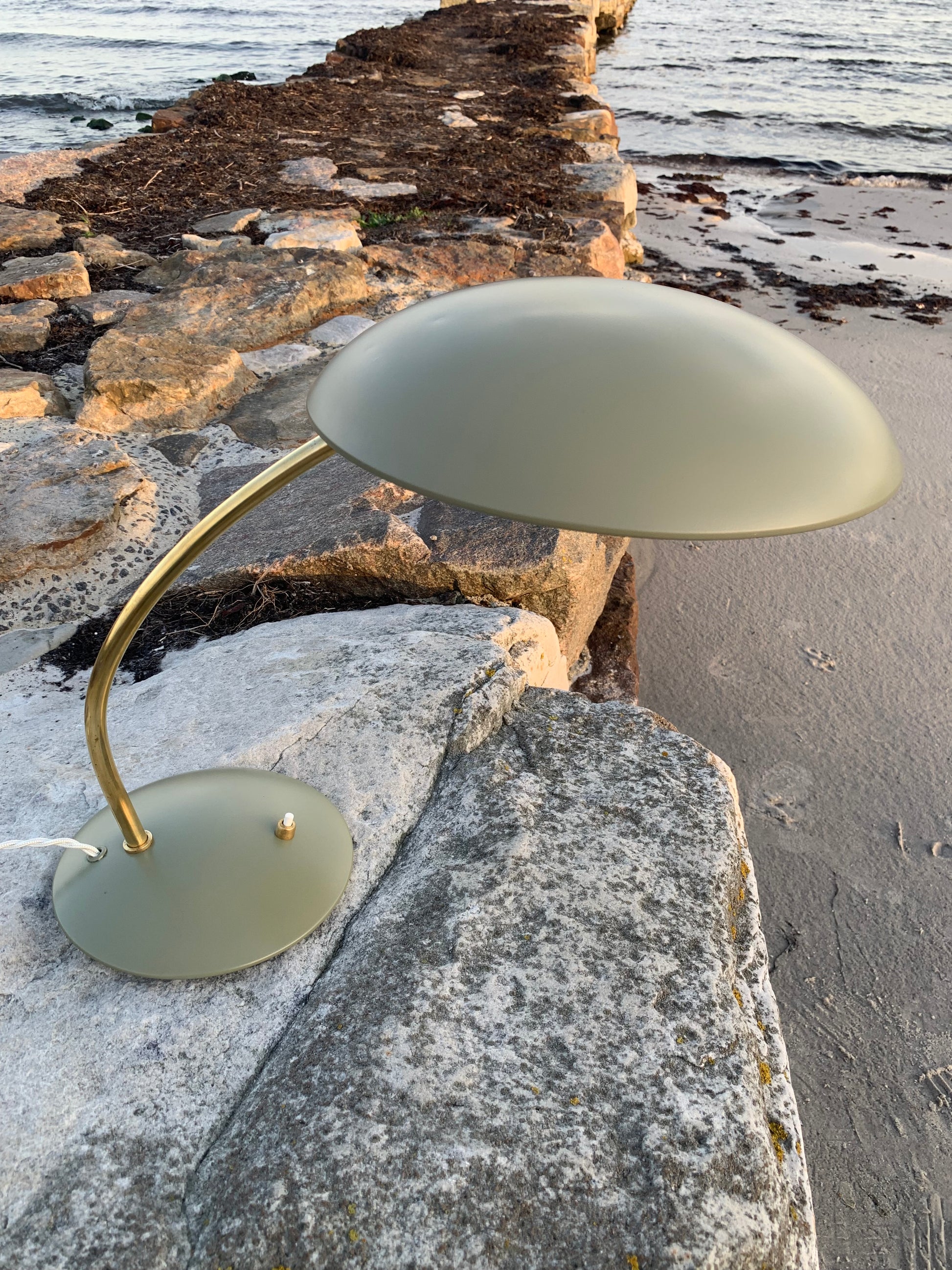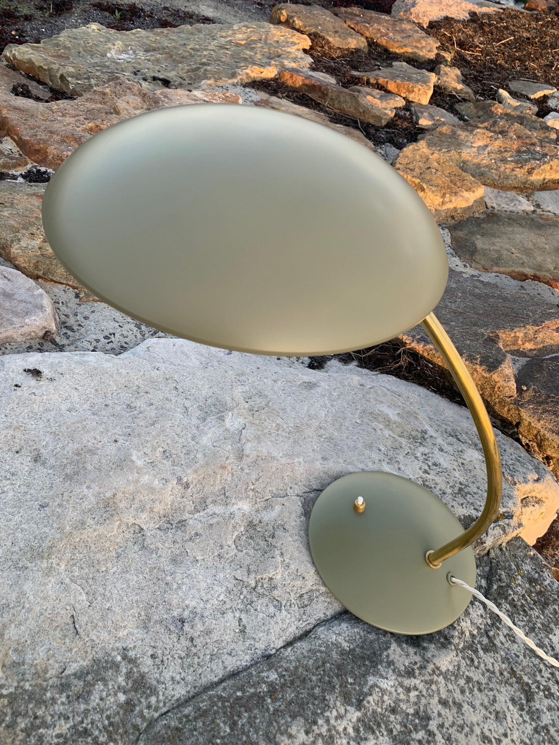 Dette eksemplar er nænsomt restaureret og fremstår med ny lakering samt nykablet. På trods af istandsættelsen har vintagelampen bevaret sin charme. Det kan stadig ses, at lampen har lidt charmerende brugsspor, som sådan en lampe (efter vores smag) nærmest bør have.