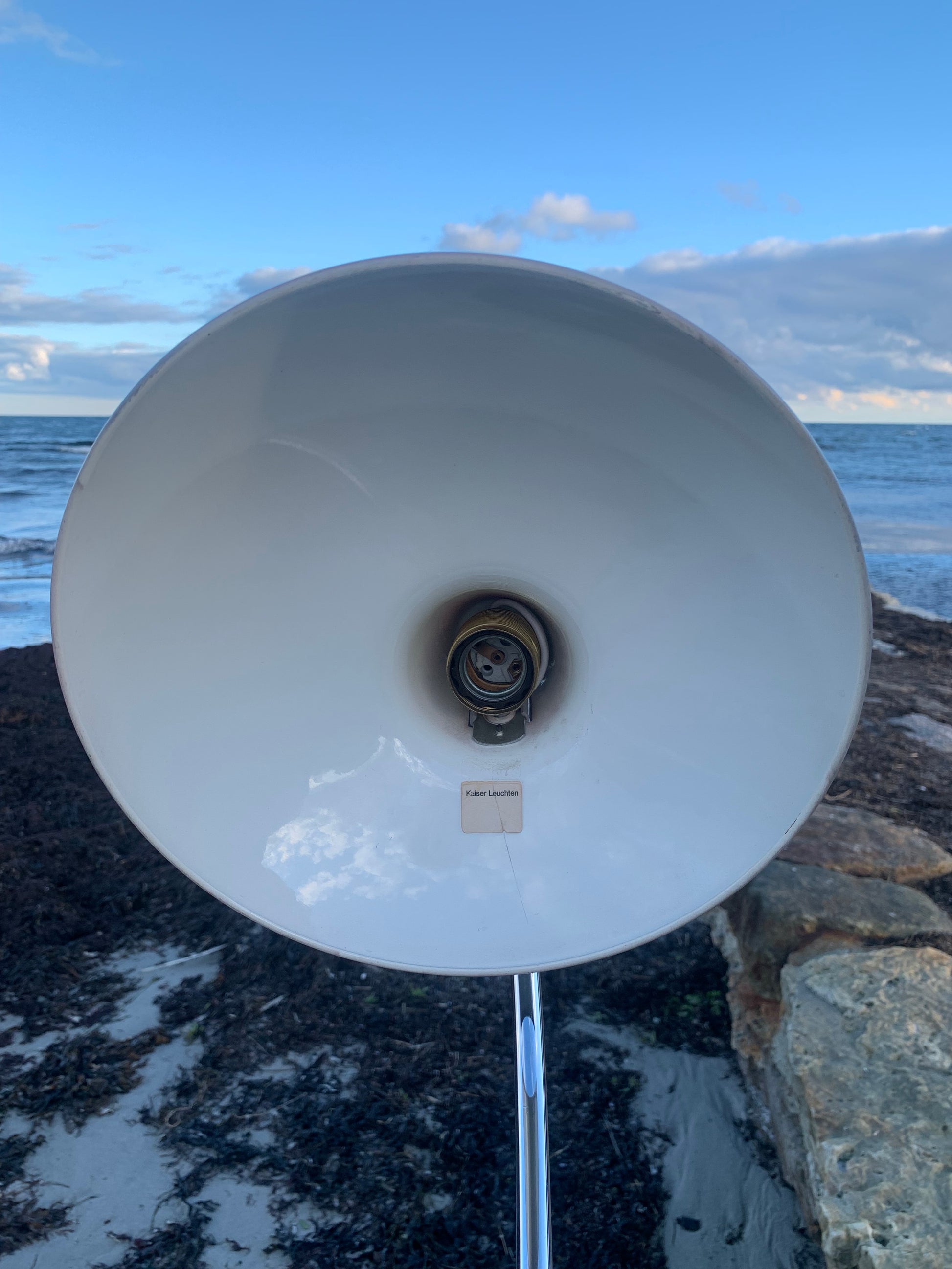 Skøn Kaiser Idell lampe designet af Christian Dell. Denne smukke klassiker henvender sig til dig, der ser det smukke i et godt og tidsløst design. De fine gamle Kaiser Idell lamper er et vidnesbyrd om god kvalitet samt godt håndværk. Disse skønne gamle vintagelamper har ofte lidt aldersrelaterede brugsspor, der både forstærker ægtheden og originaliteten. Disse spor både vidner om samt fortæller historien om lampens rejse igennem flere årtier.