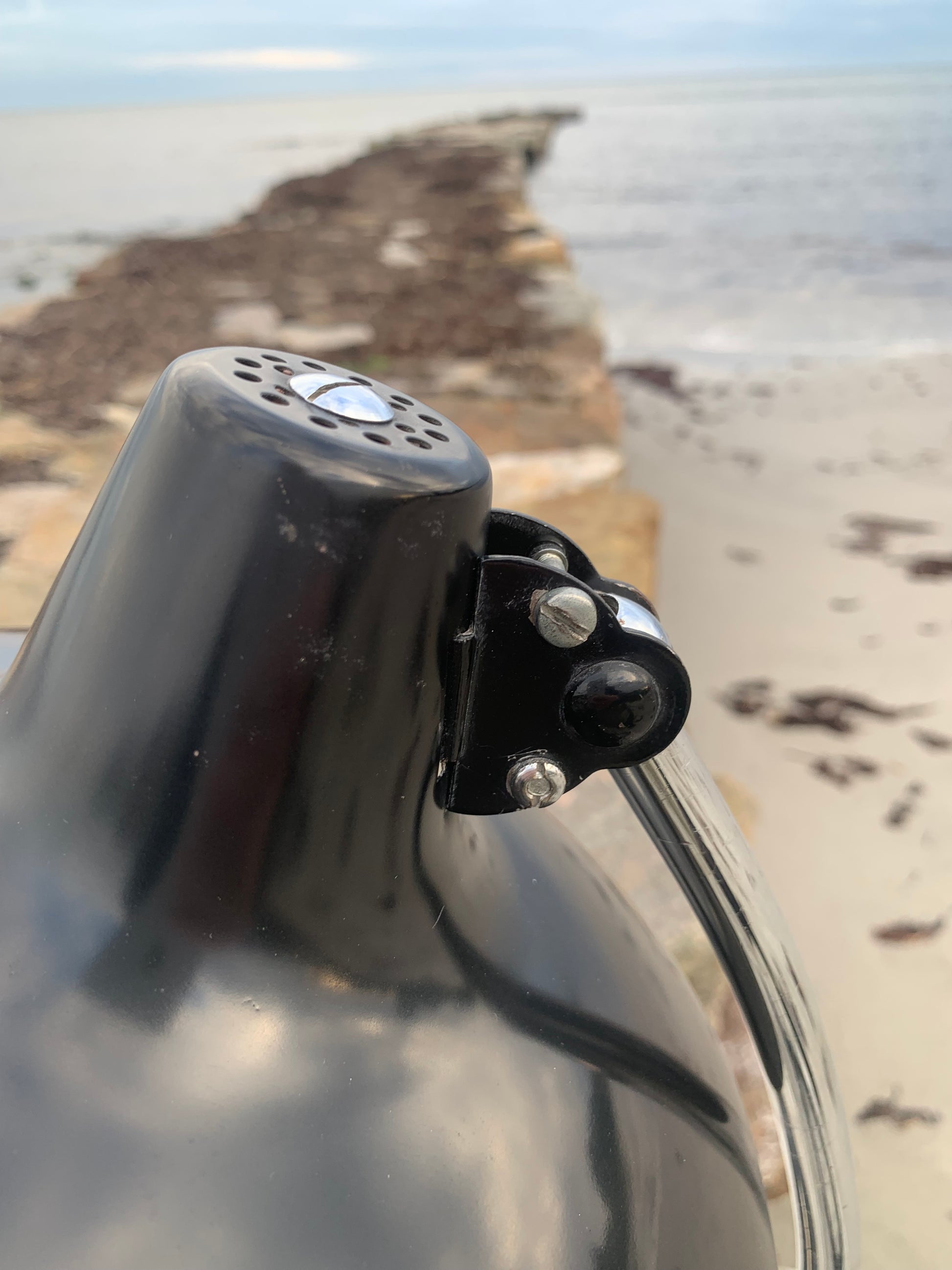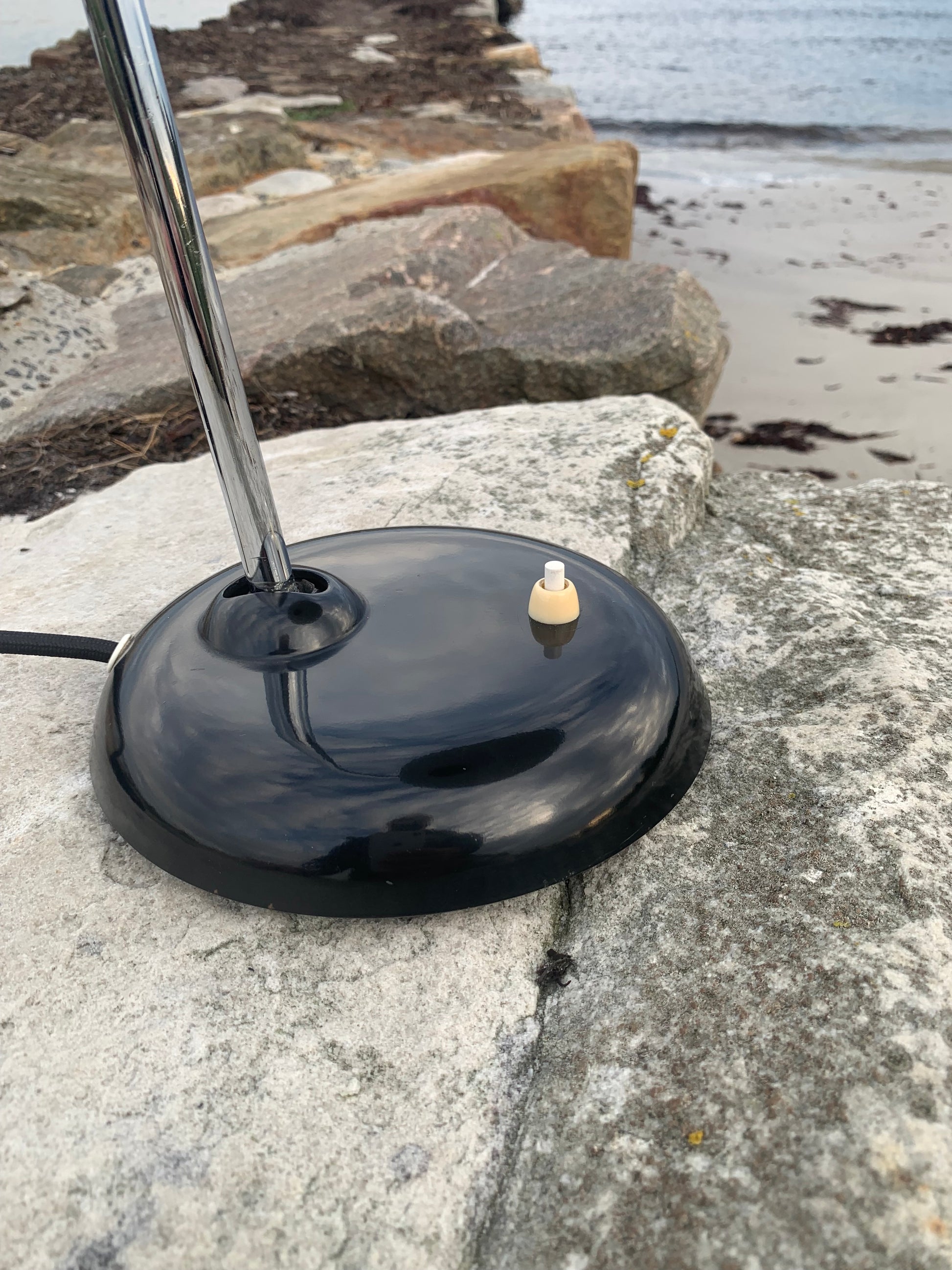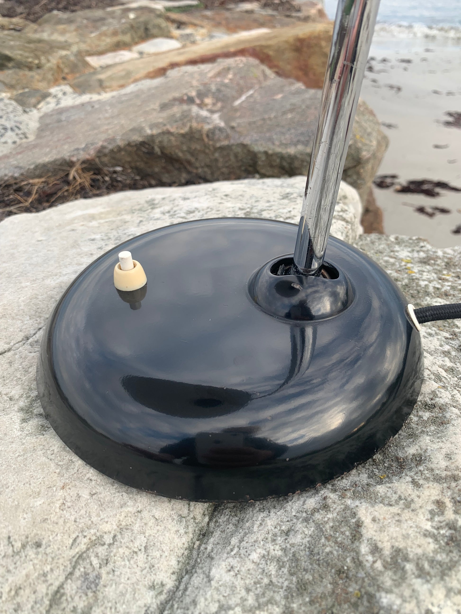 Dette eksemplar fremstår med den originale lakering og nye kabler. Lampen har lidt aldersrelaterede brugsspor, som sådan en lampe (efter vores smag) nærmest bør have.