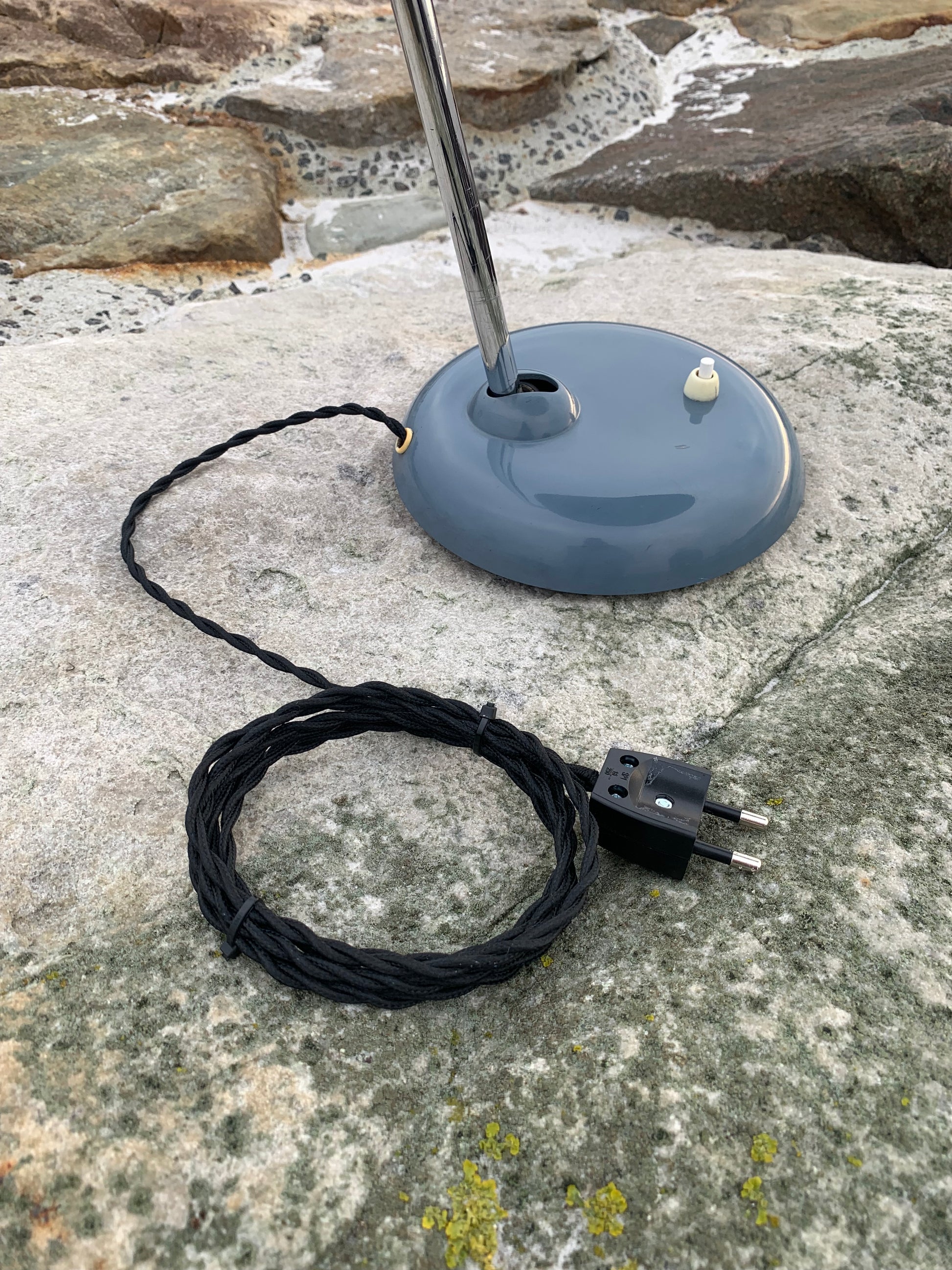 Dette eksemplar fremstår med den originale lakering og nye kabler. Lampen har lidt aldersrelaterede brugsspor, som sådan en lampe (efter vores smag) nærmest bør have.